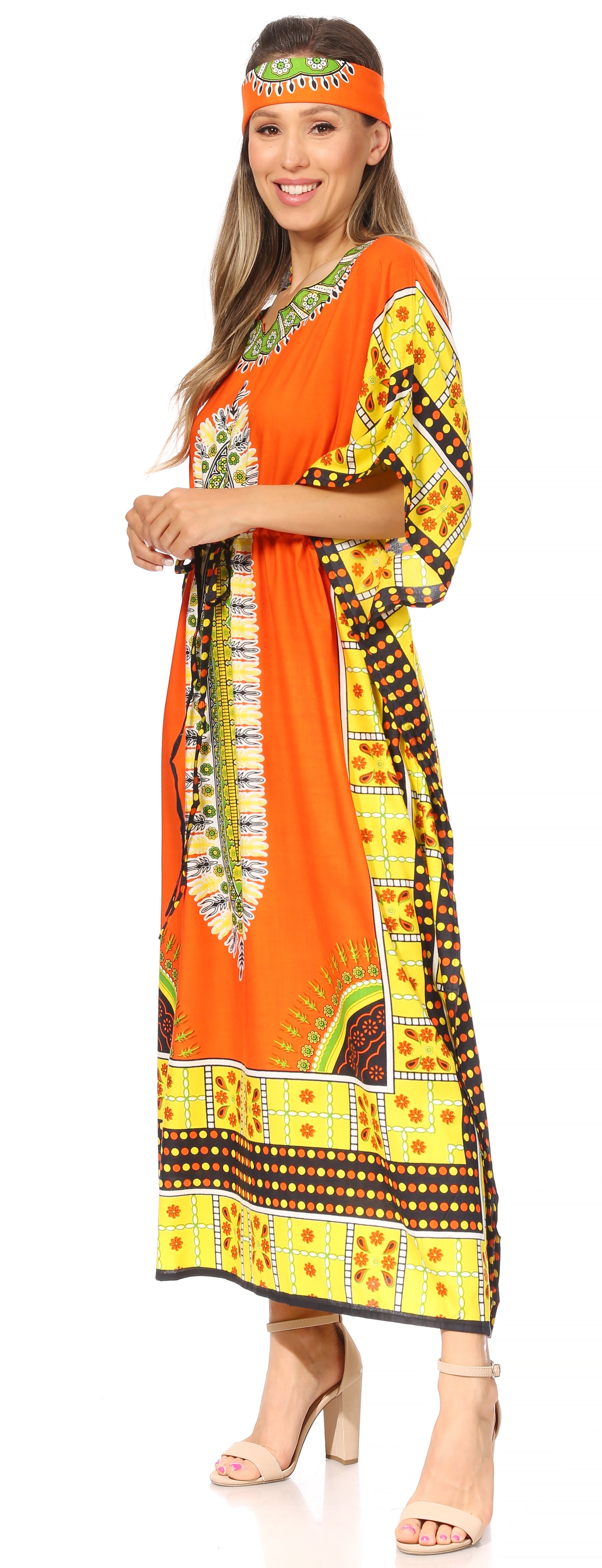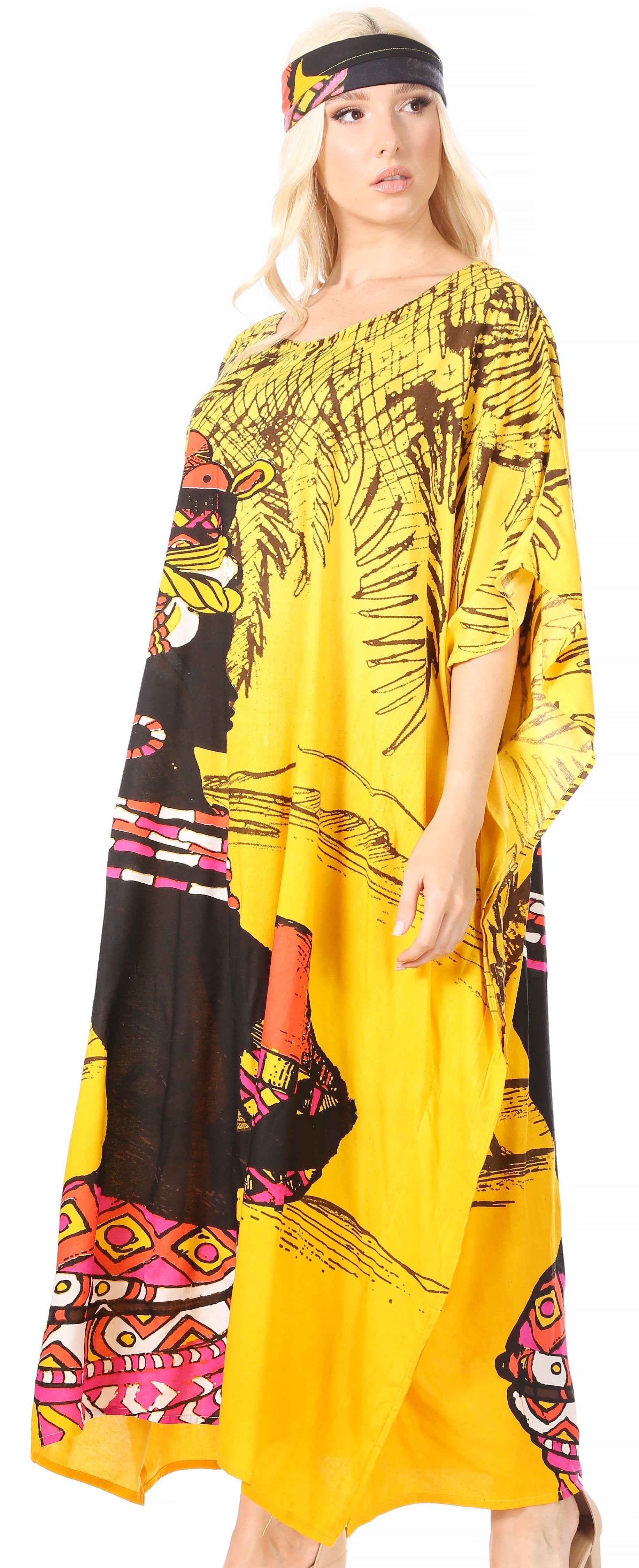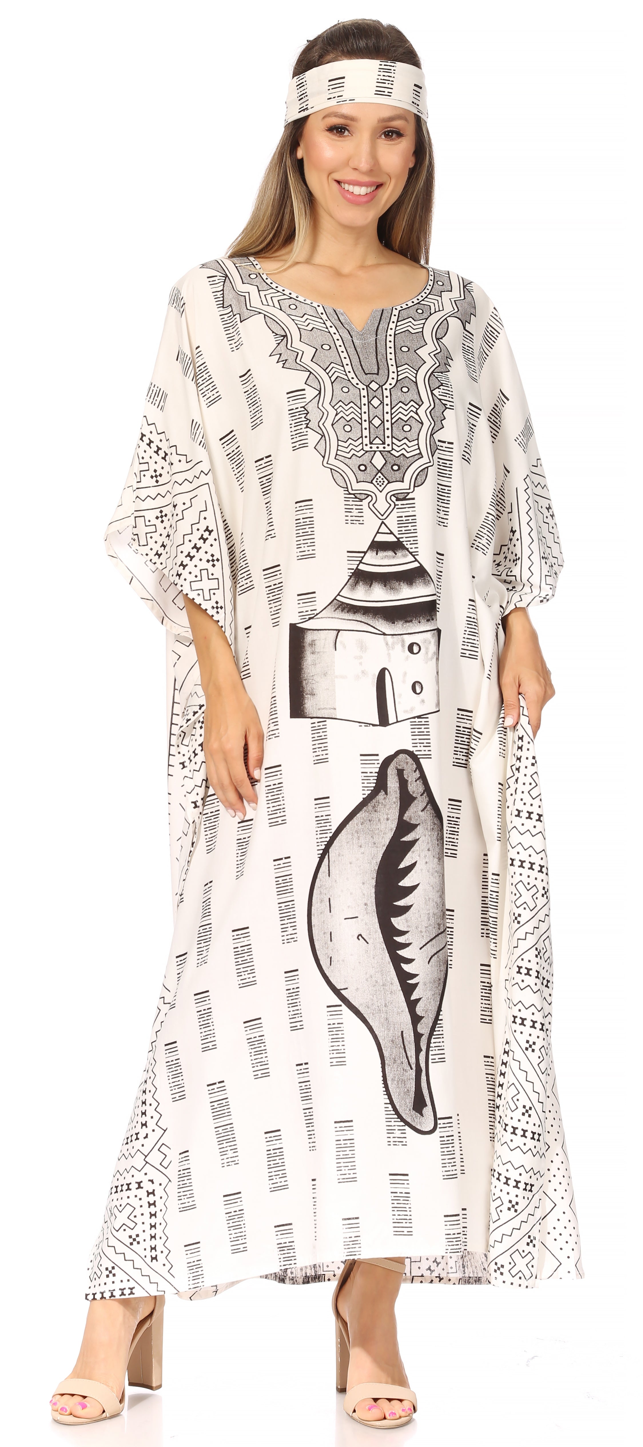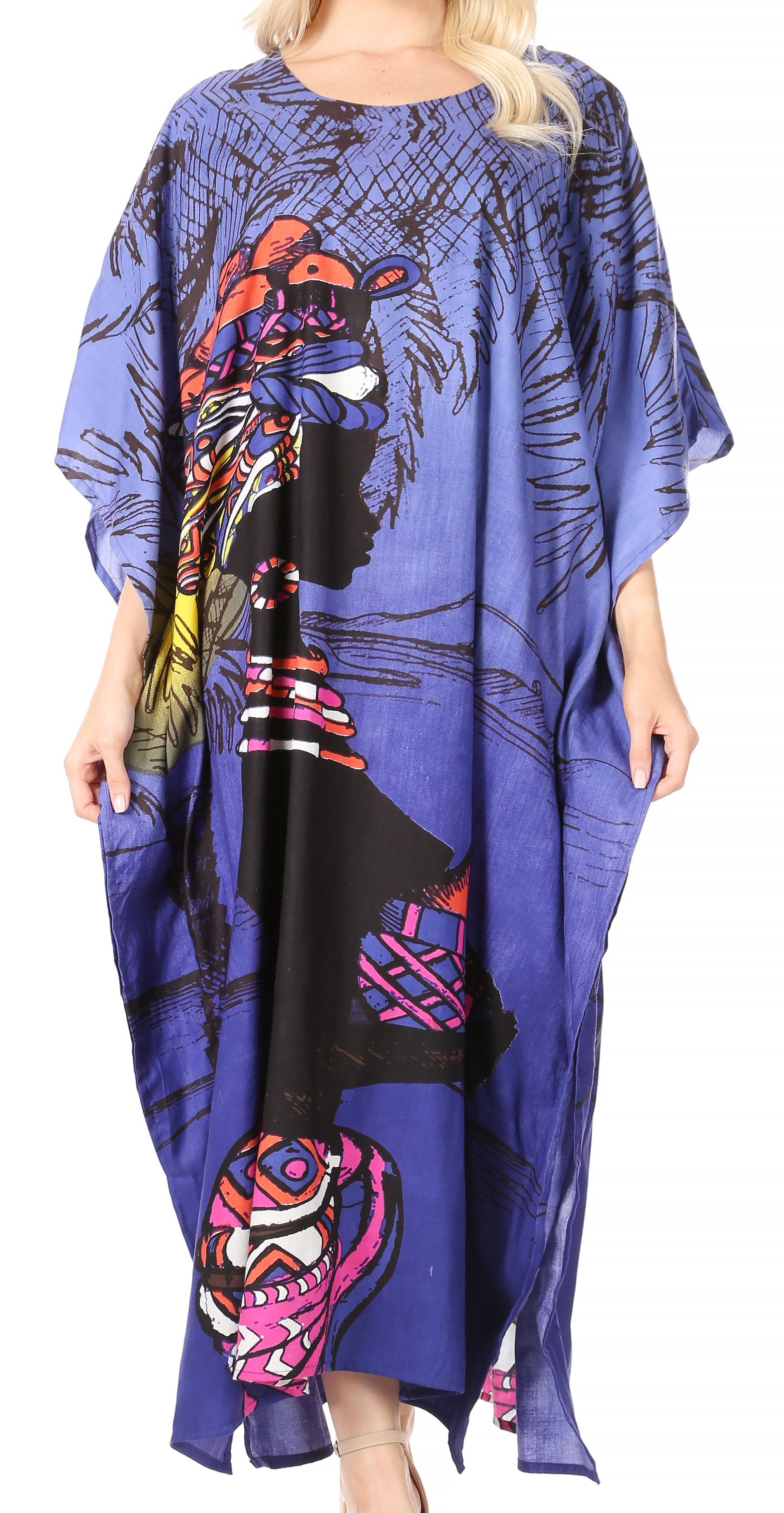 Sakkas Mera Women's Long Loose Short Sleeve Summer Casual Caftan Kaftan Dress