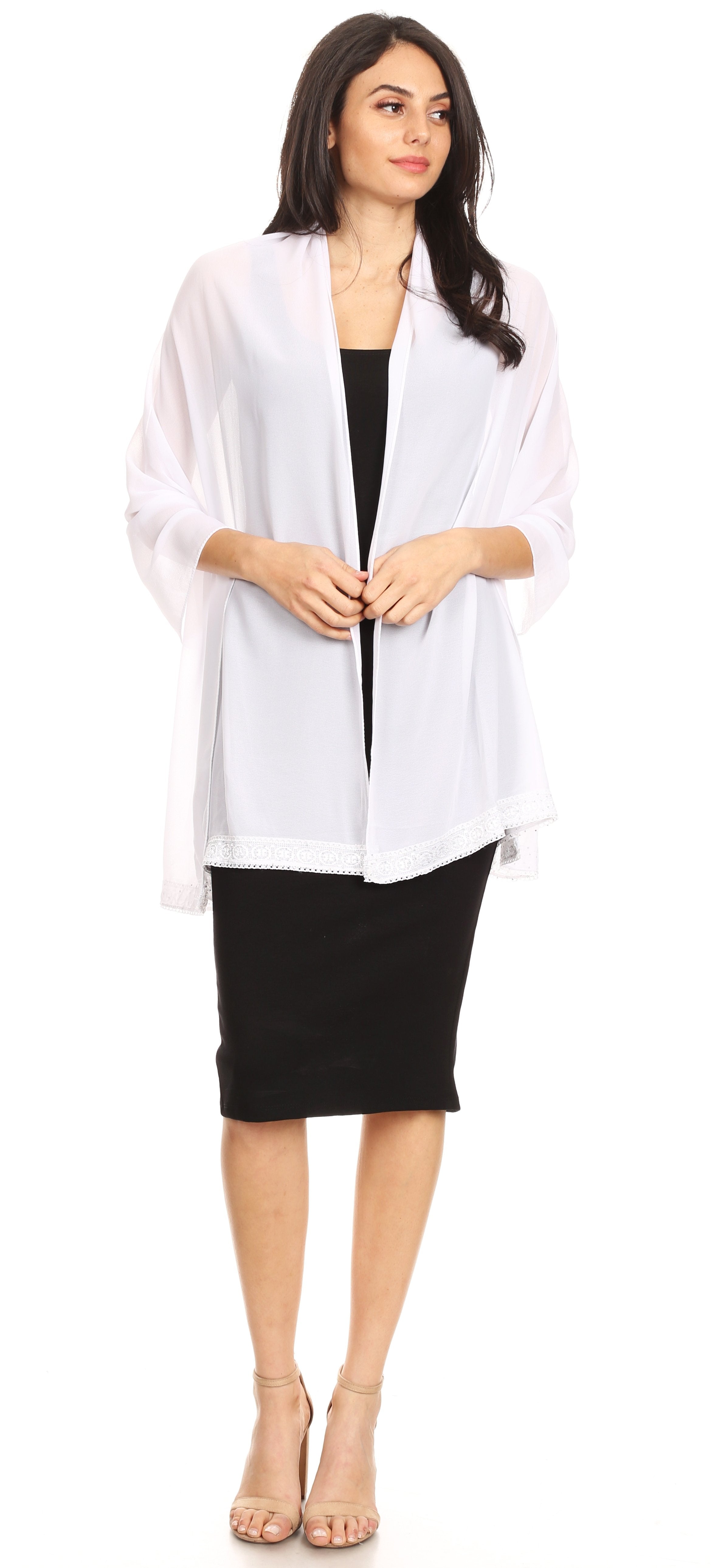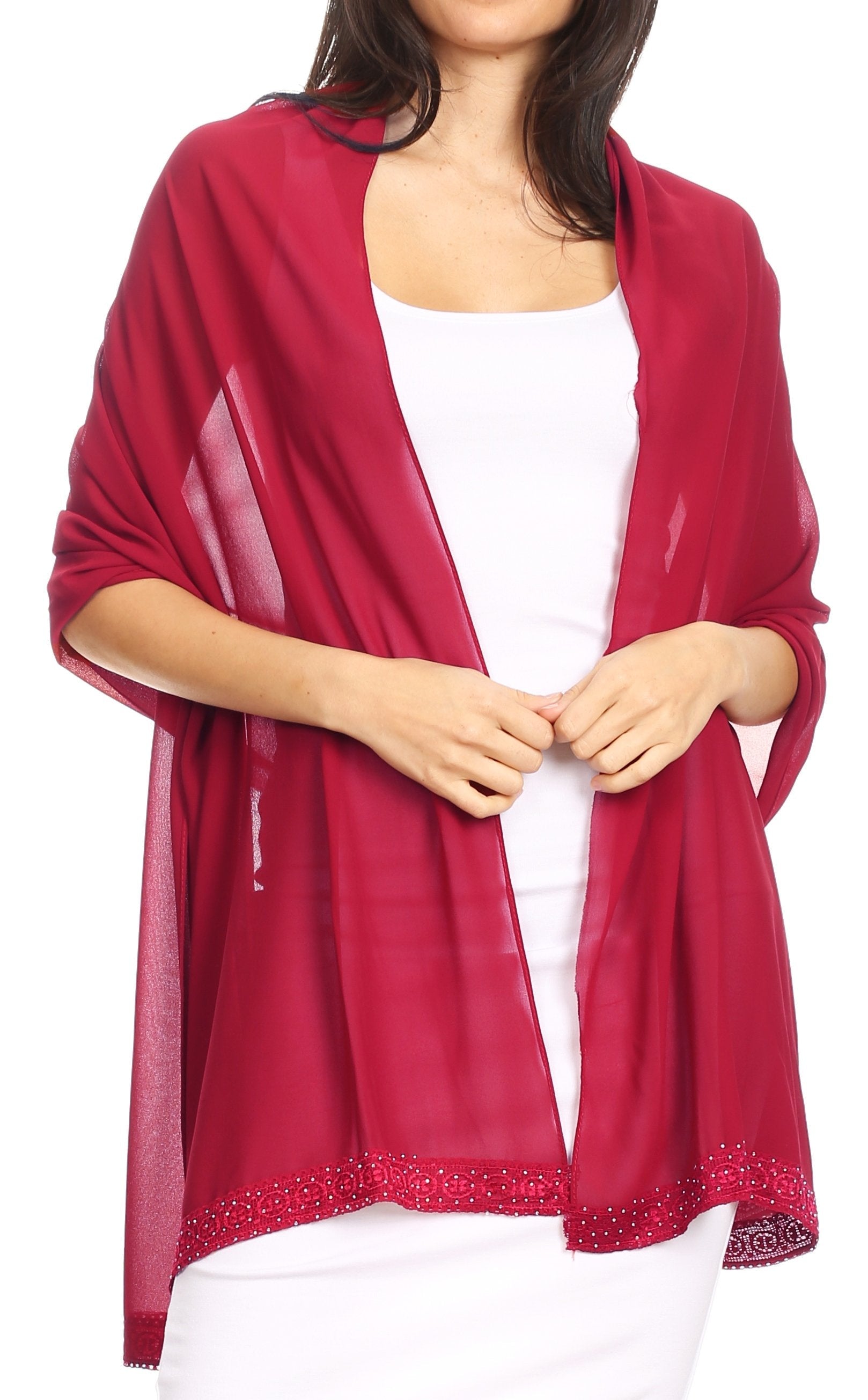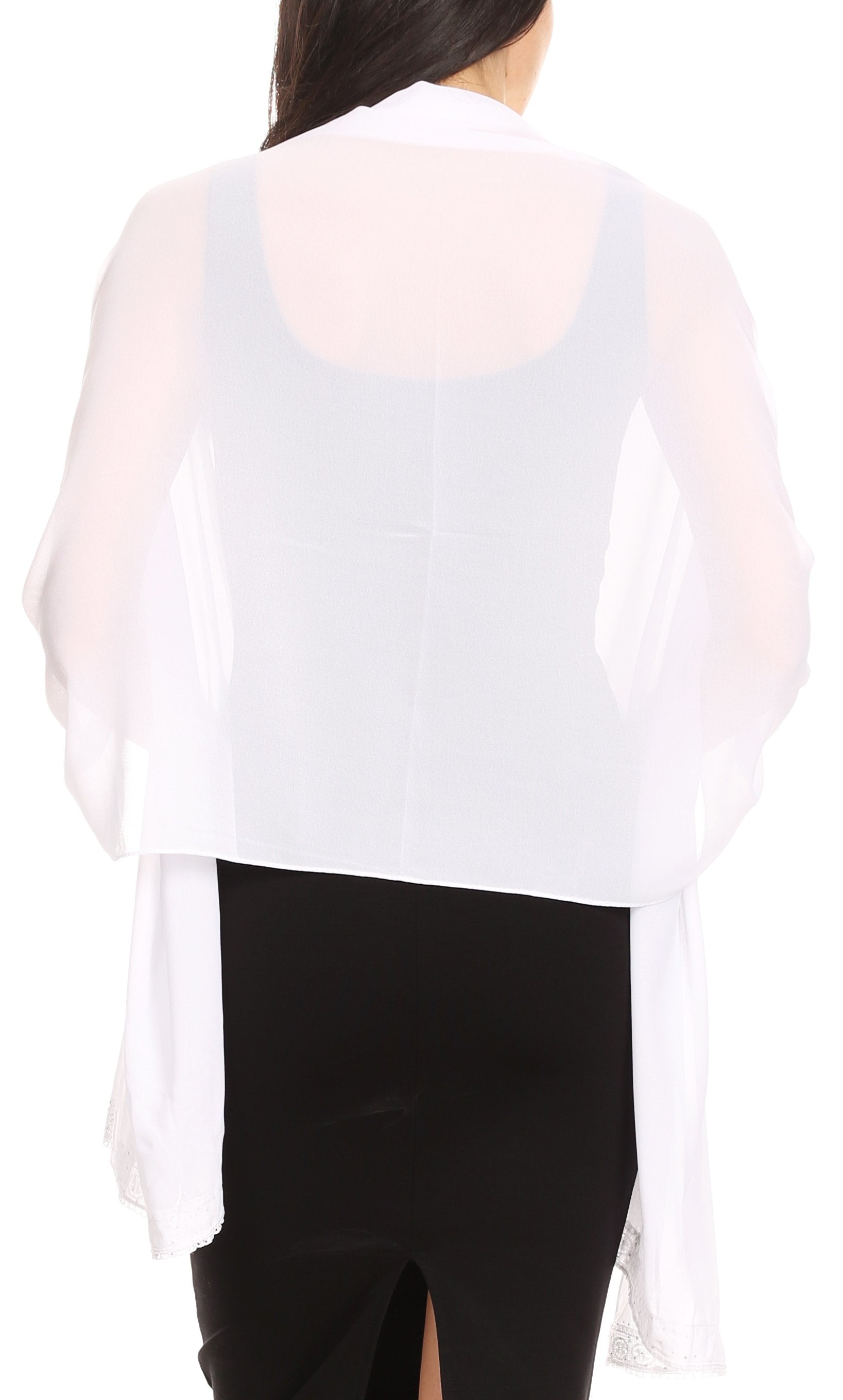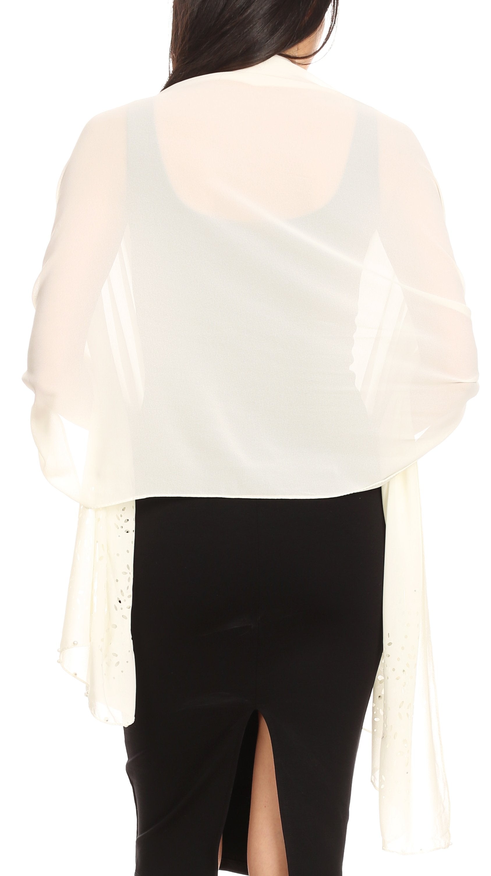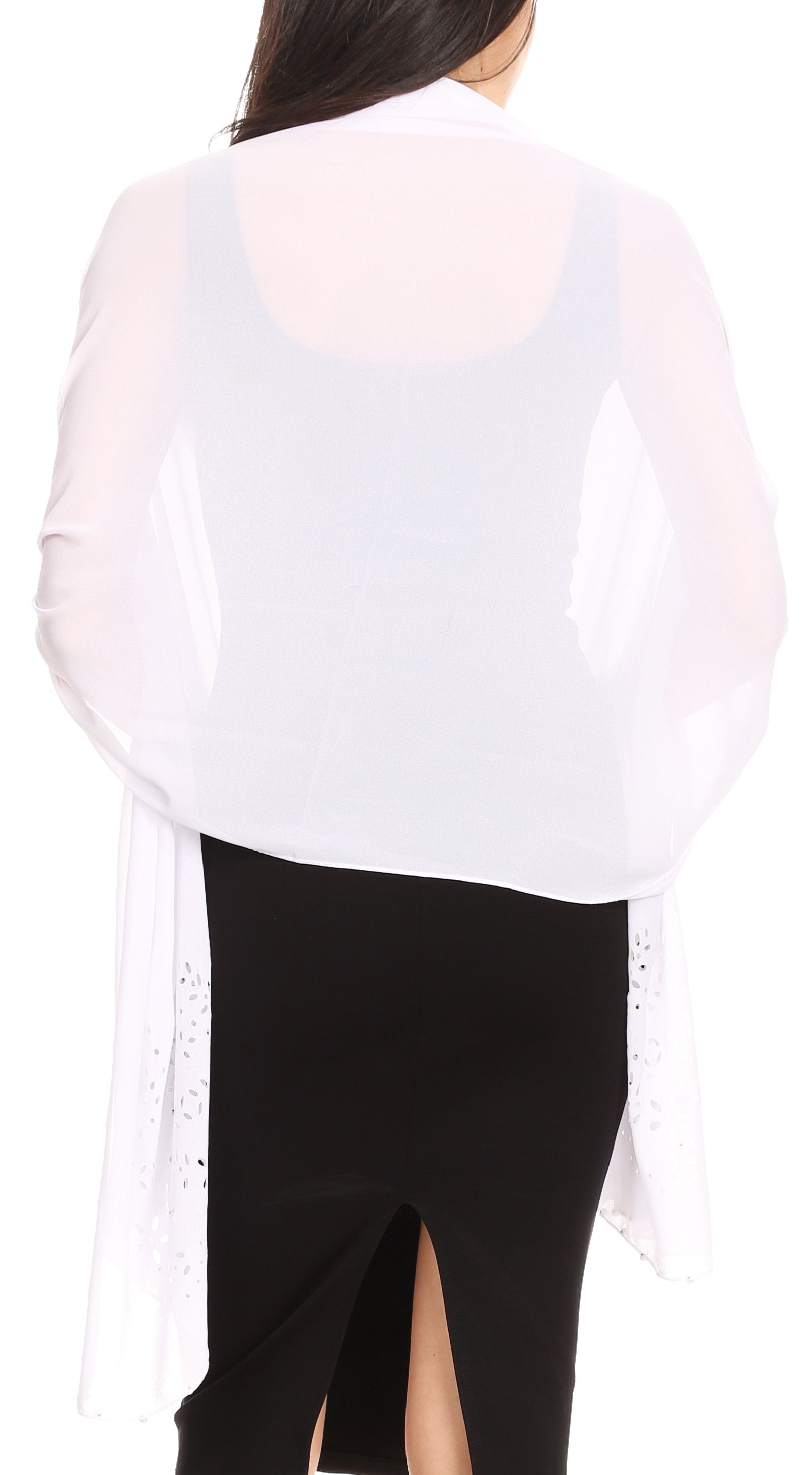 Sakkas Naomi Women Soft Sheer Embellished Chiffon Bridal Wedding Scarf Shawl Wrap