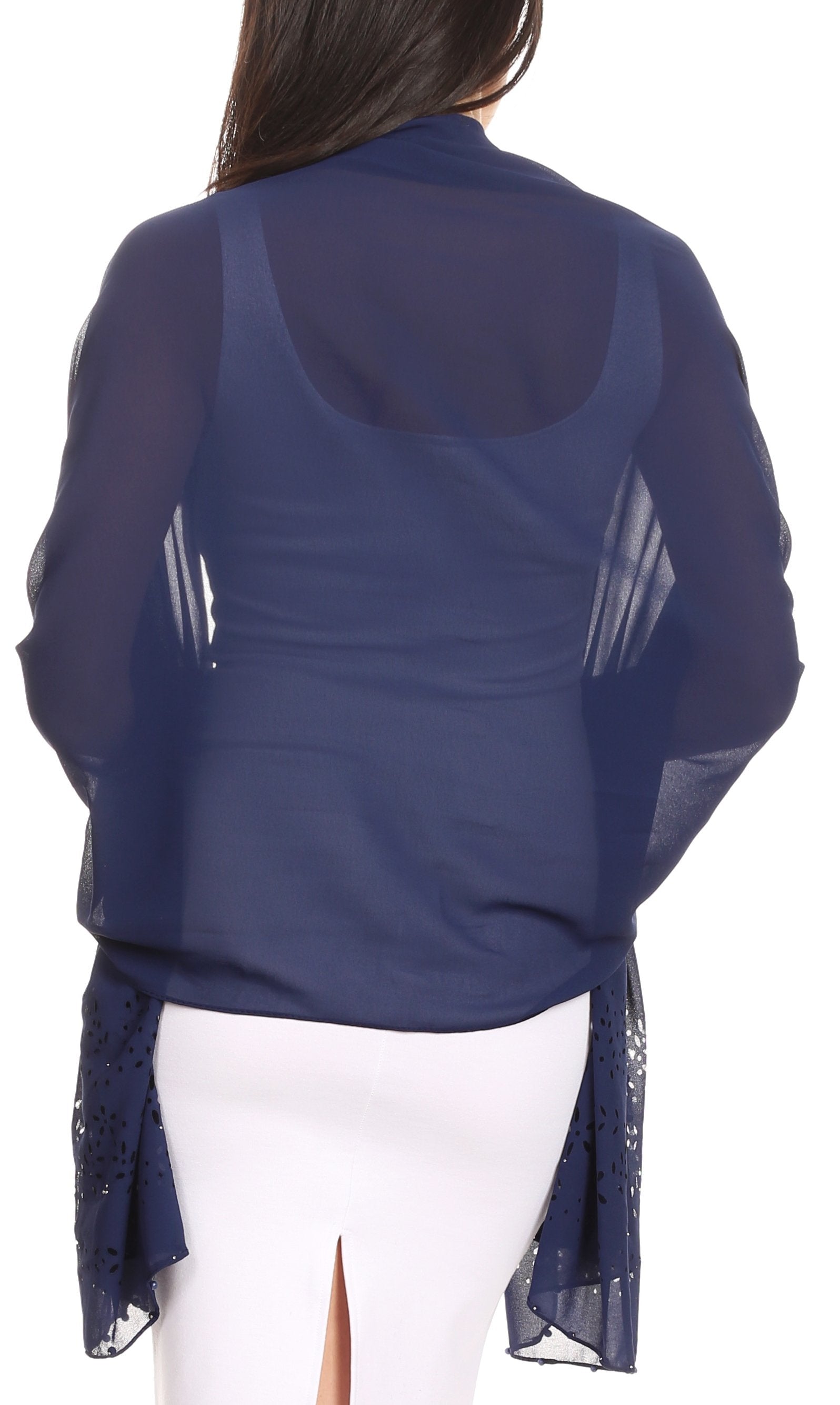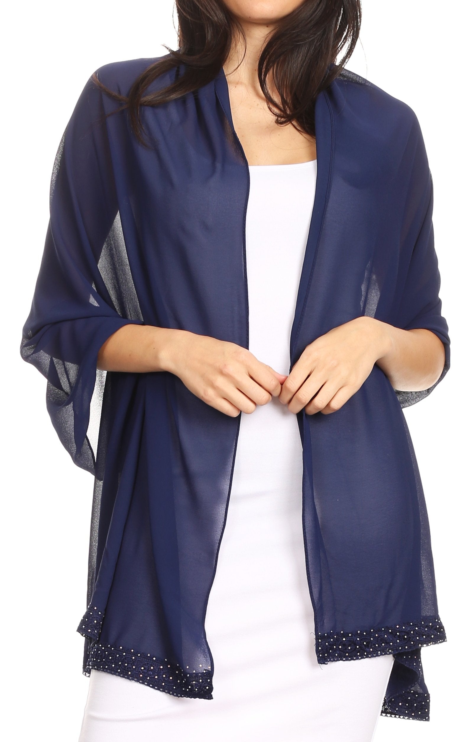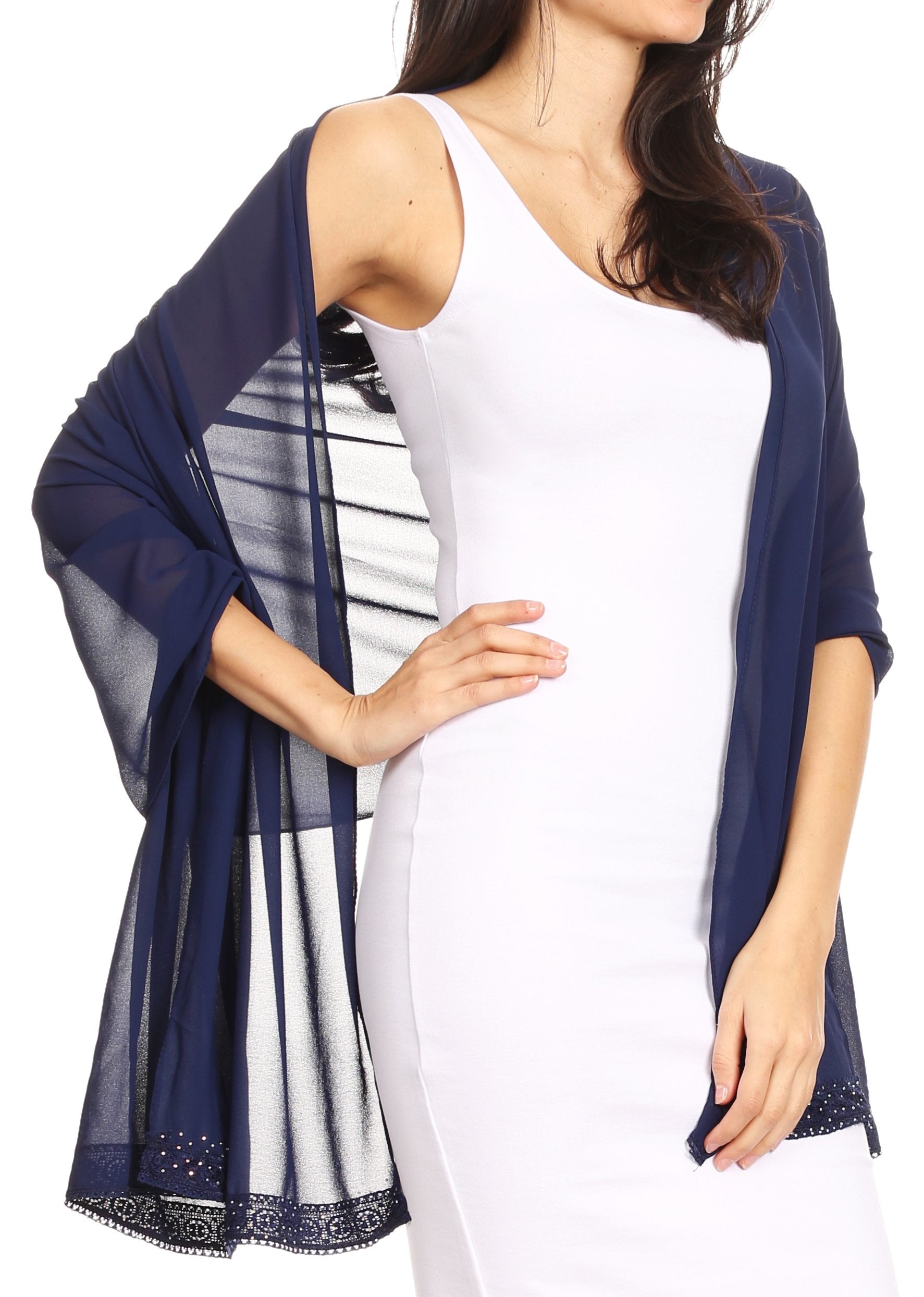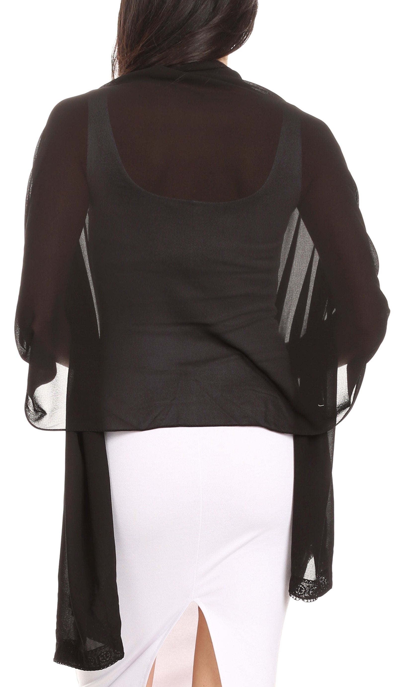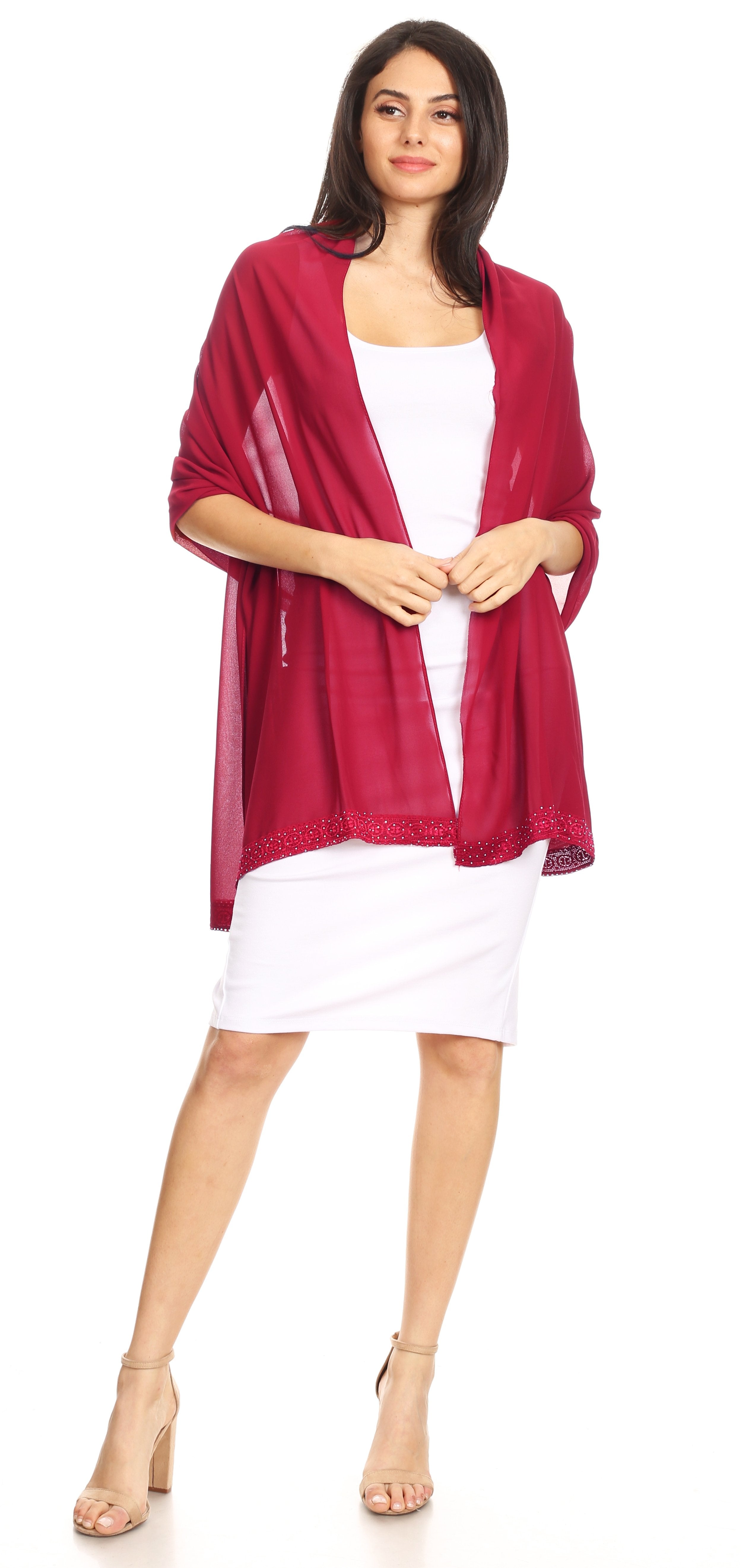 Sakkas Naomi Women Soft Sheer Embellished Chiffon Bridal Wedding Scarf Shawl Wrap