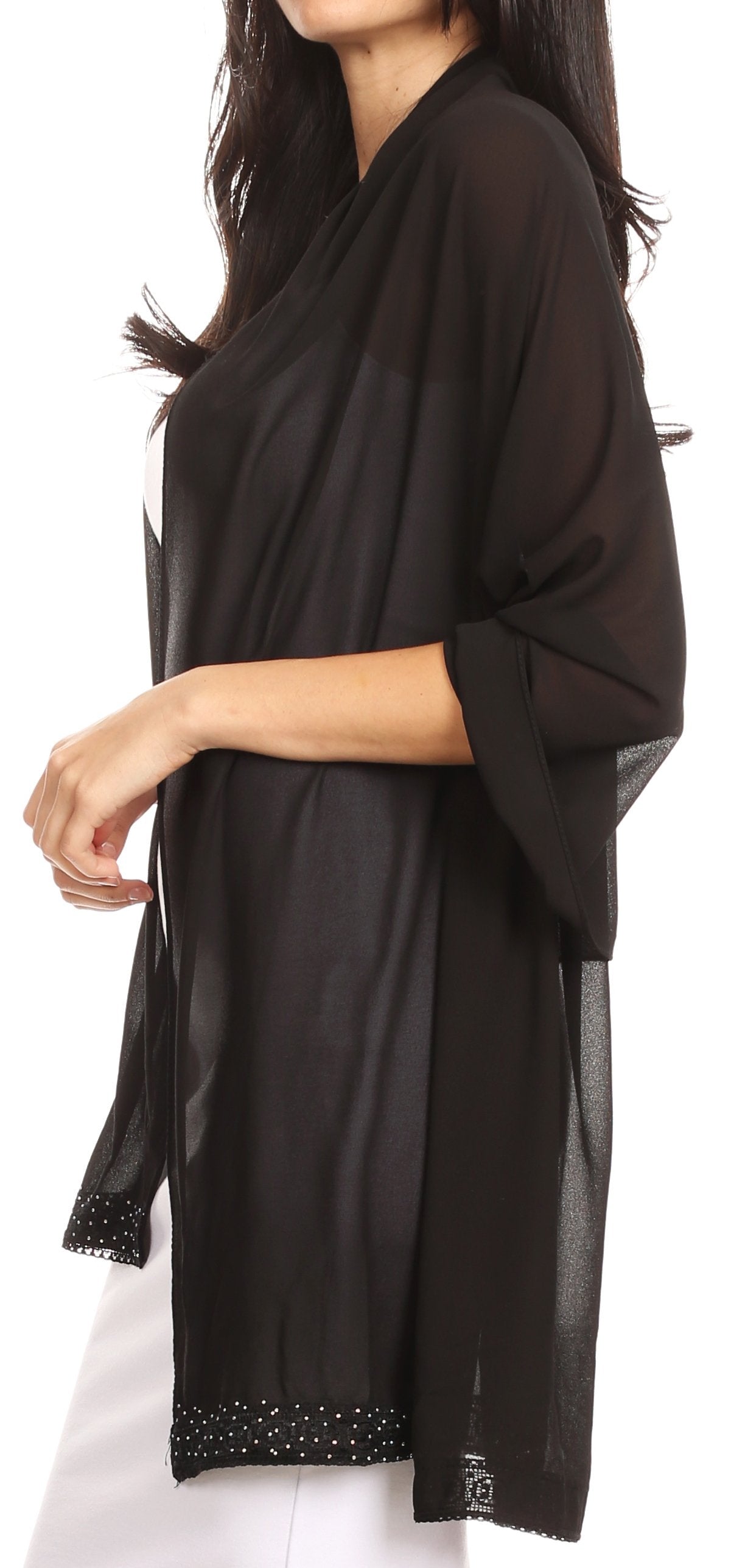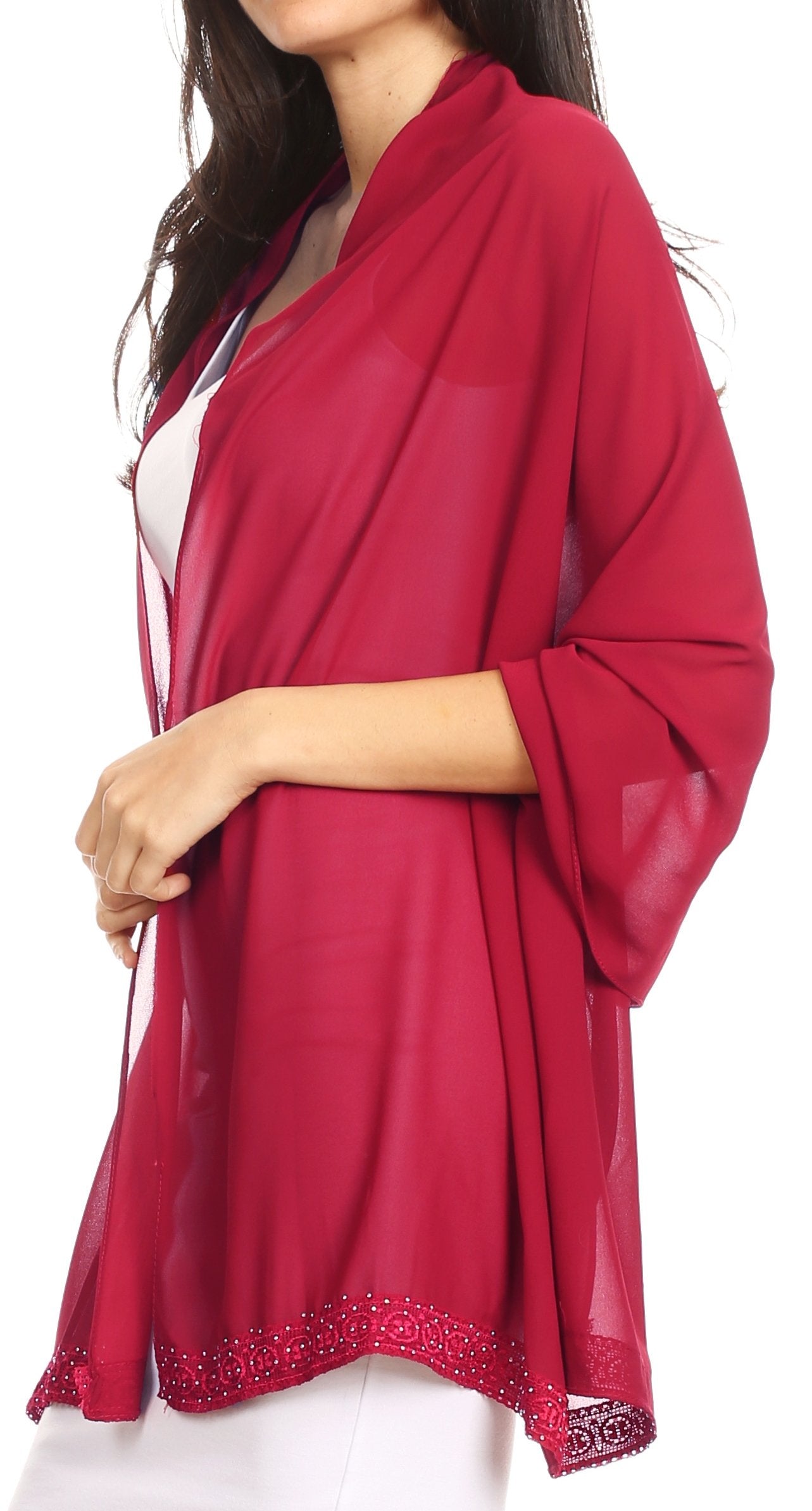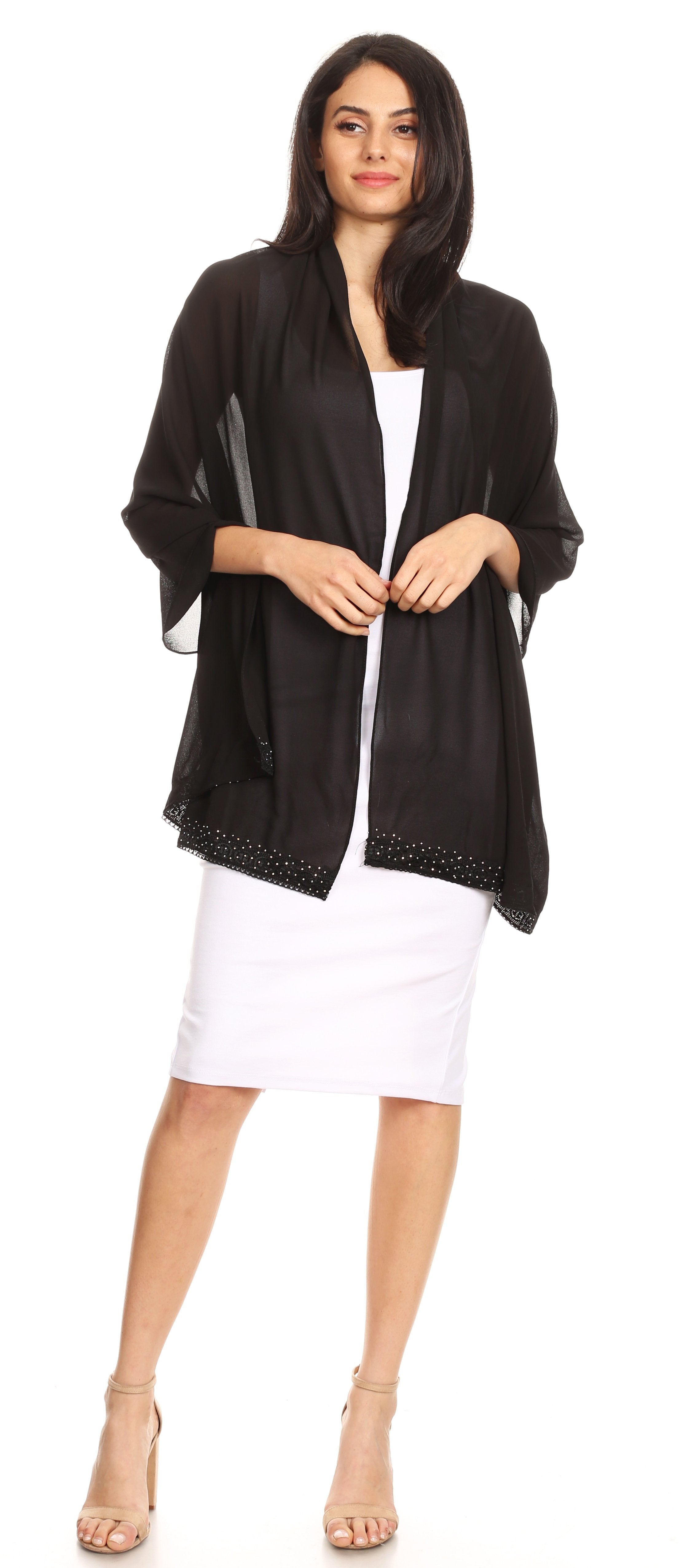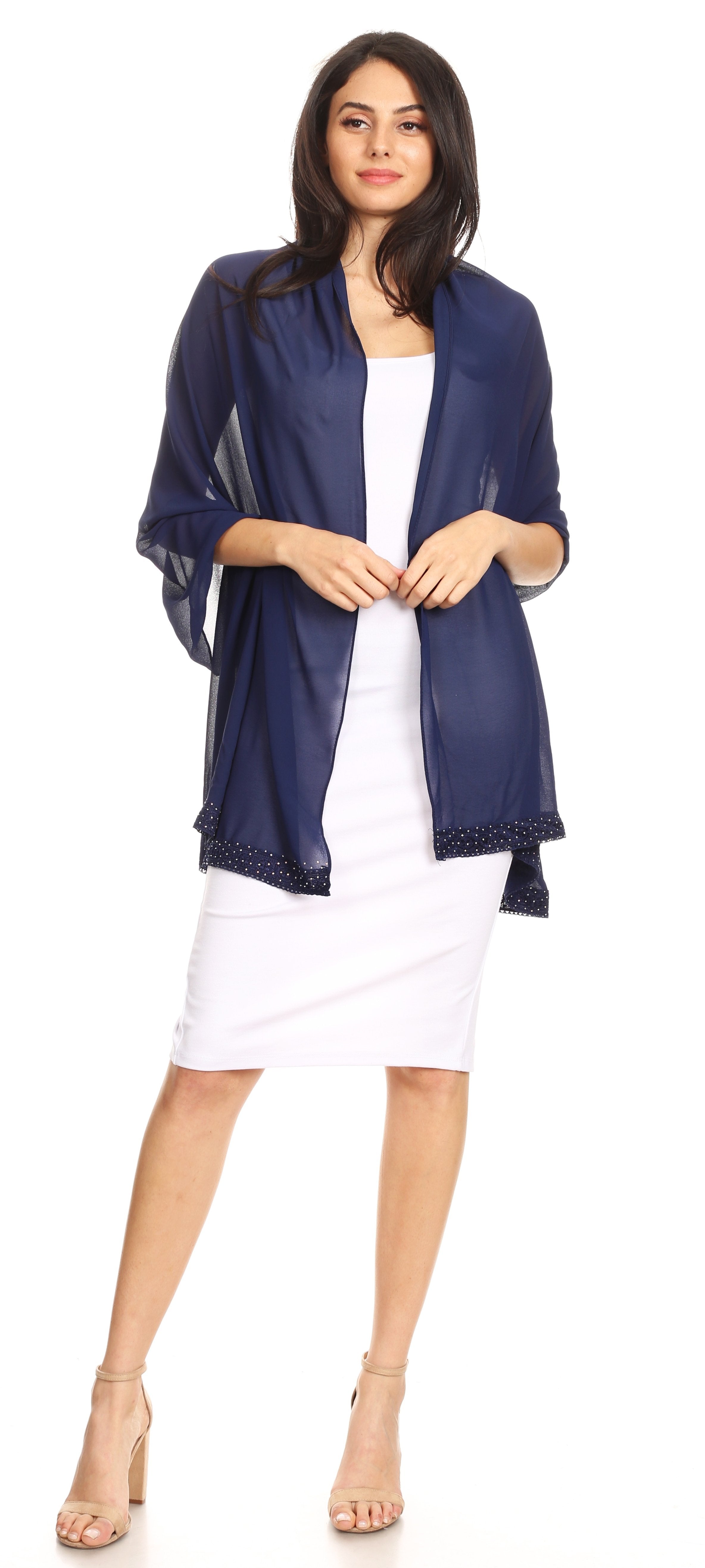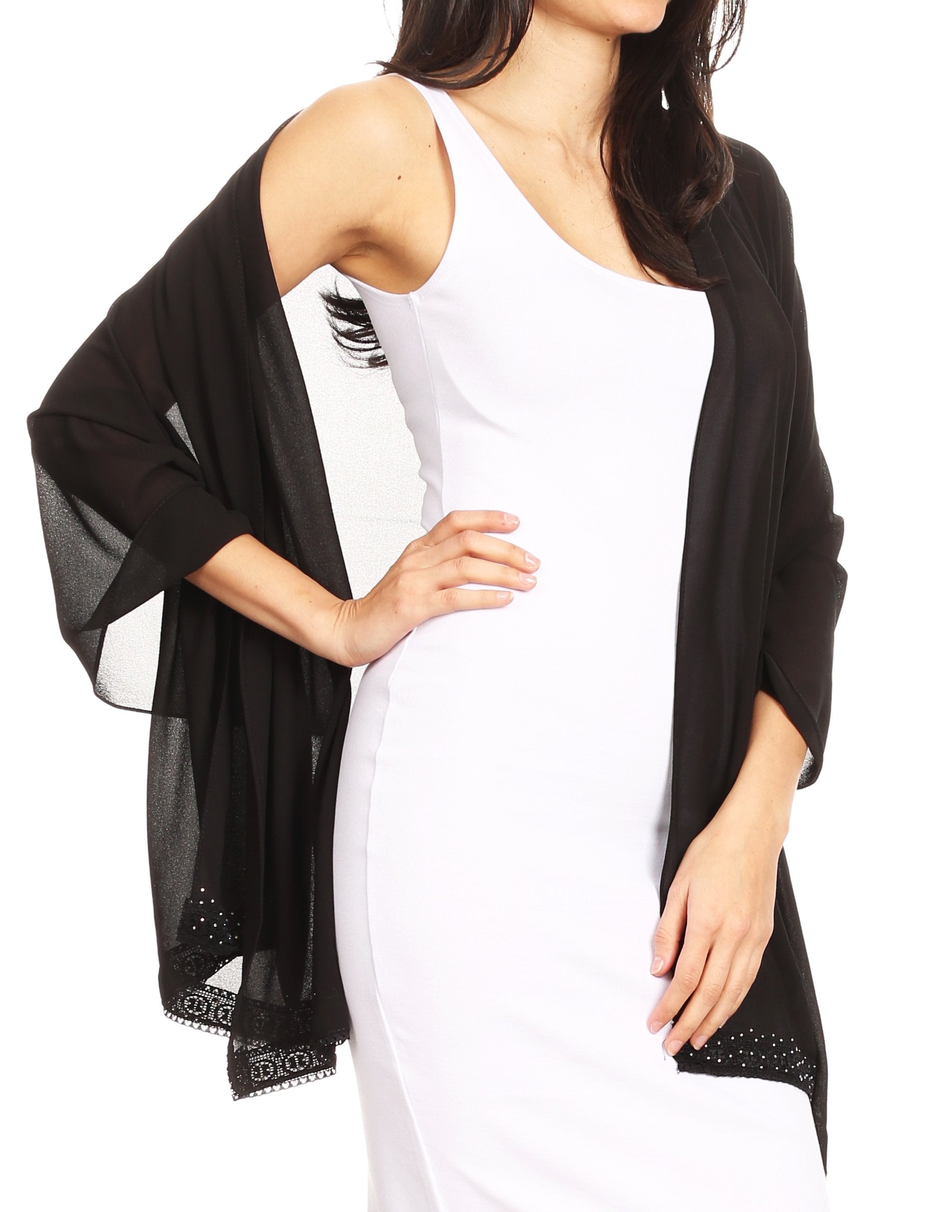 Sakkas Naomi Women Soft Sheer Embellished Chiffon Bridal Wedding Scarf Shawl Wrap