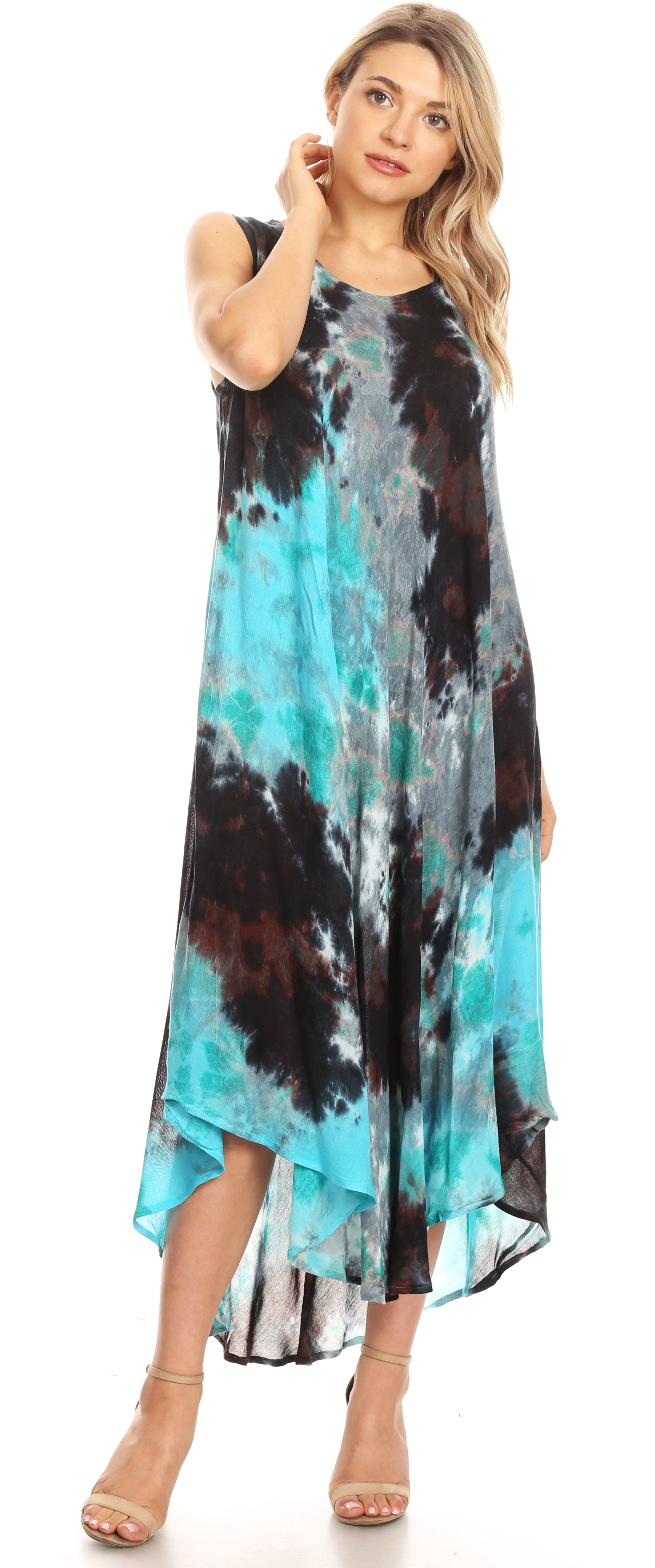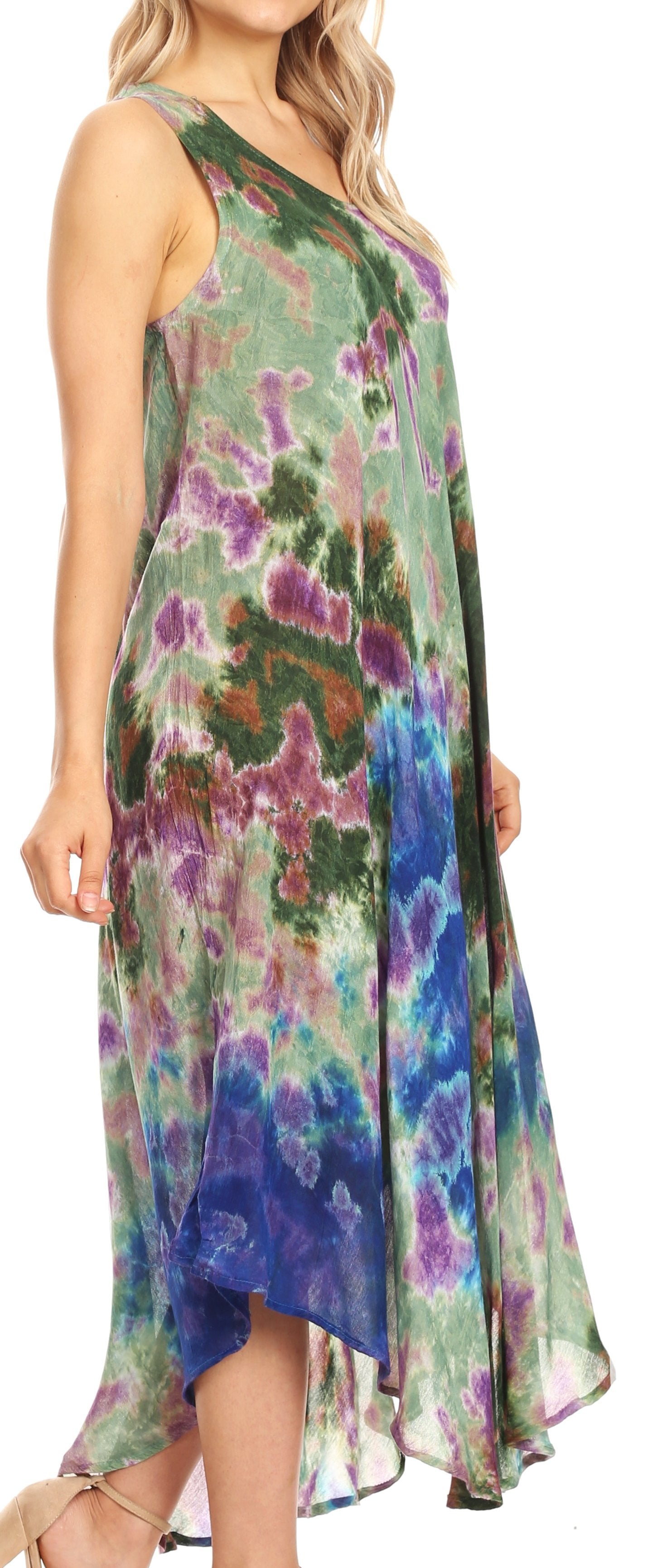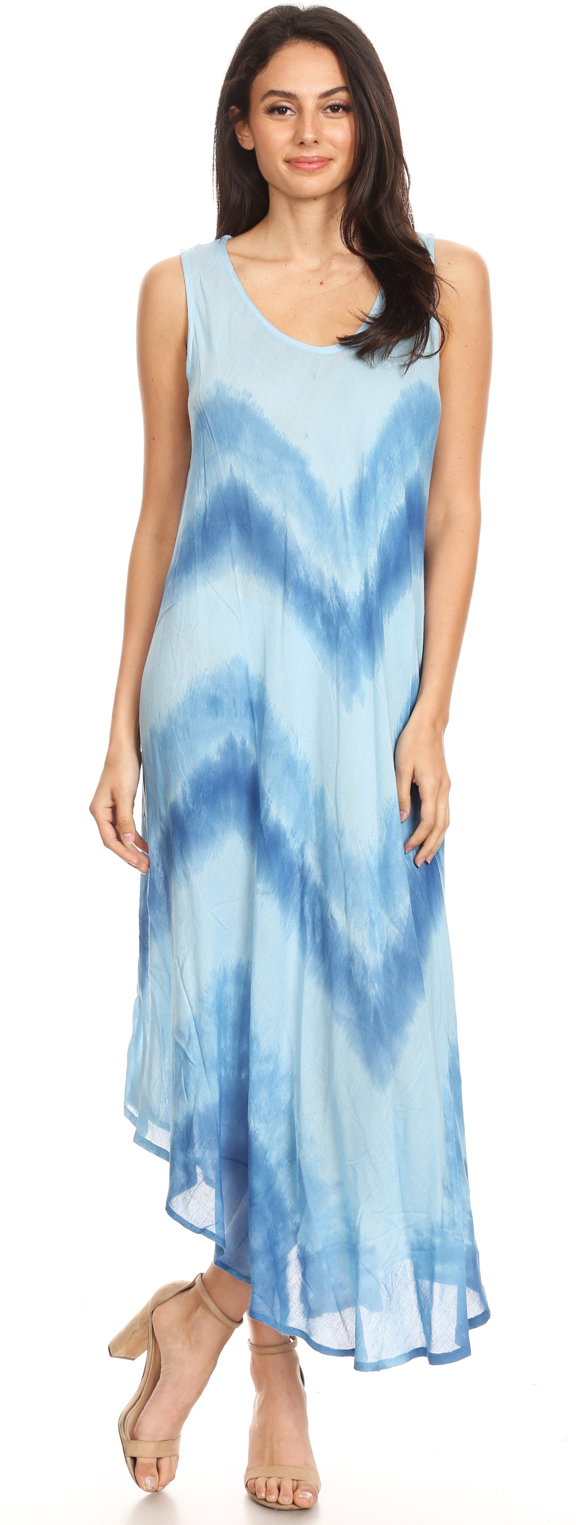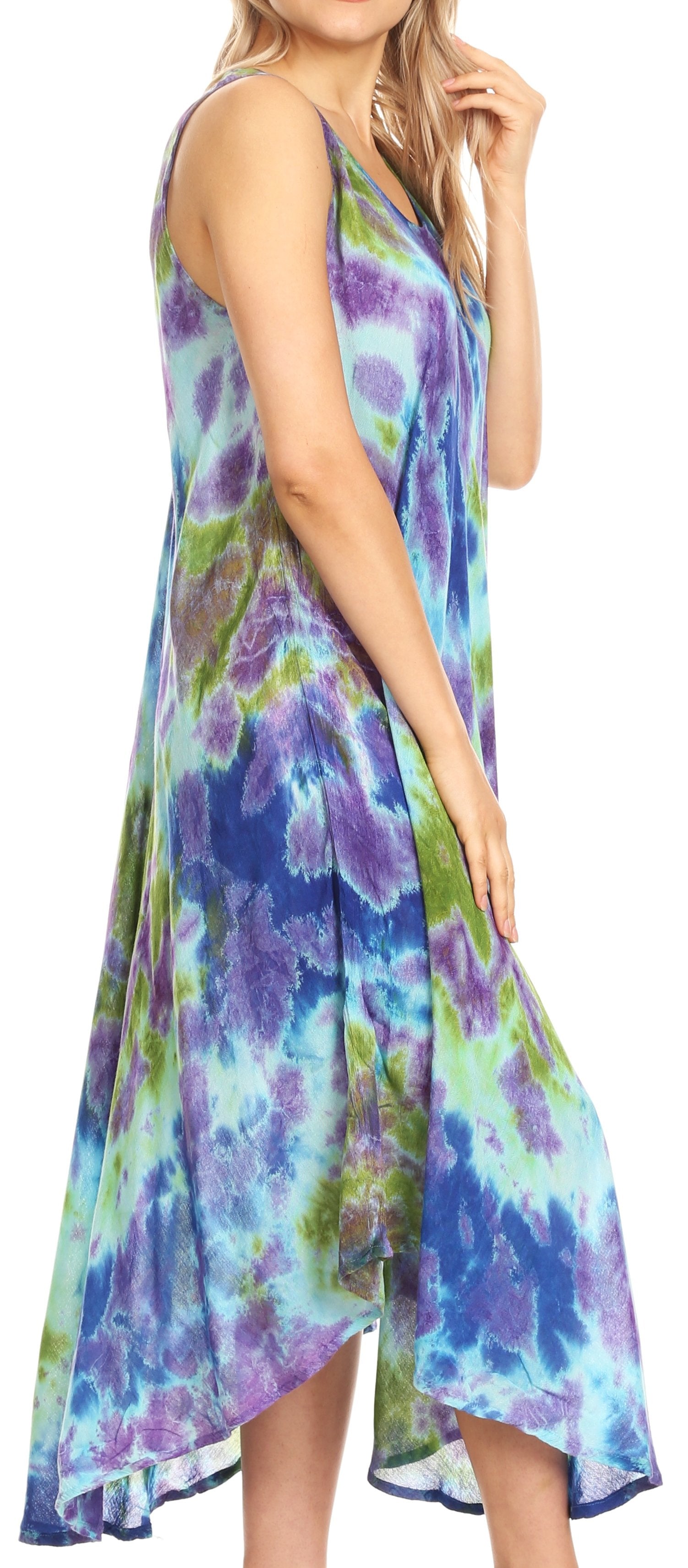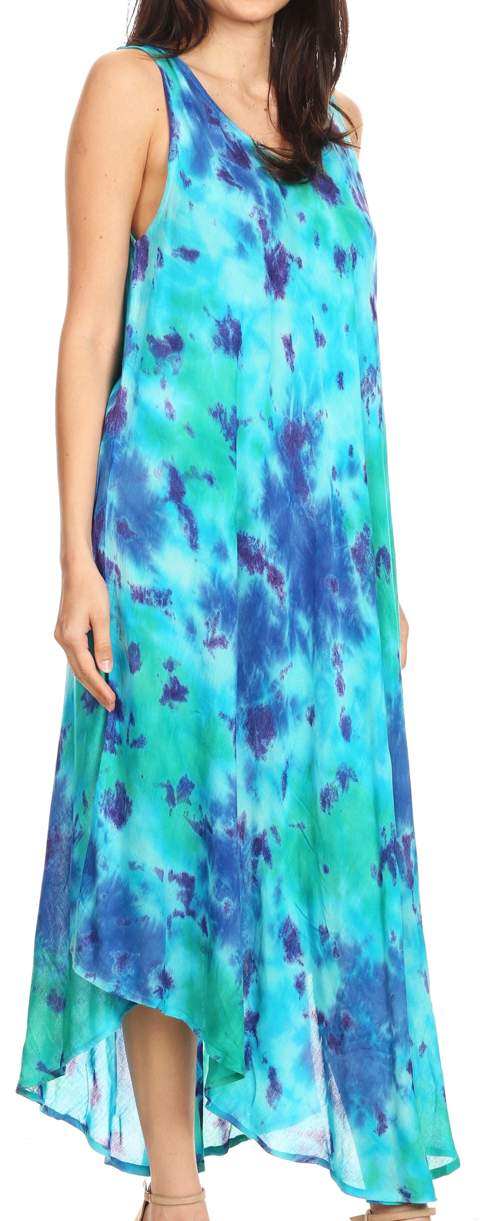 Sakkas Neja Women's Casual Maxi Summer Sleeveless Loose Fit Tie Dye Tank Dress