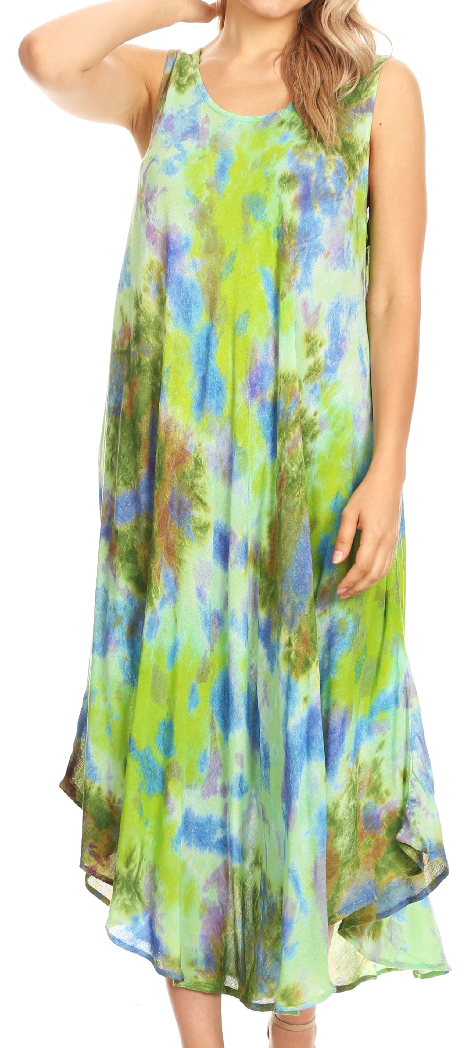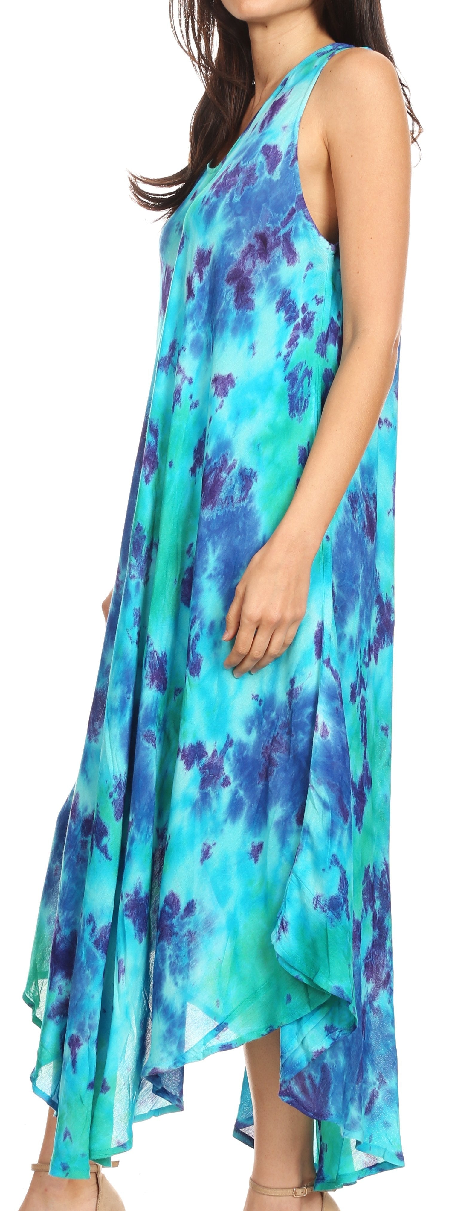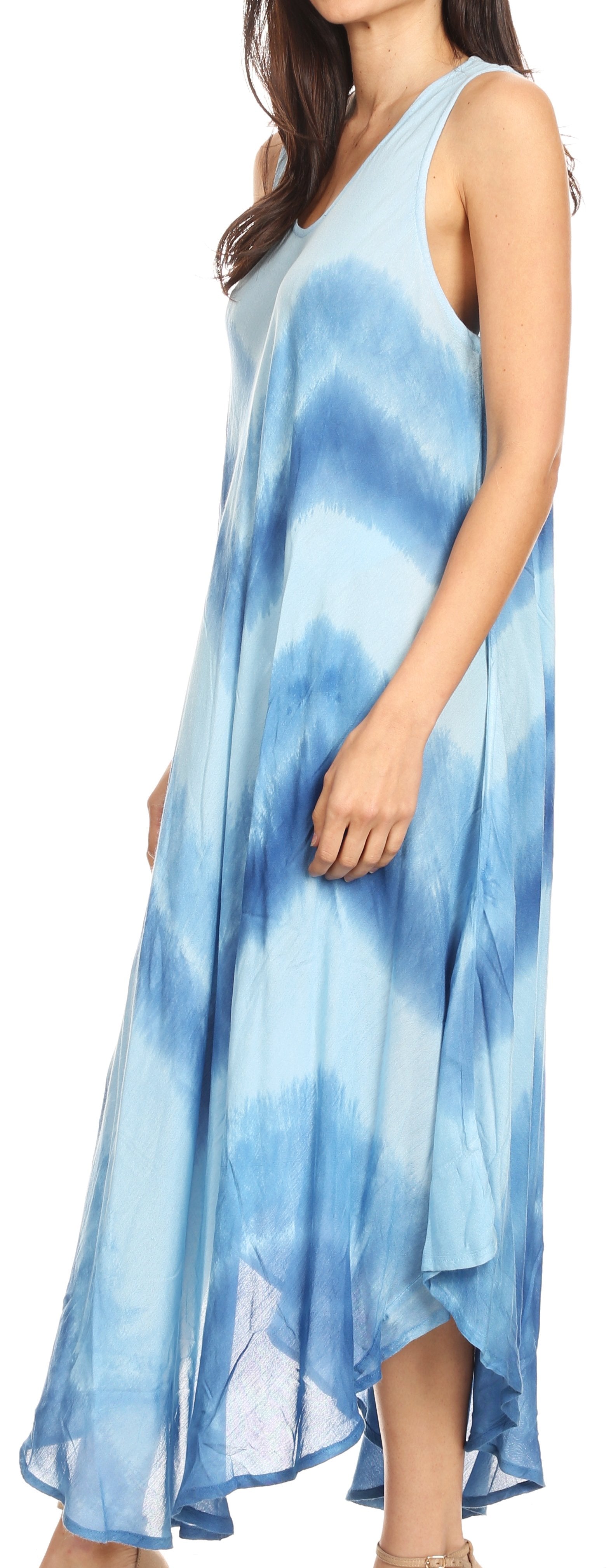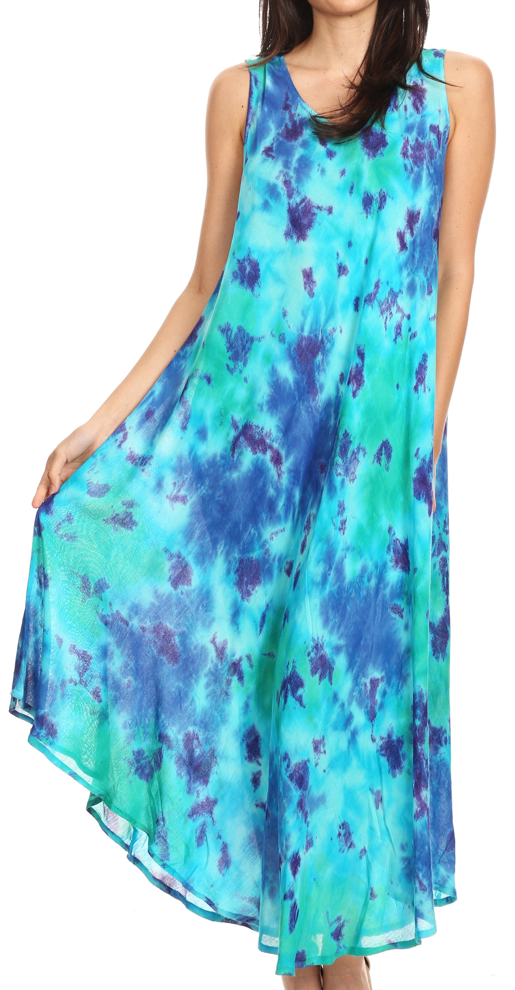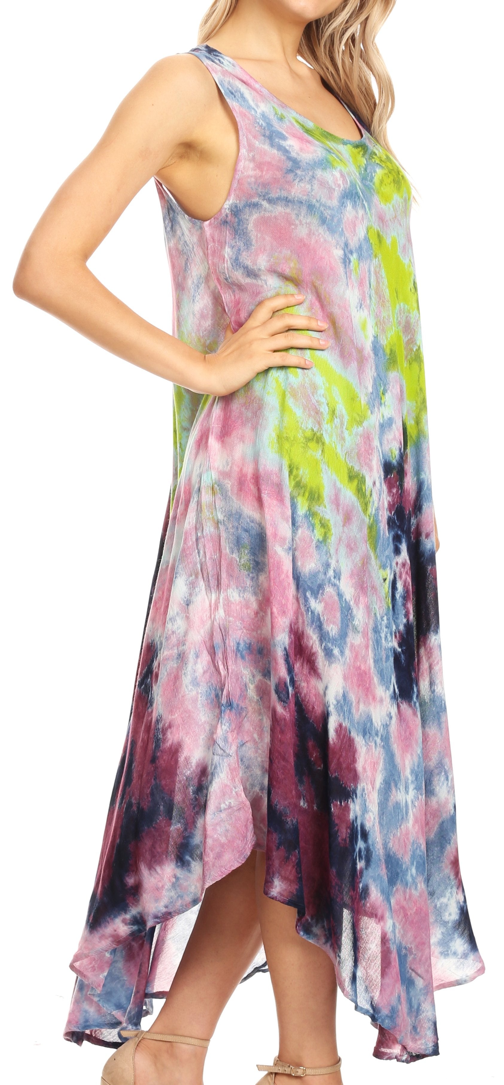 Sakkas Neja Women's Casual Maxi Summer Sleeveless Loose Fit Tie Dye Tank Dress