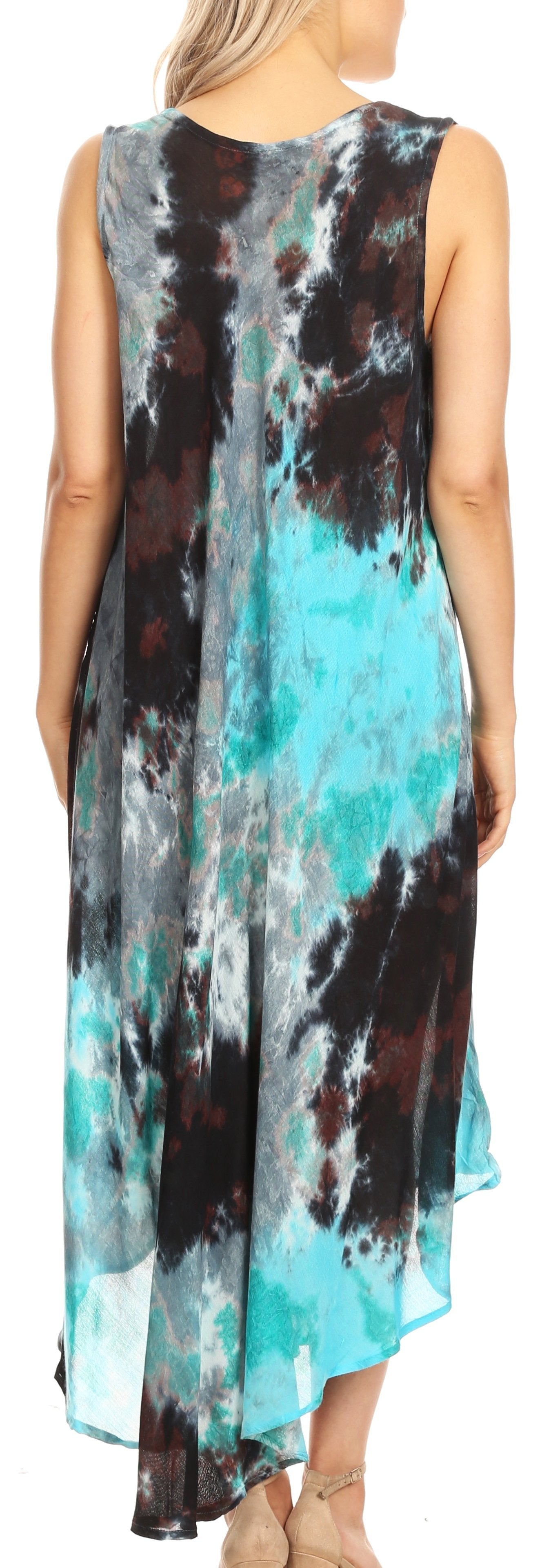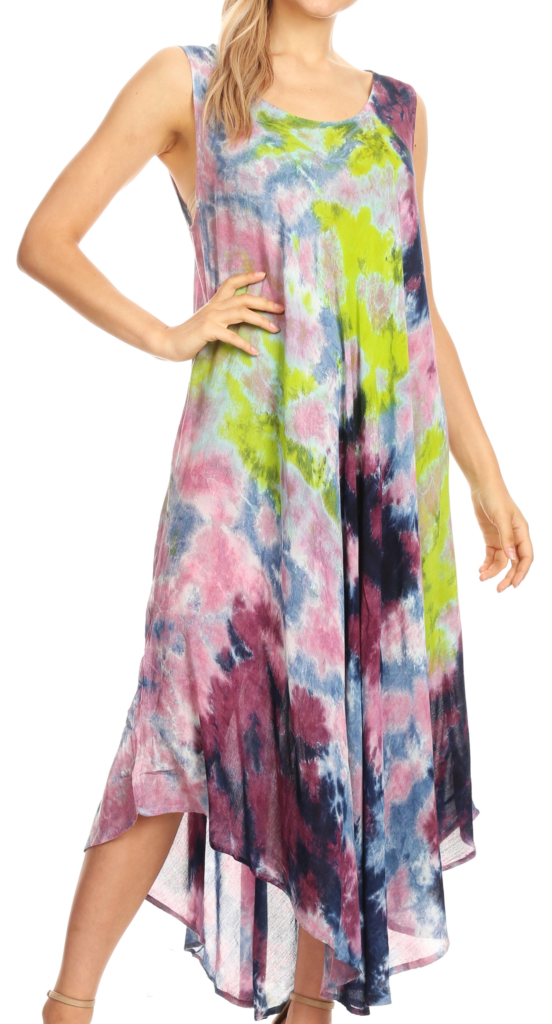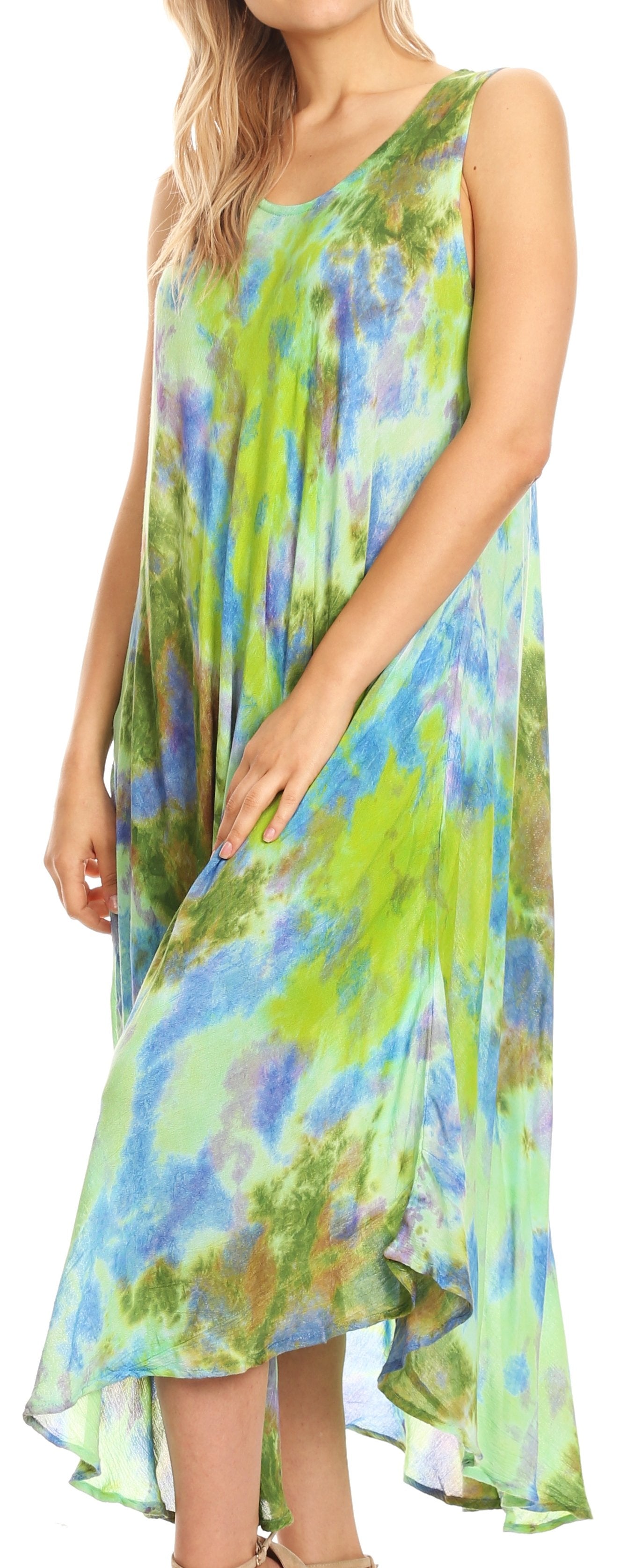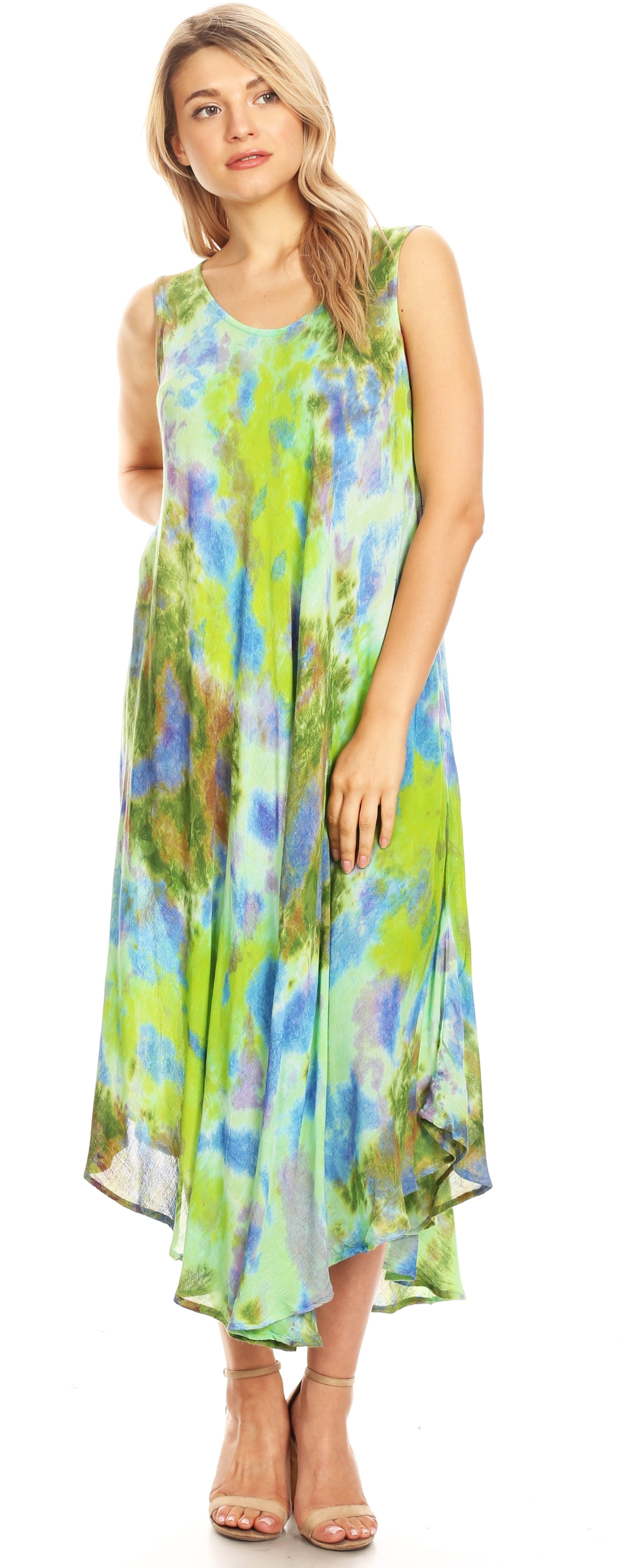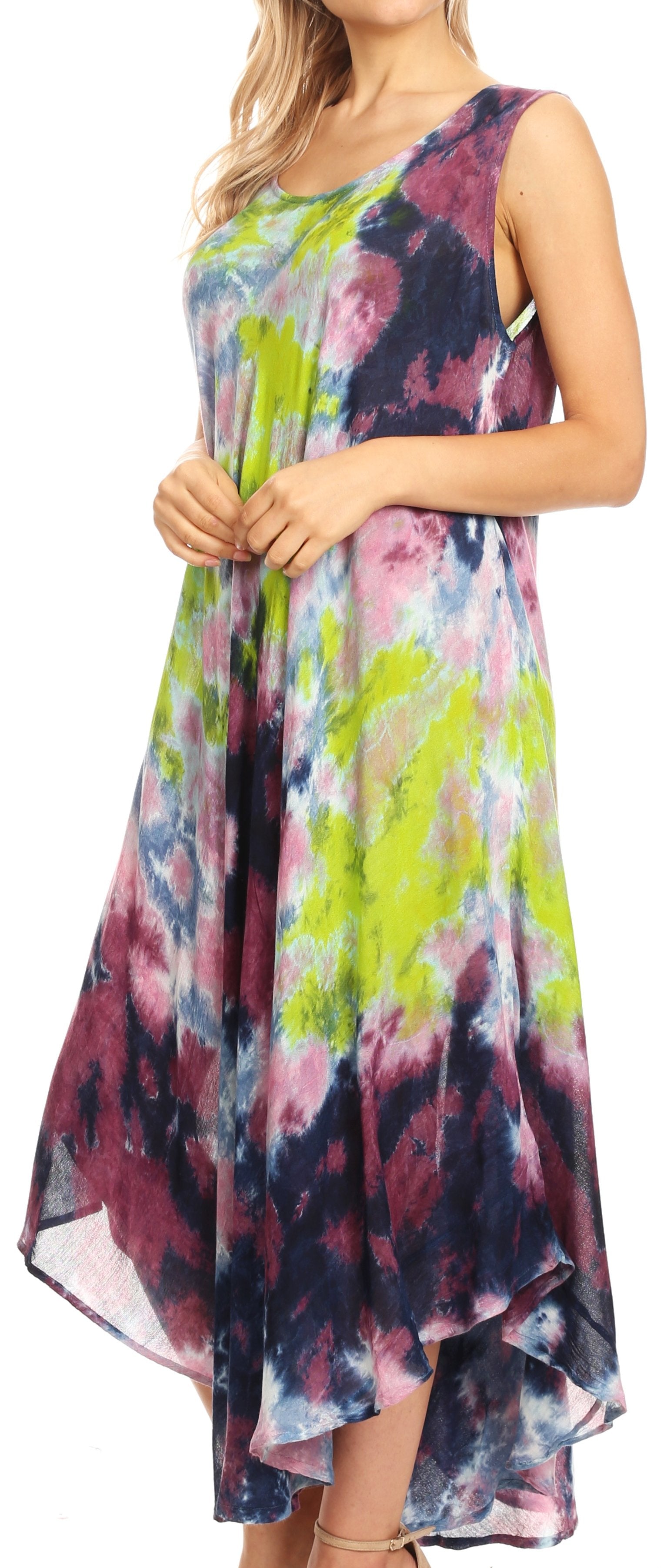 Sakkas Neja Women's Casual Maxi Summer Sleeveless Loose Fit Tie Dye Tank Dress