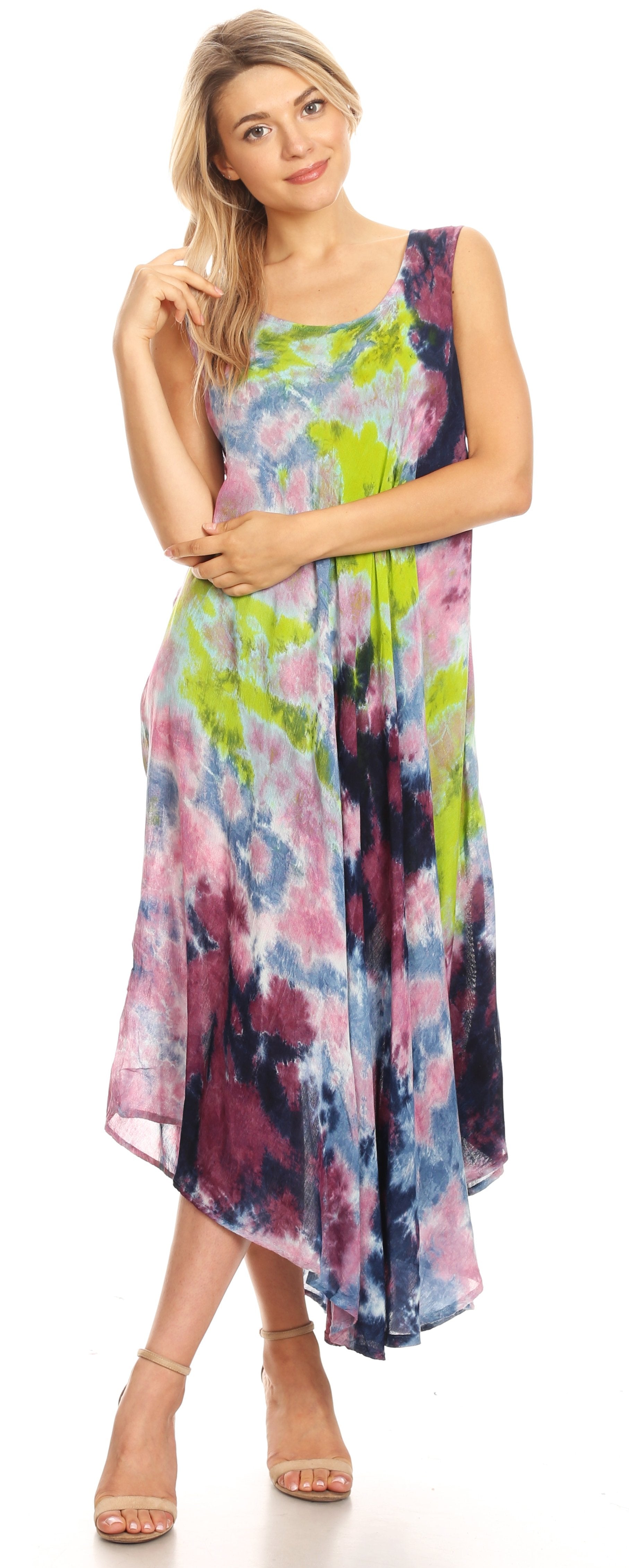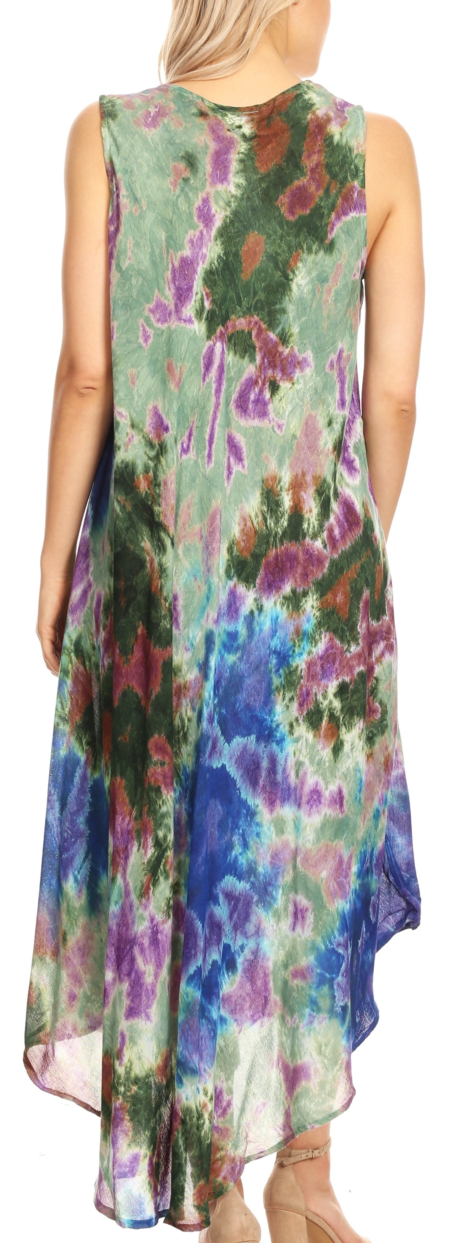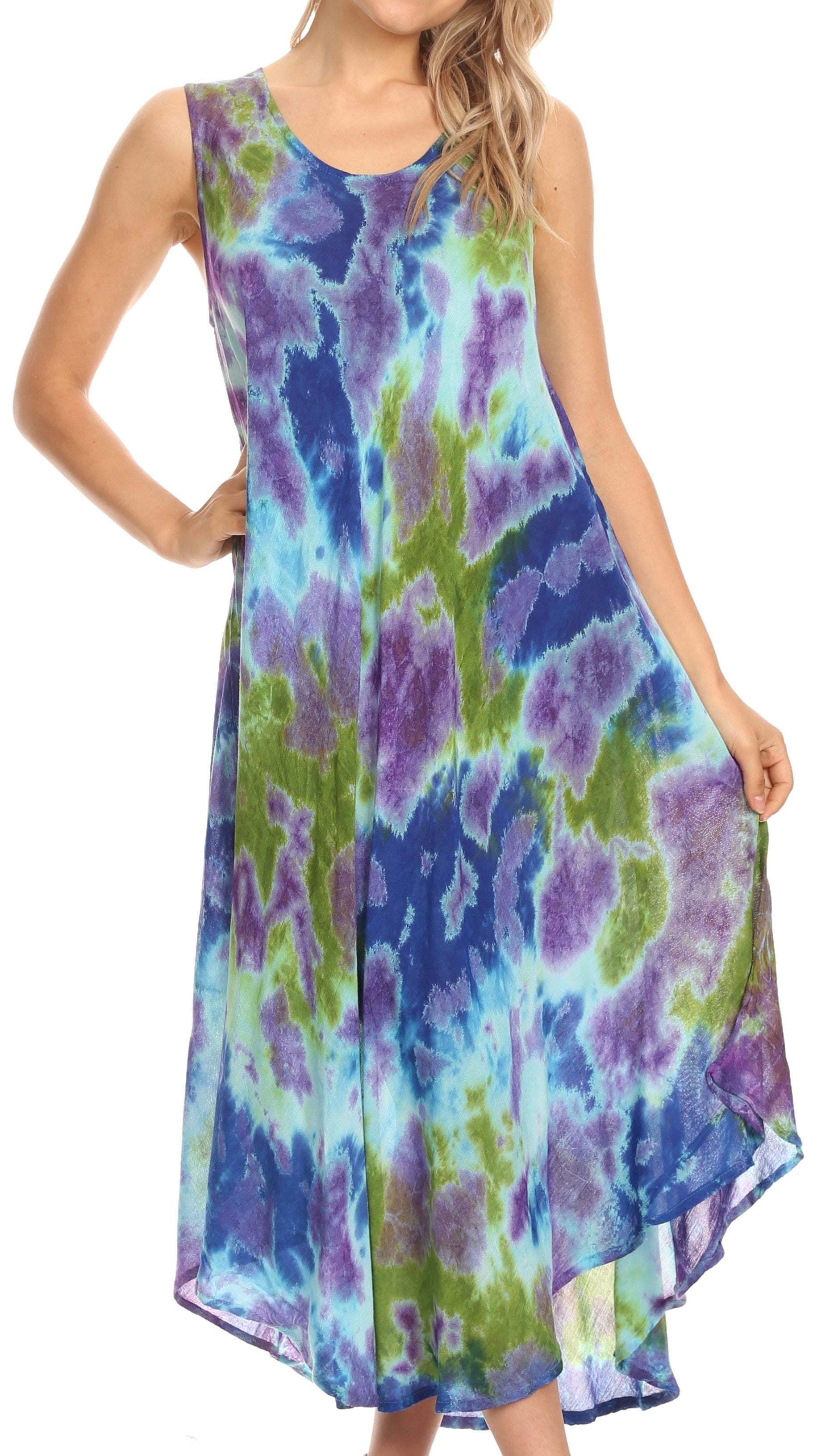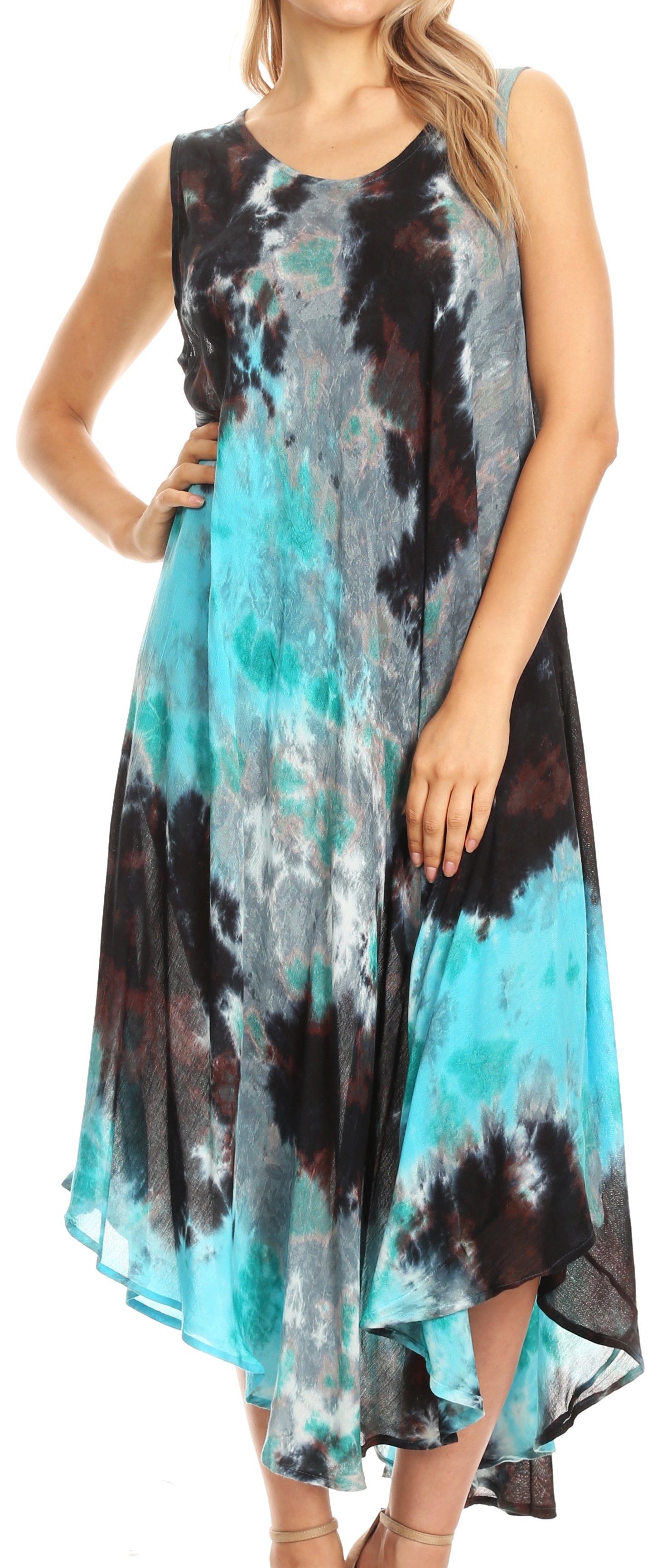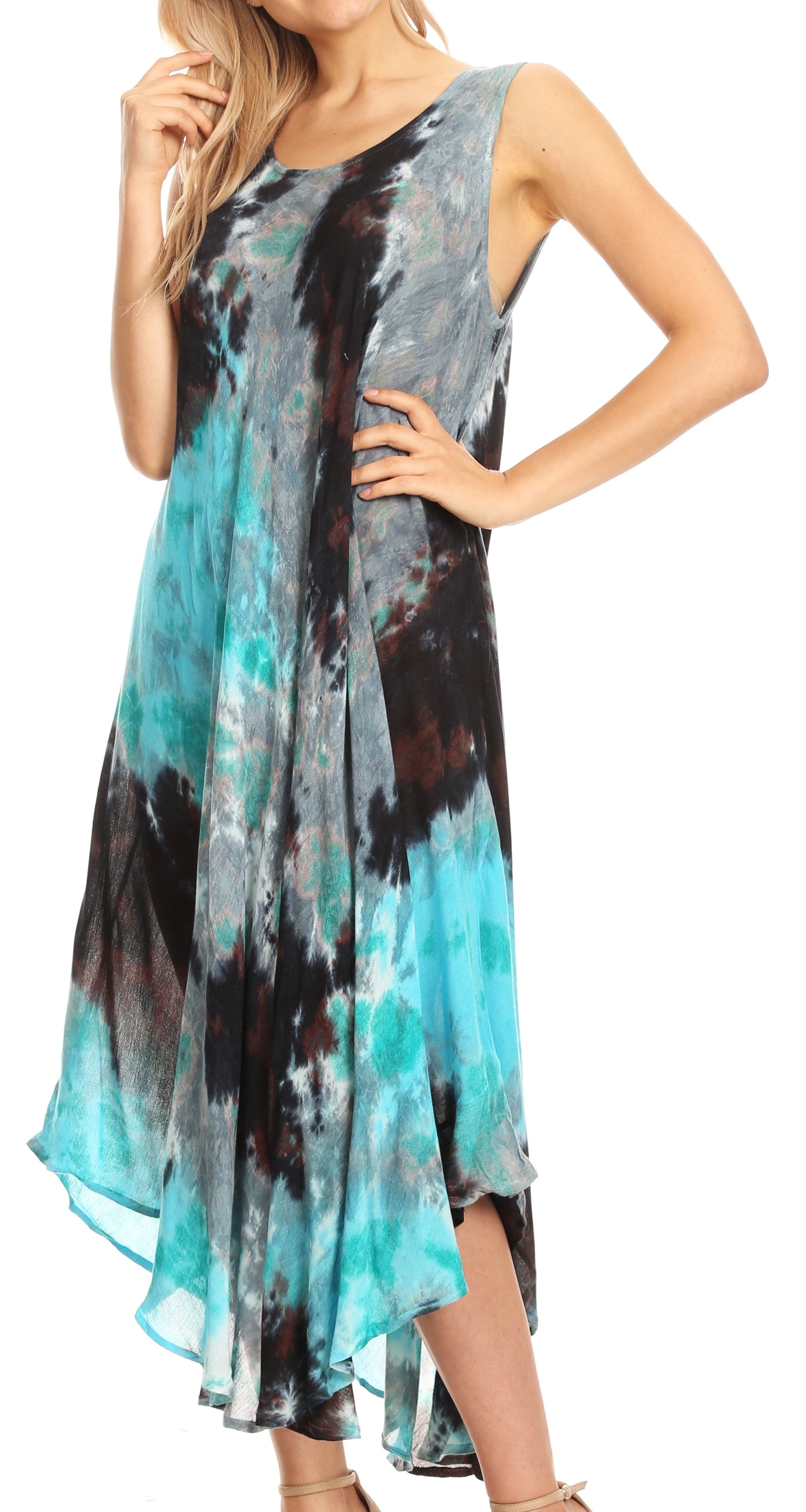 Sakkas Neja Women's Casual Maxi Summer Sleeveless Loose Fit Tie Dye Tank Dress