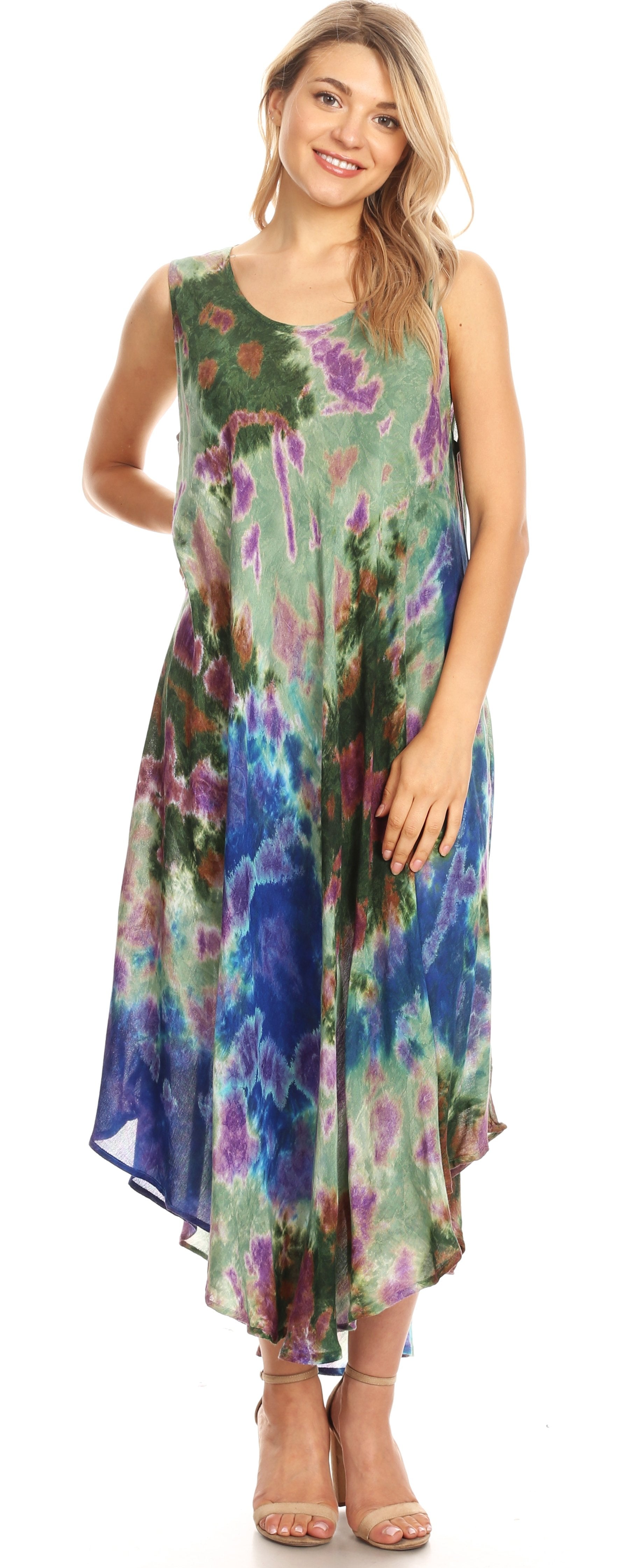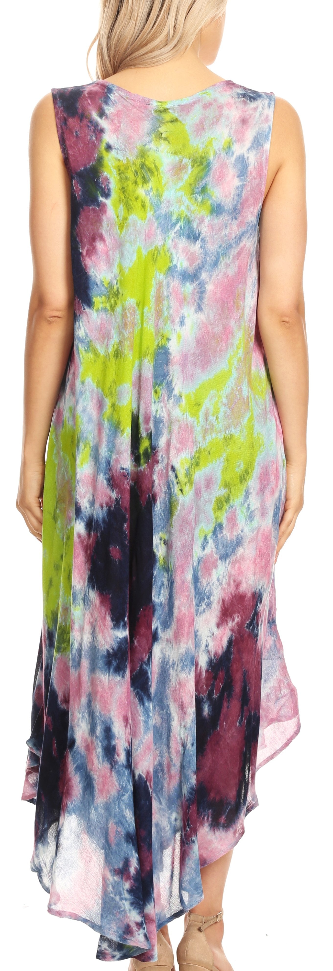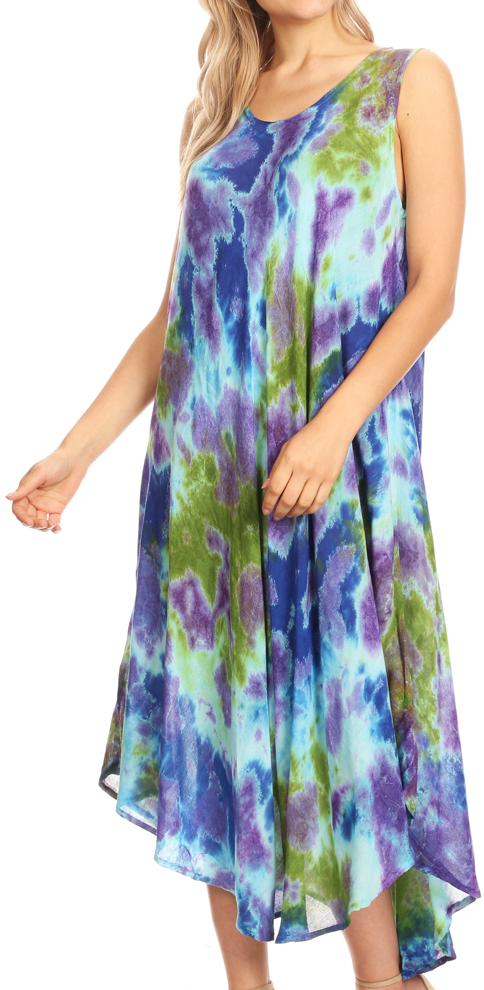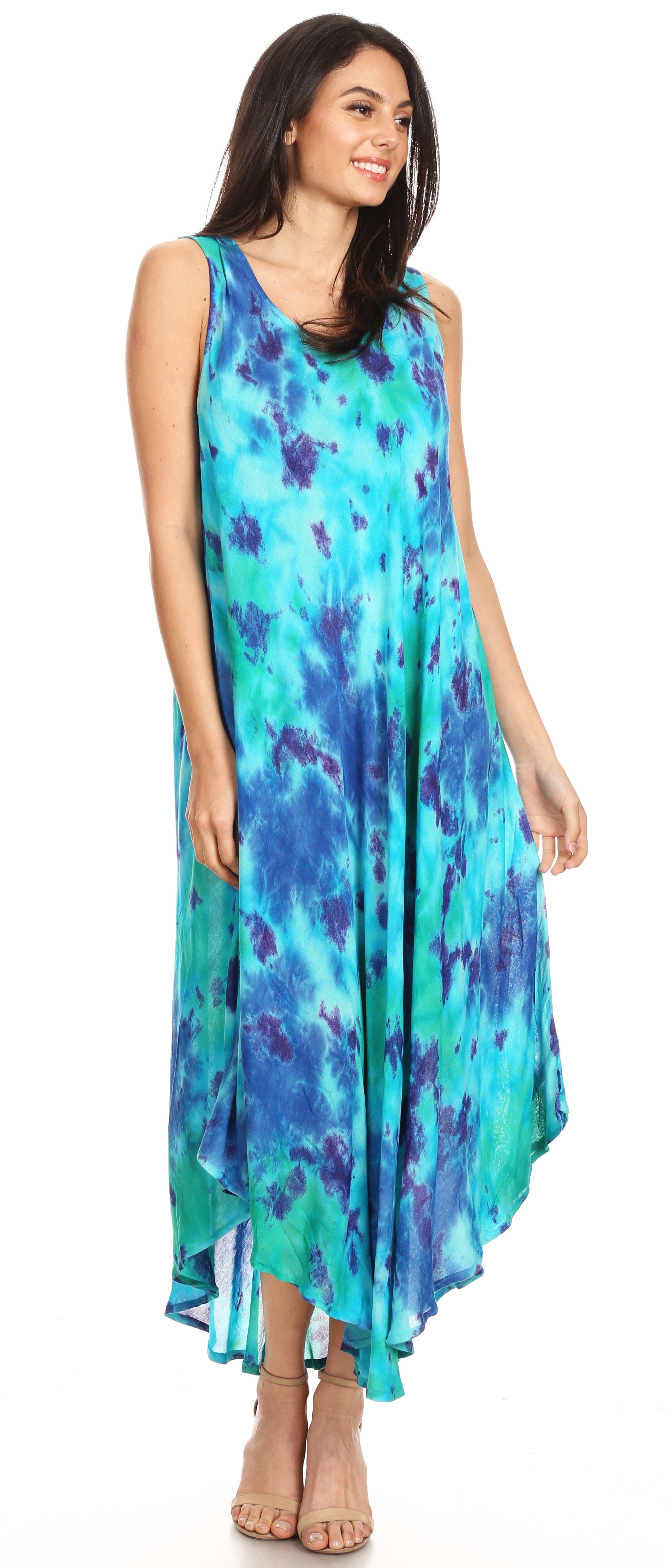 Sakkas Neja Women's Casual Maxi Summer Sleeveless Loose Fit Tie Dye Tank Dress