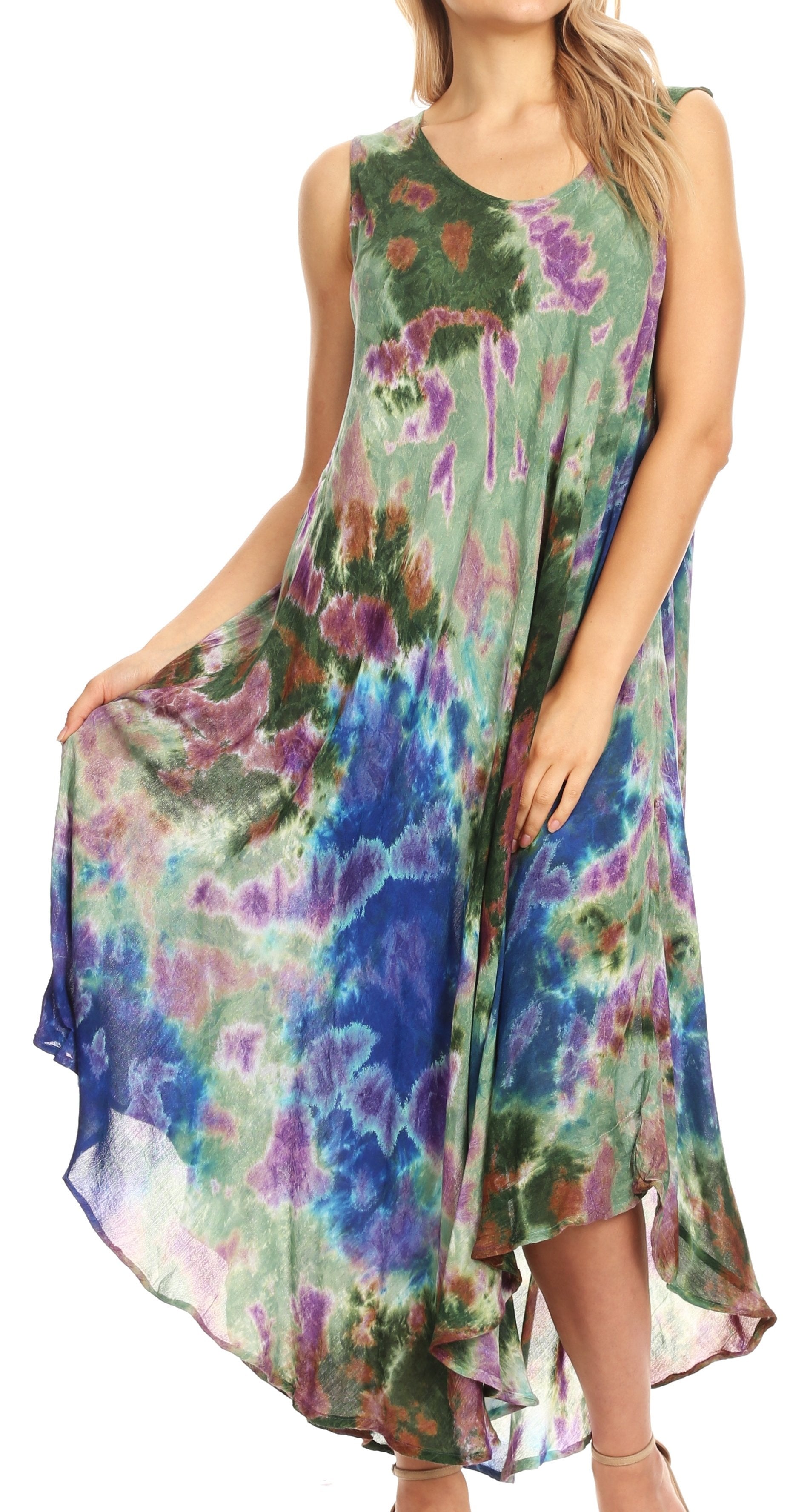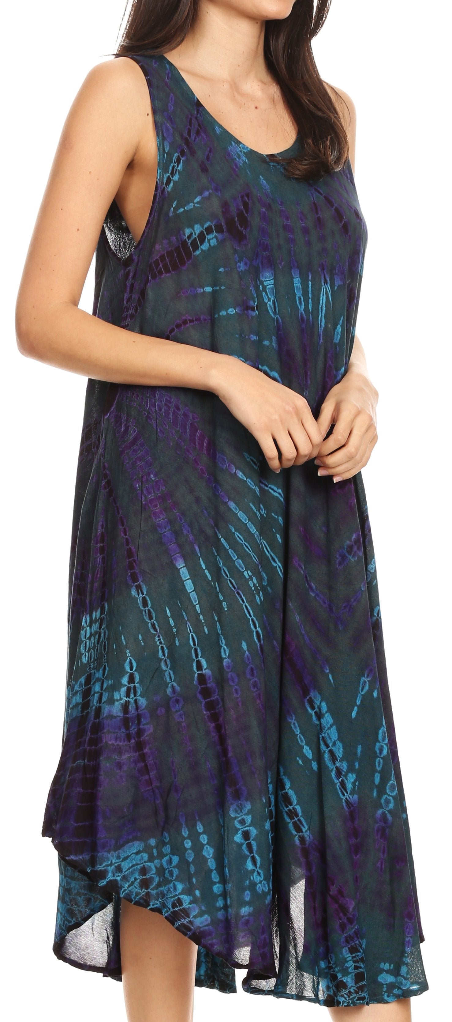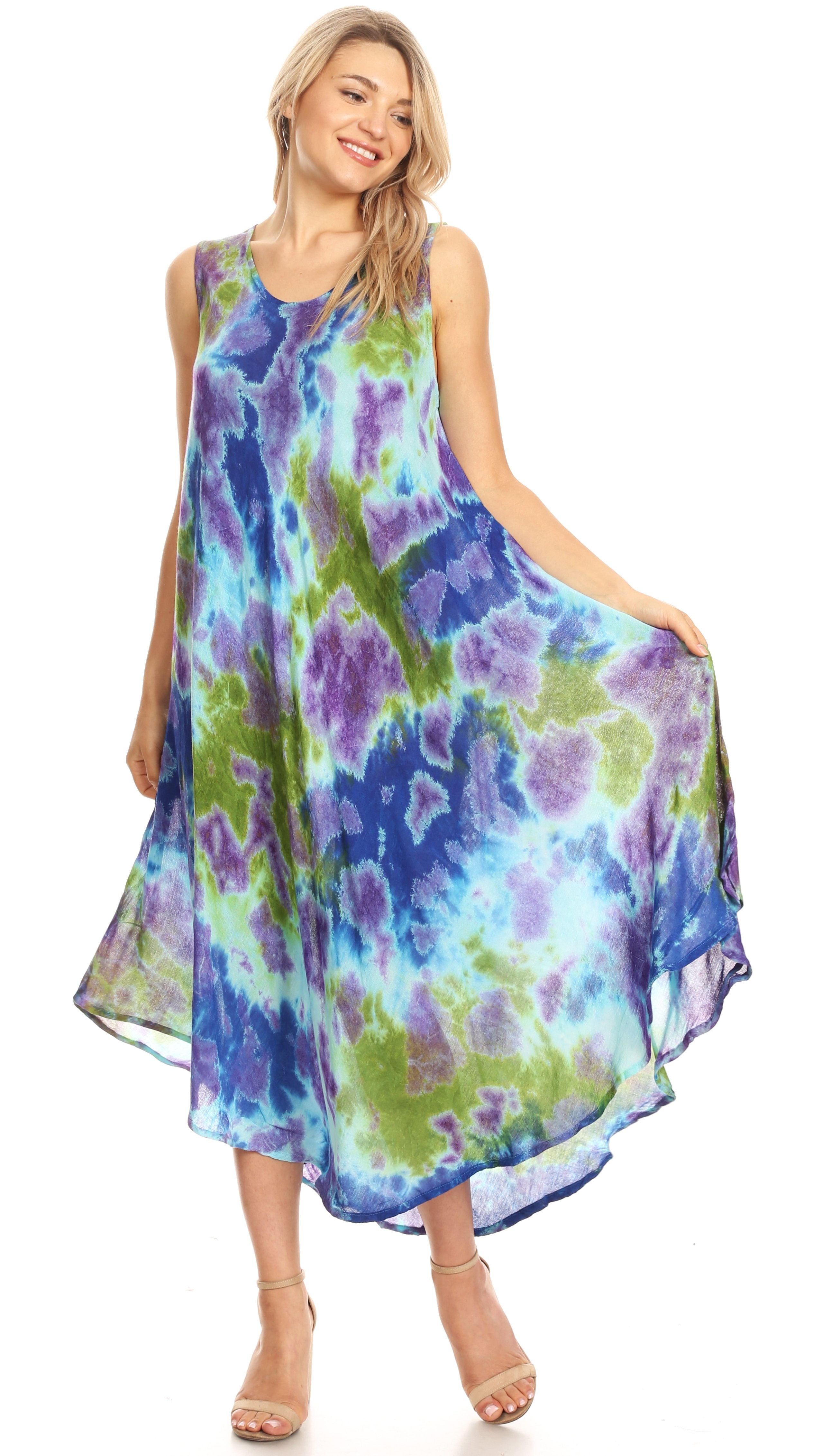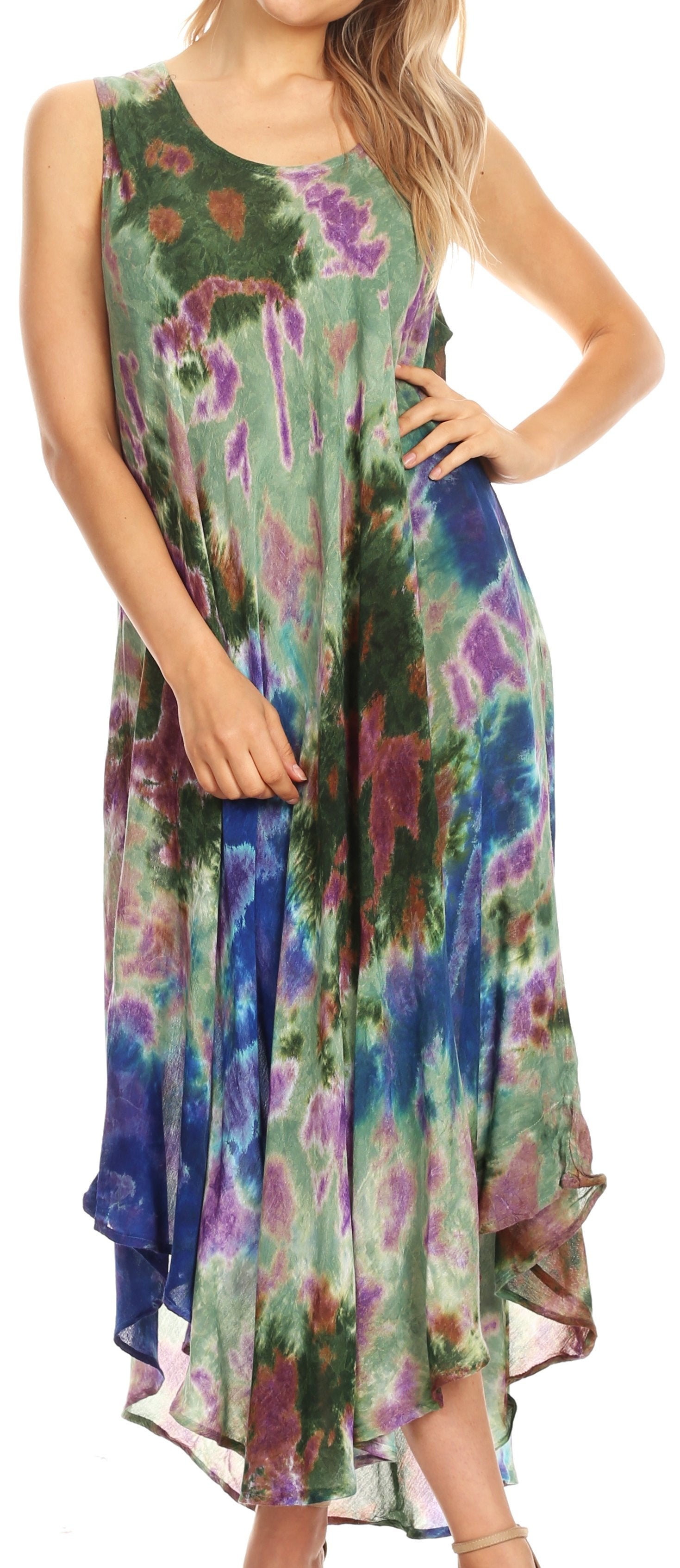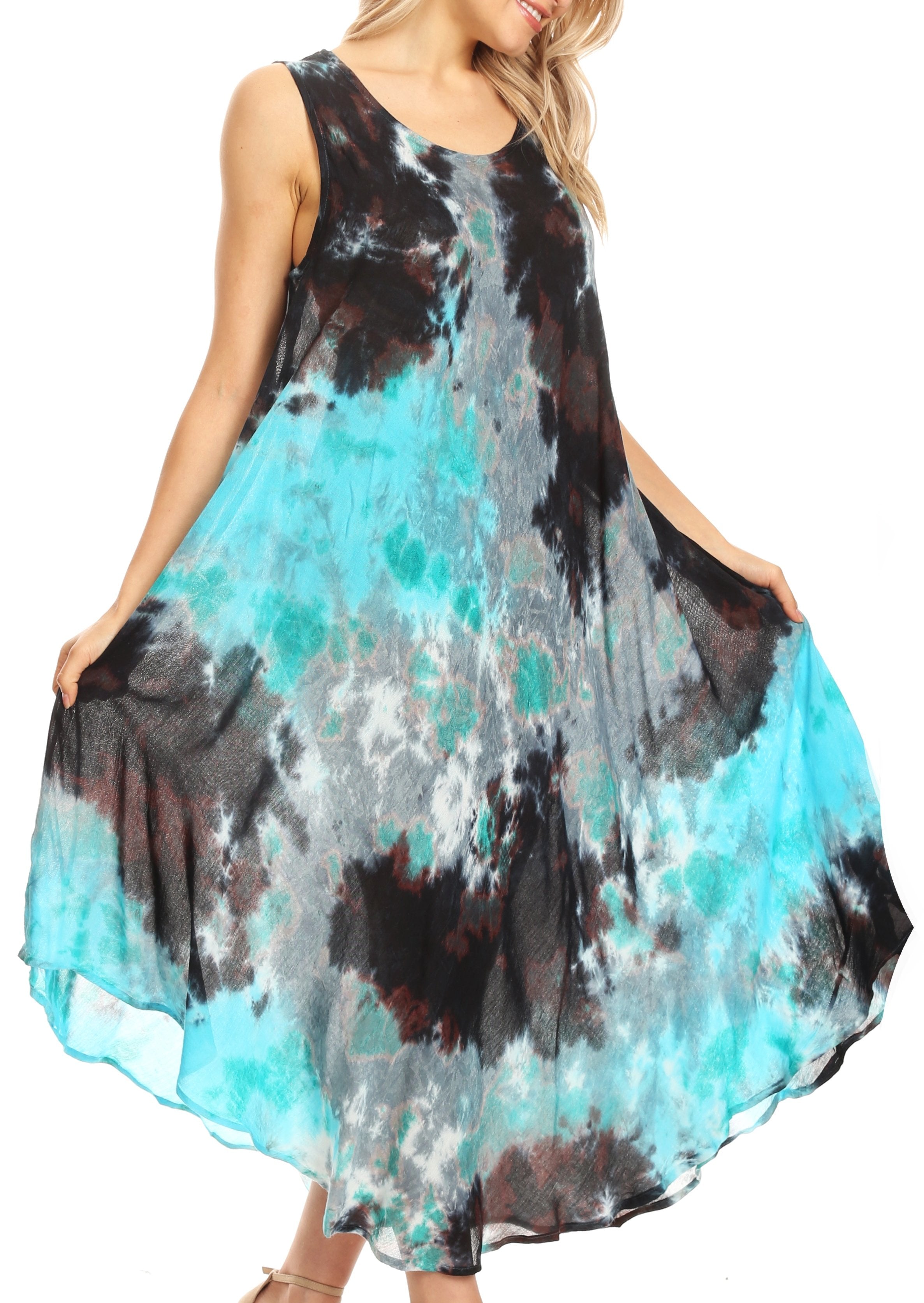 Sakkas Neja Women's Casual Maxi Summer Sleeveless Loose Fit Tie Dye Tank Dress