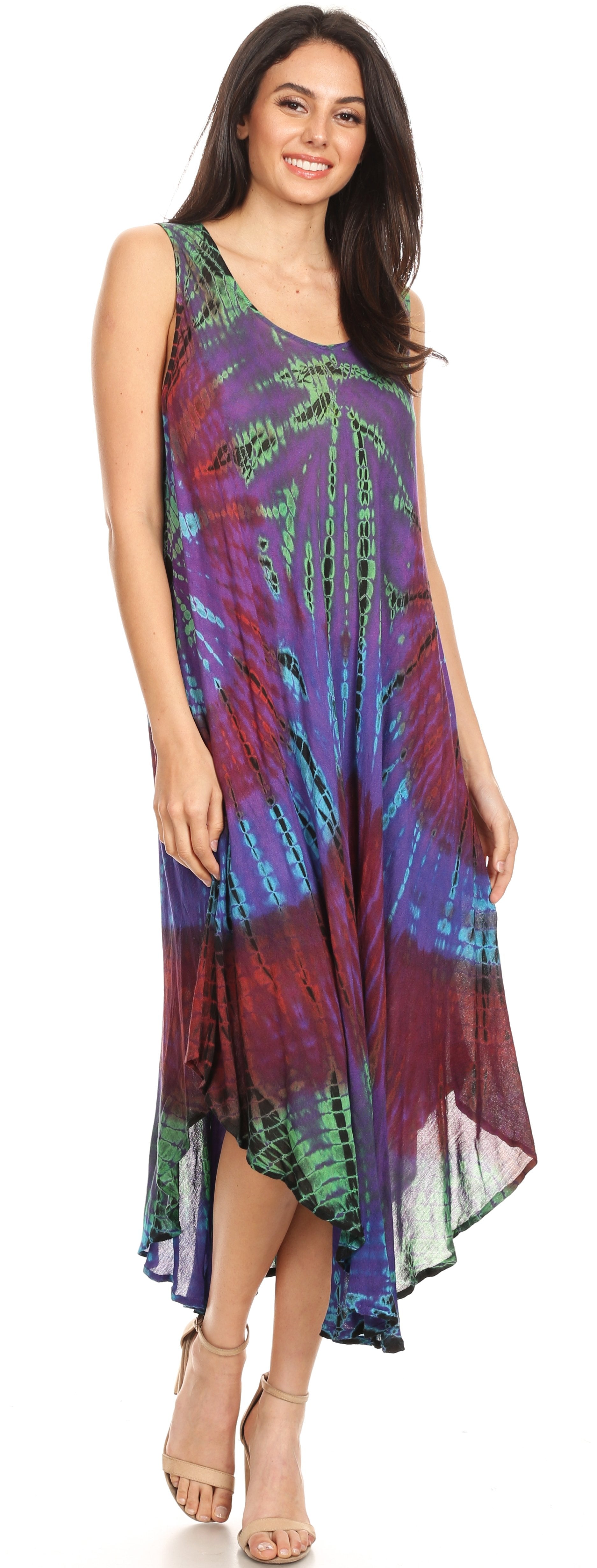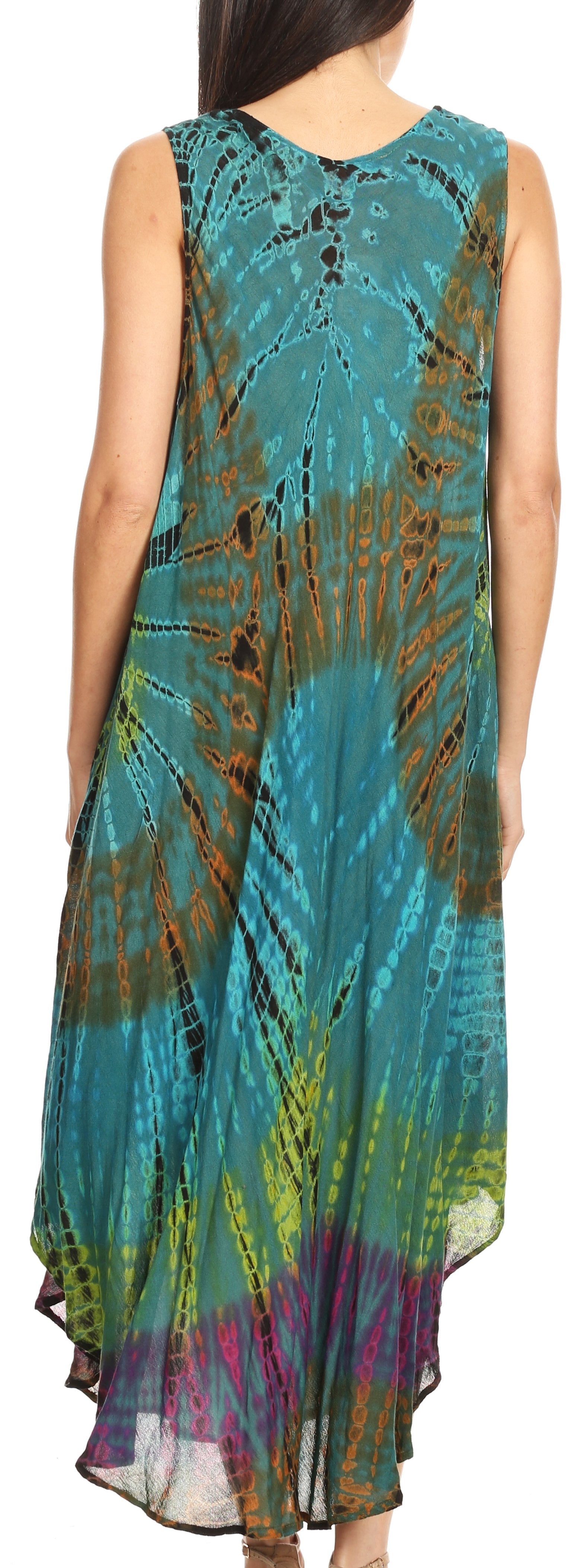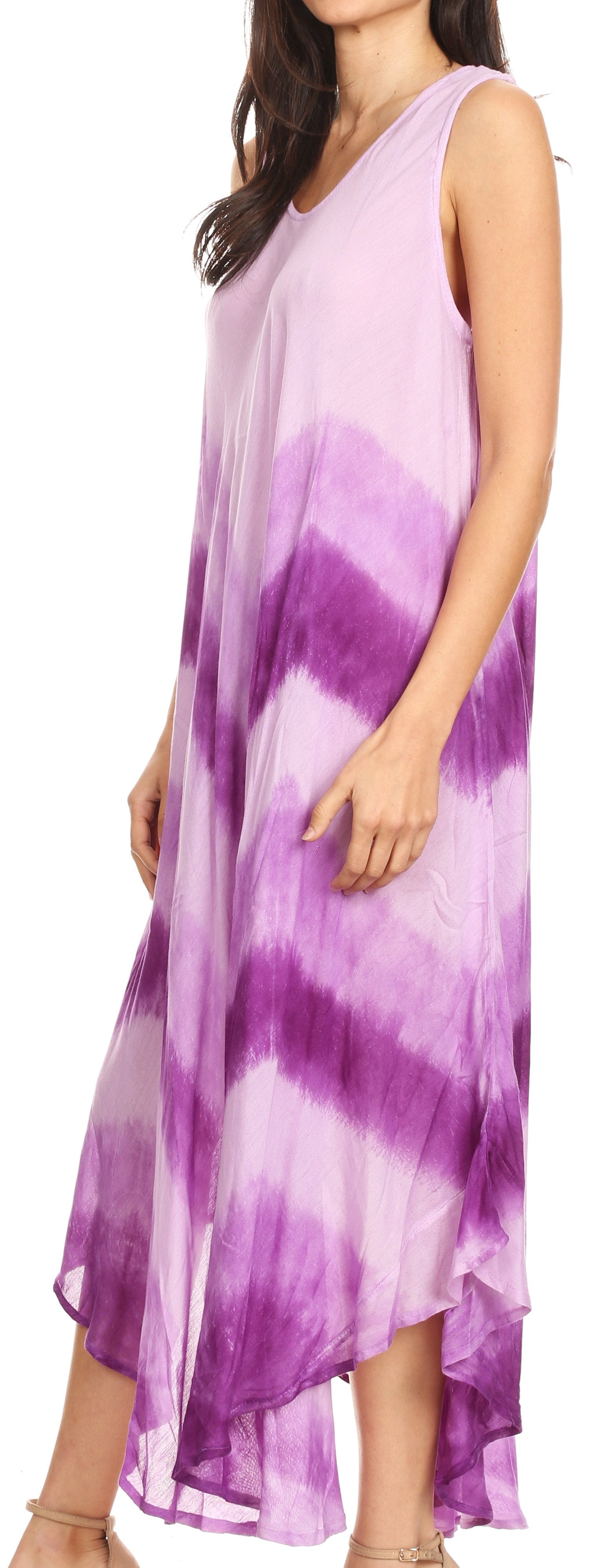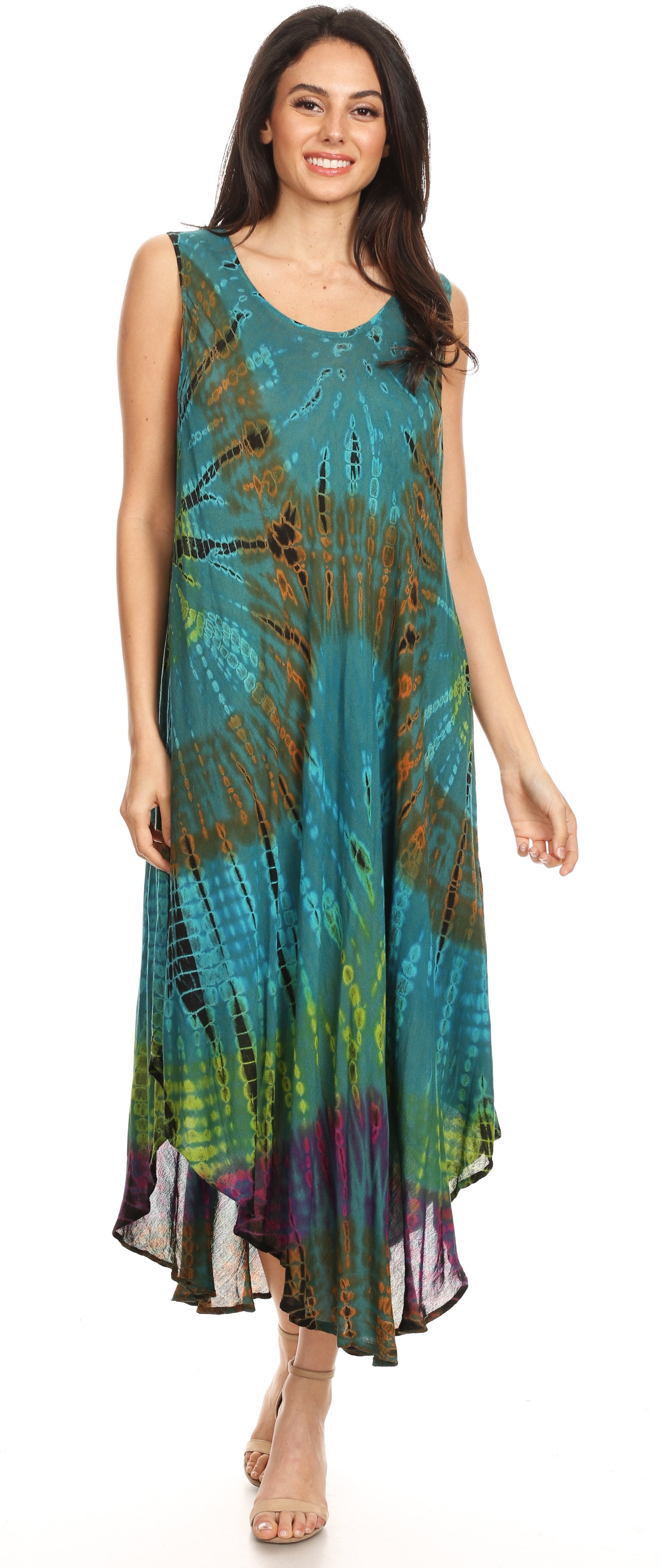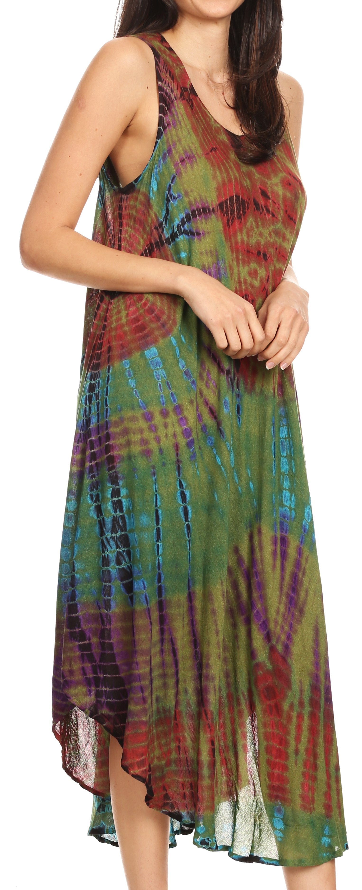 Sakkas Neja Women's Casual Maxi Summer Sleeveless Loose Fit Tie Dye Tank Dress