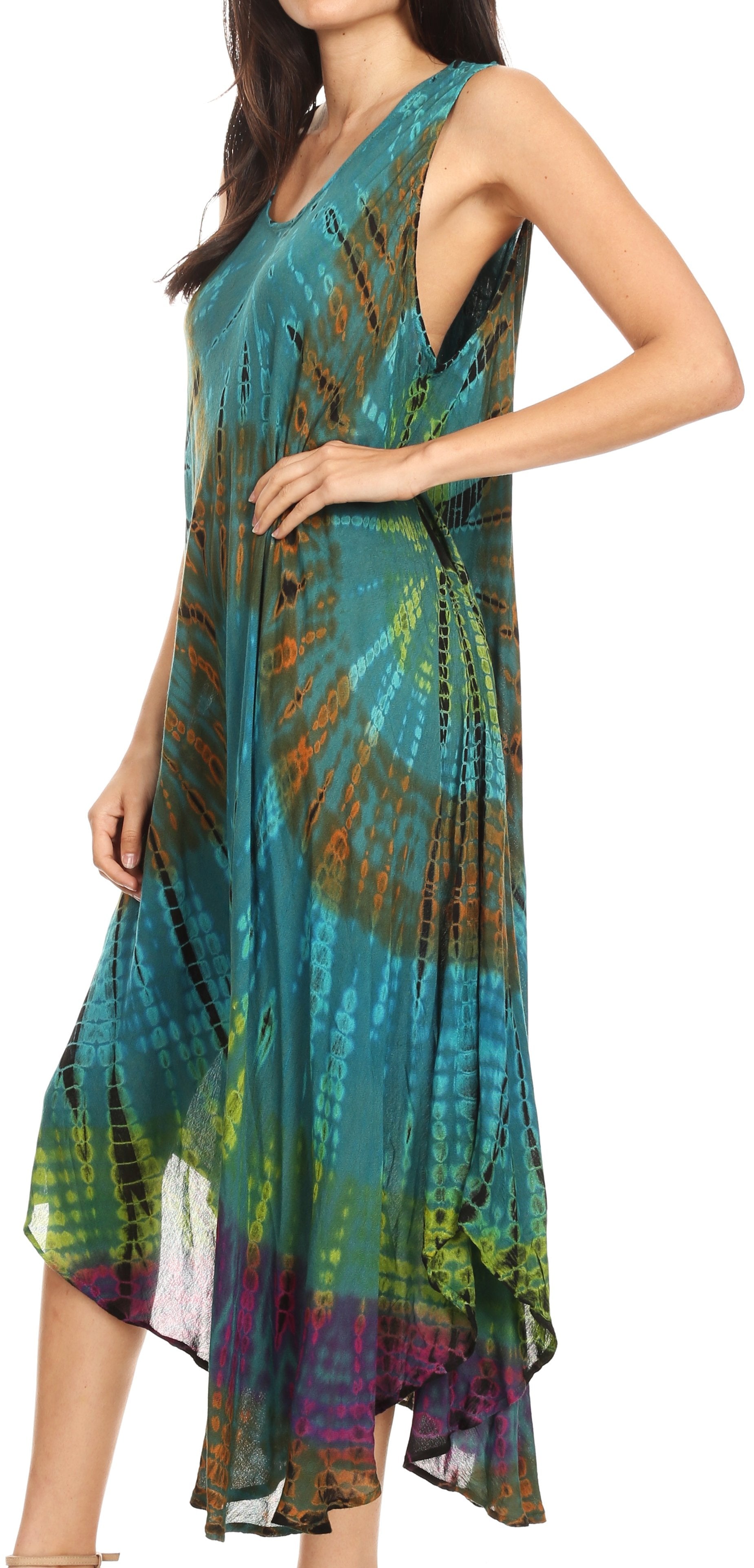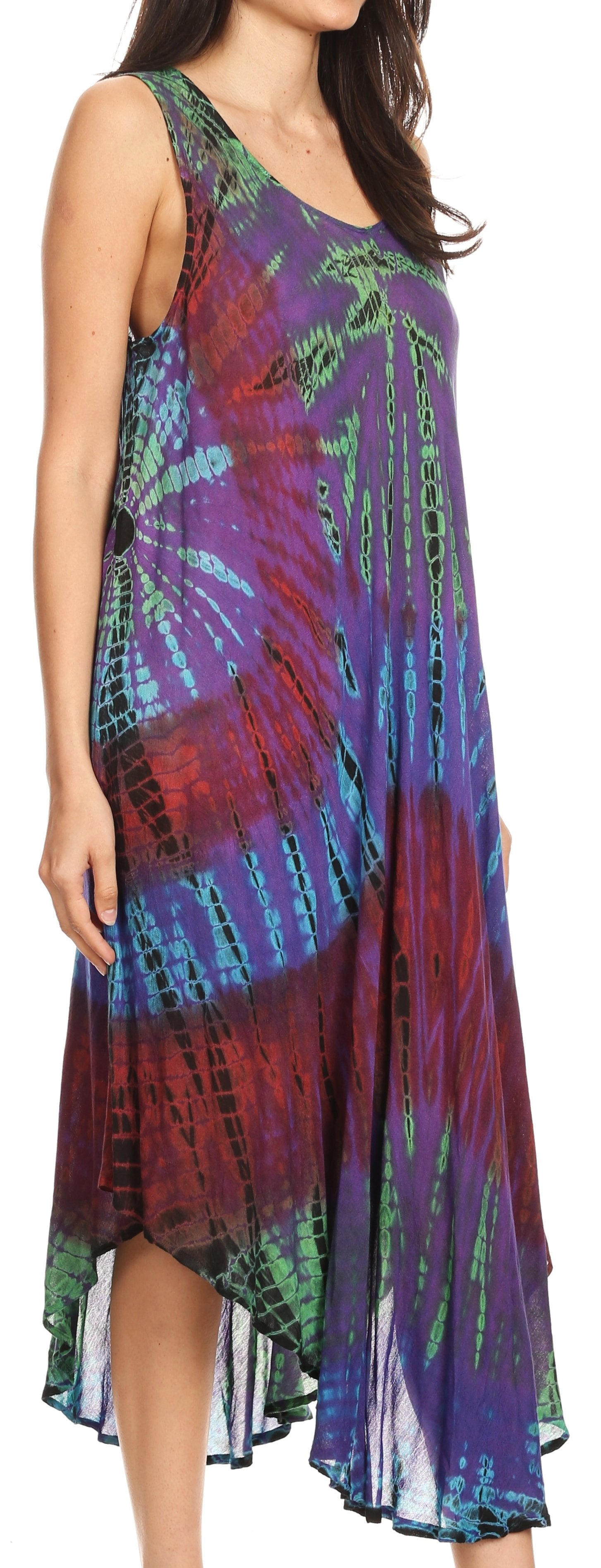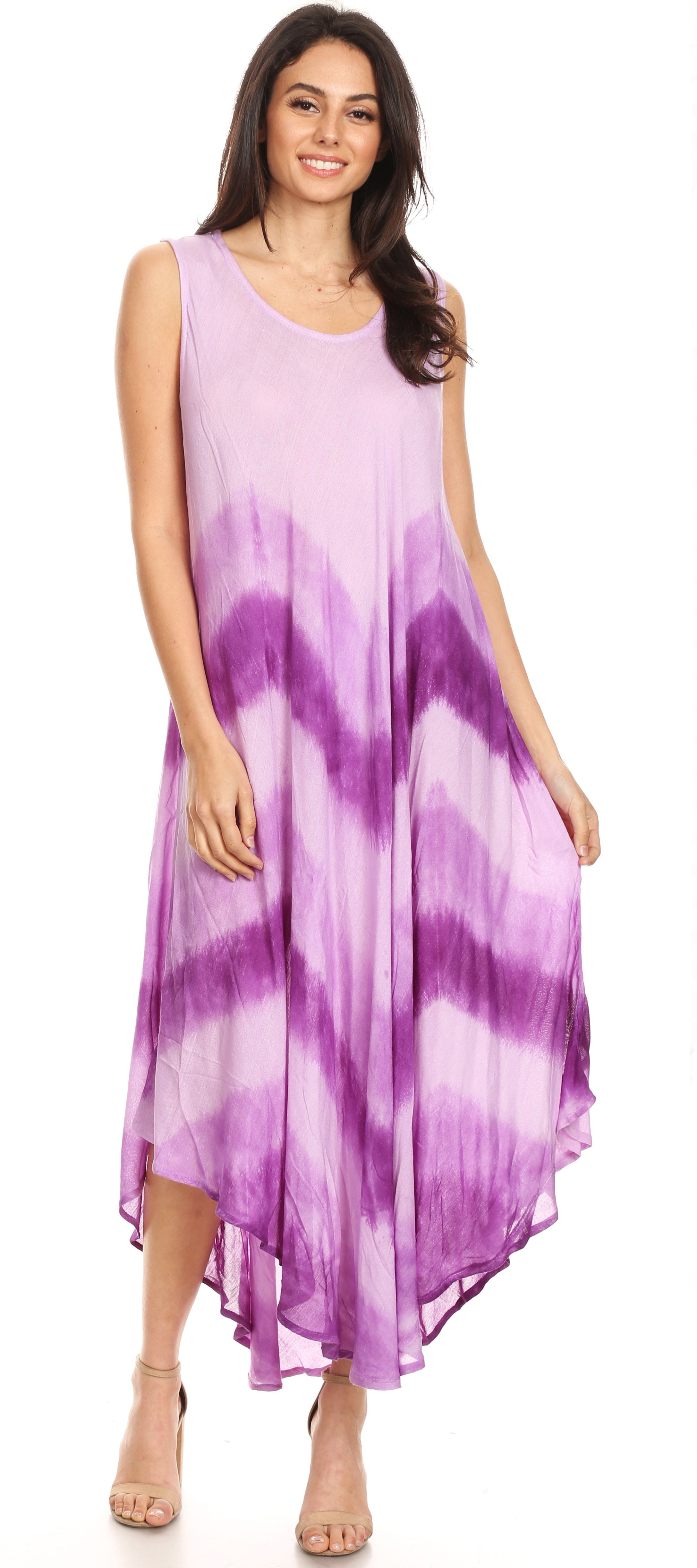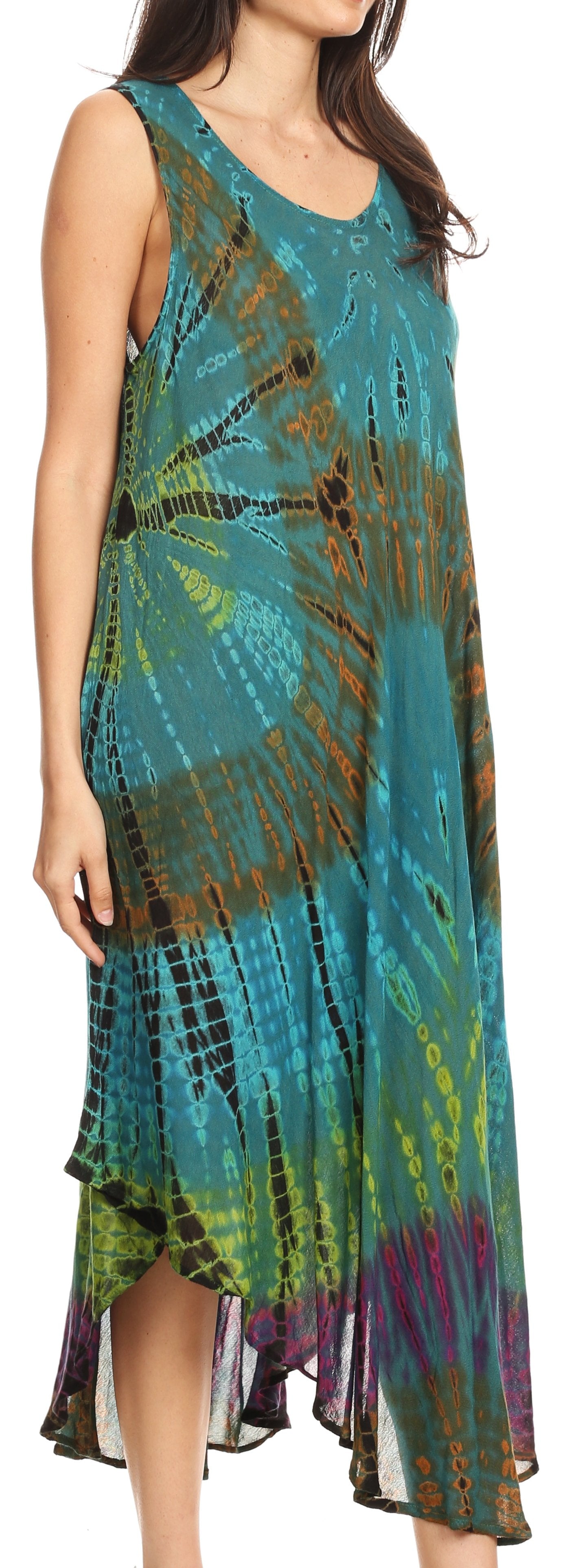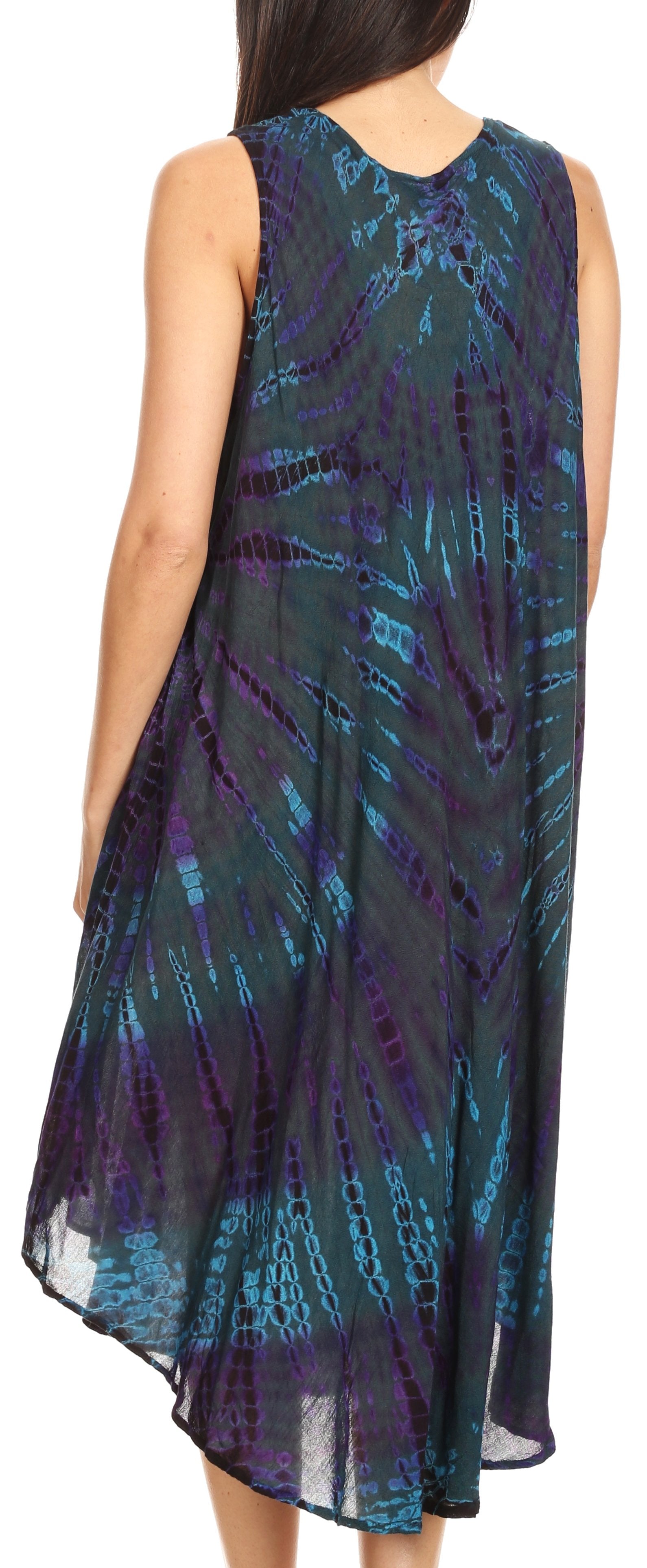 Sakkas Neja Women's Casual Maxi Summer Sleeveless Loose Fit Tie Dye Tank Dress