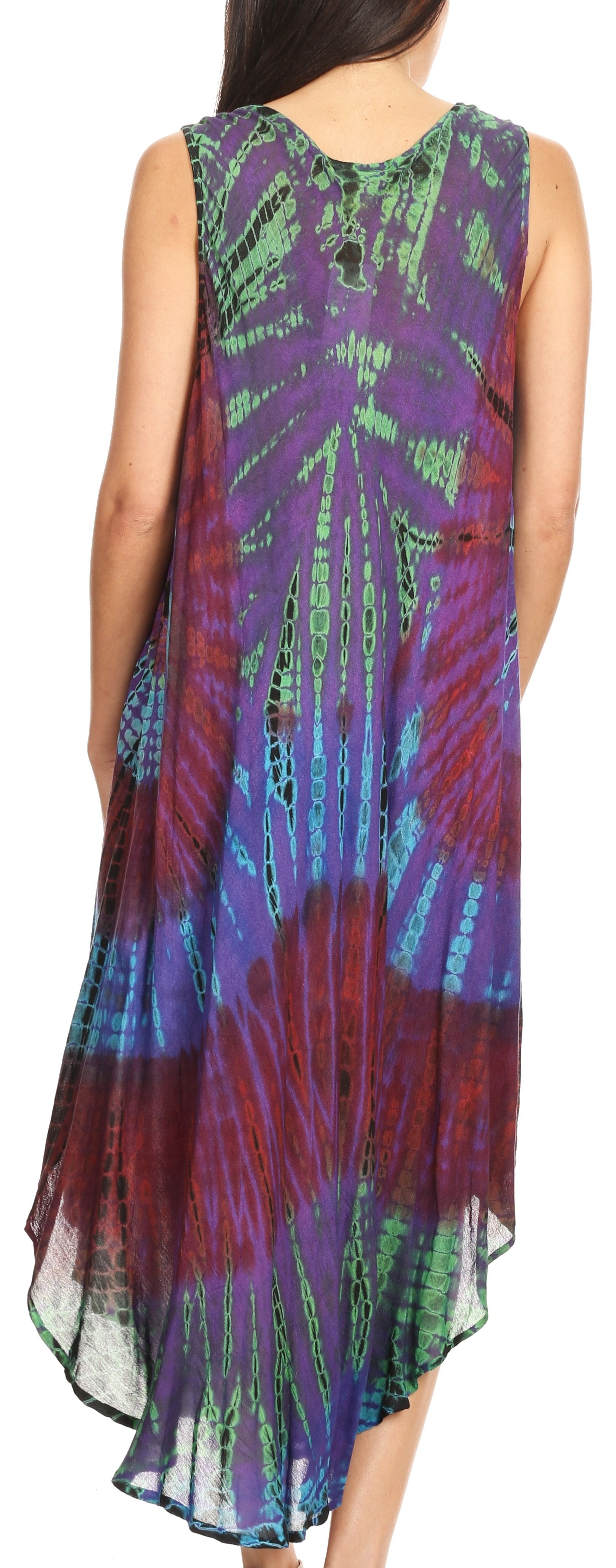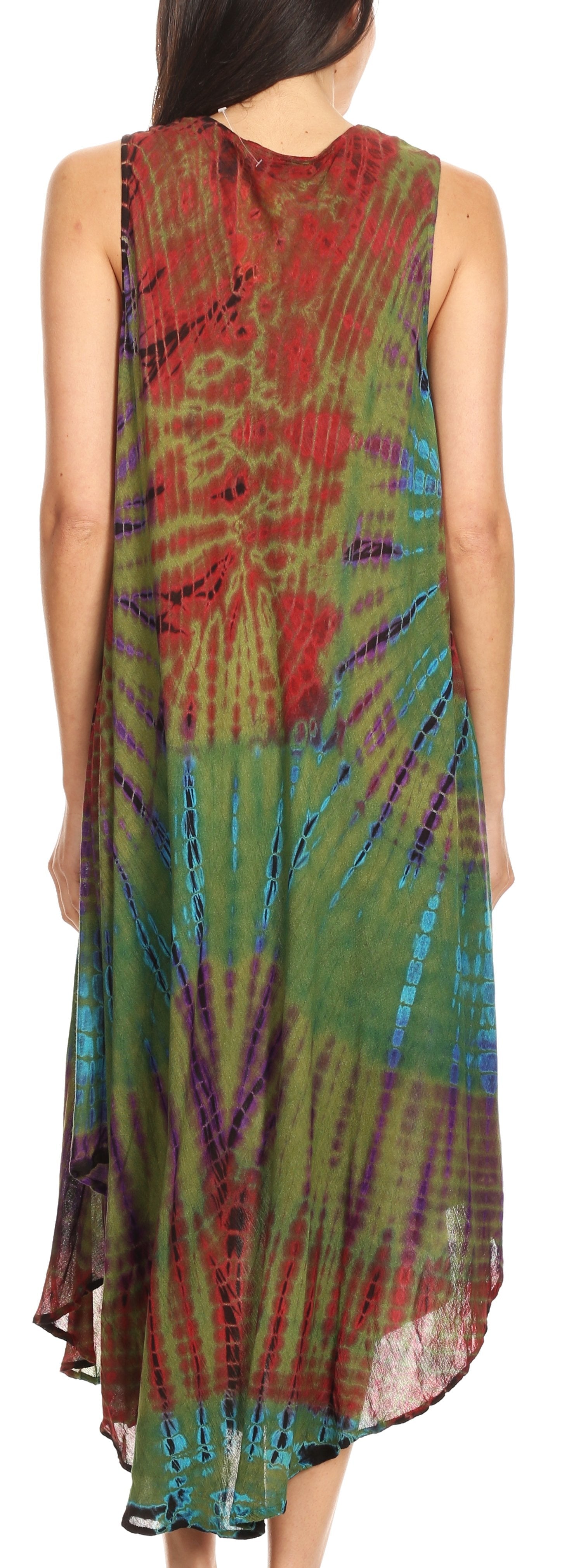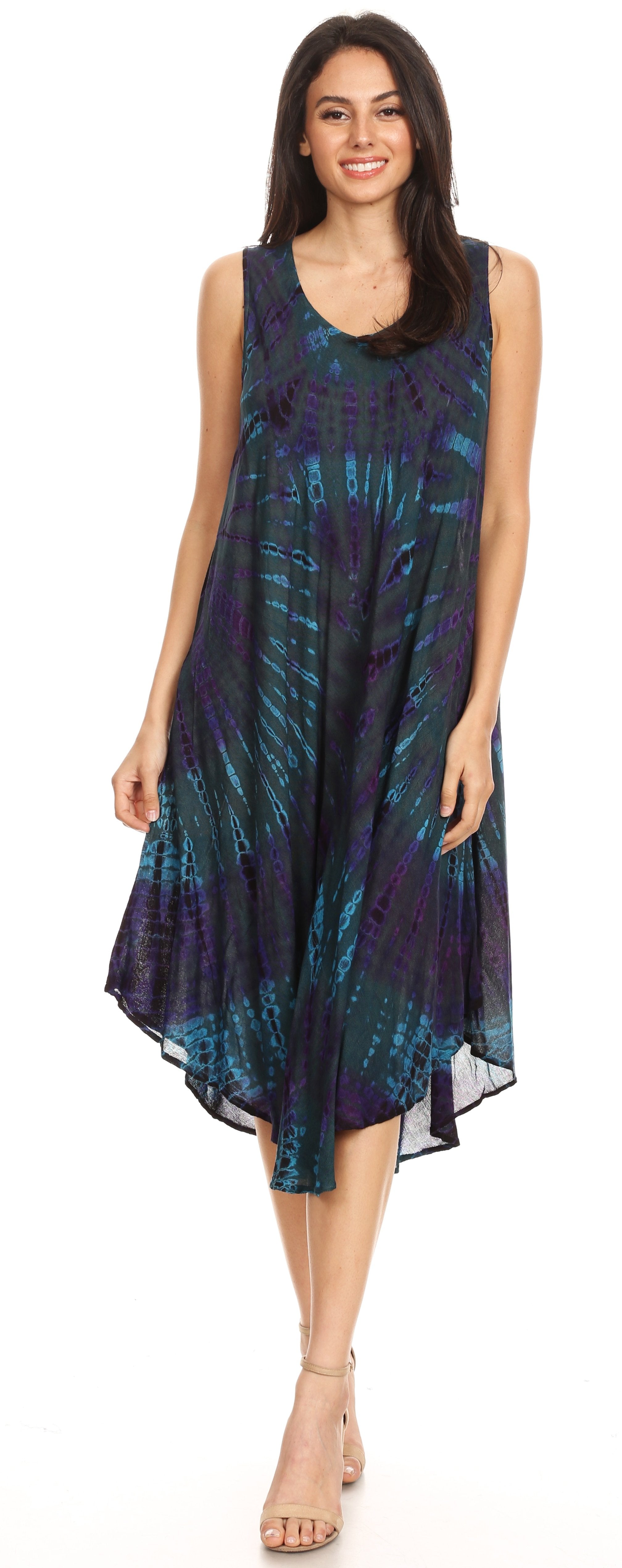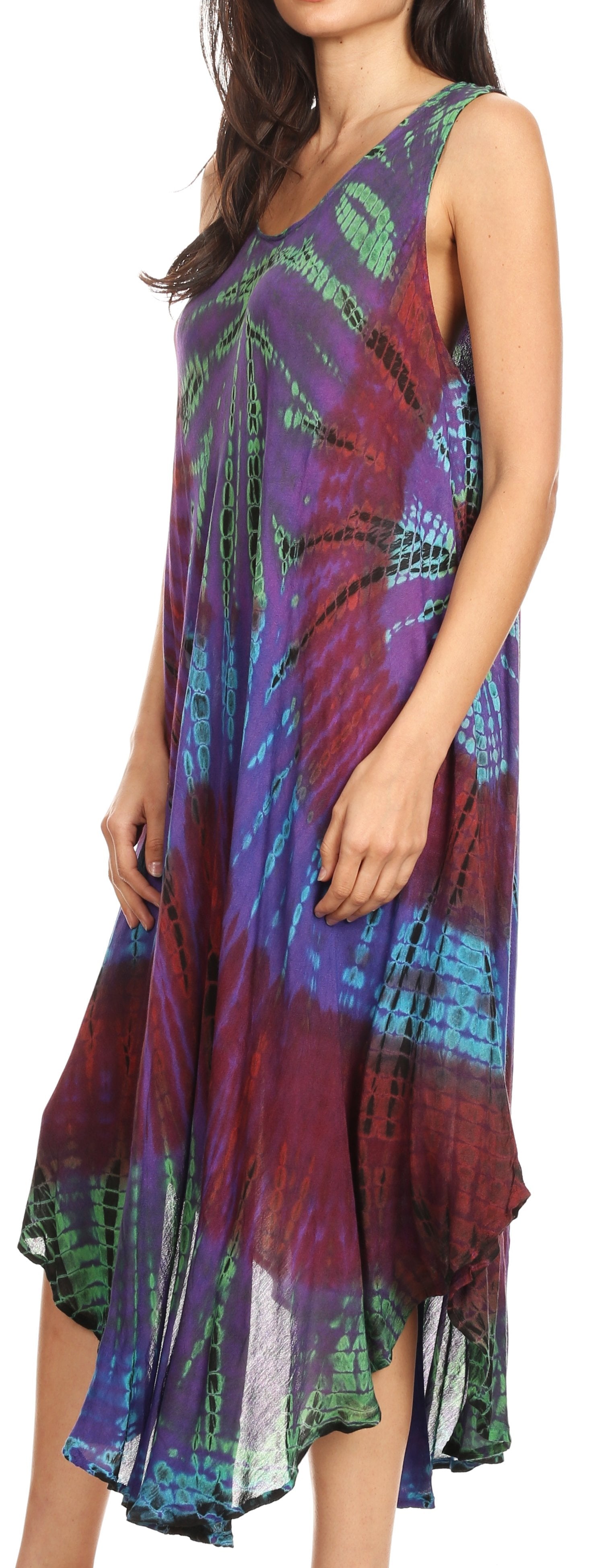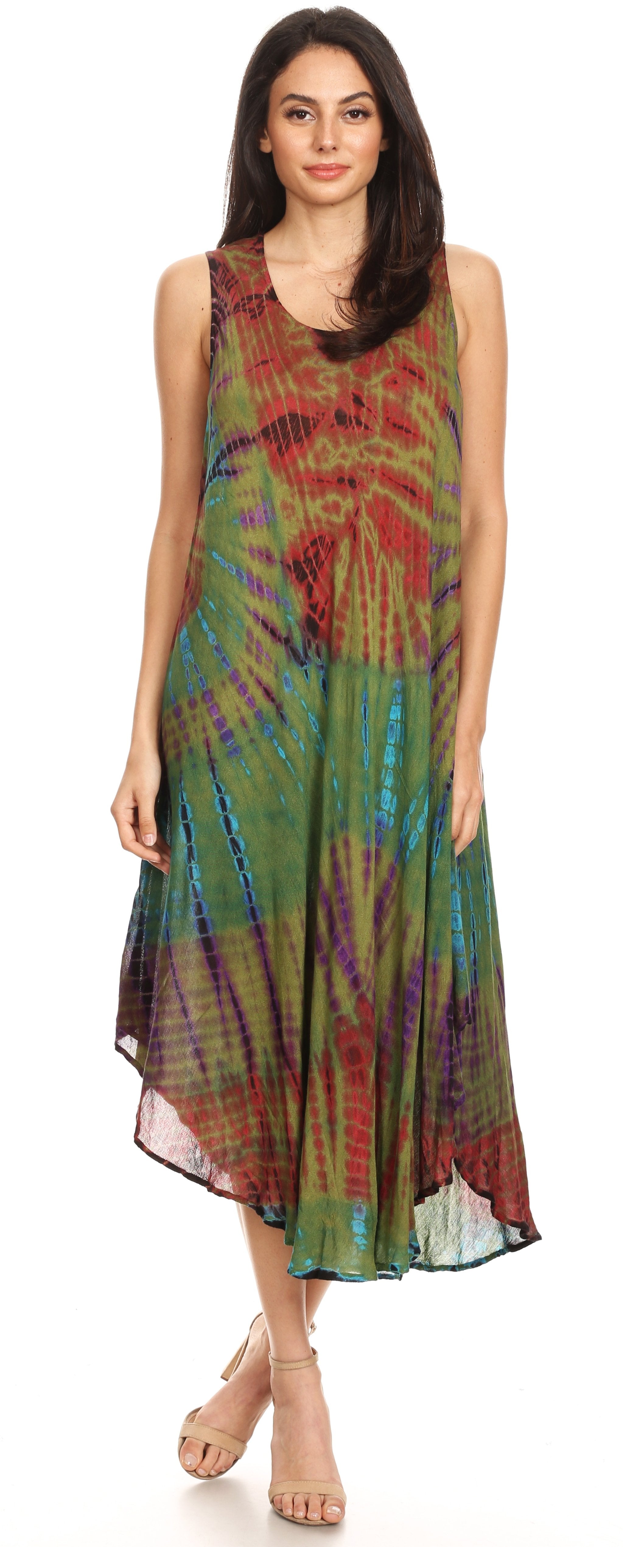 Sakkas Neja Women's Casual Maxi Summer Sleeveless Loose Fit Tie Dye Tank Dress