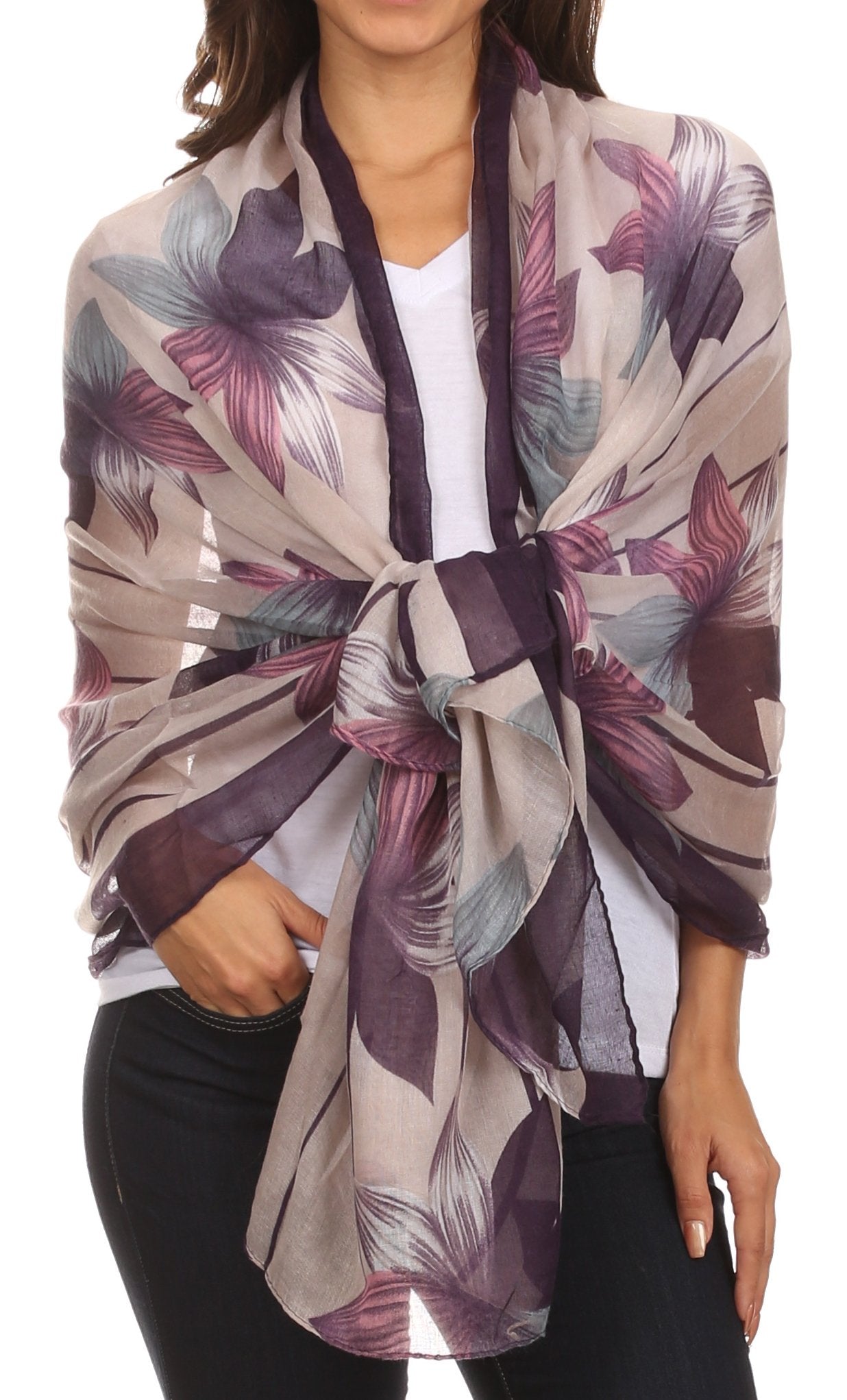 Sakkas Nichole summer gauze featherweight patterned versitile sheer scarf wrap