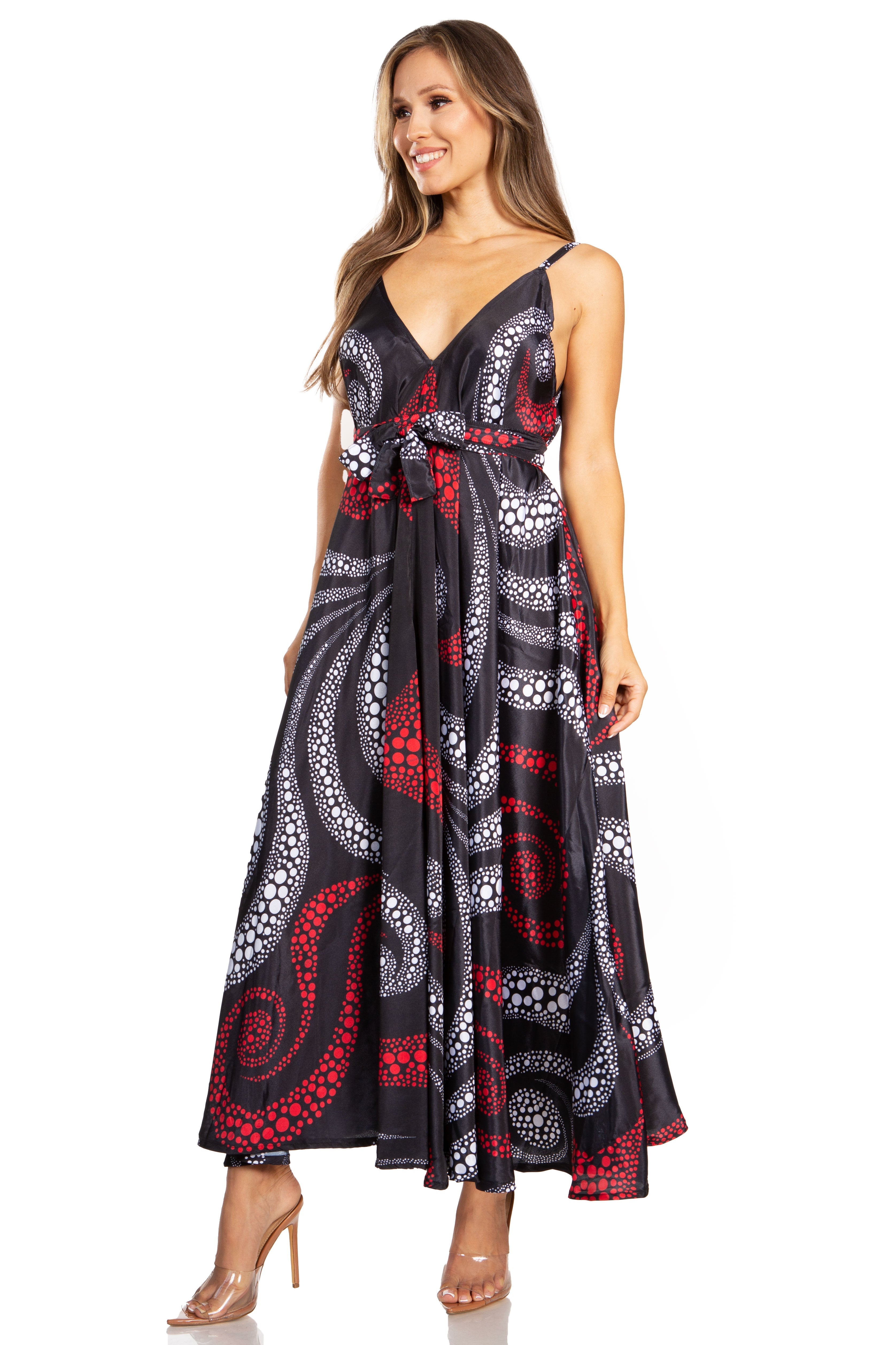 Sakkas Niza Women's Maxi Summer Casual Sleeveless Floral V neck Loose Long Dress