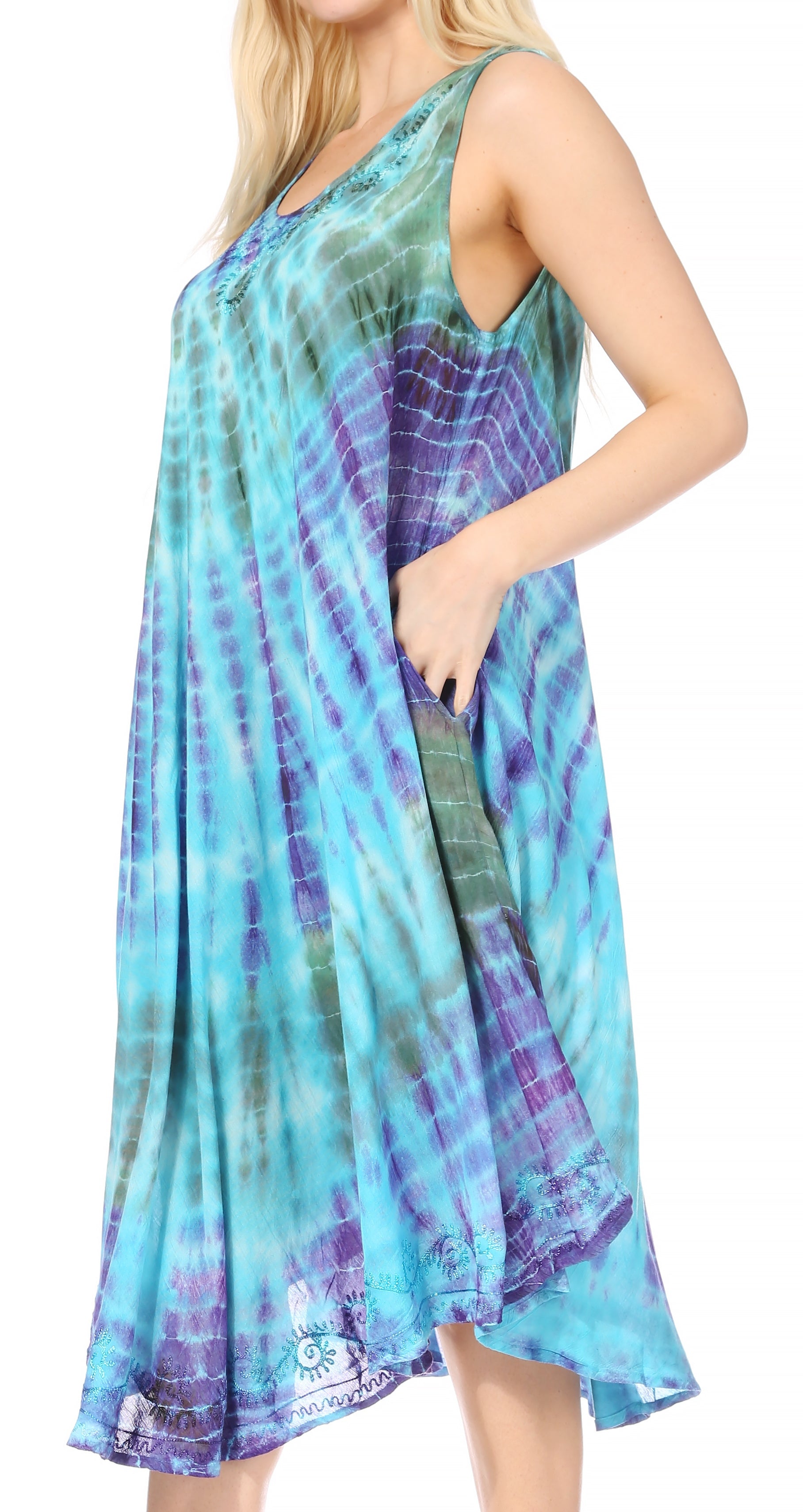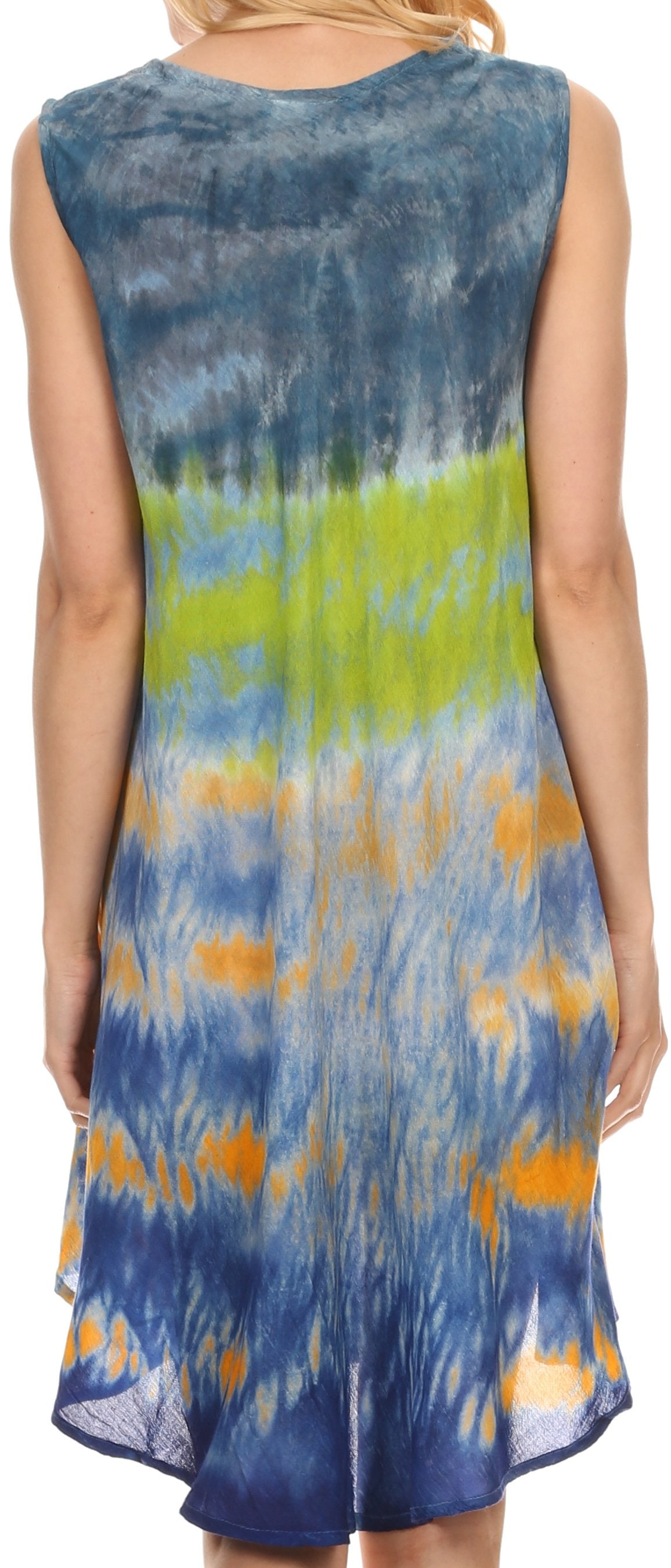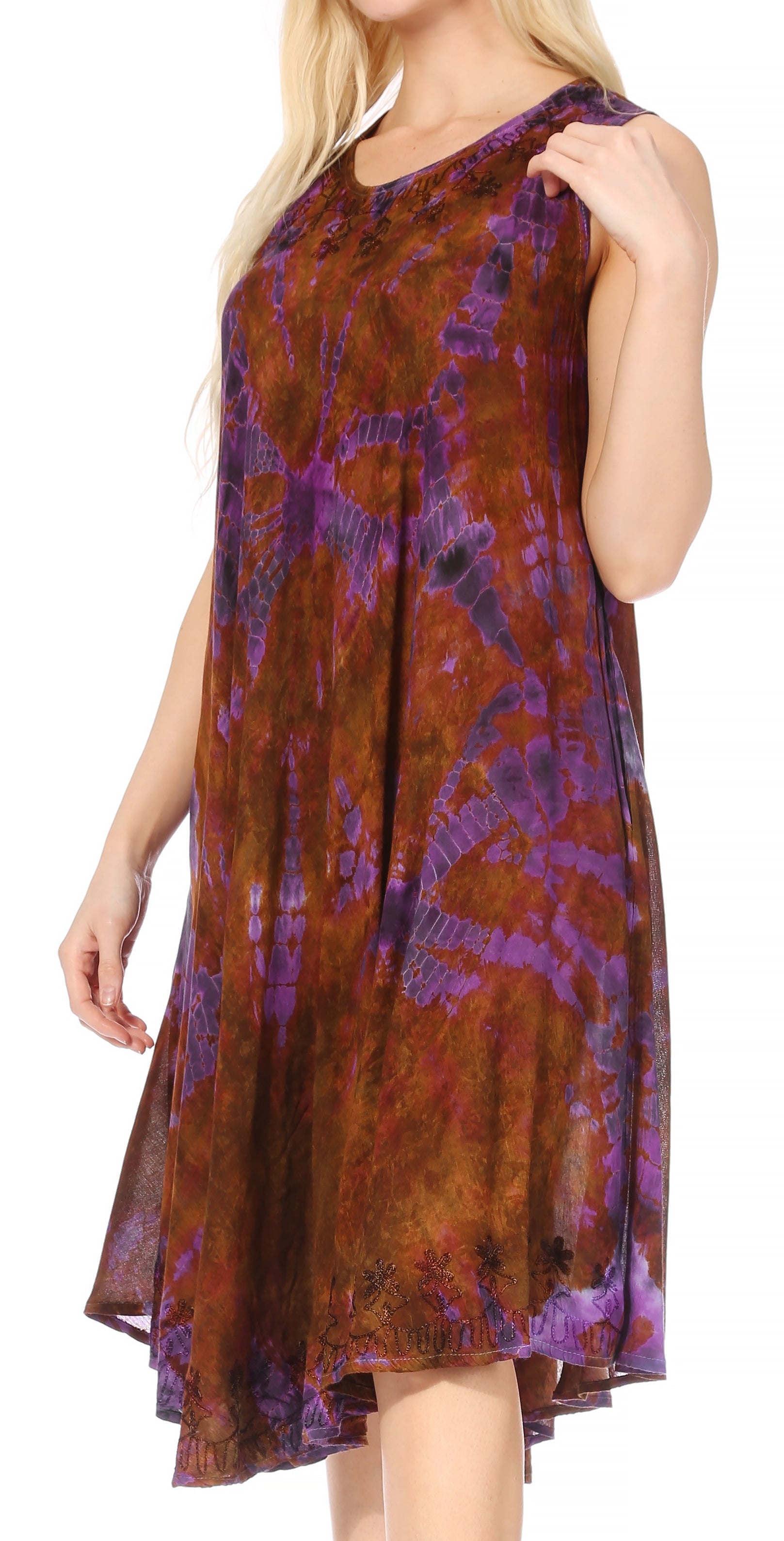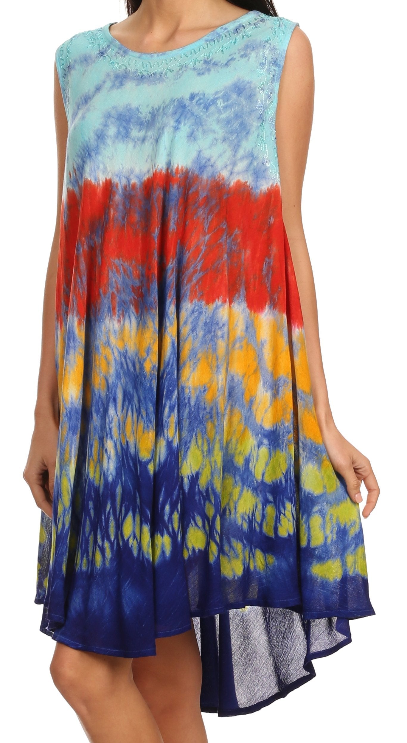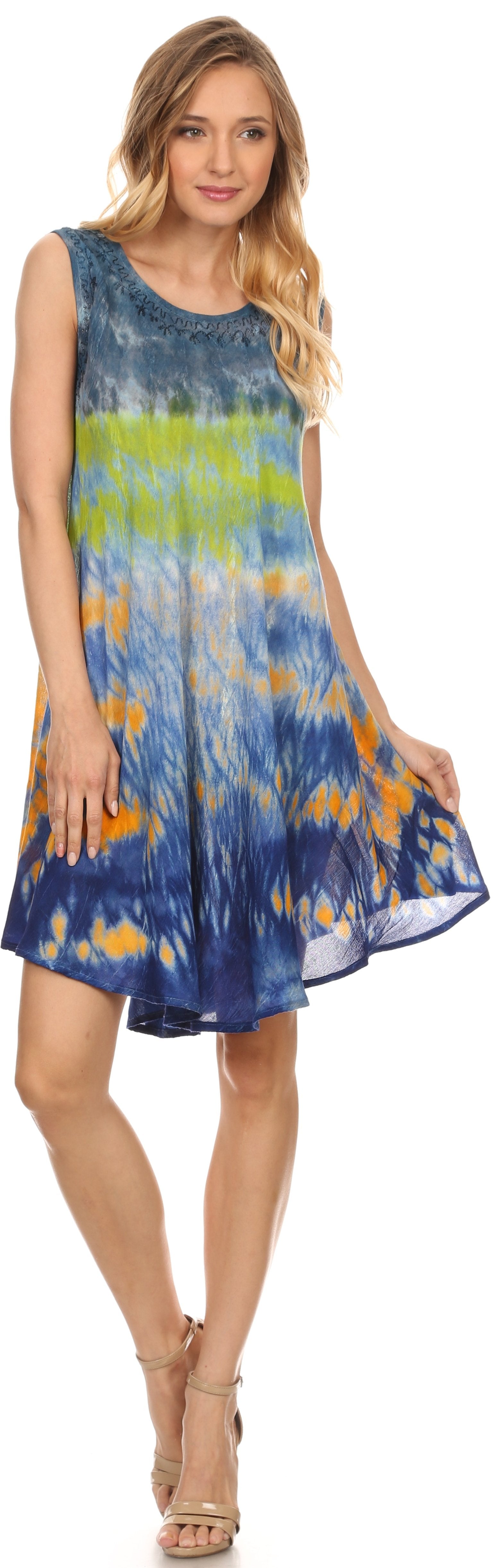 Sakkas Nora Sleeveless Embroidered Short Tie Dye Caftan Dress / Cover Up