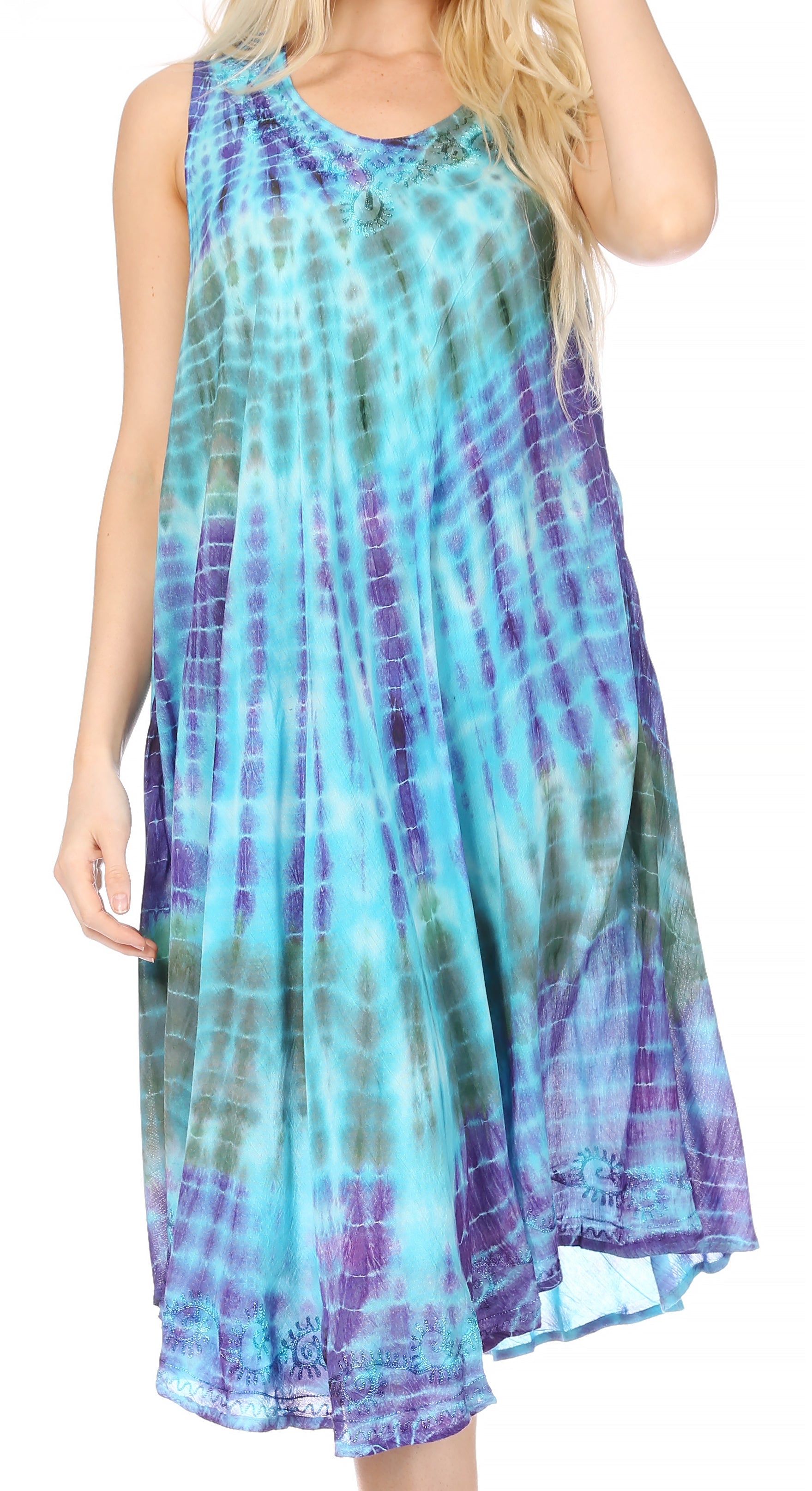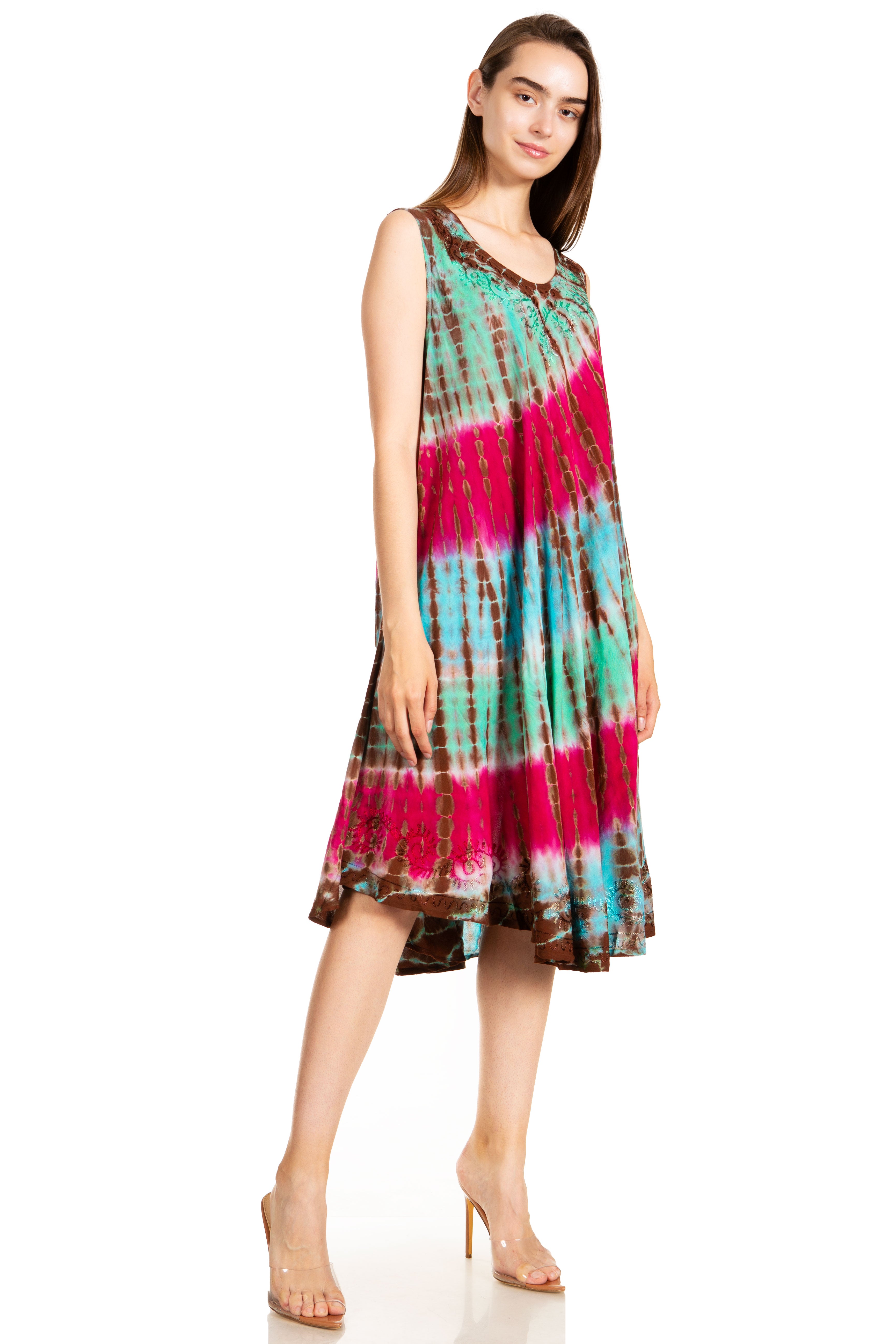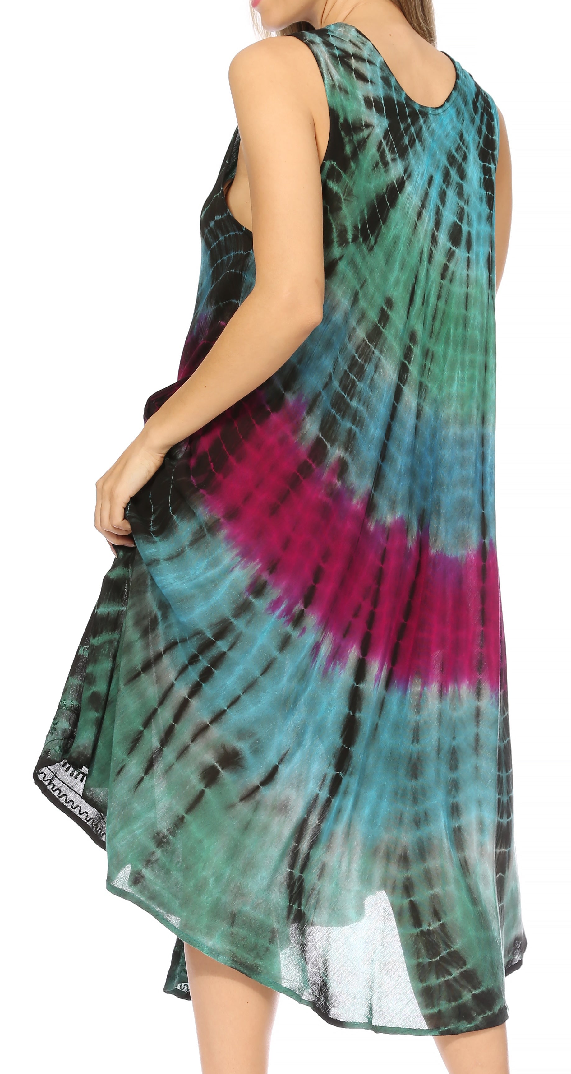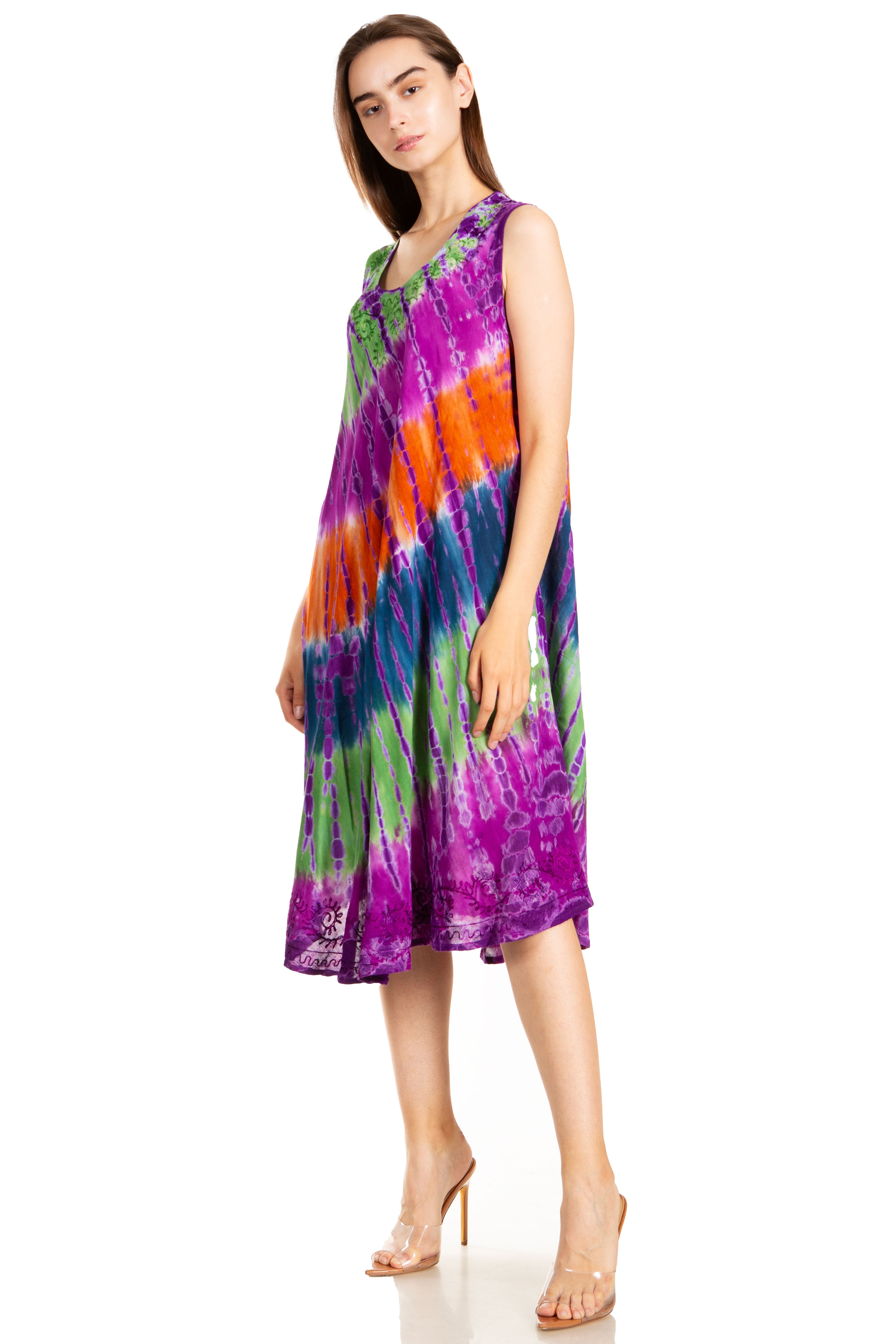 Sakkas Nora Sleeveless Embroidered Short Tie Dye Caftan Dress / Cover Up