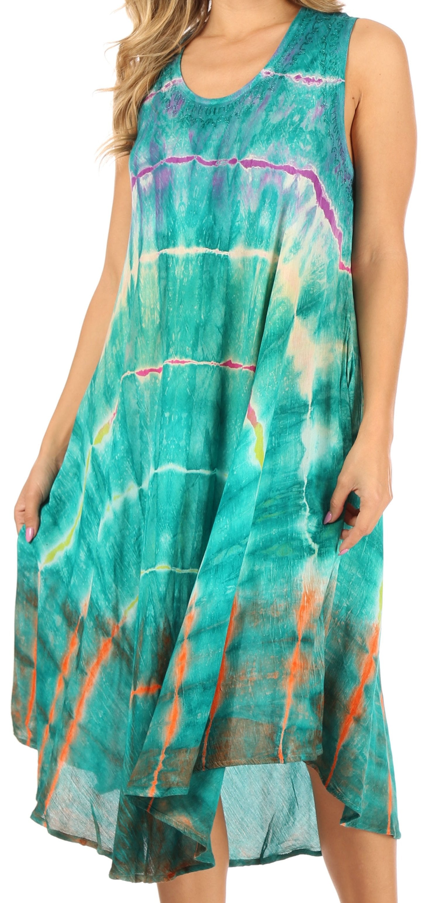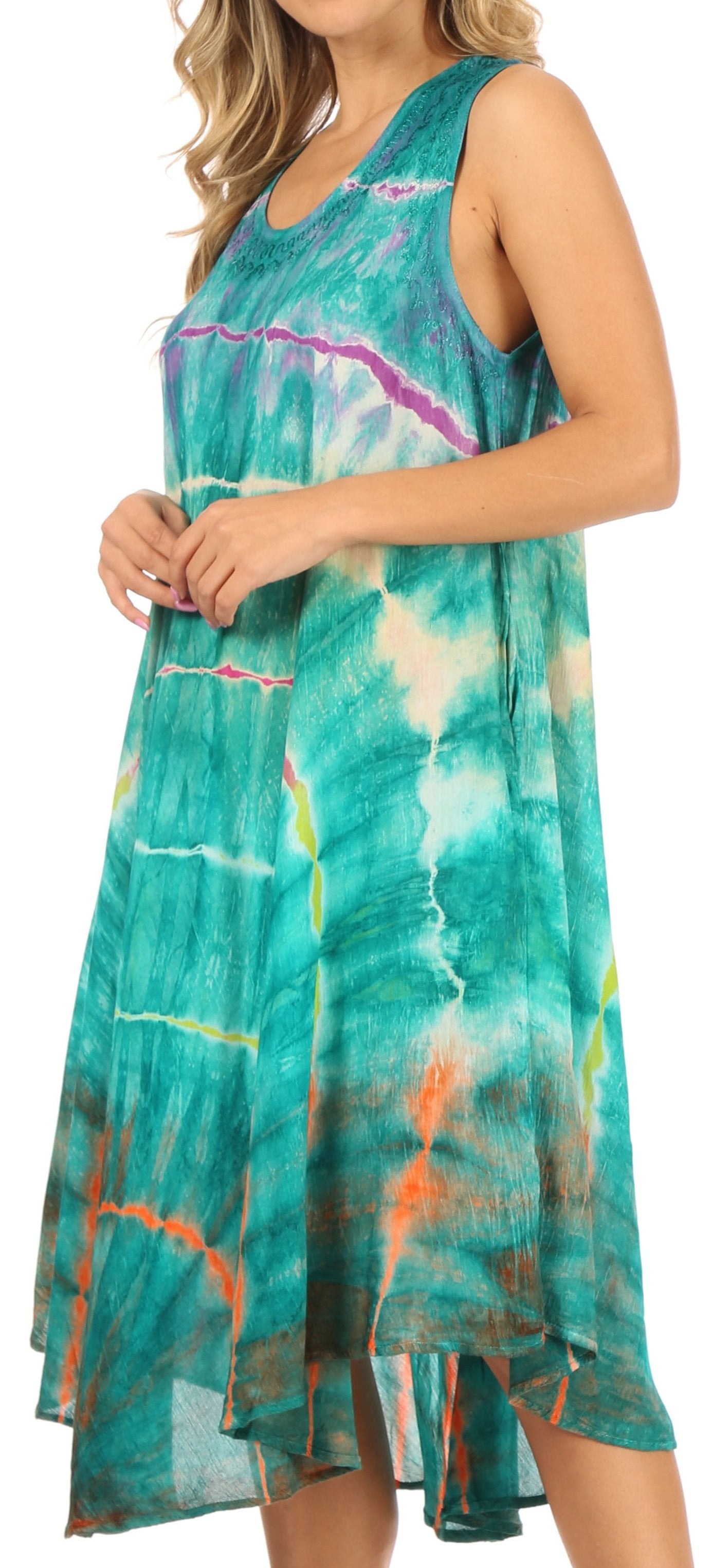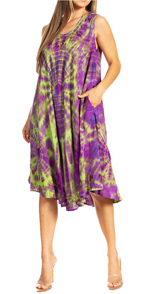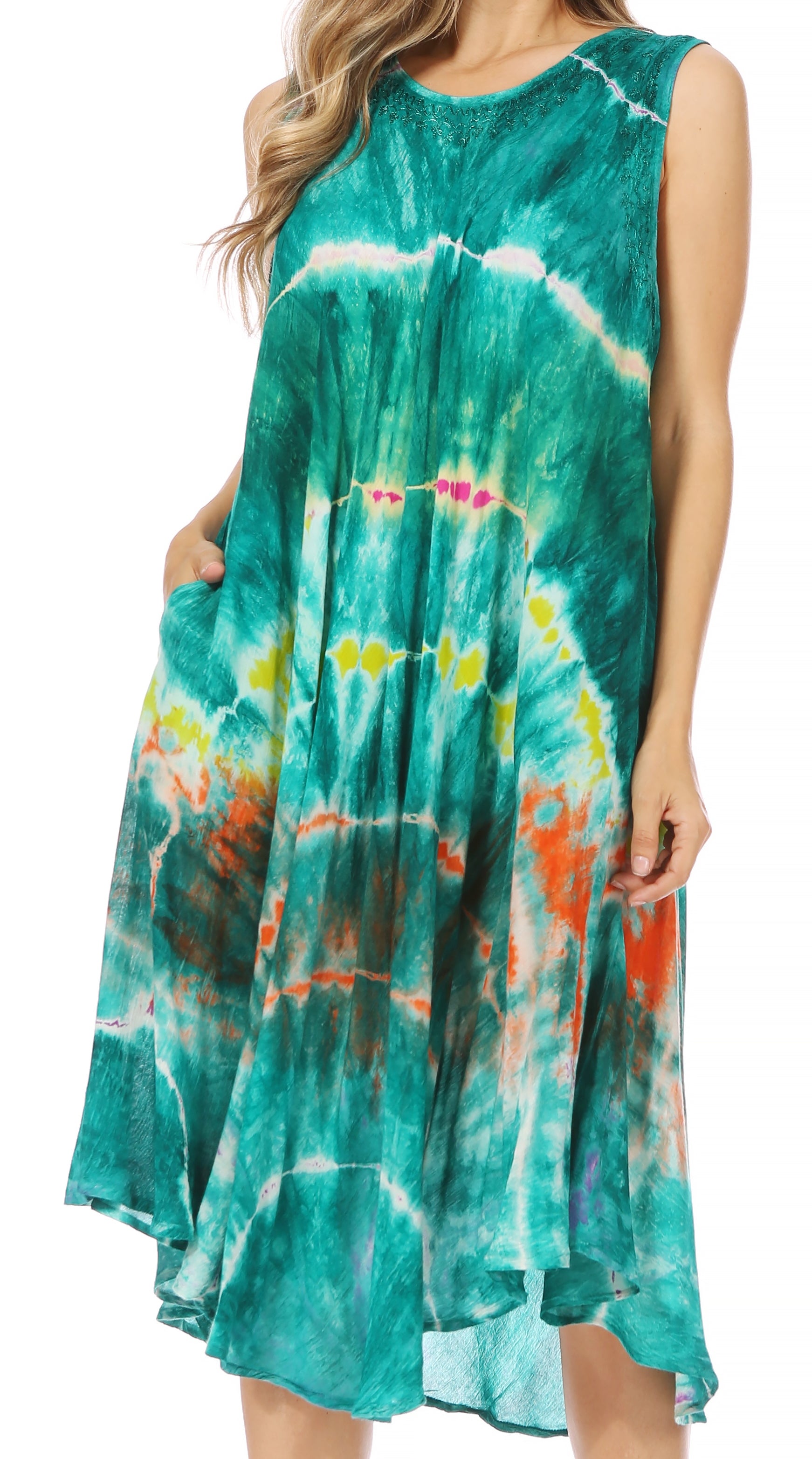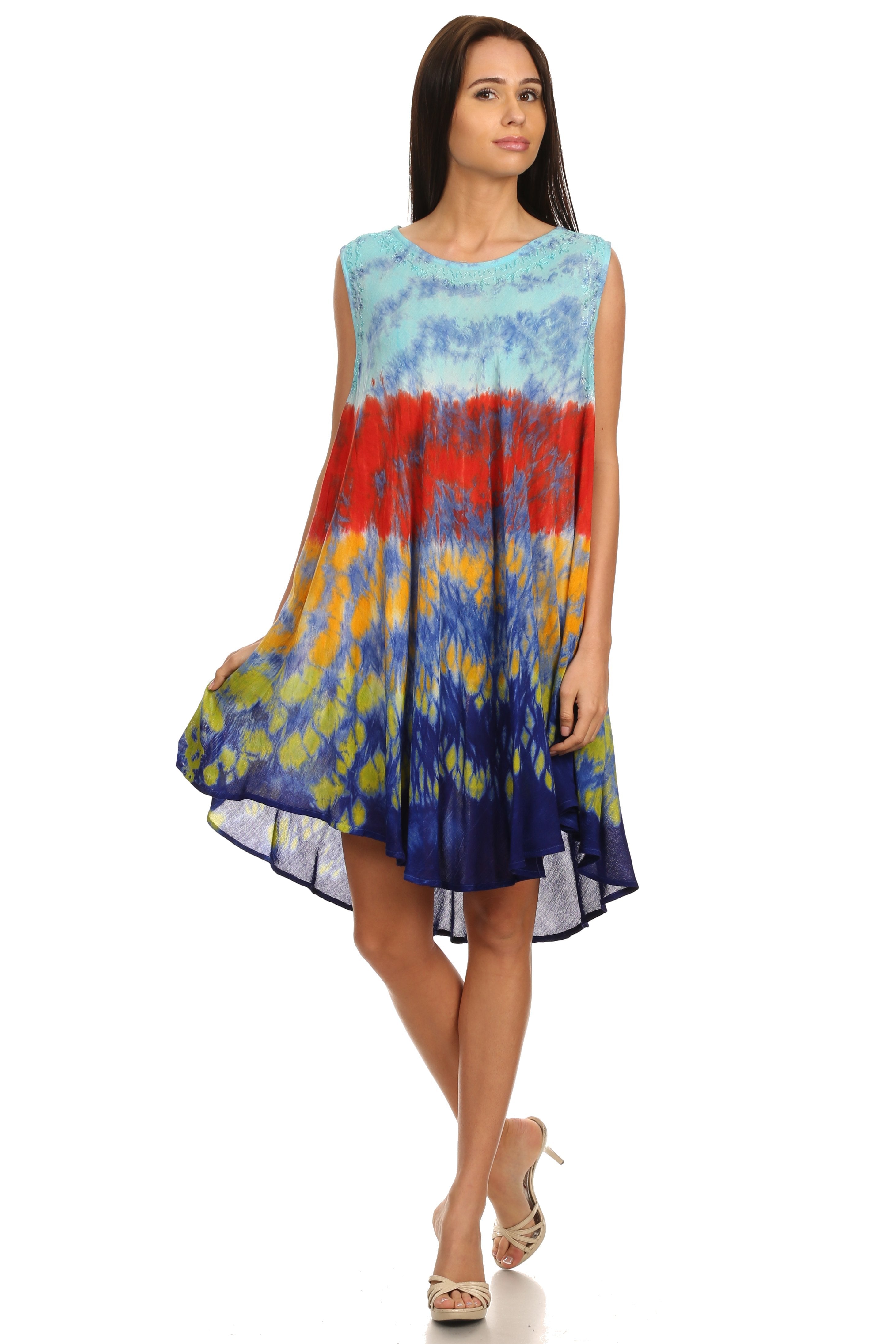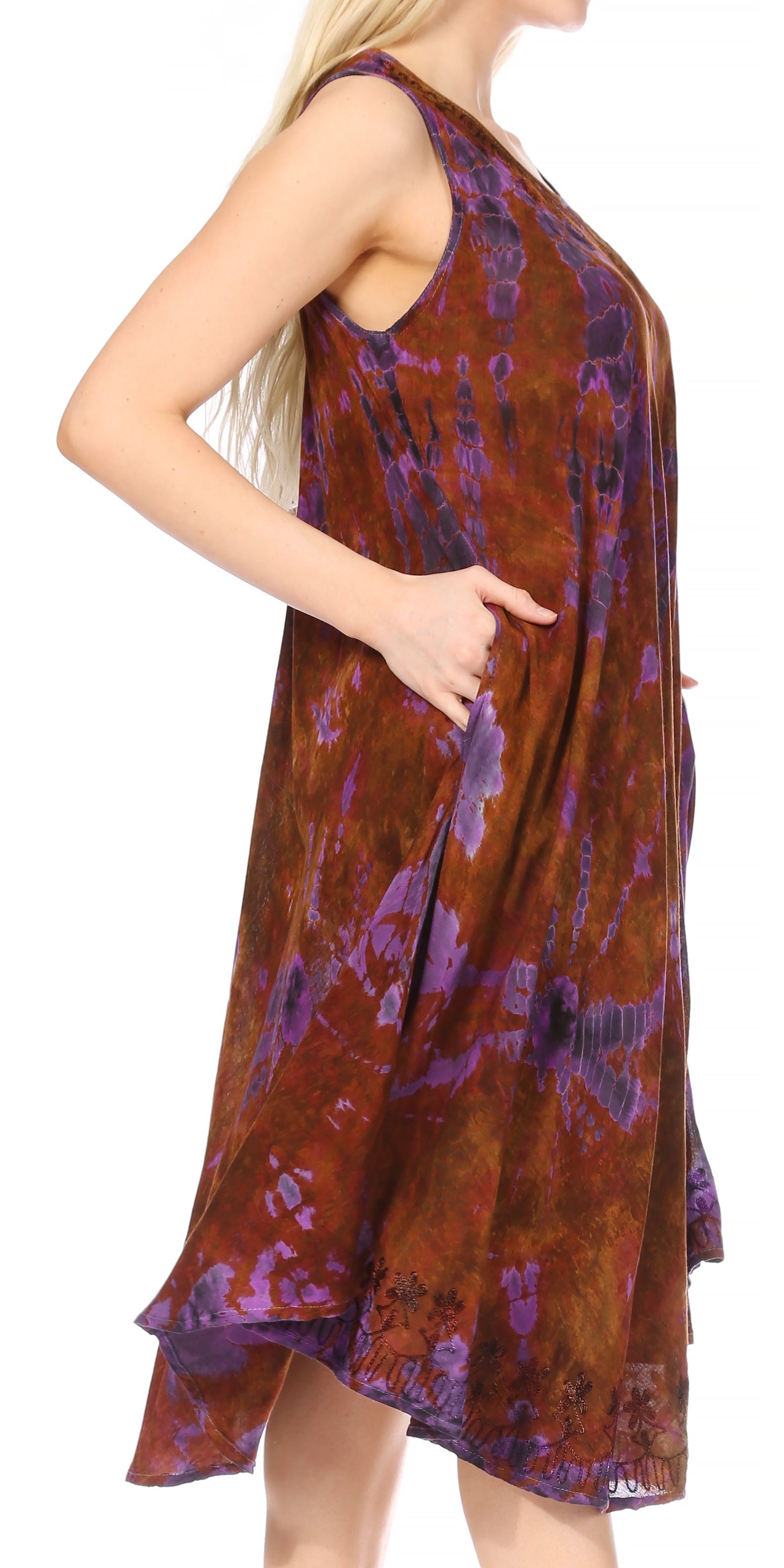 Sakkas Nora Sleeveless Embroidered Short Tie Dye Caftan Dress / Cover Up