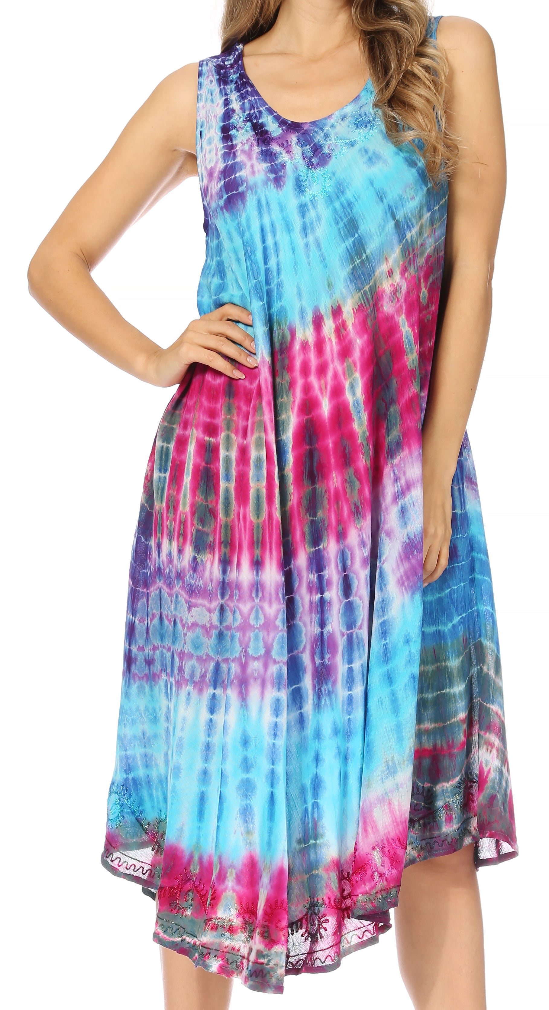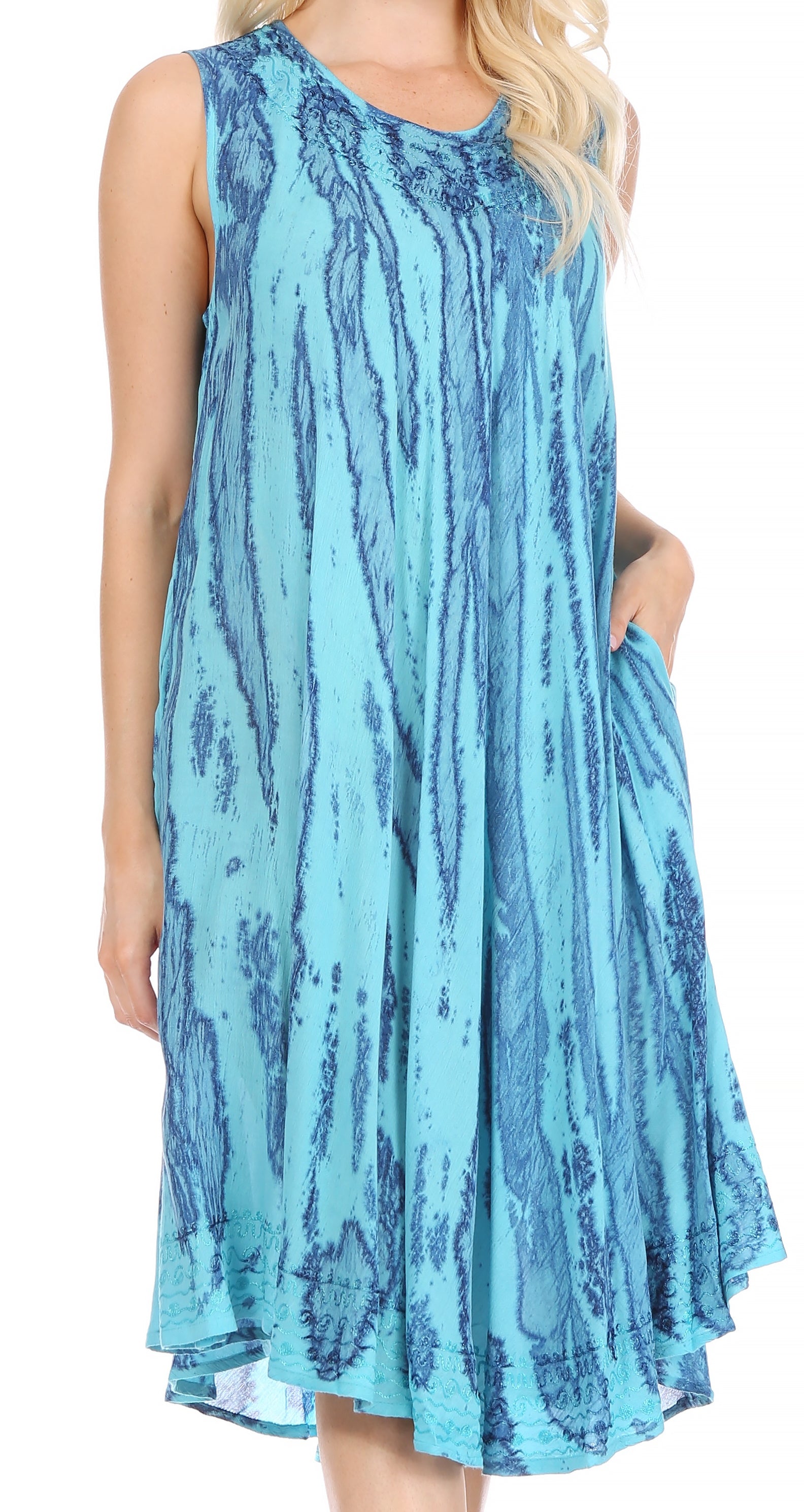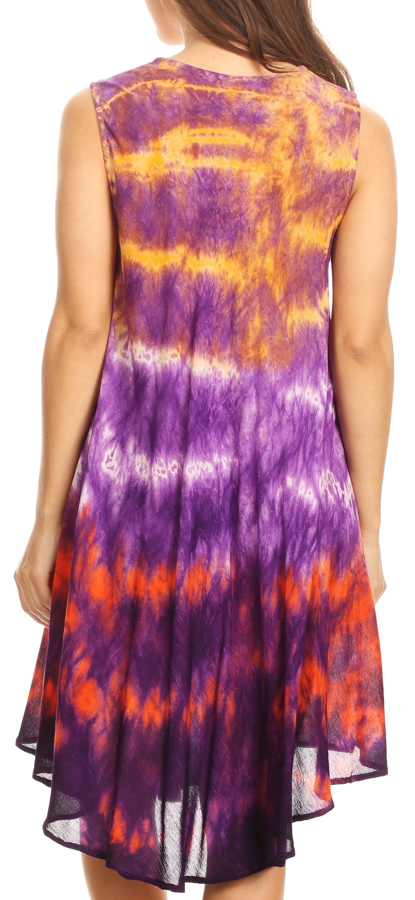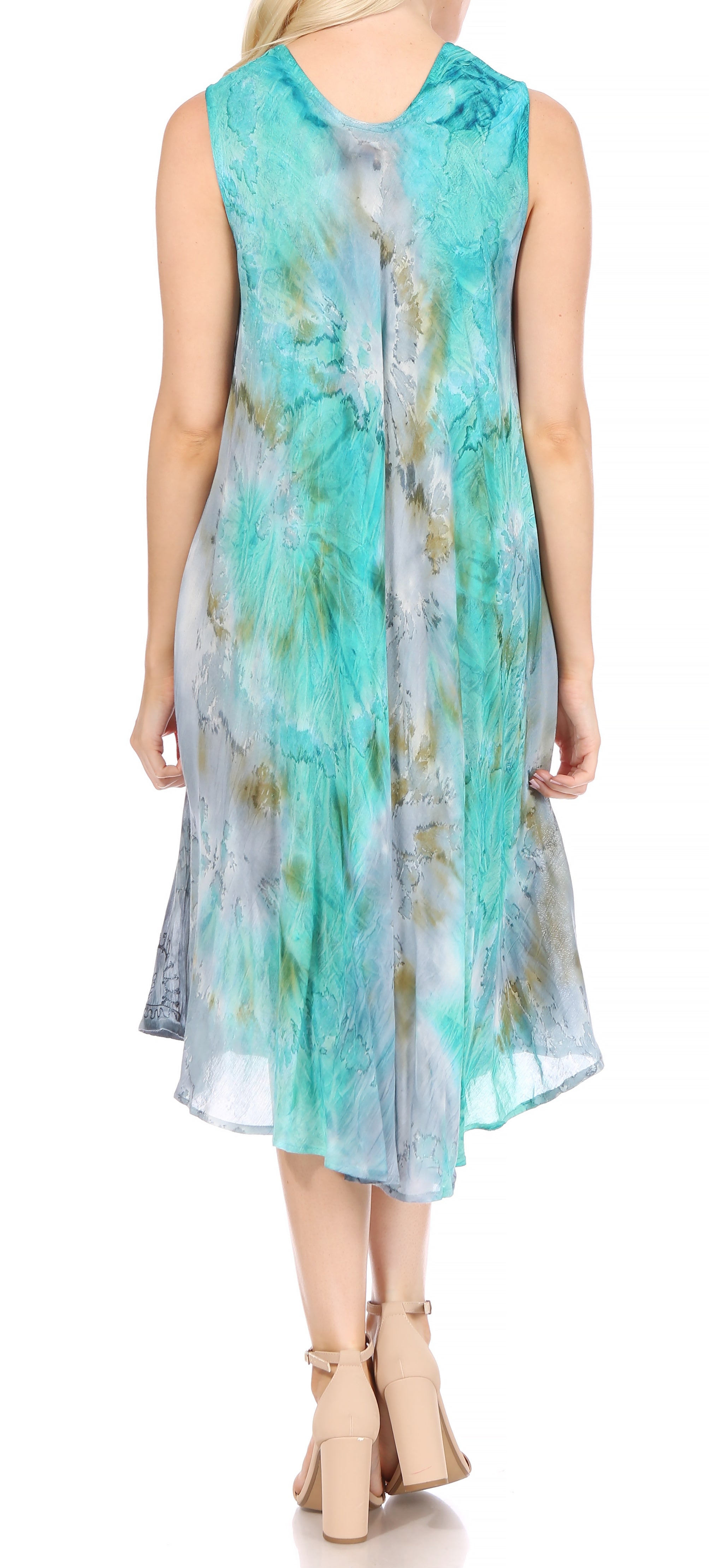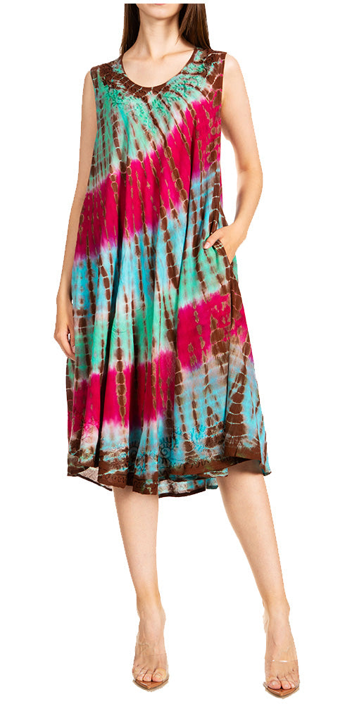 Sakkas Nora Sleeveless Embroidered Short Tie Dye Caftan Dress / Cover Up
