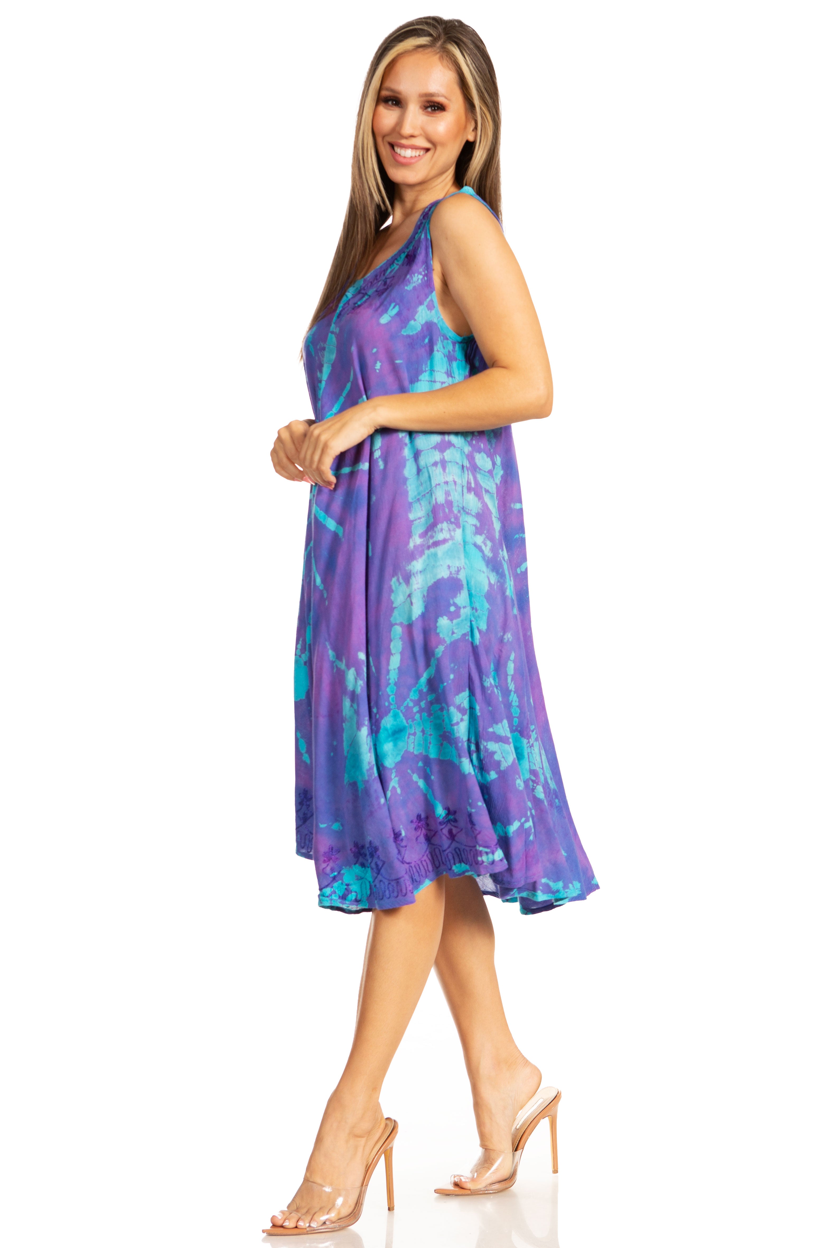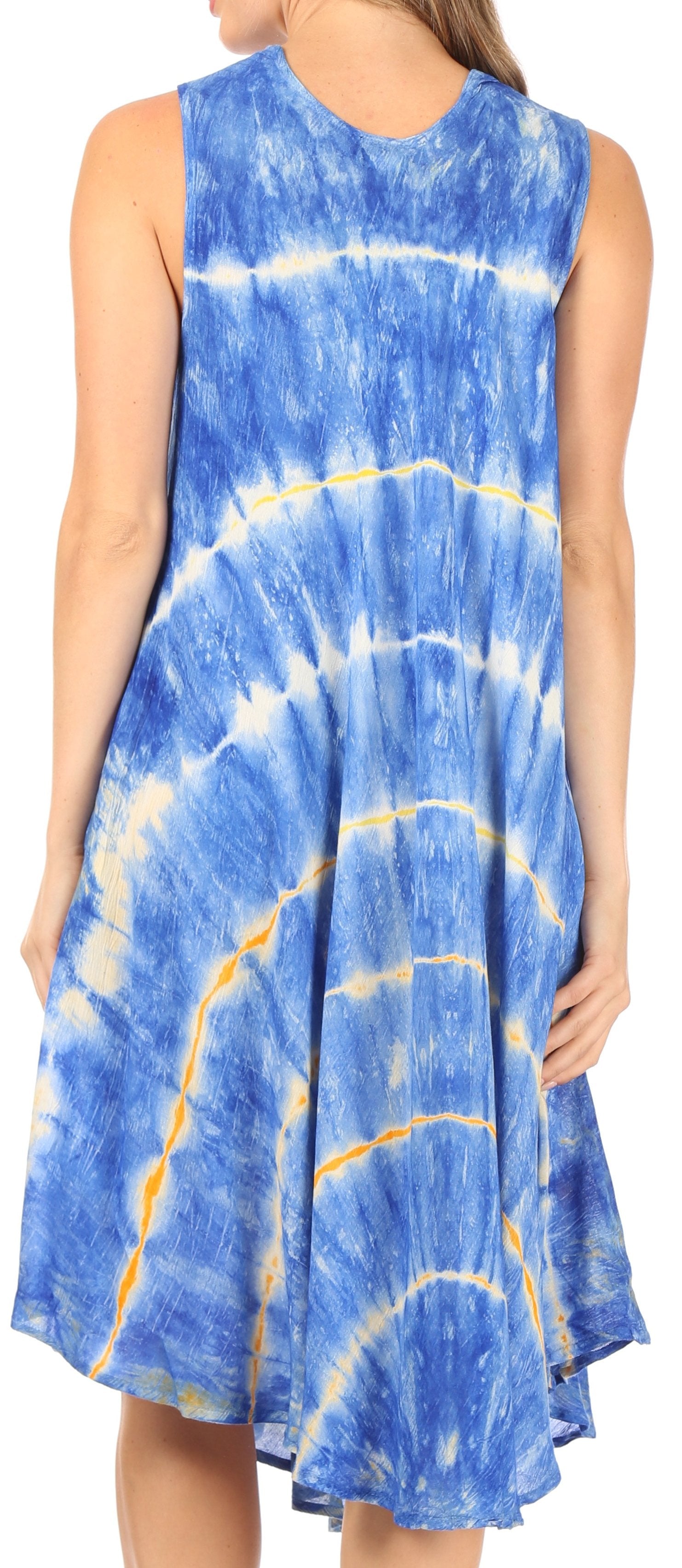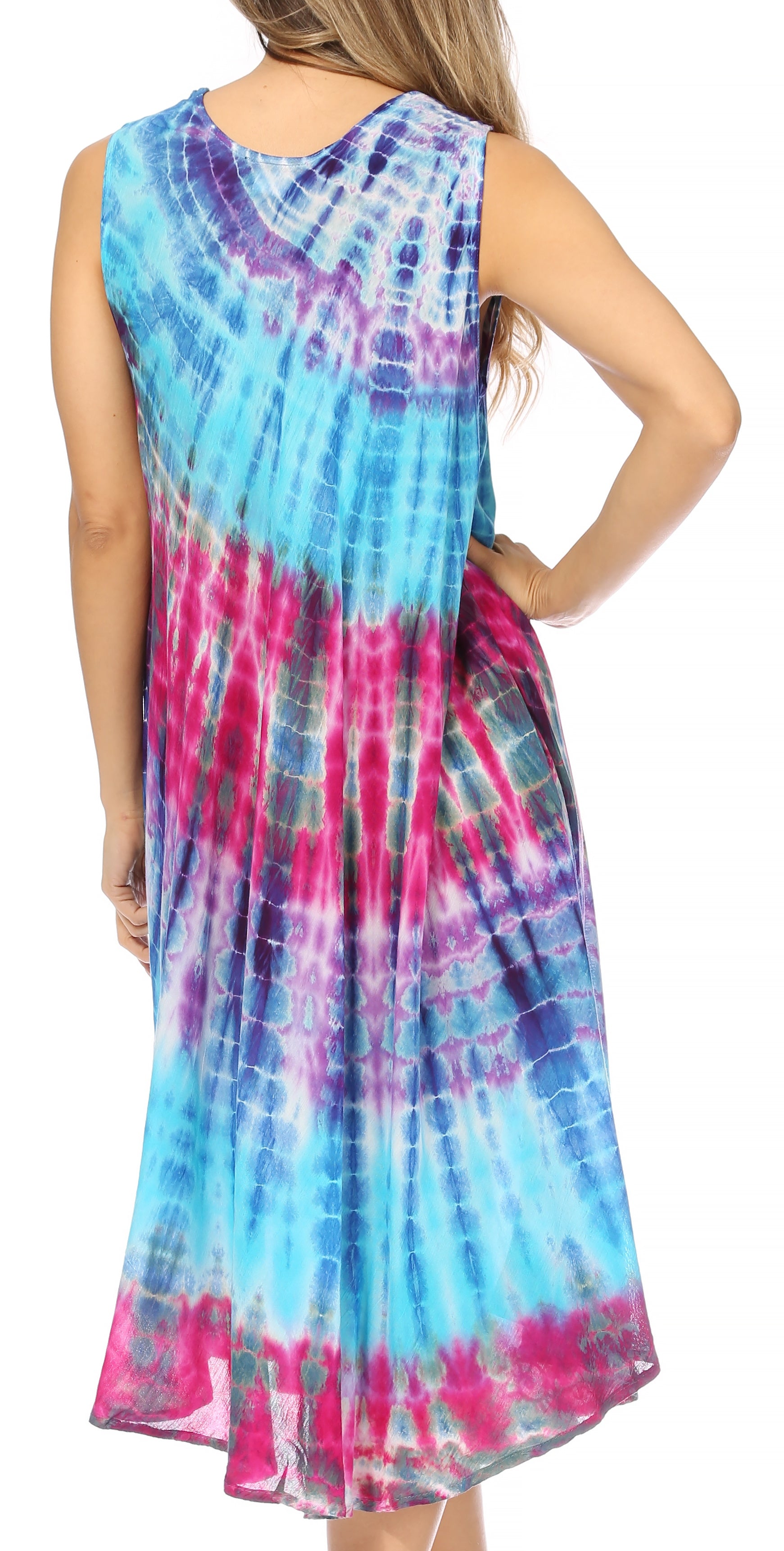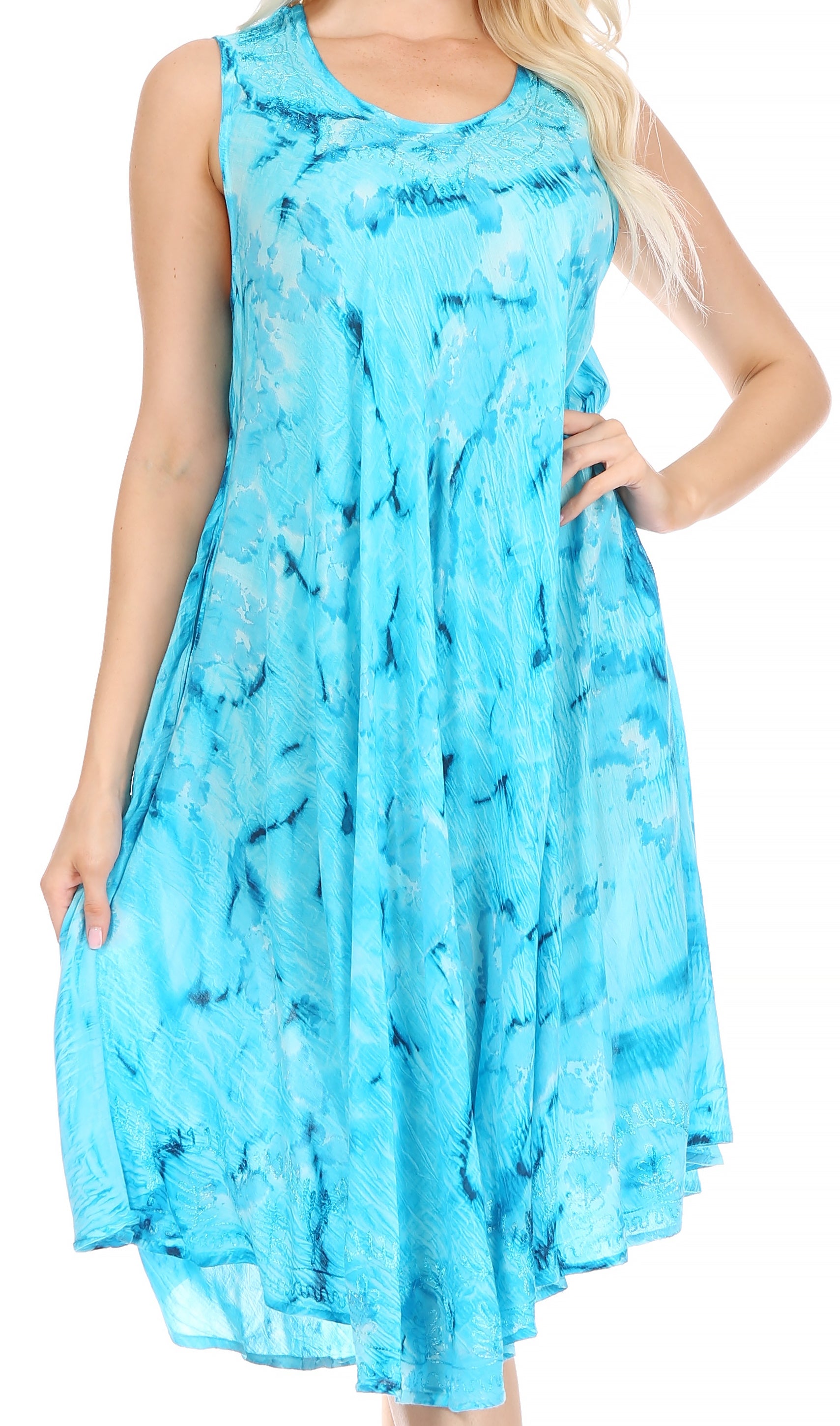Sakkas Nora Sleeveless Embroidered Short Tie Dye Caftan Dress / Cover Up