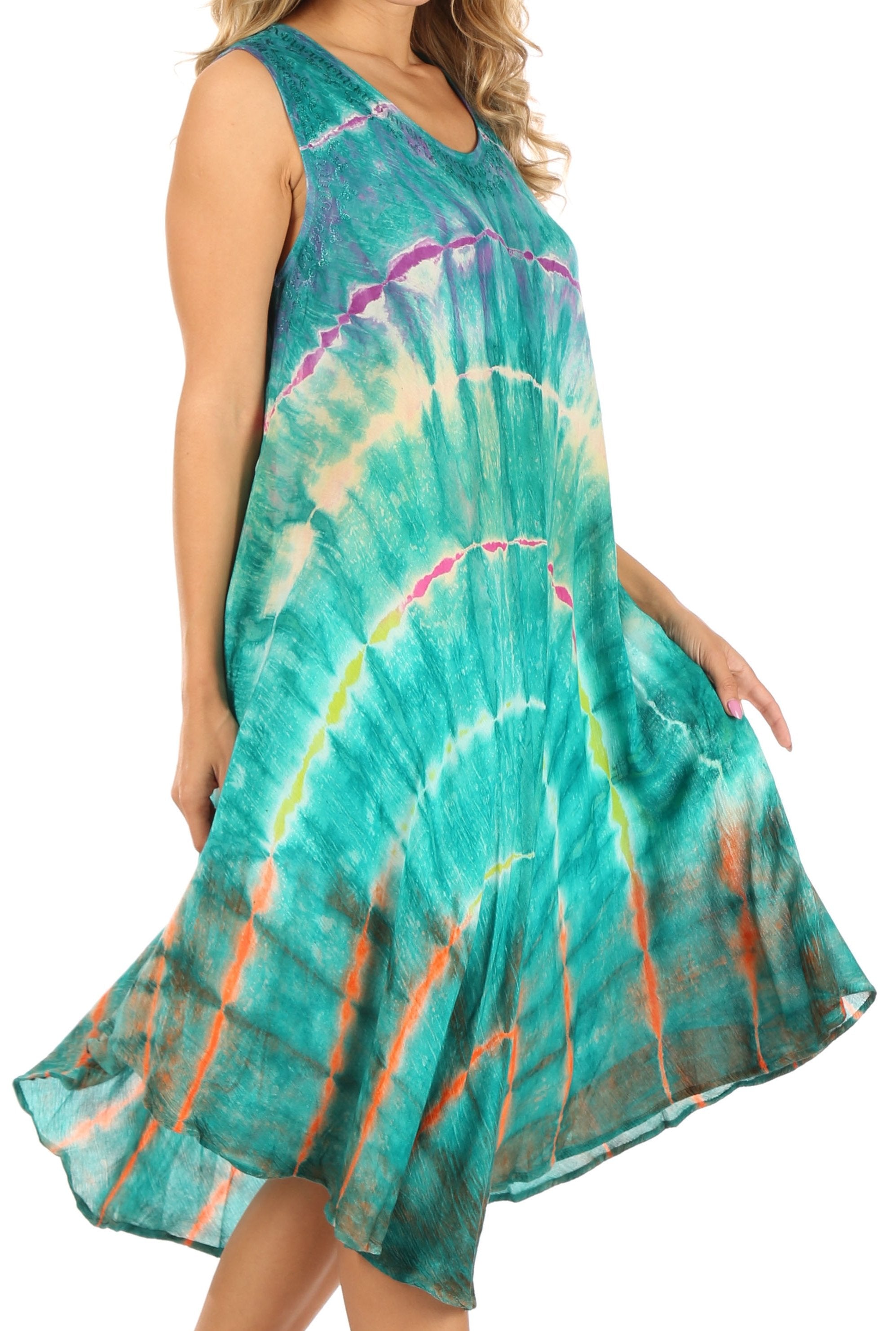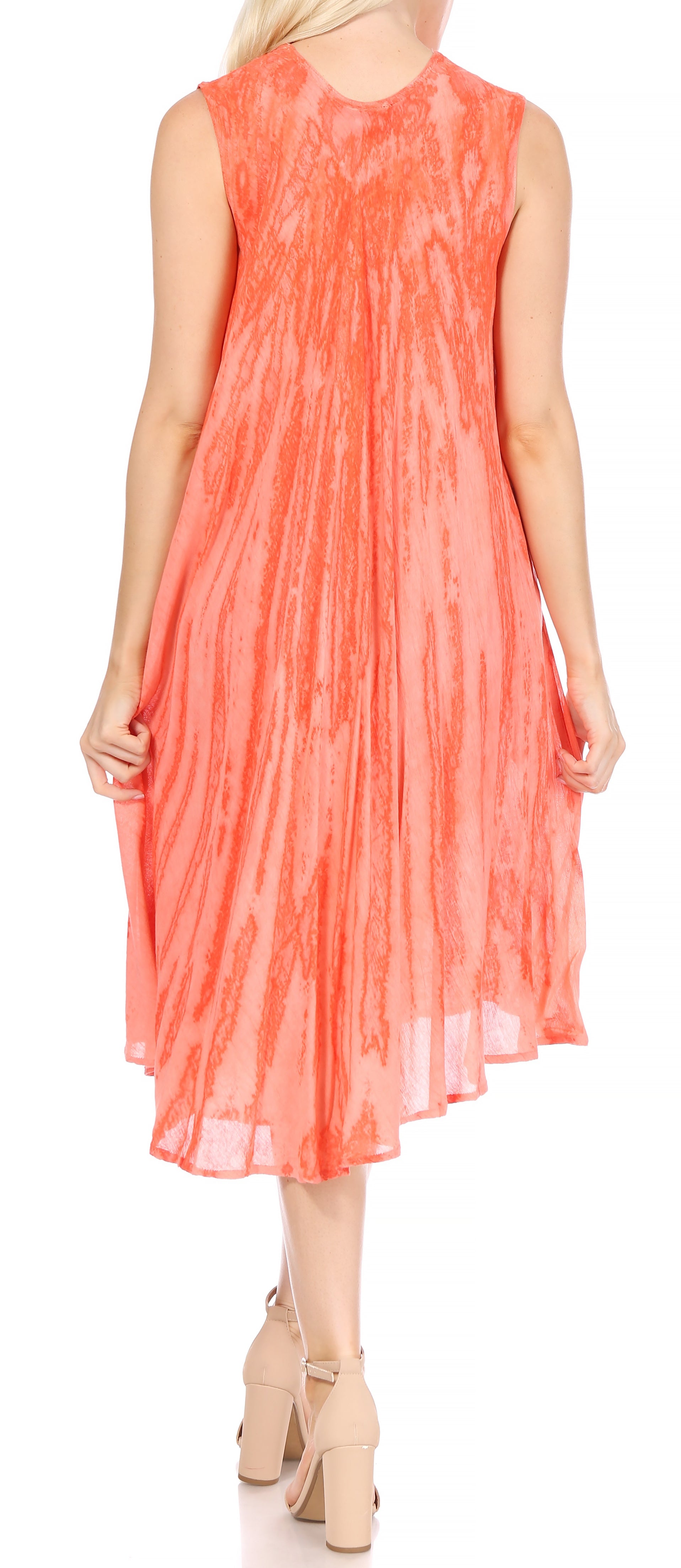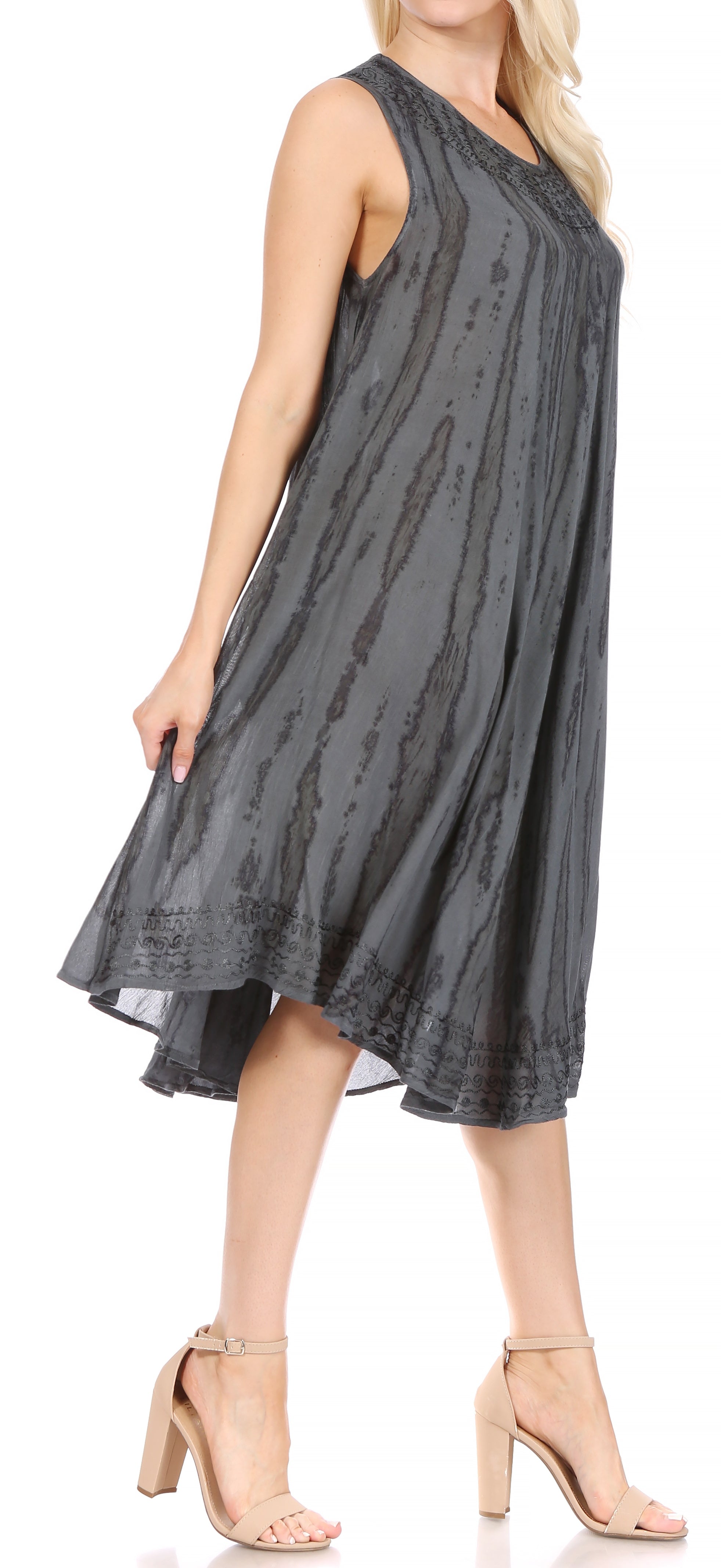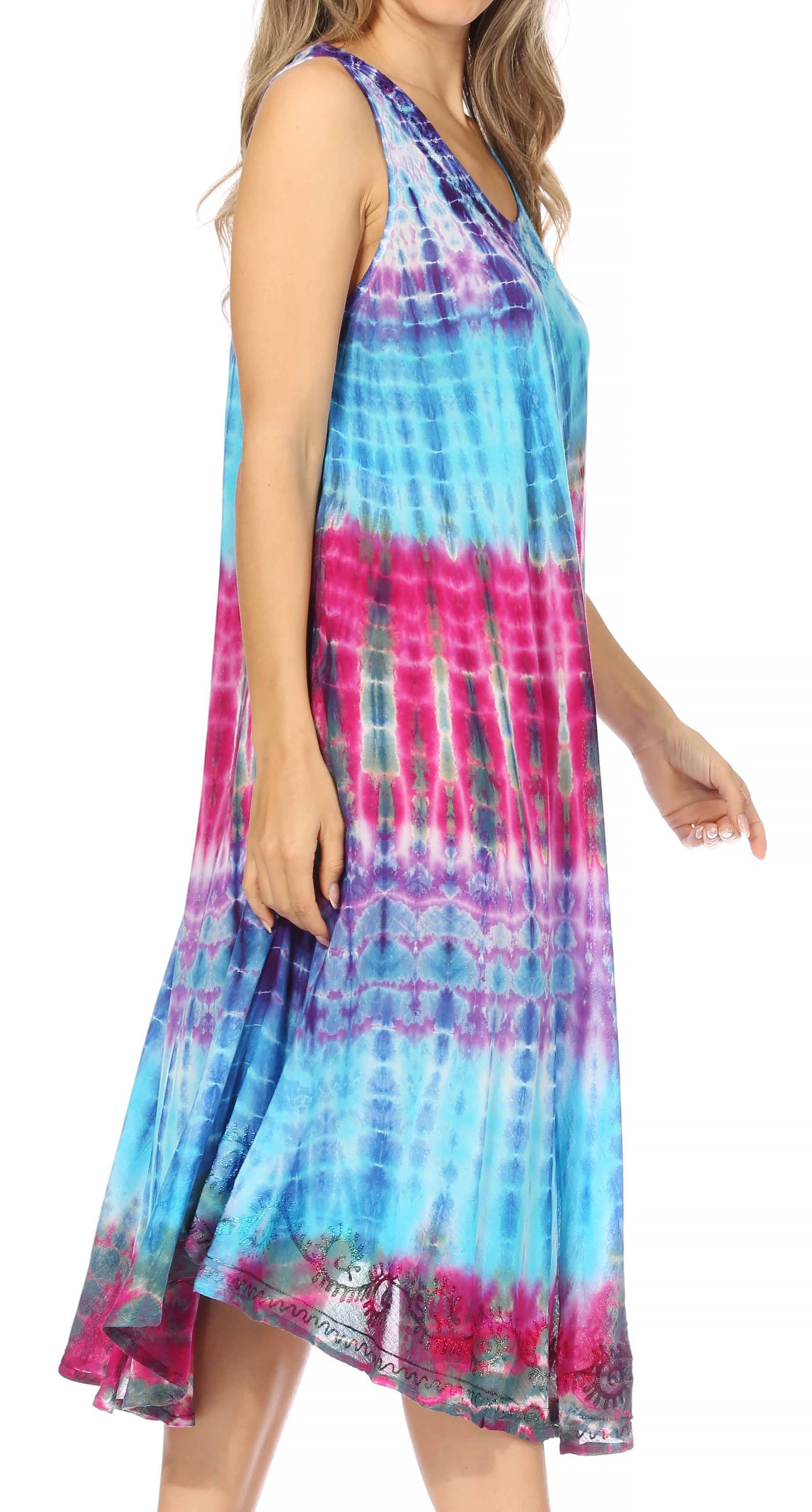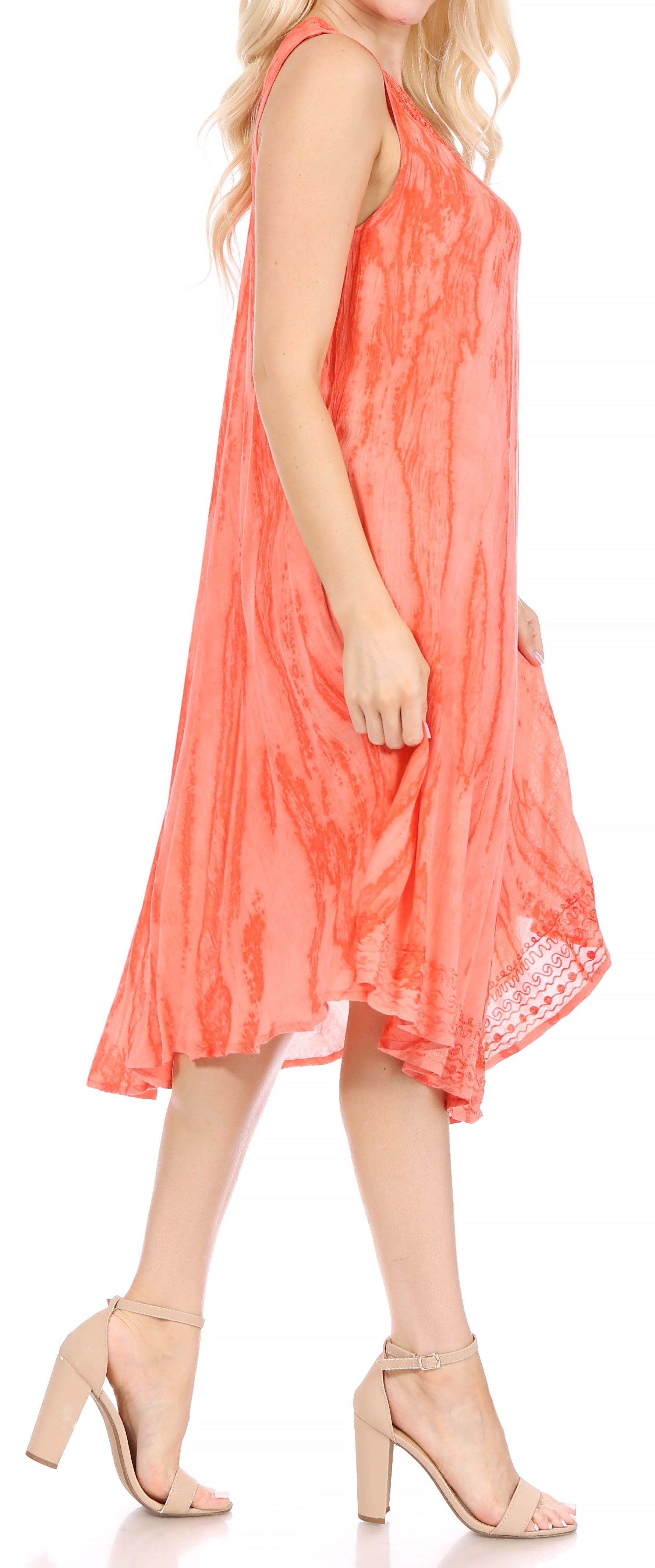 Sakkas Nora Sleeveless Embroidered Short Tie Dye Caftan Dress / Cover Up