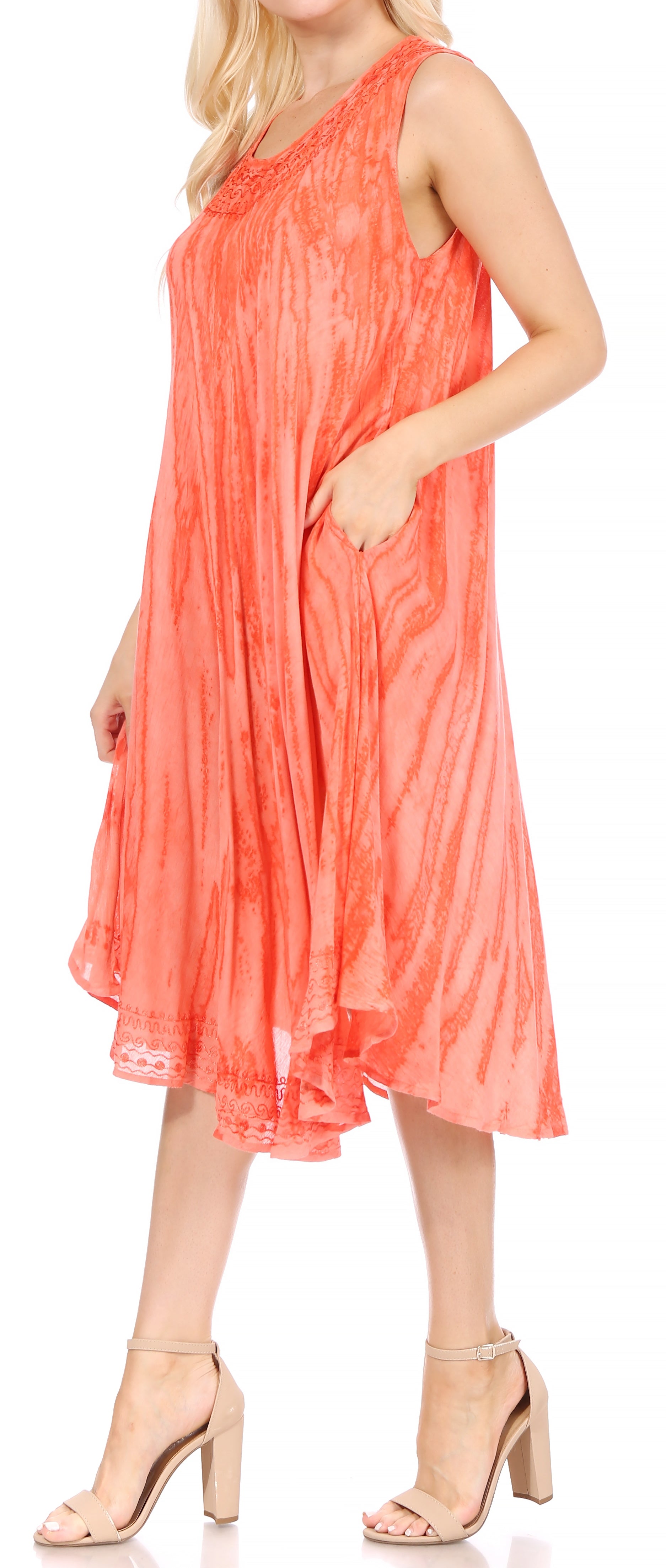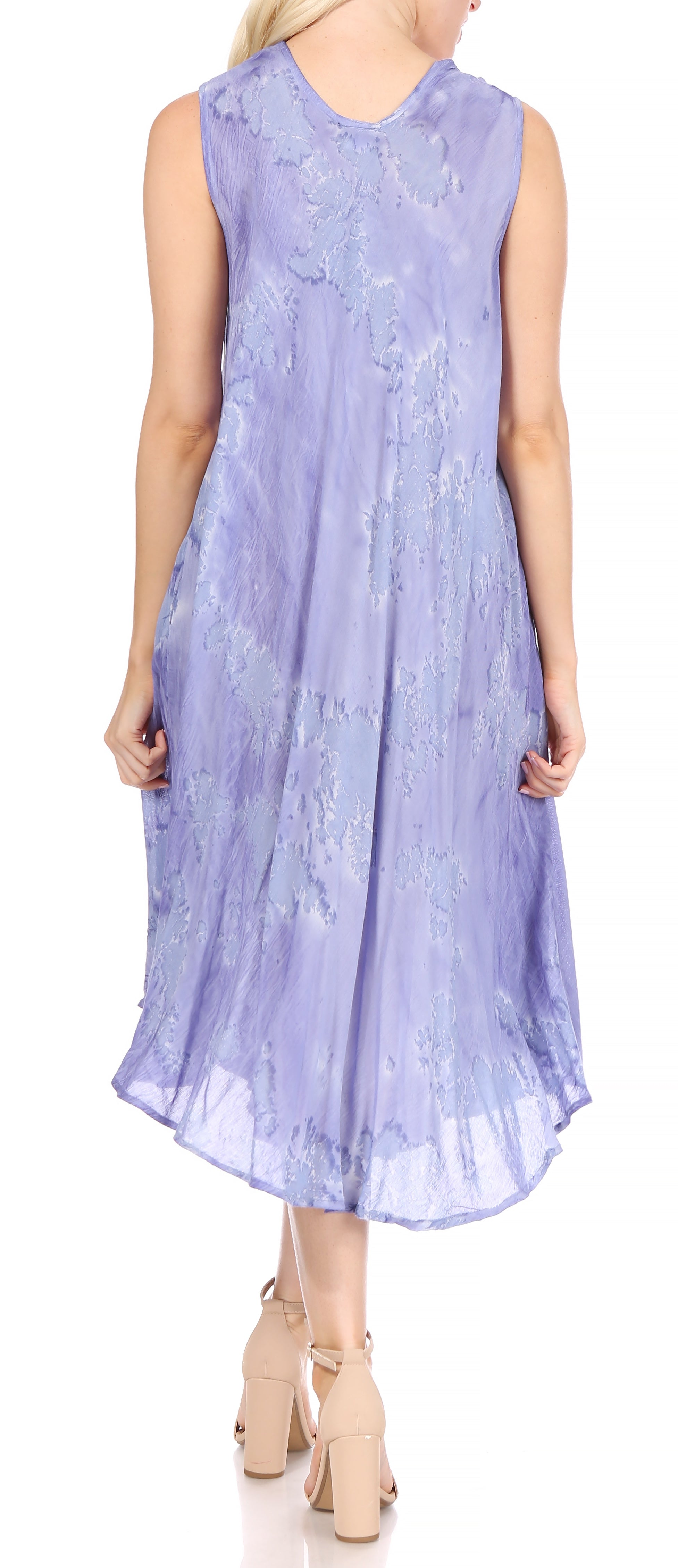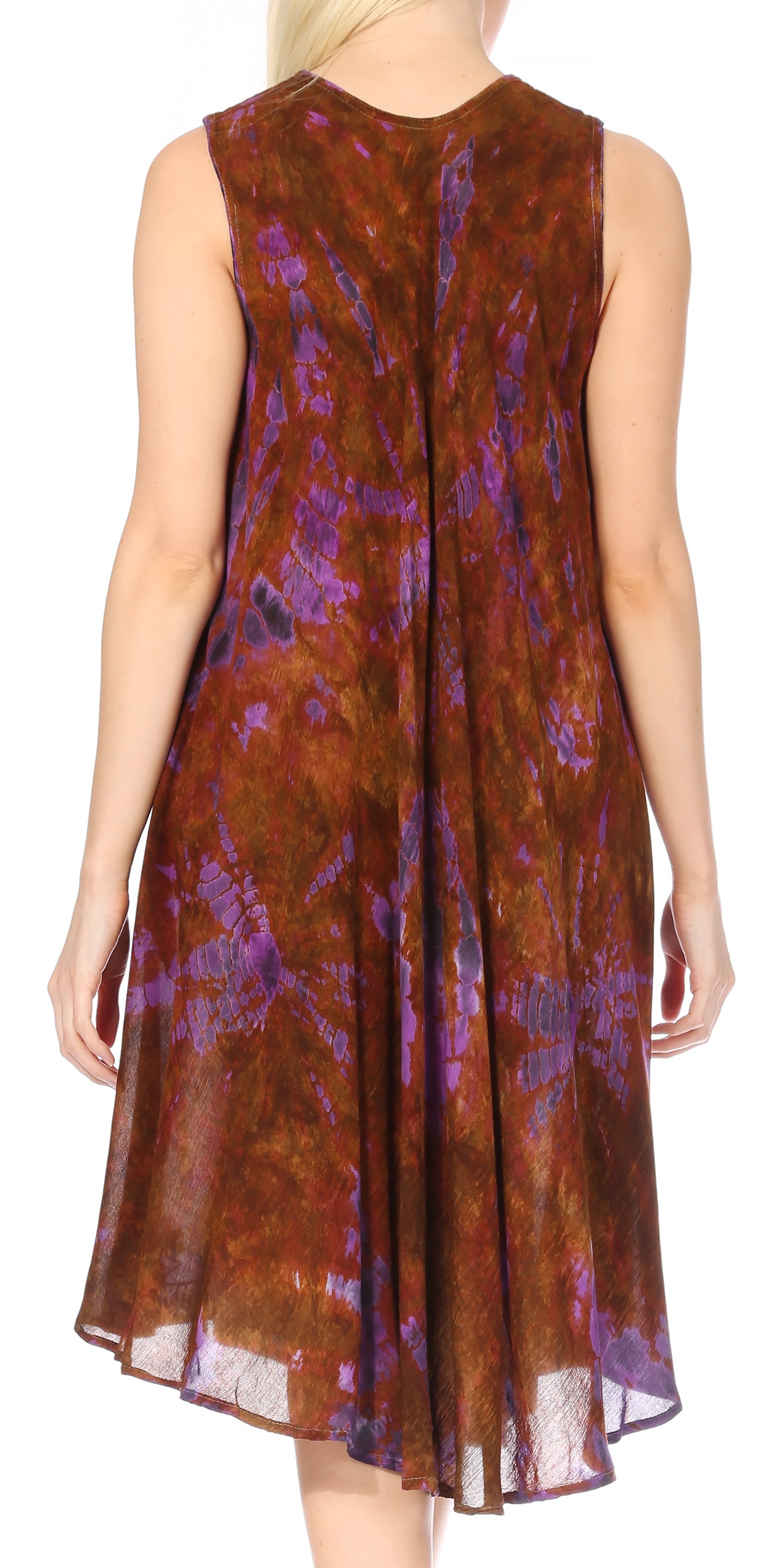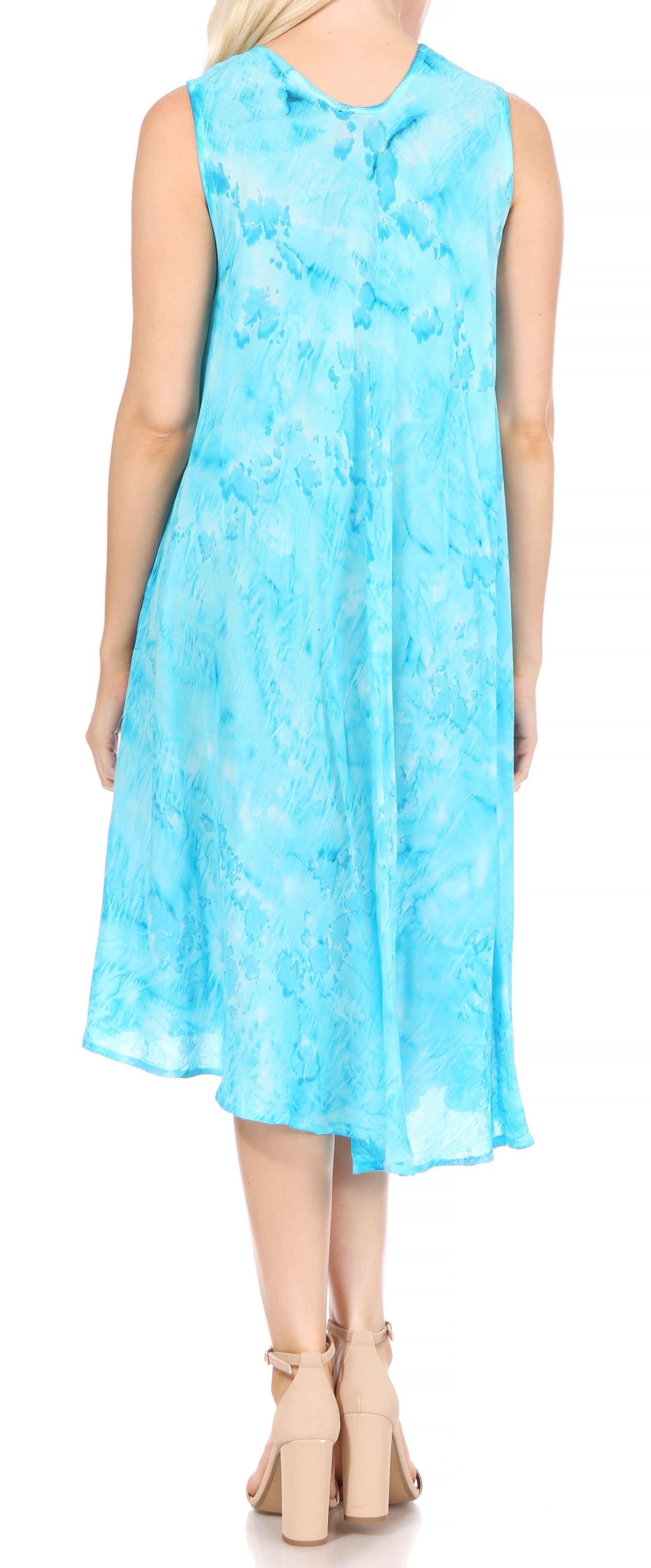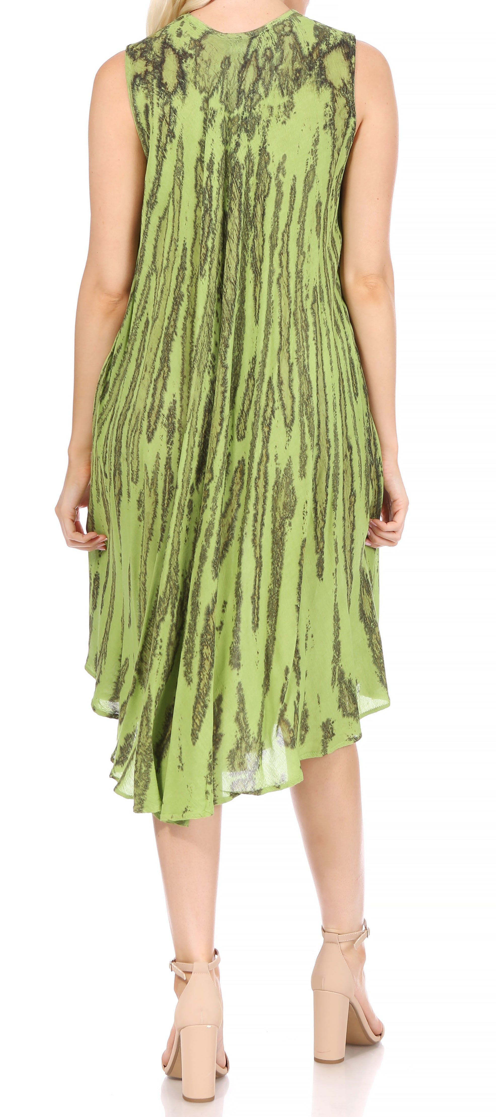 Sakkas Nora Sleeveless Embroidered Short Tie Dye Caftan Dress / Cover Up