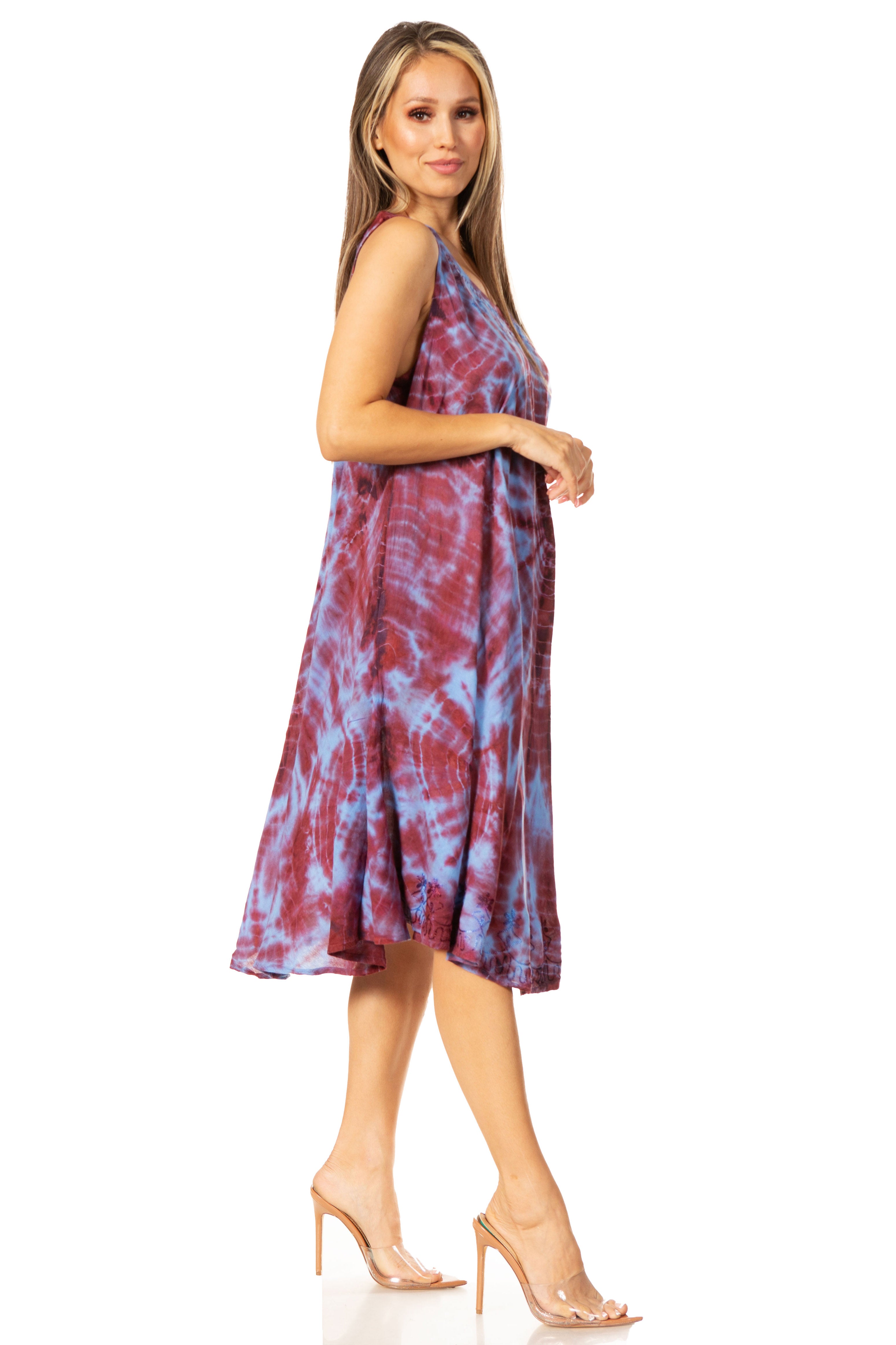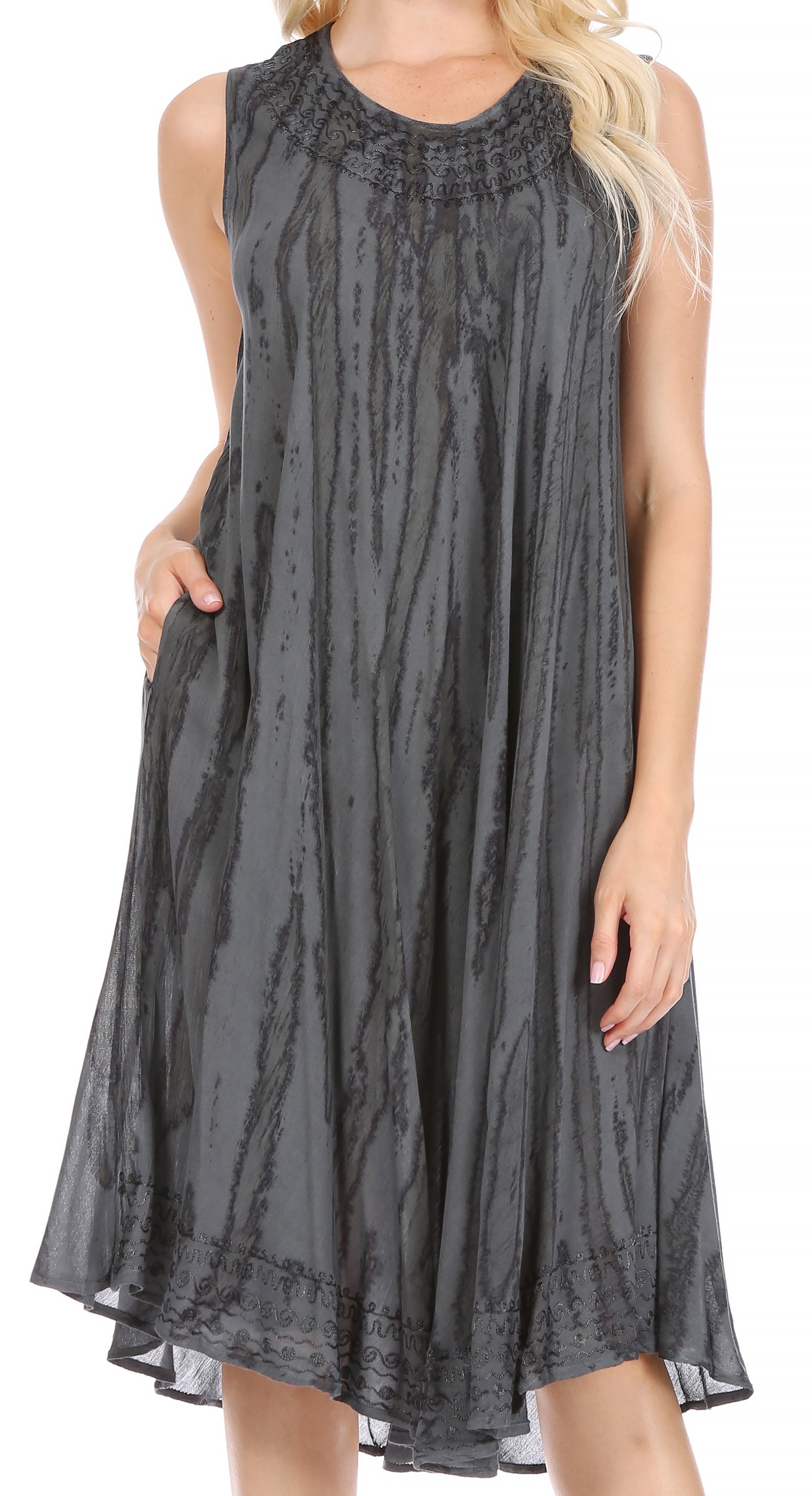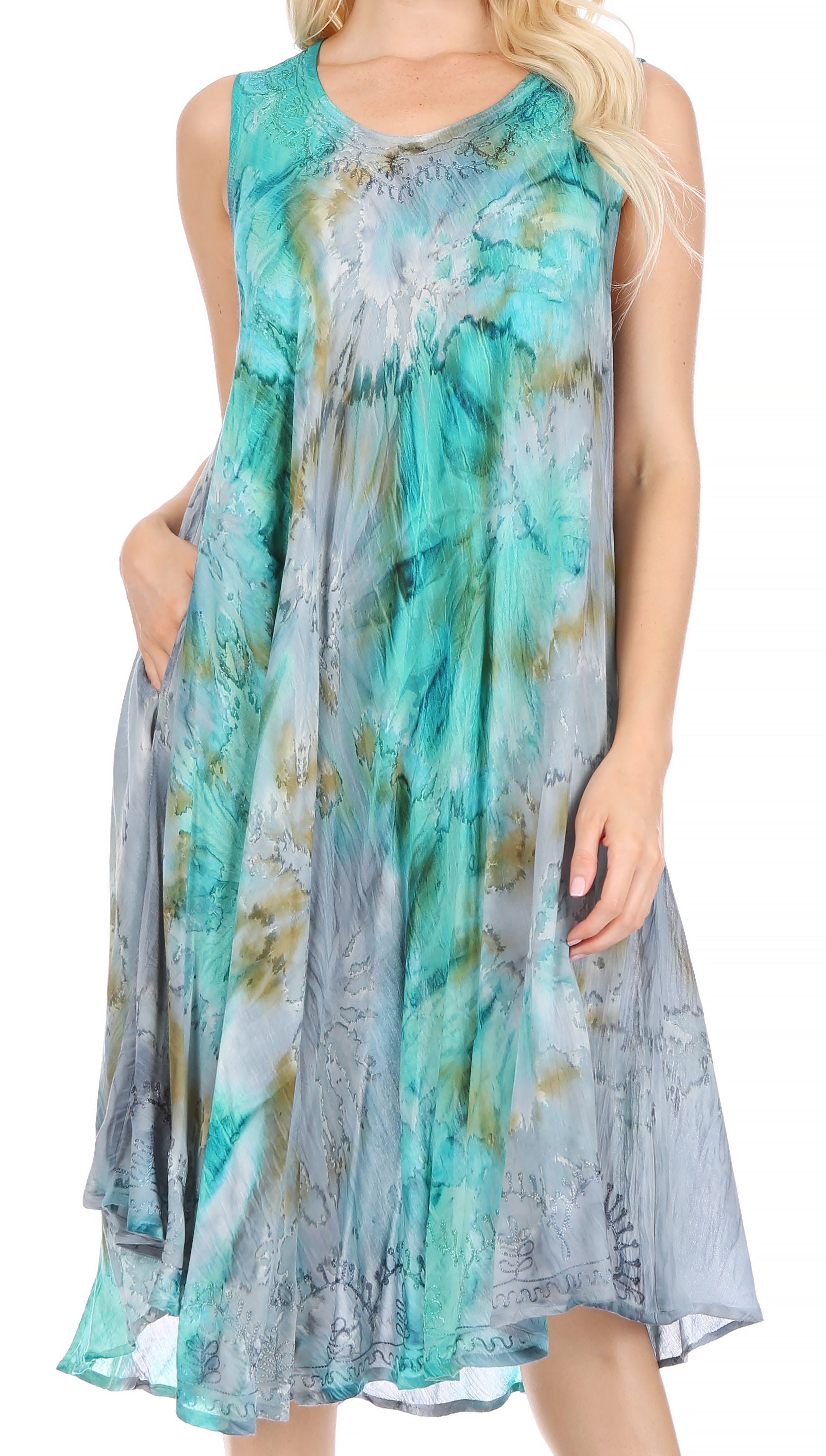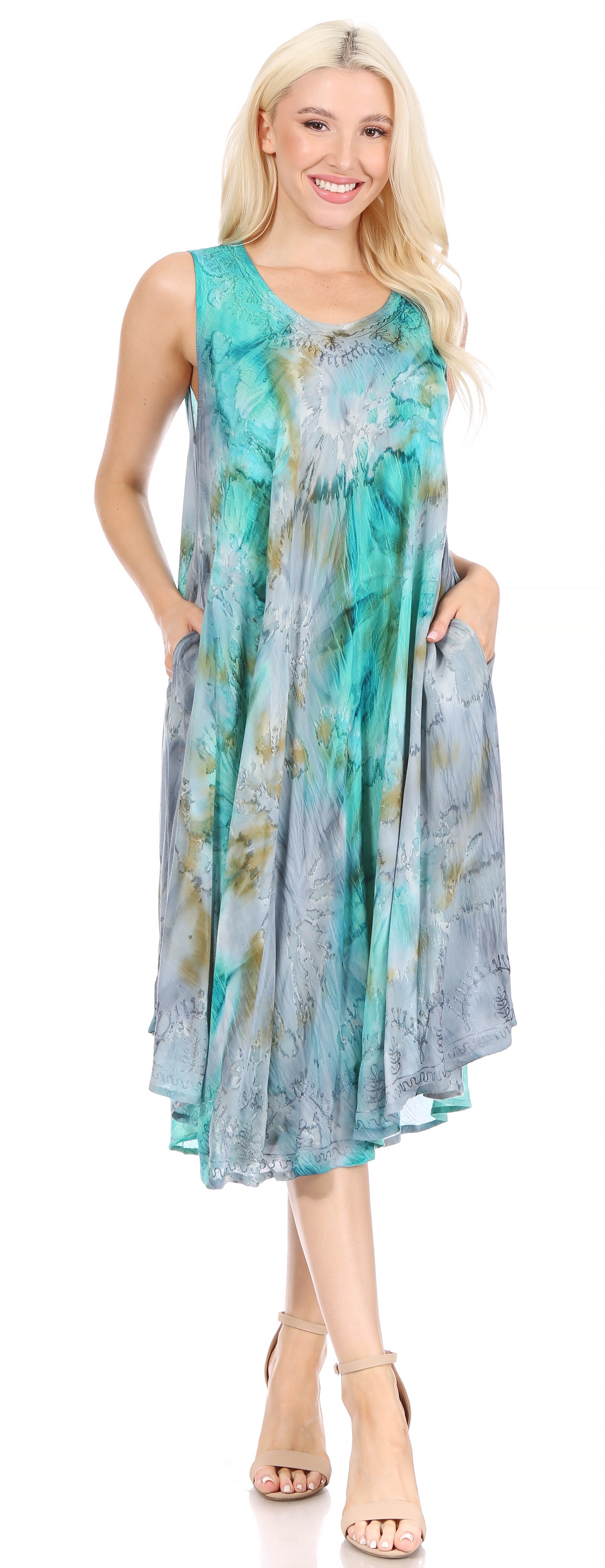 Sakkas Nora Sleeveless Embroidered Short Tie Dye Caftan Dress / Cover Up