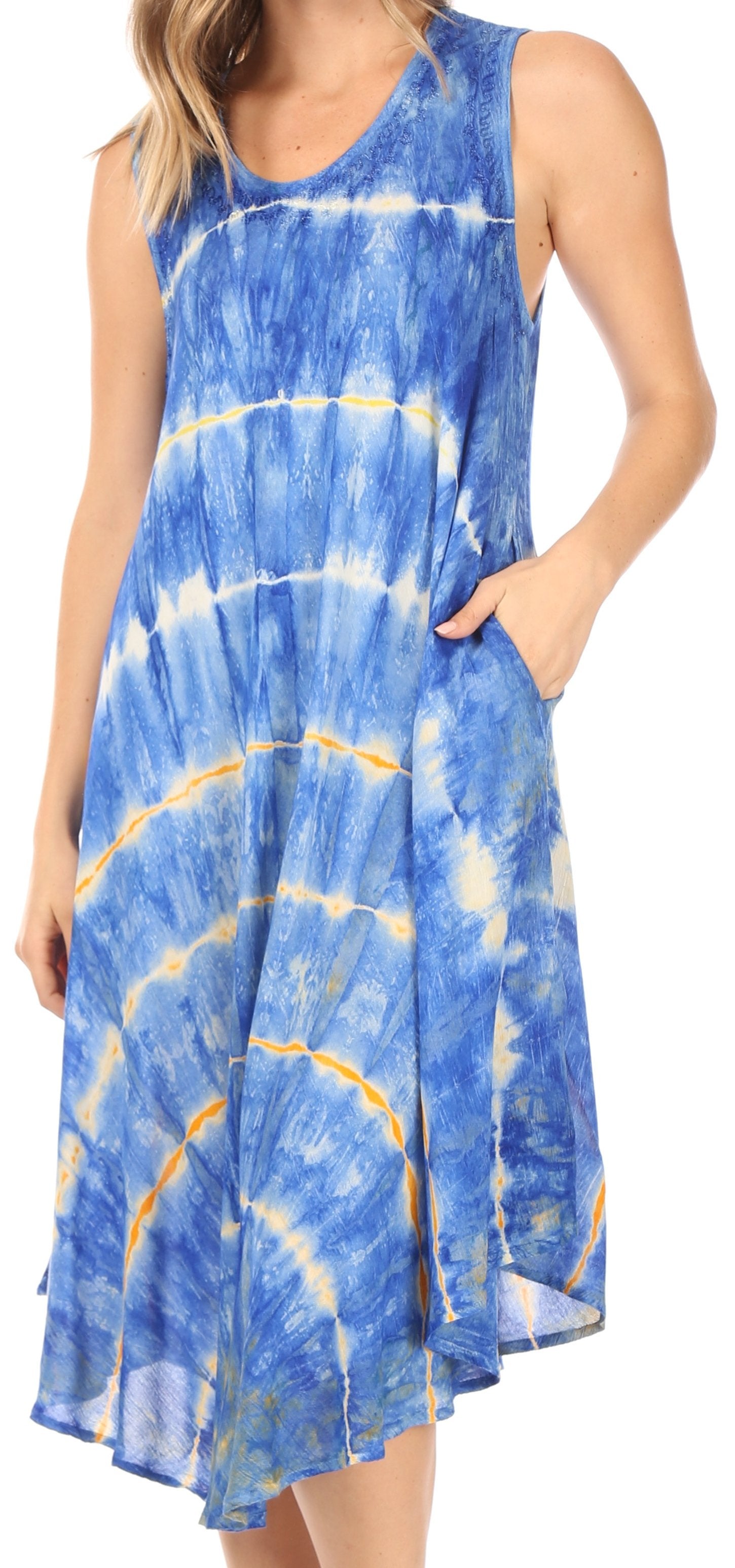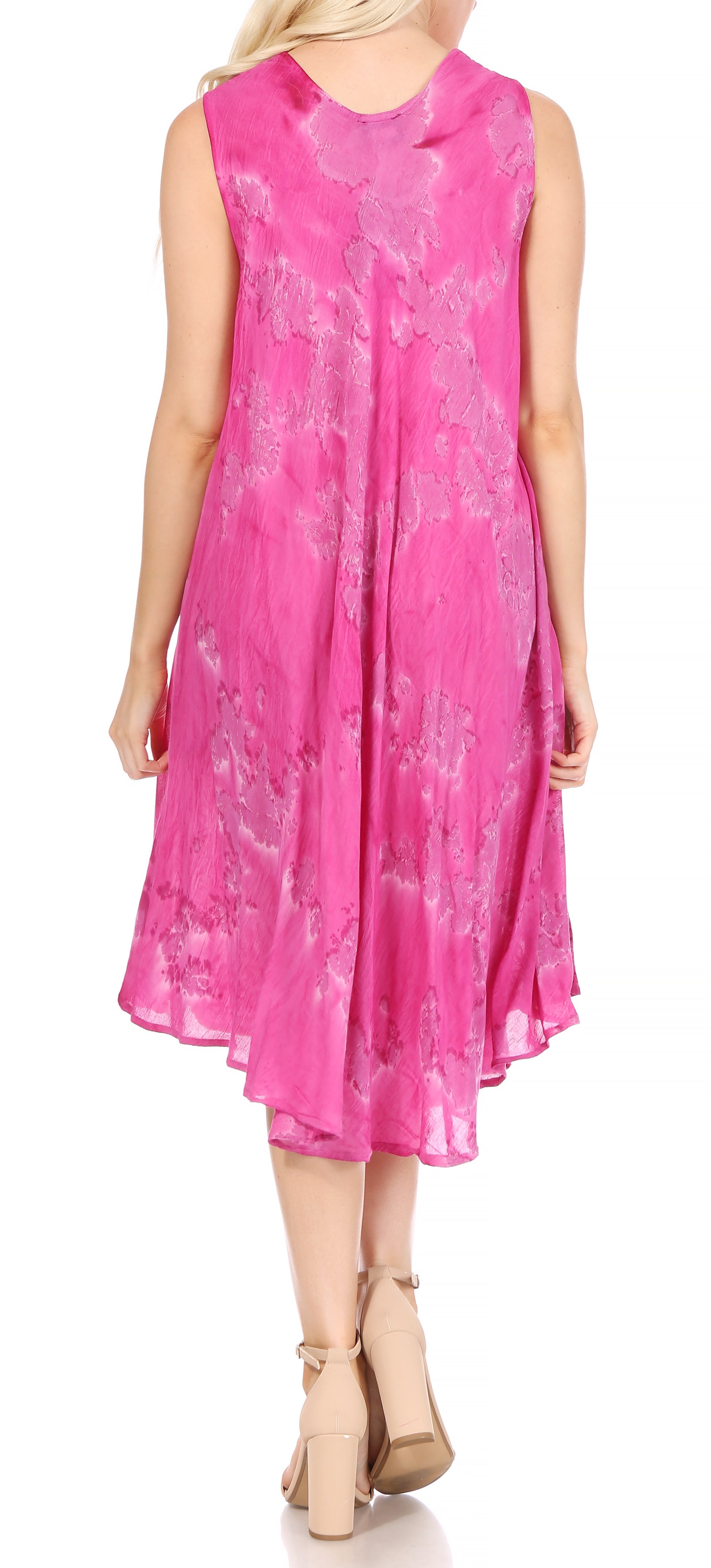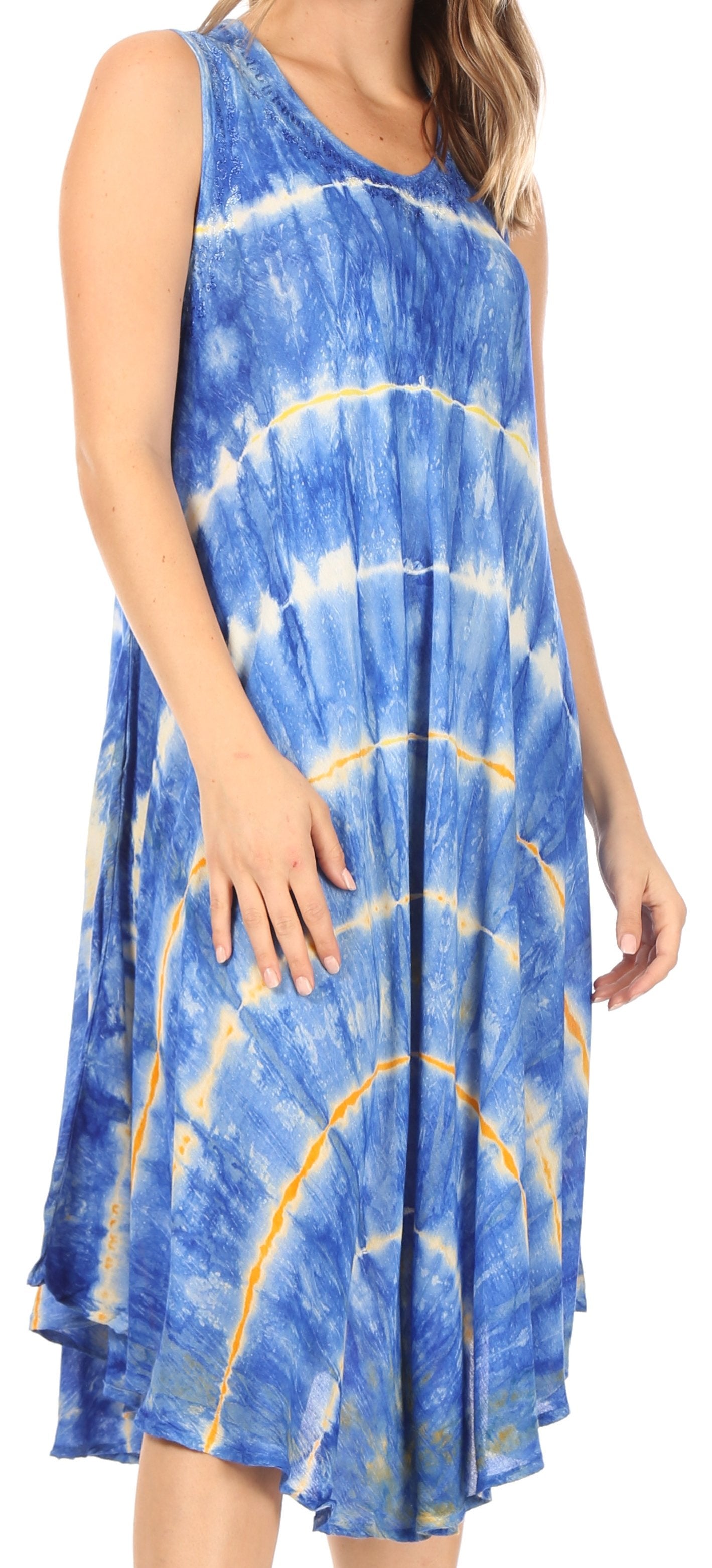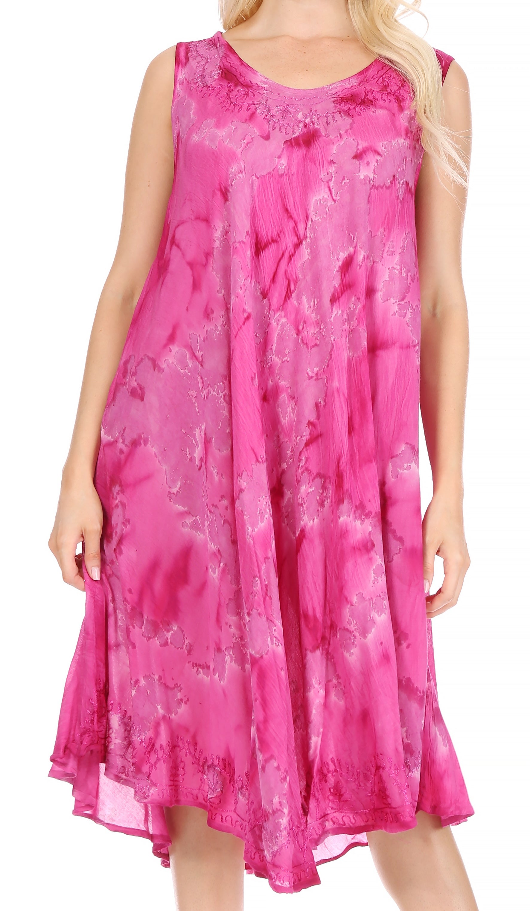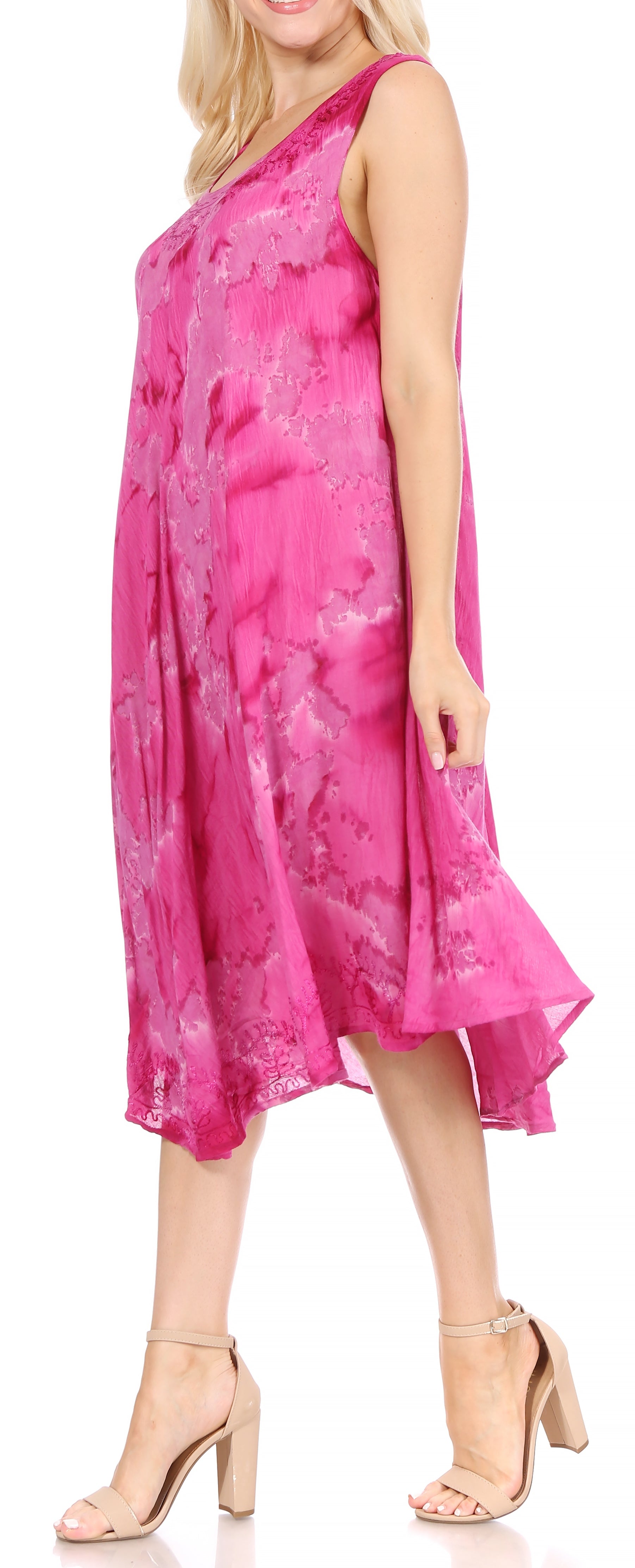 Sakkas Nora Sleeveless Embroidered Short Tie Dye Caftan Dress / Cover Up