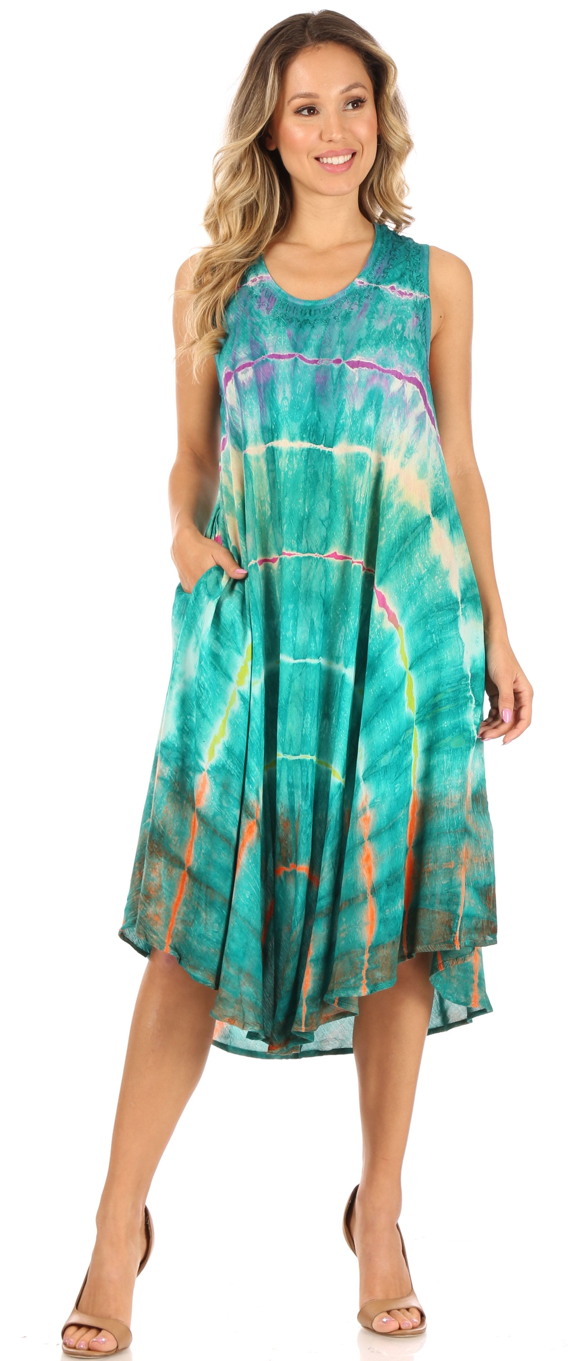 • Sleeveless maxi dresses features beautiful multicolored tie-dye pattern and embroidered details.