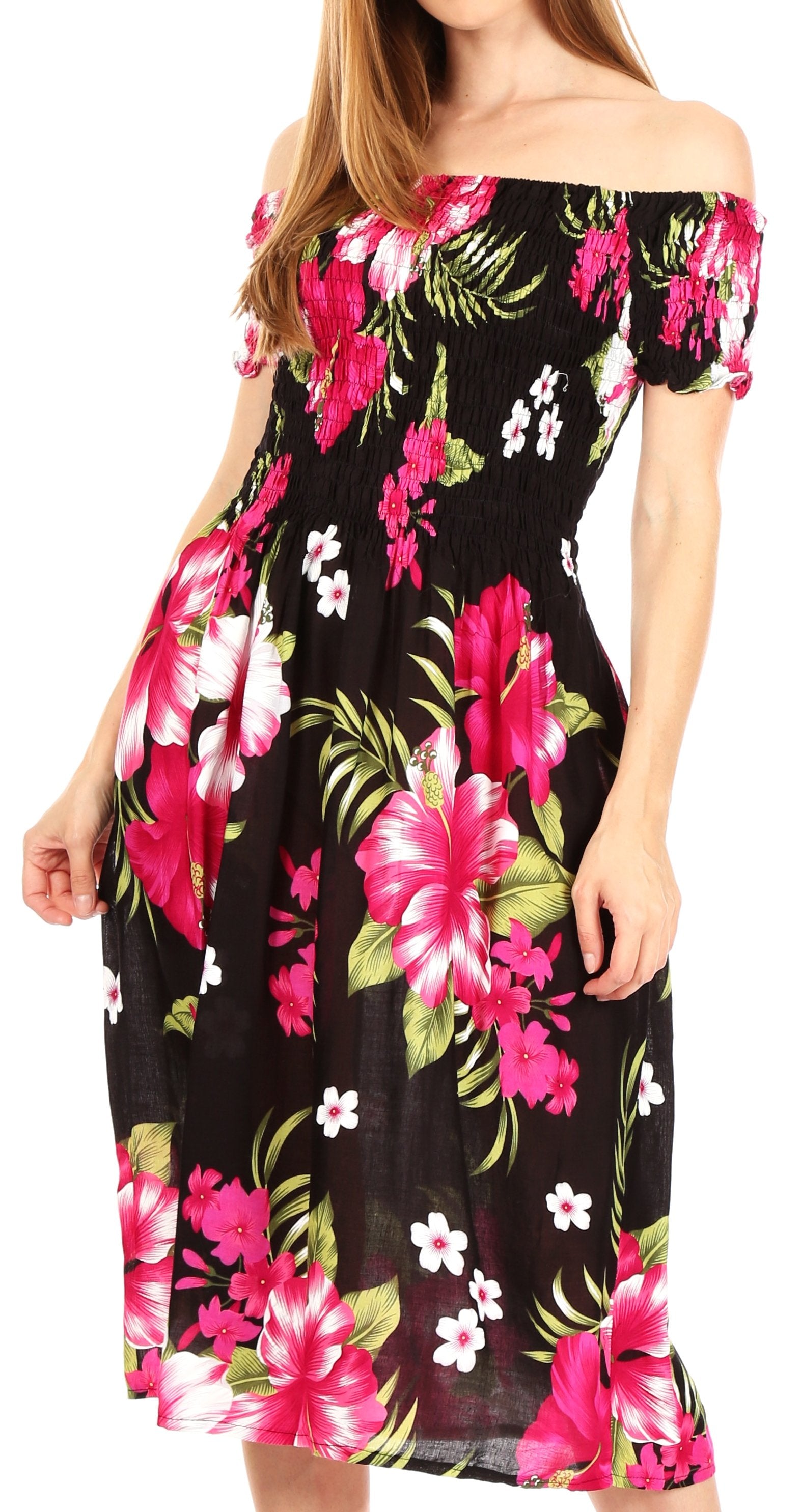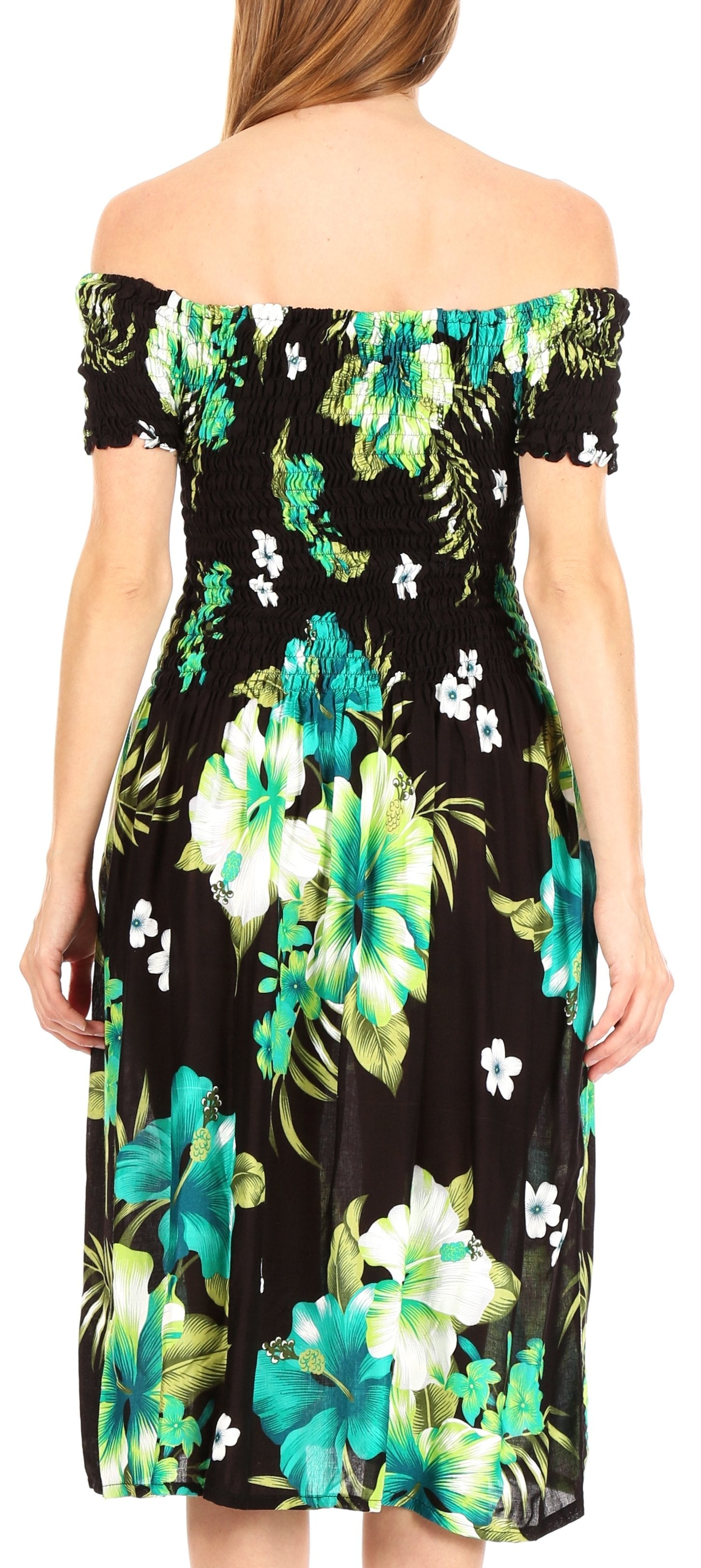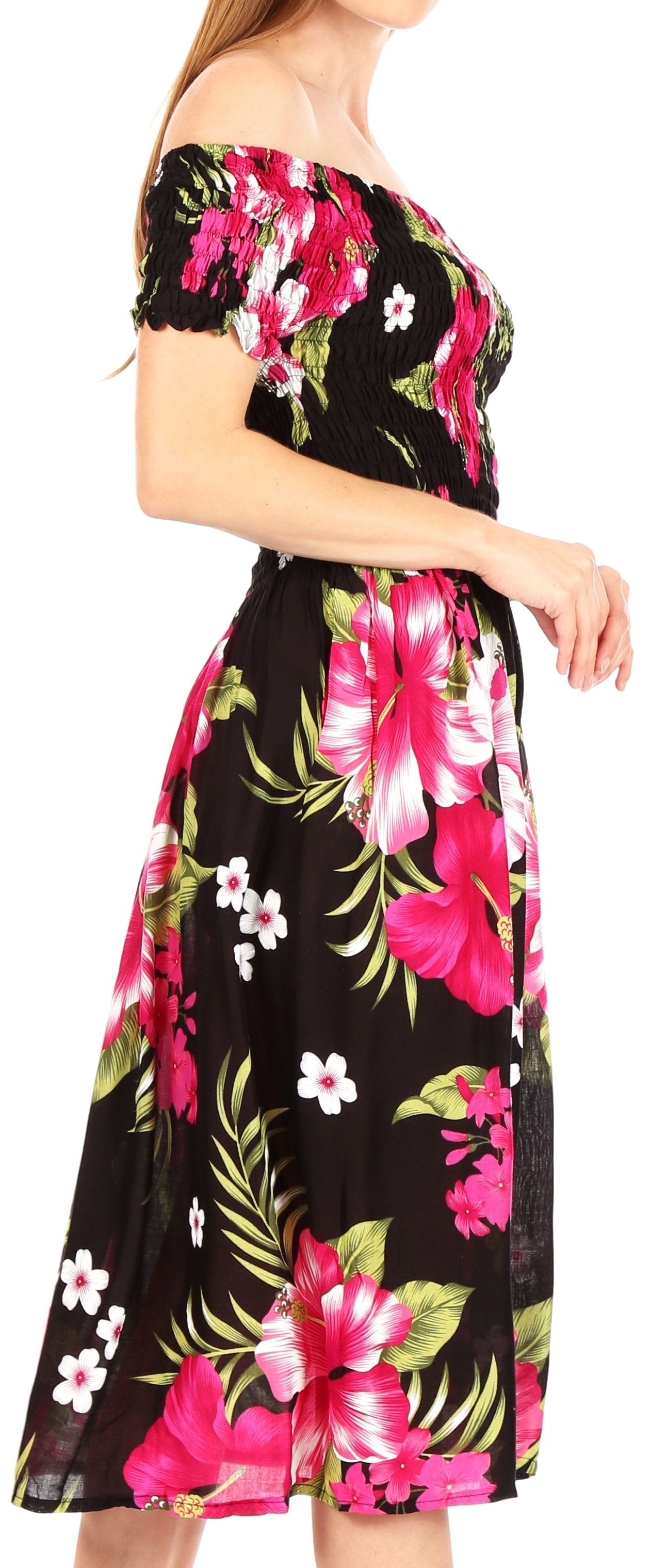 Sakkas Nur Women's Smock Elastic Cocktail Midi Sleeve Off Shoulder Floral Dress