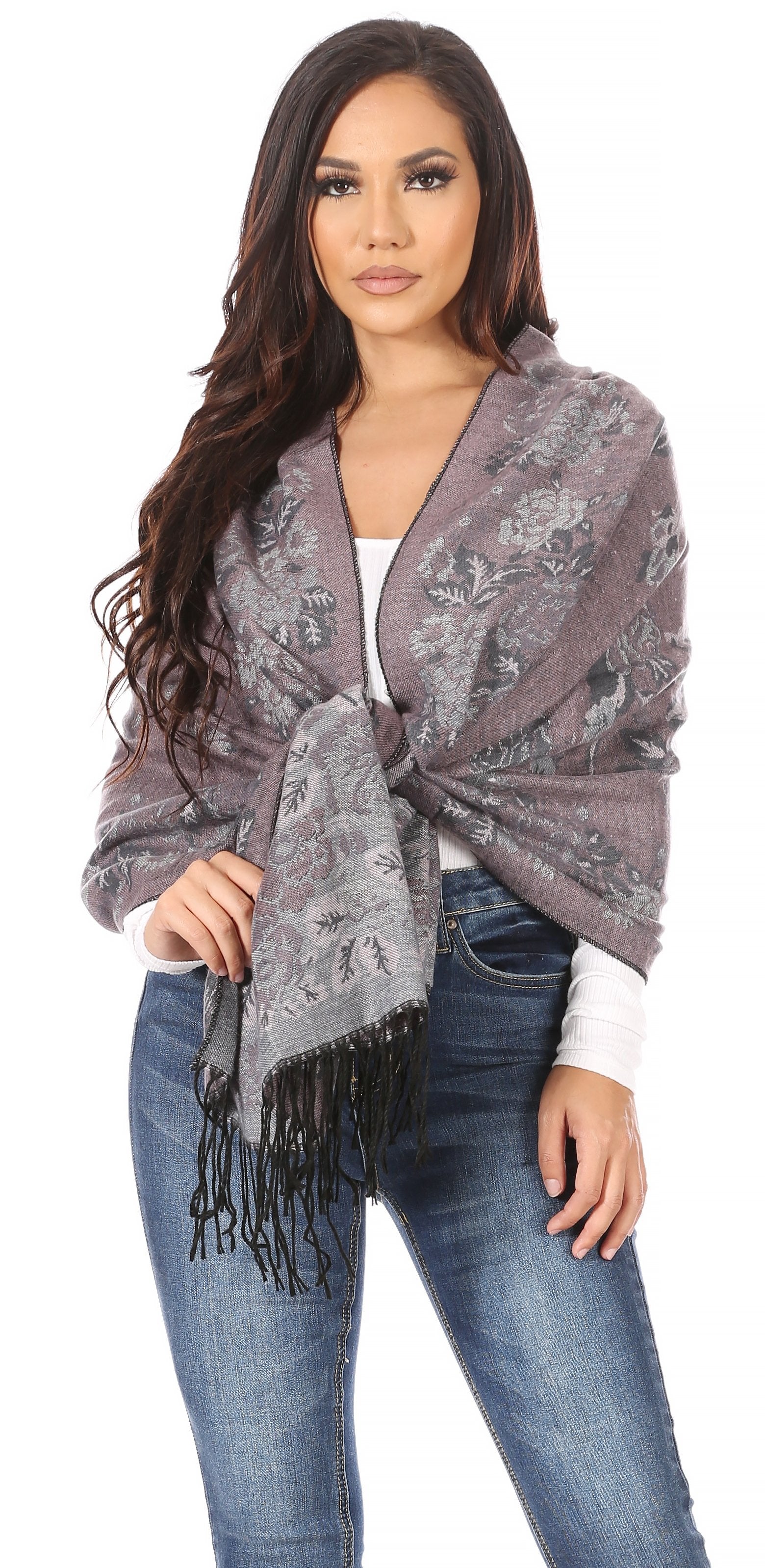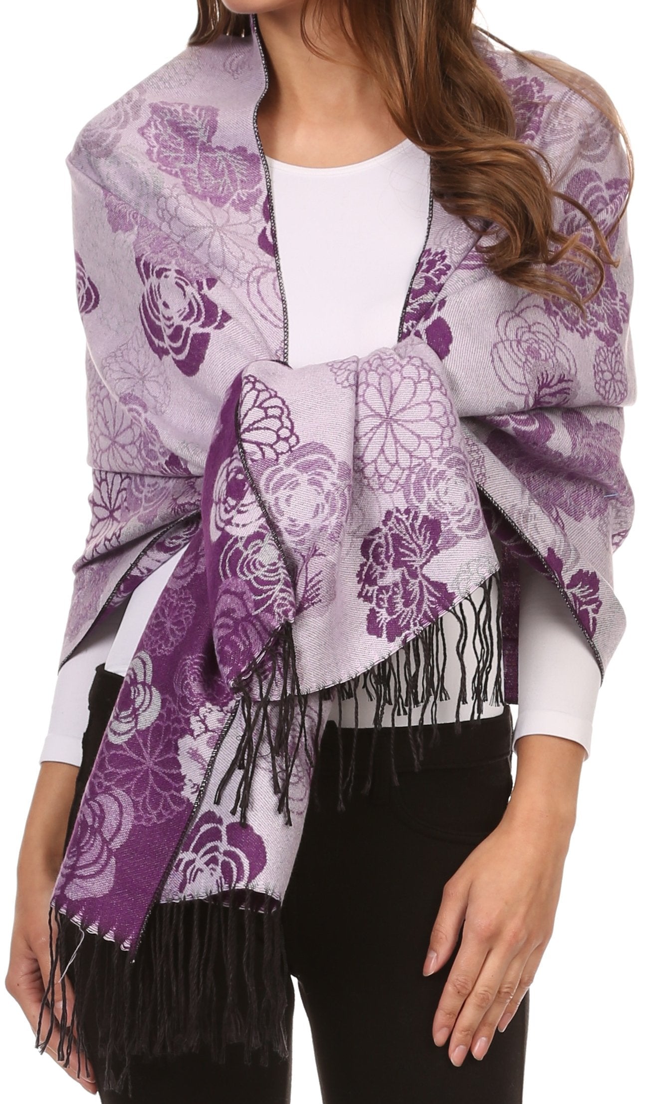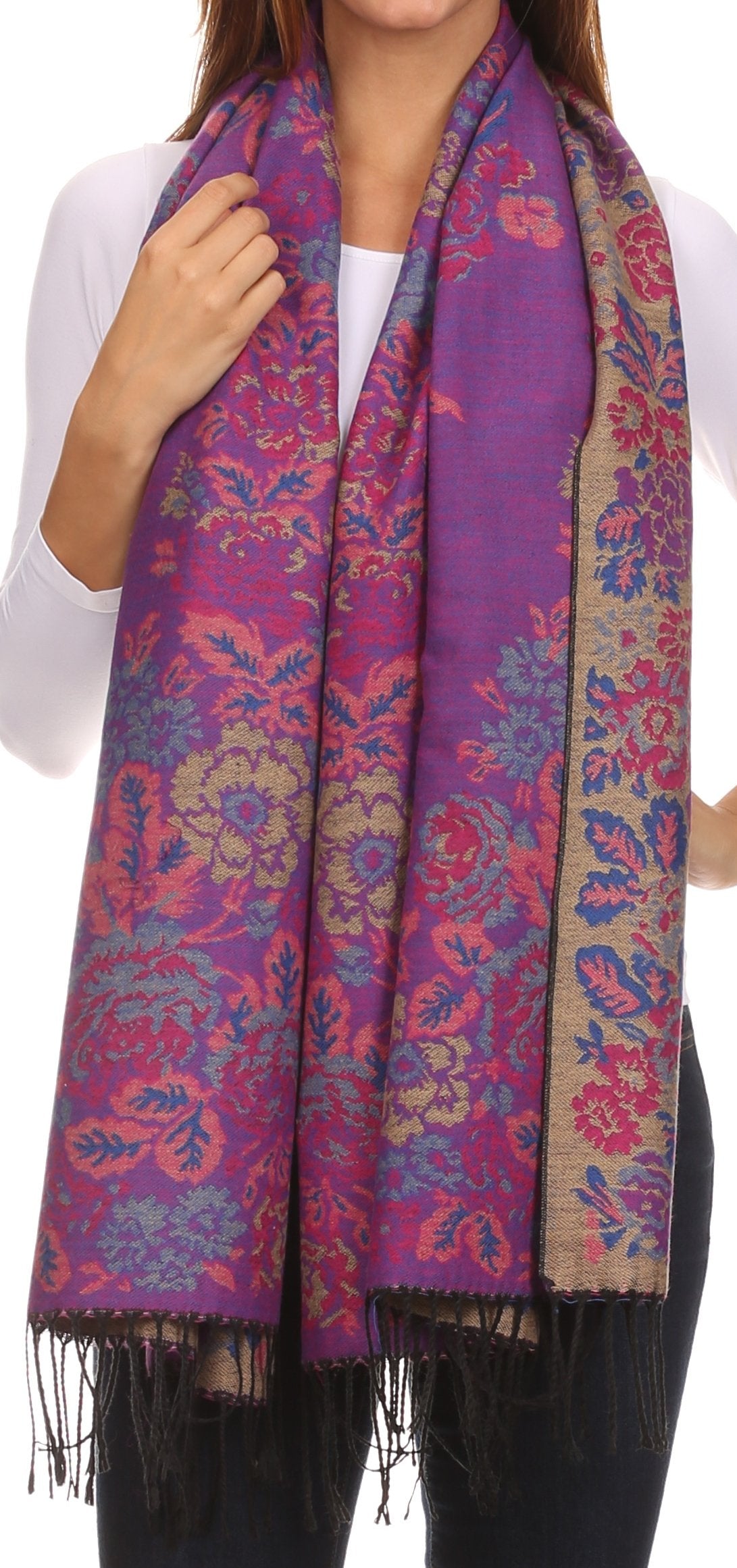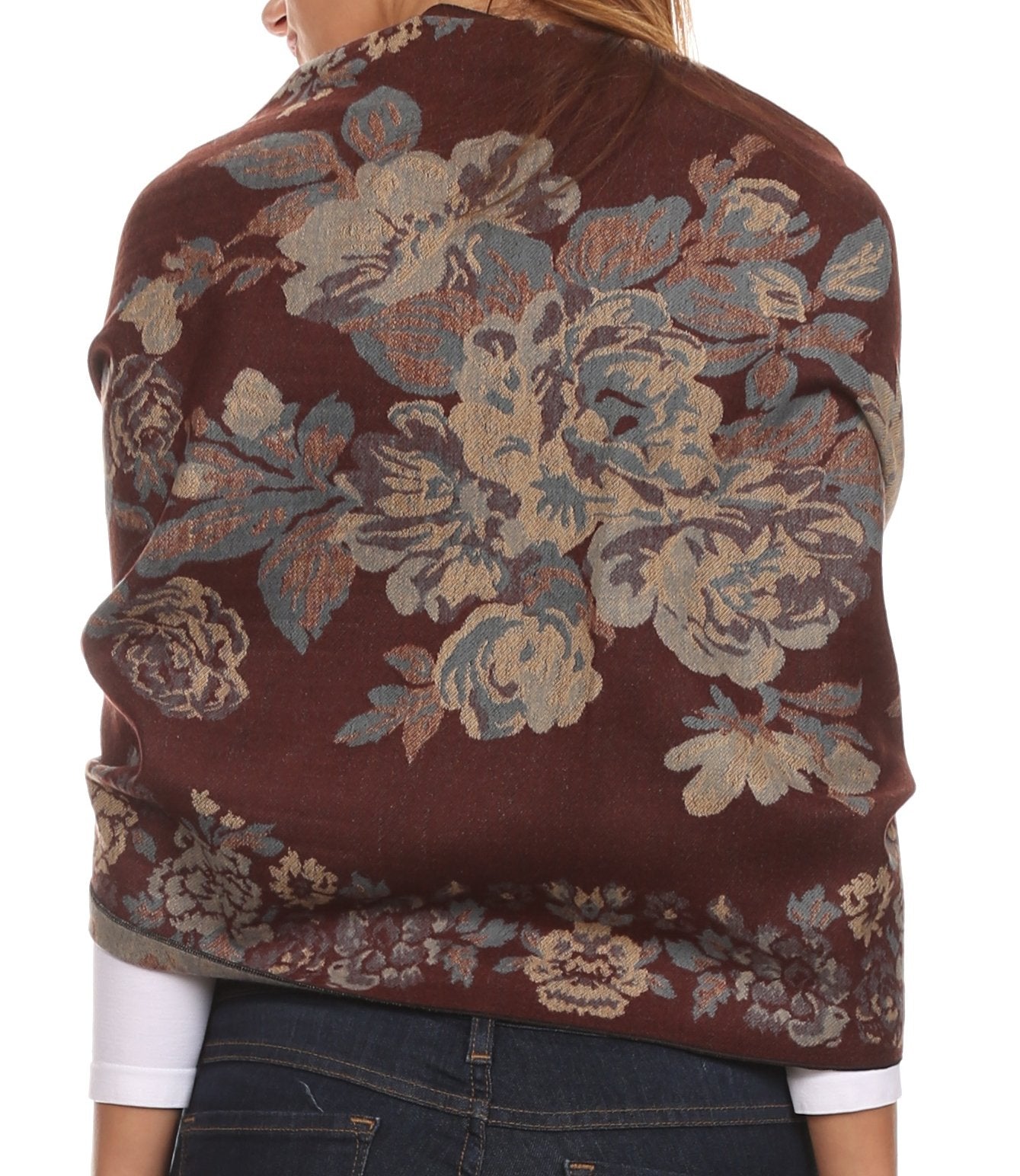 Sakkas Ontario double layer floral Pashmina/ Shawl/ Wrap/ Stole with fringe