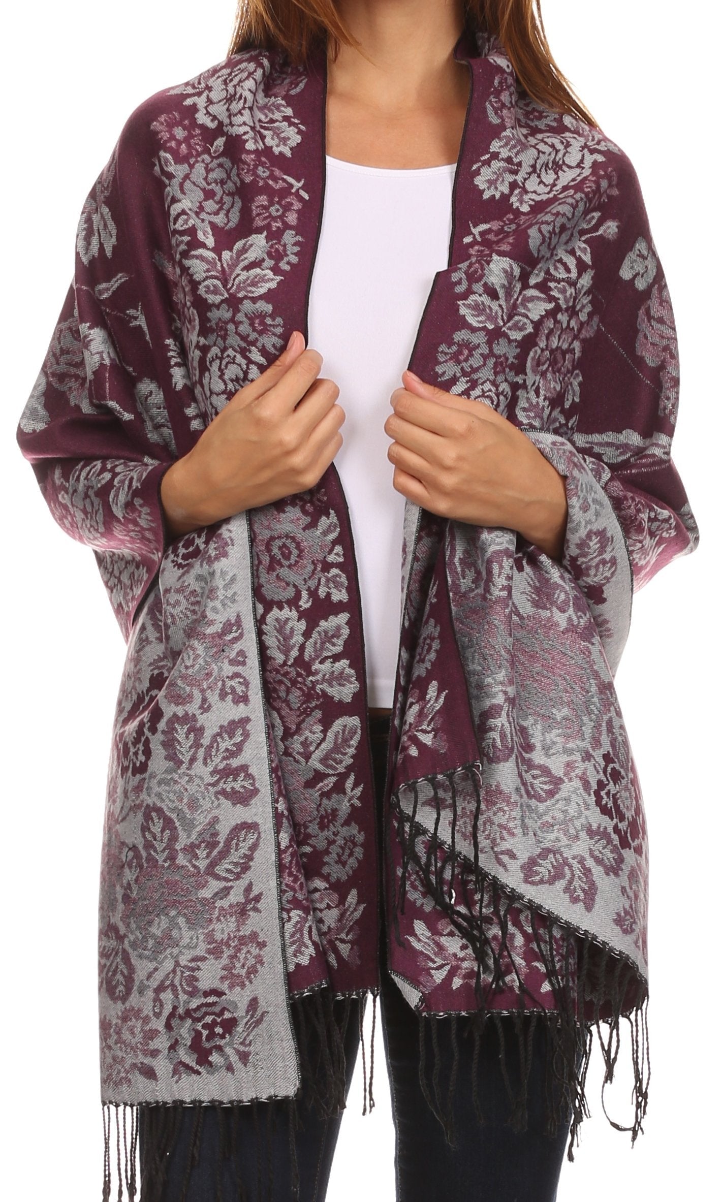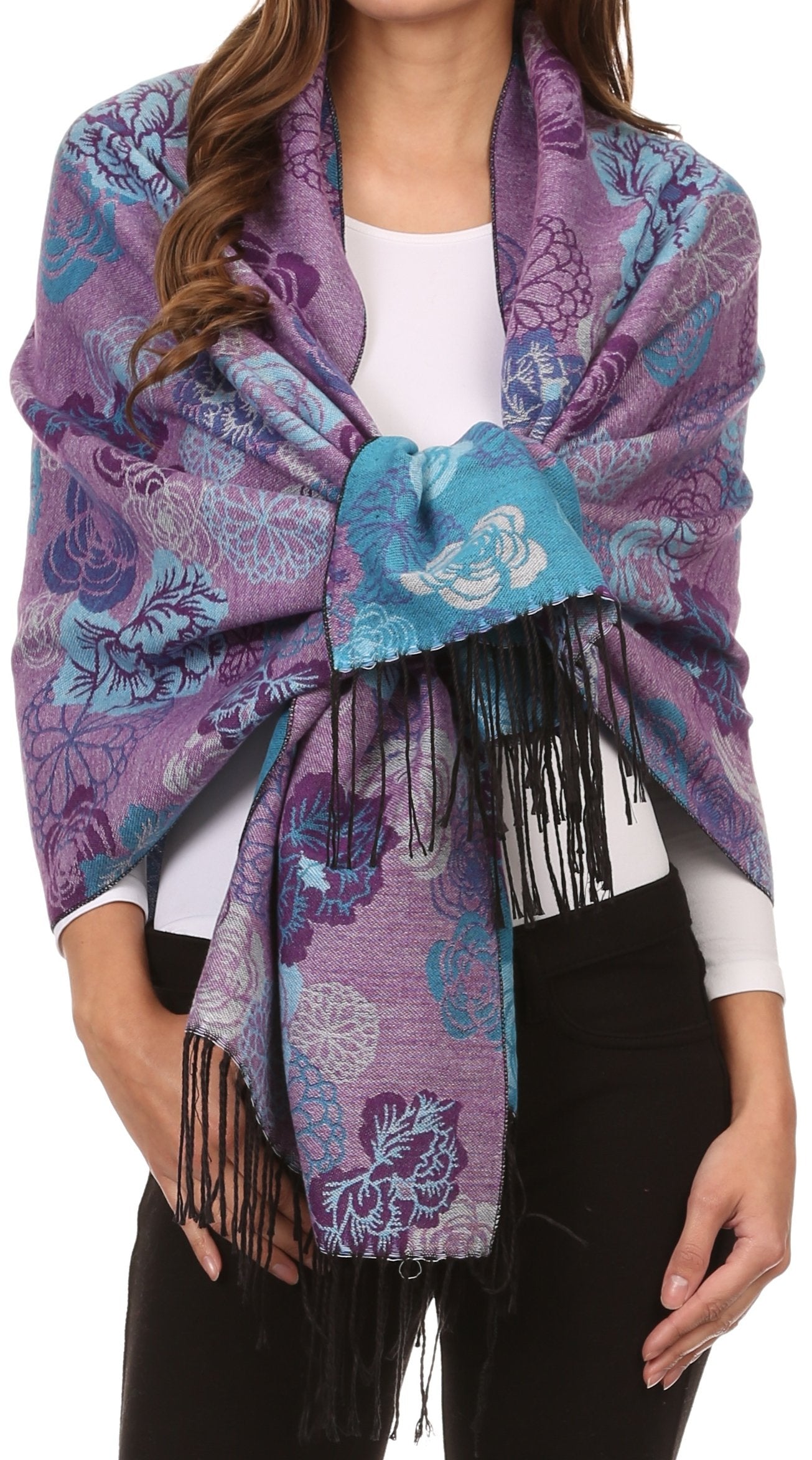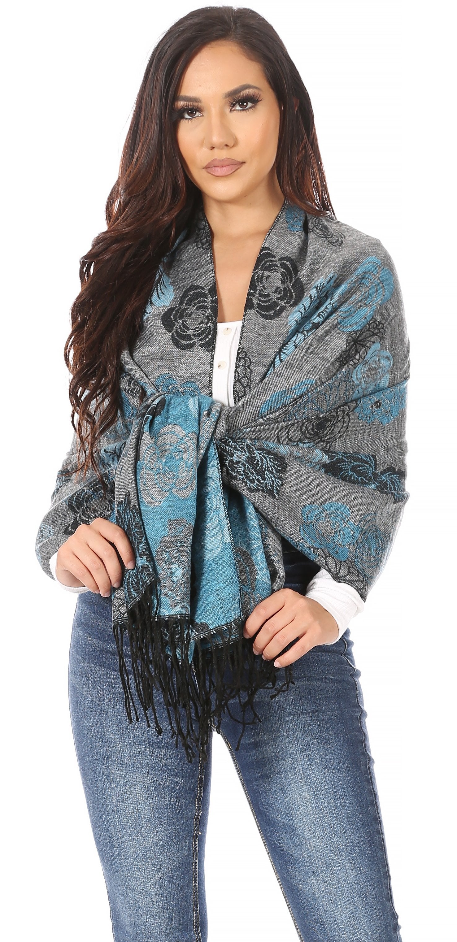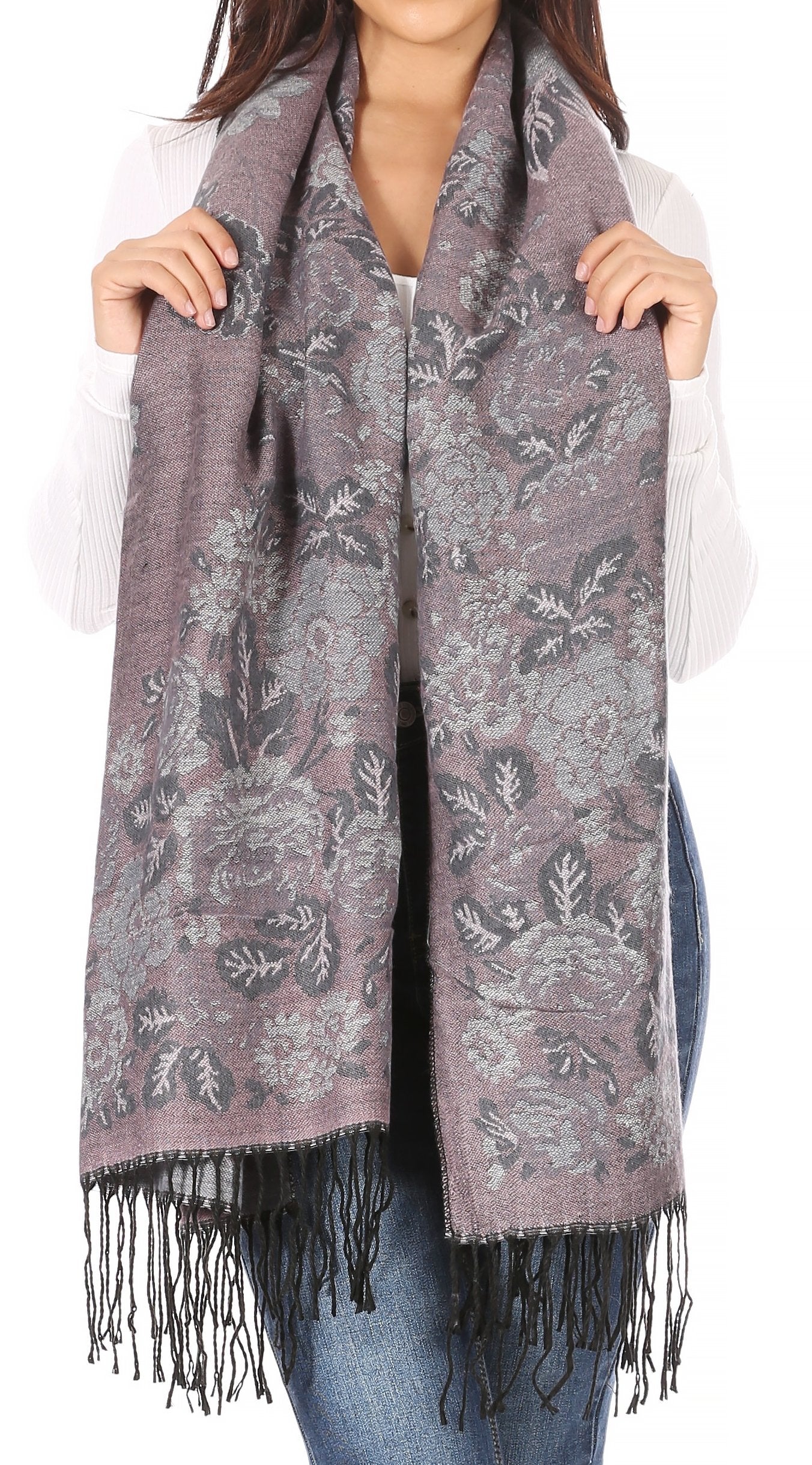 Sakkas Ontario double layer floral Pashmina/ Shawl/ Wrap/ Stole with fringe