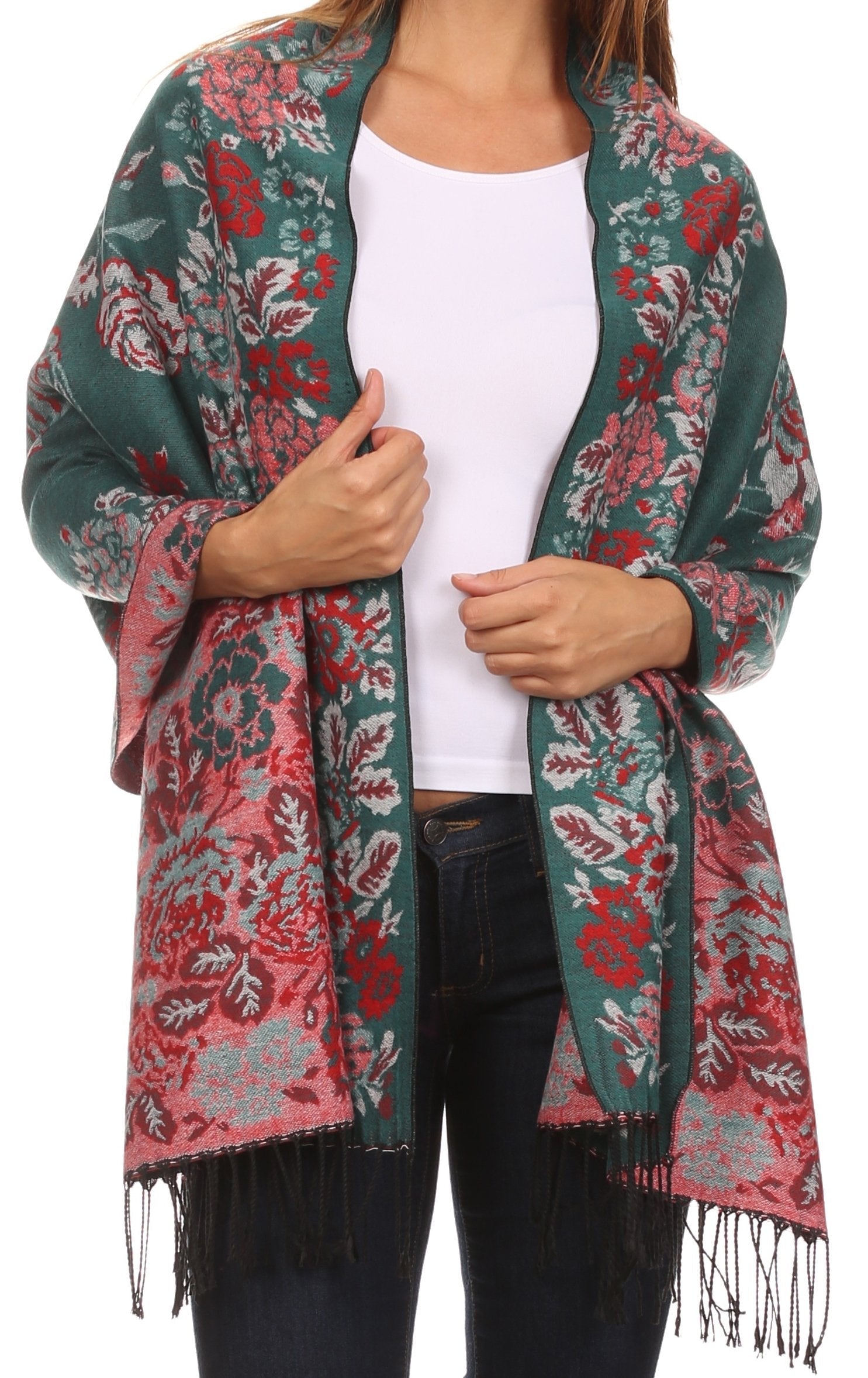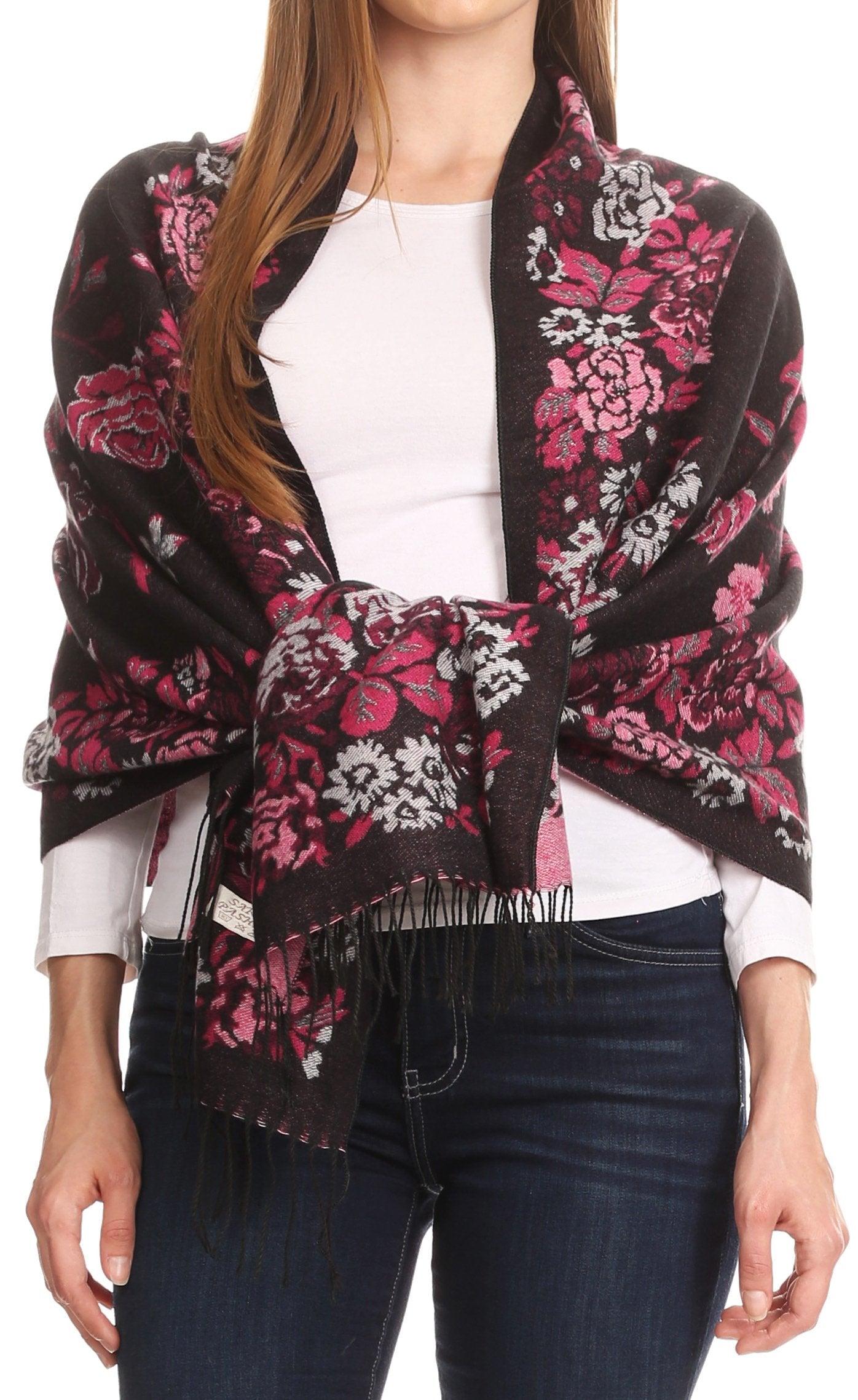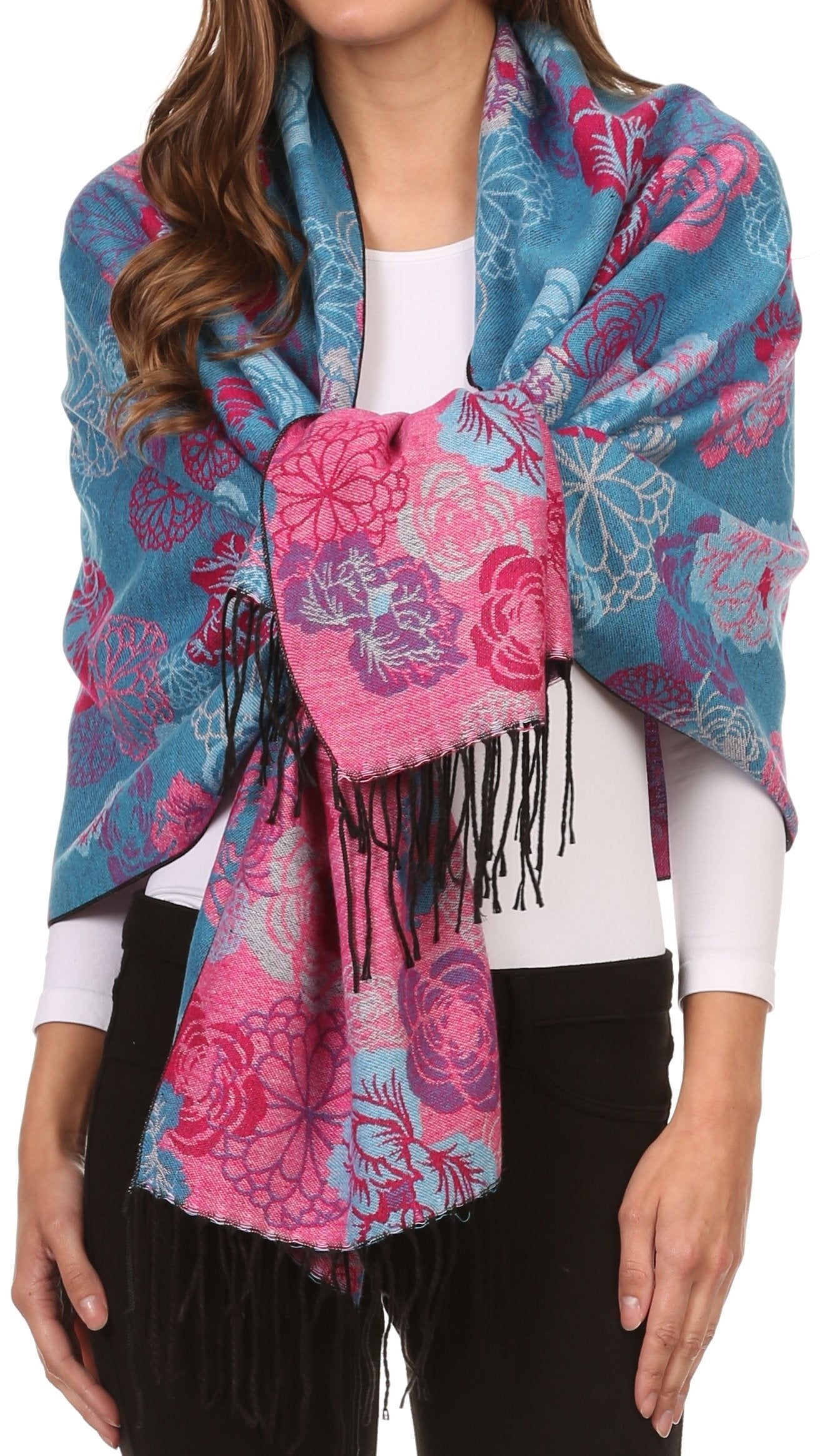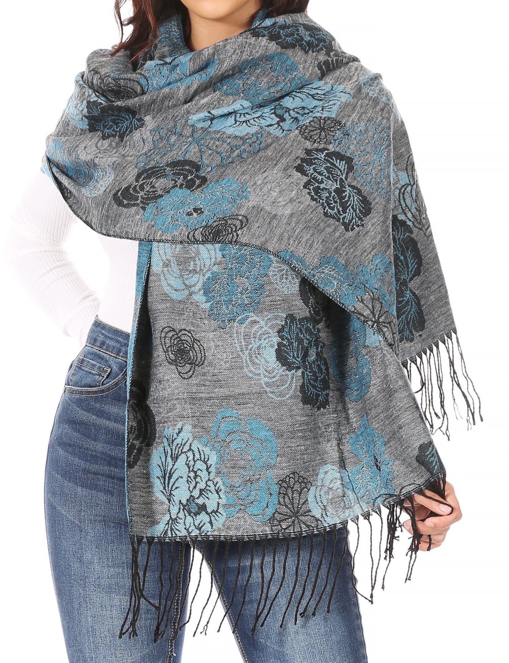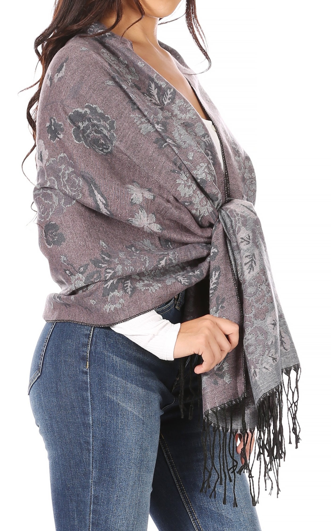 Sakkas Ontario double layer floral Pashmina/ Shawl/ Wrap/ Stole with fringe