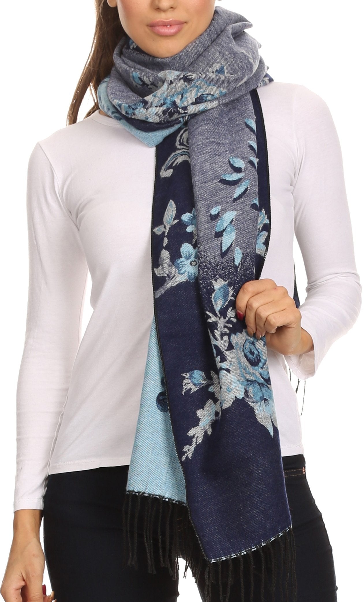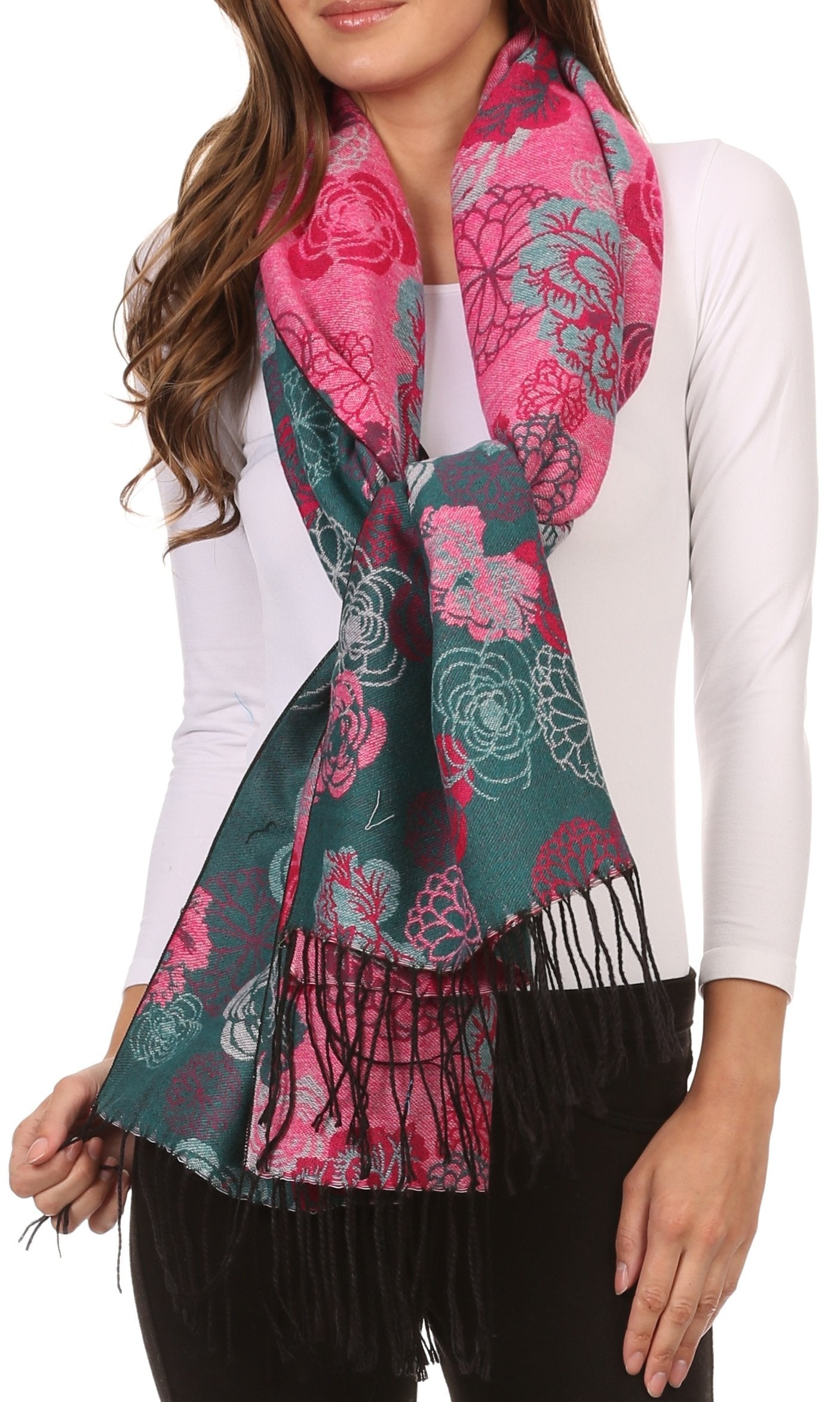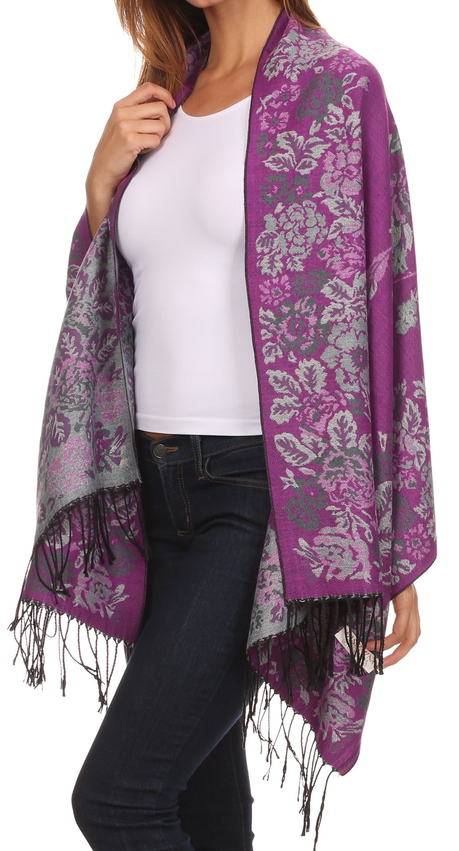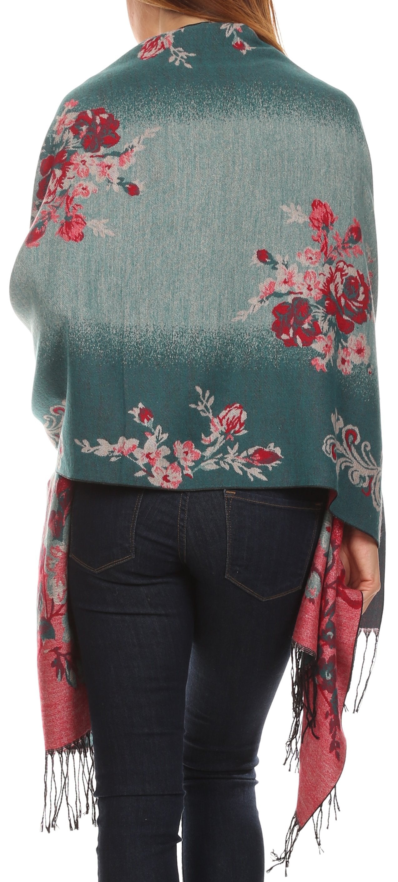 Sakkas Ontario double layer floral Pashmina/ Shawl/ Wrap/ Stole with fringe