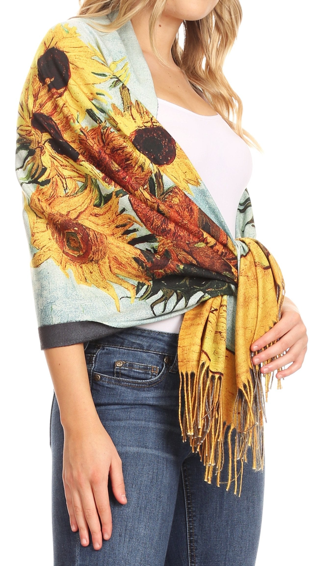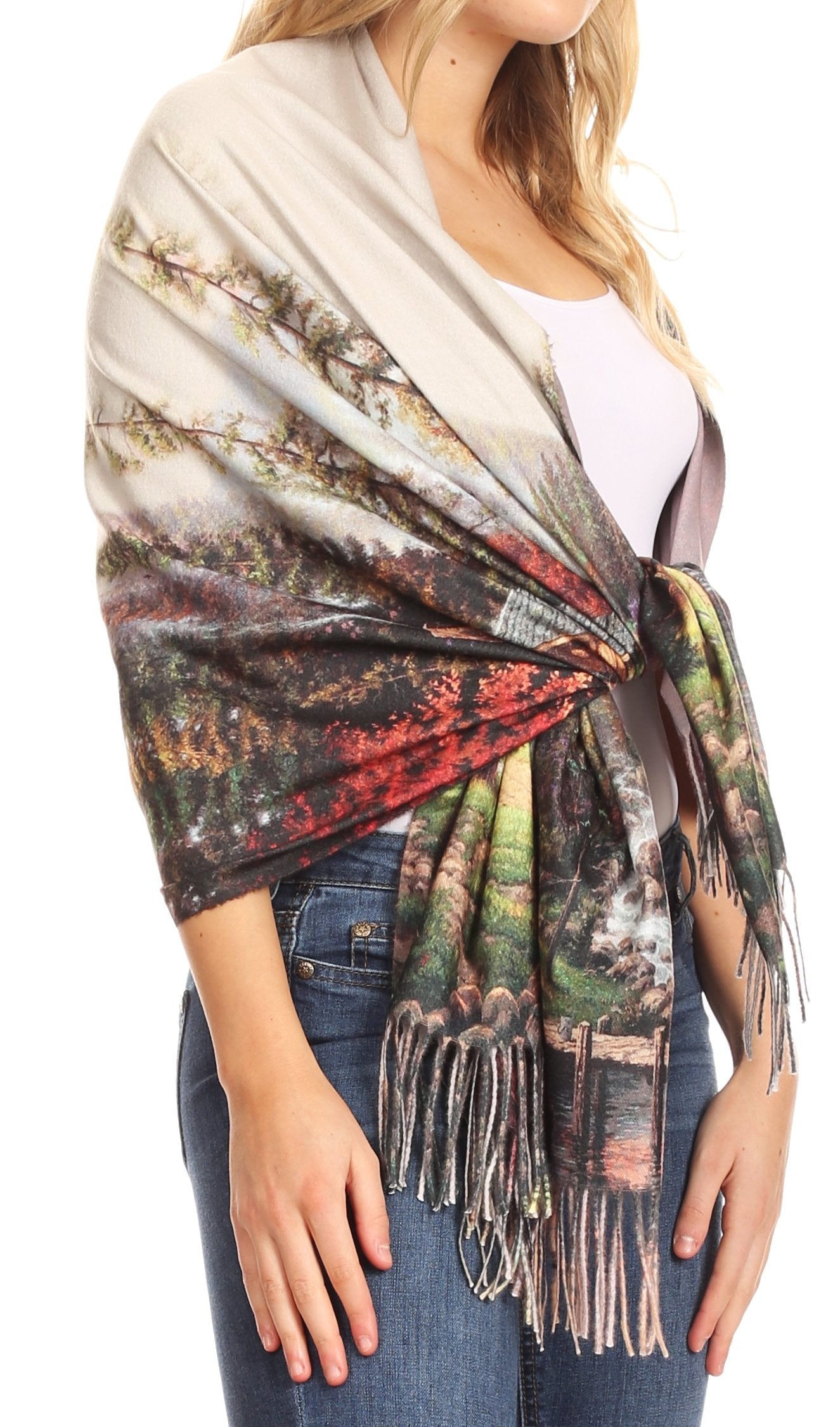 Sakkas Oria Women's Soft Lightweight Colorful Printed Shawl Scarf Wrap Stole