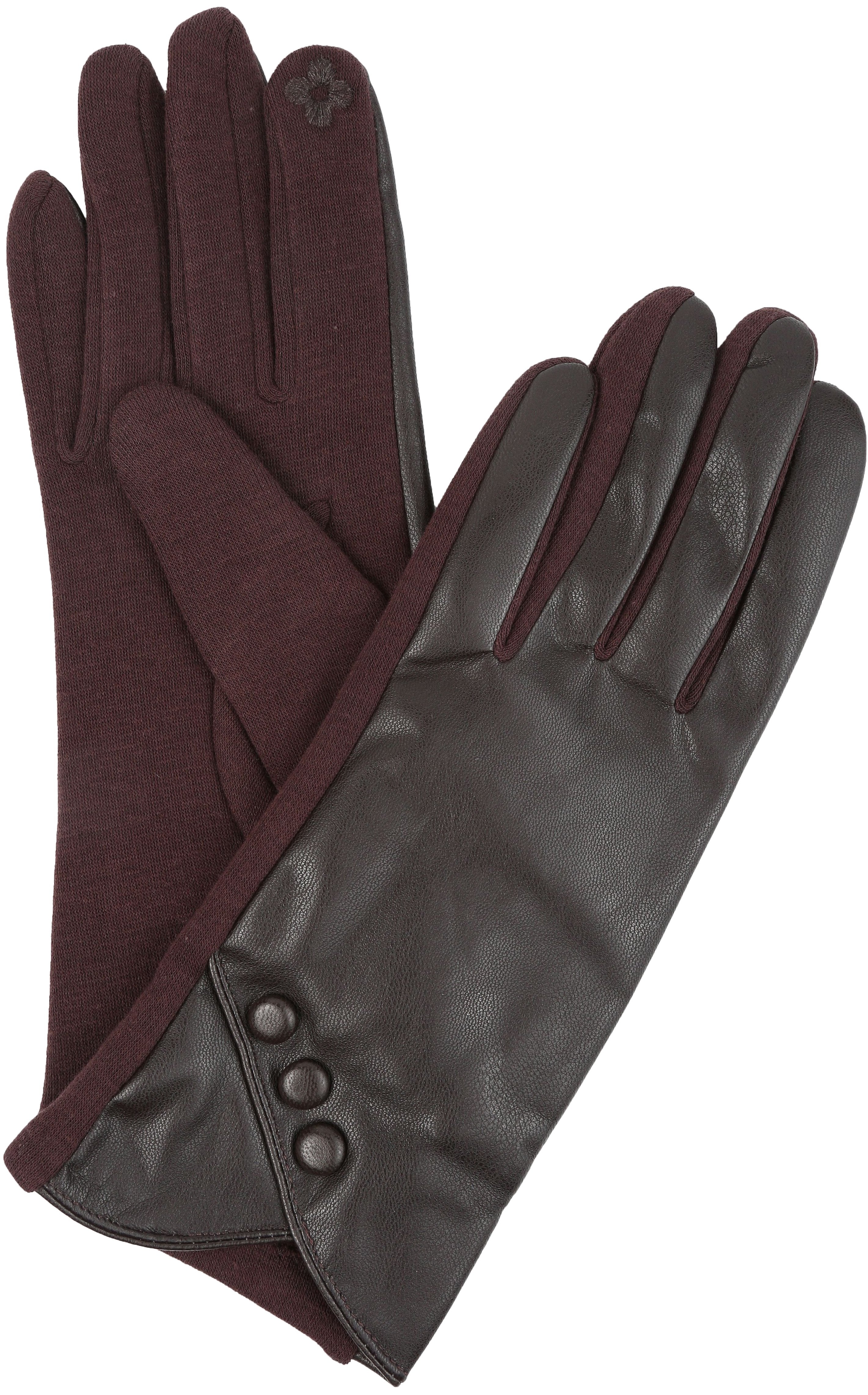 Sakkas Pamb Faux Leather Heather Knit Button Front Warm Winter Touch Screen Gloves