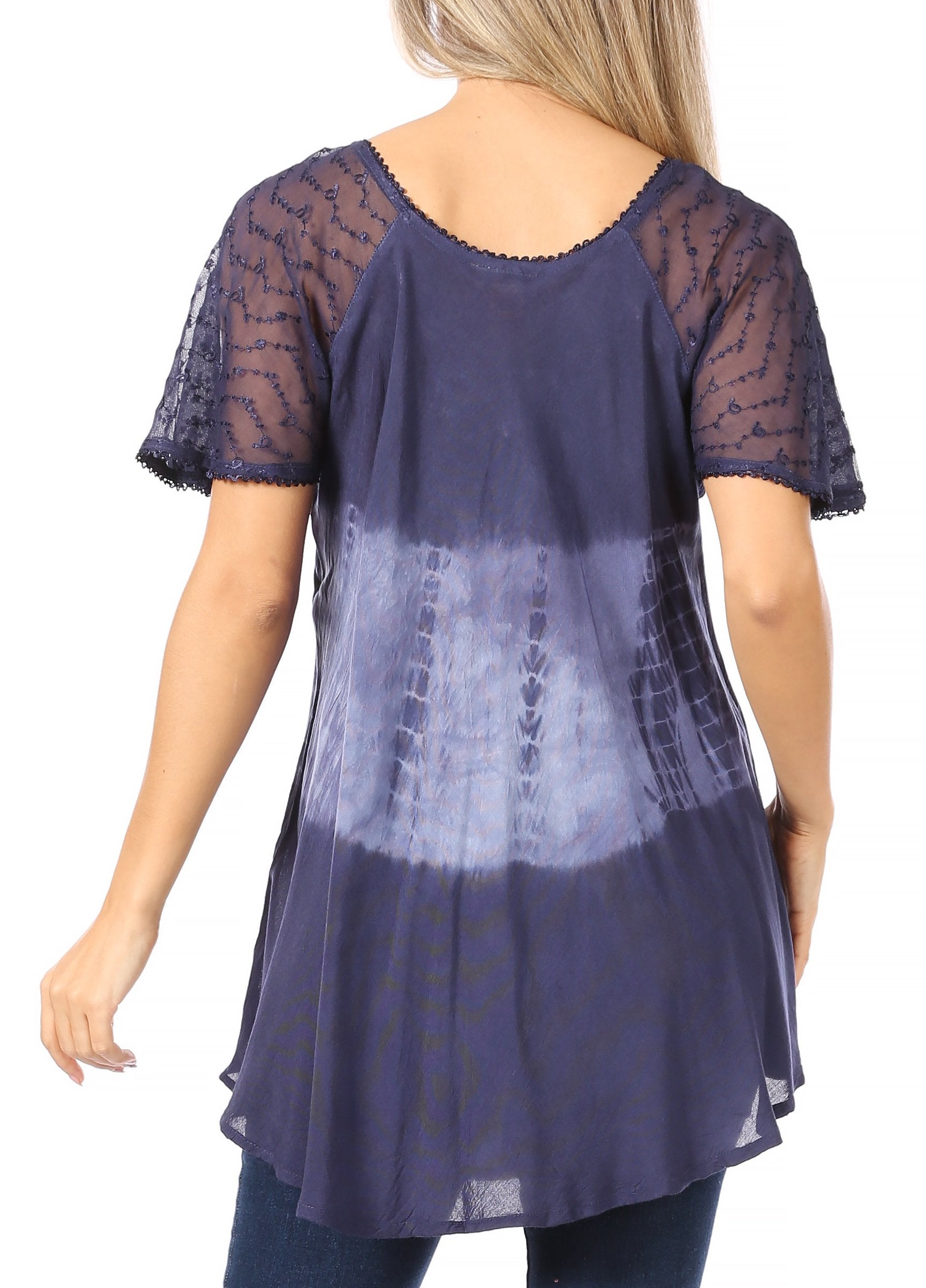 • Gorgeous casual short sleeve tie dye top, made with soft fabric. It features a fine corset tie at front with embroidery and sequin. This top is fresh and ideal for warm weather. Perfect for everyday wear, traveling, brunch, barbecues, festivals, to the park and vacationing! Simple and feminine.
