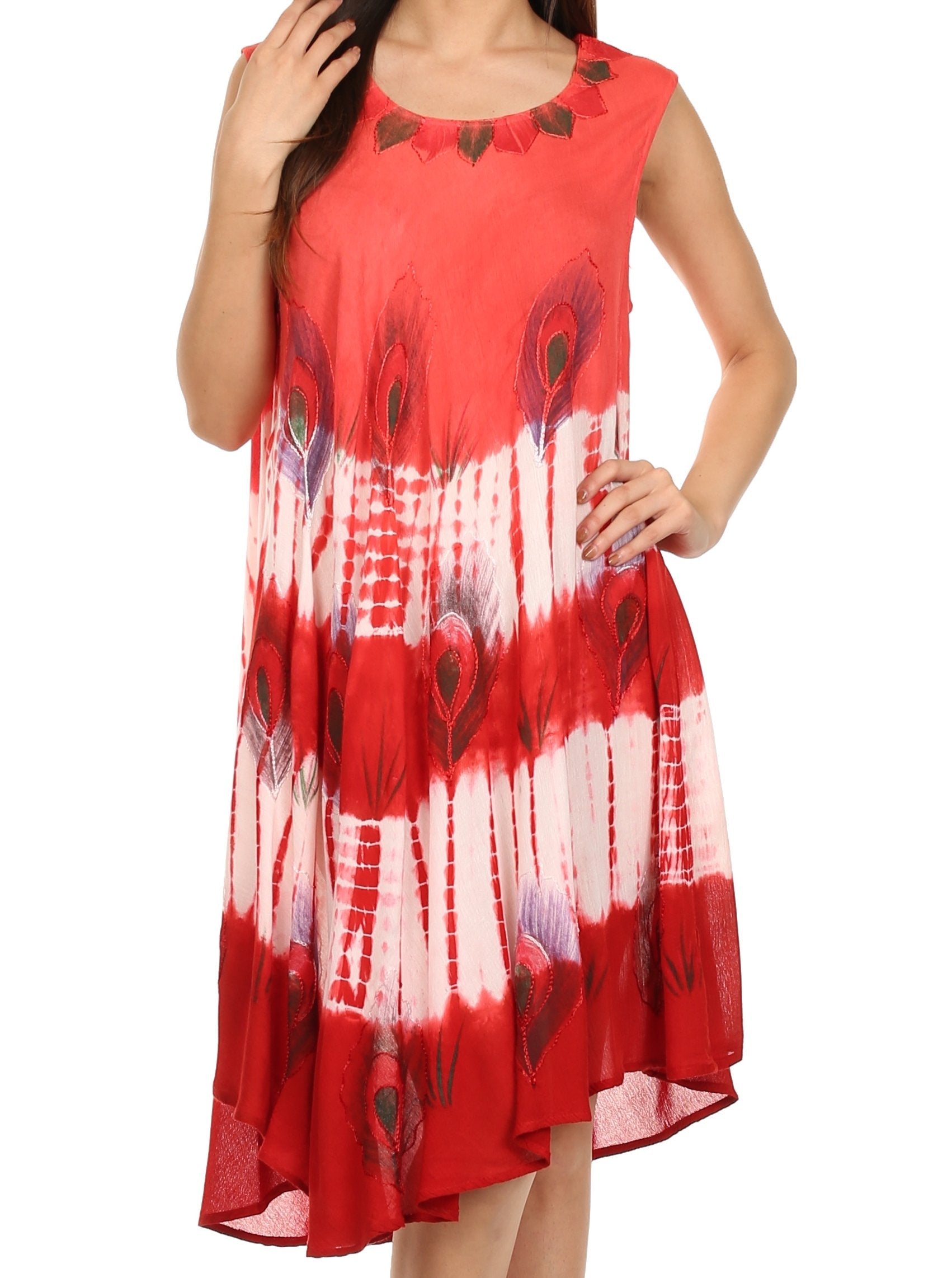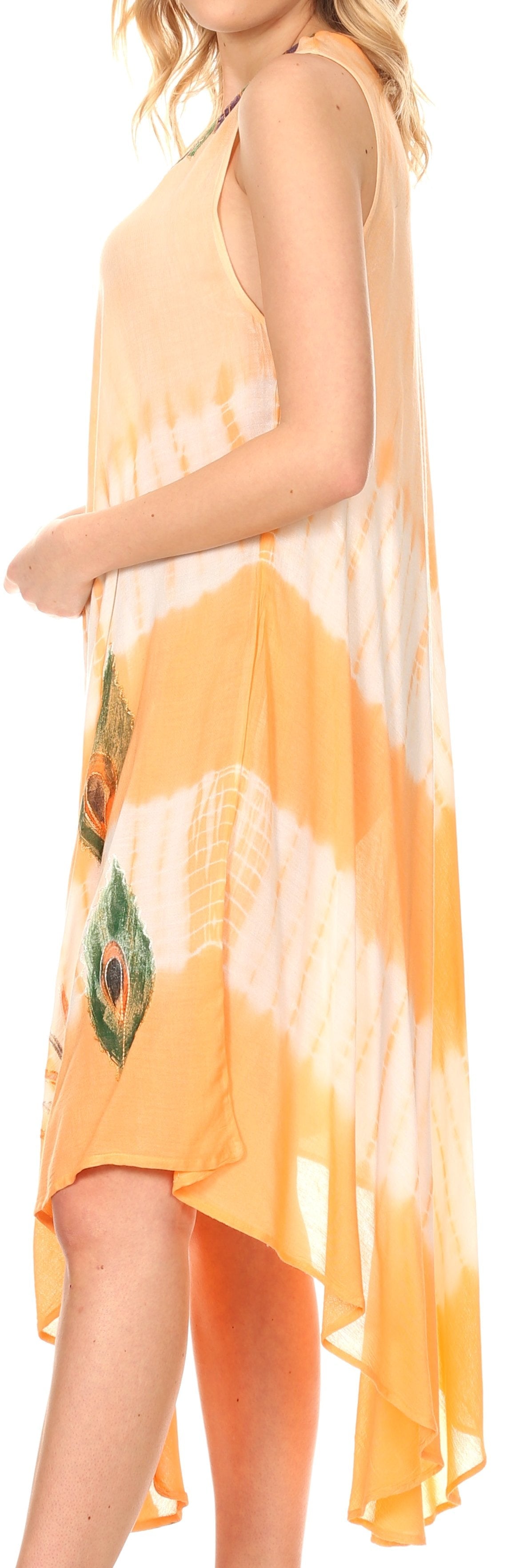 Sakkas Peacock Feather Caftan Dress / Cover Up
