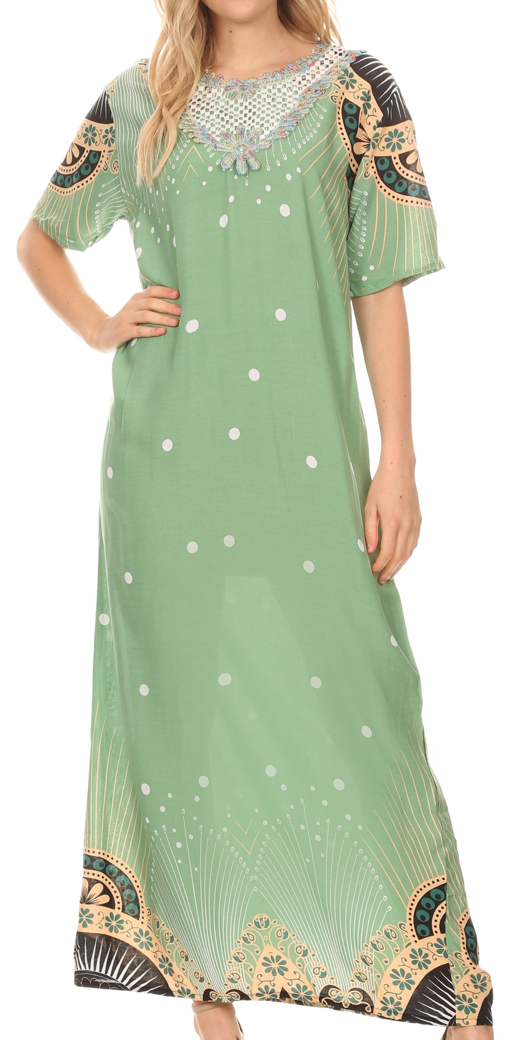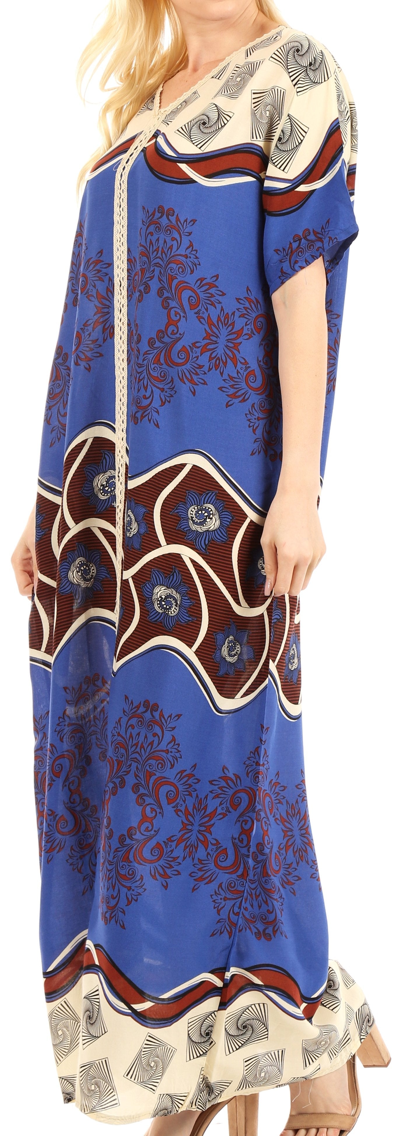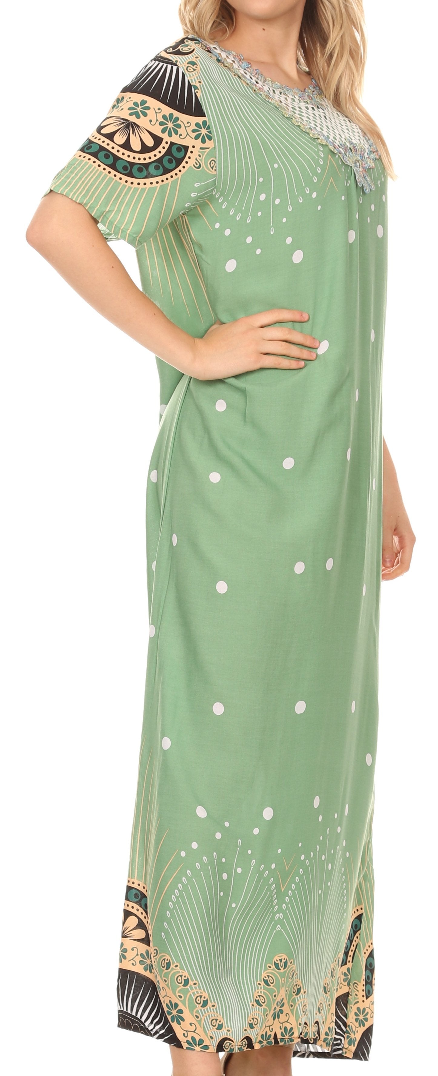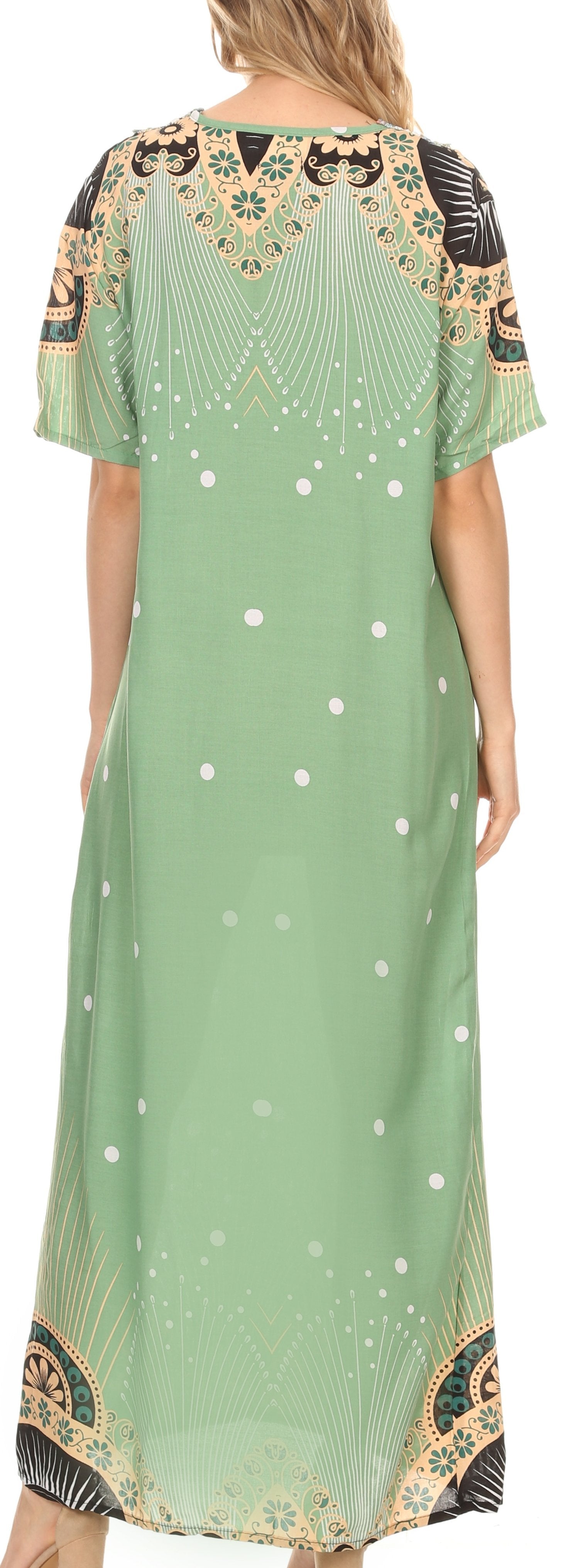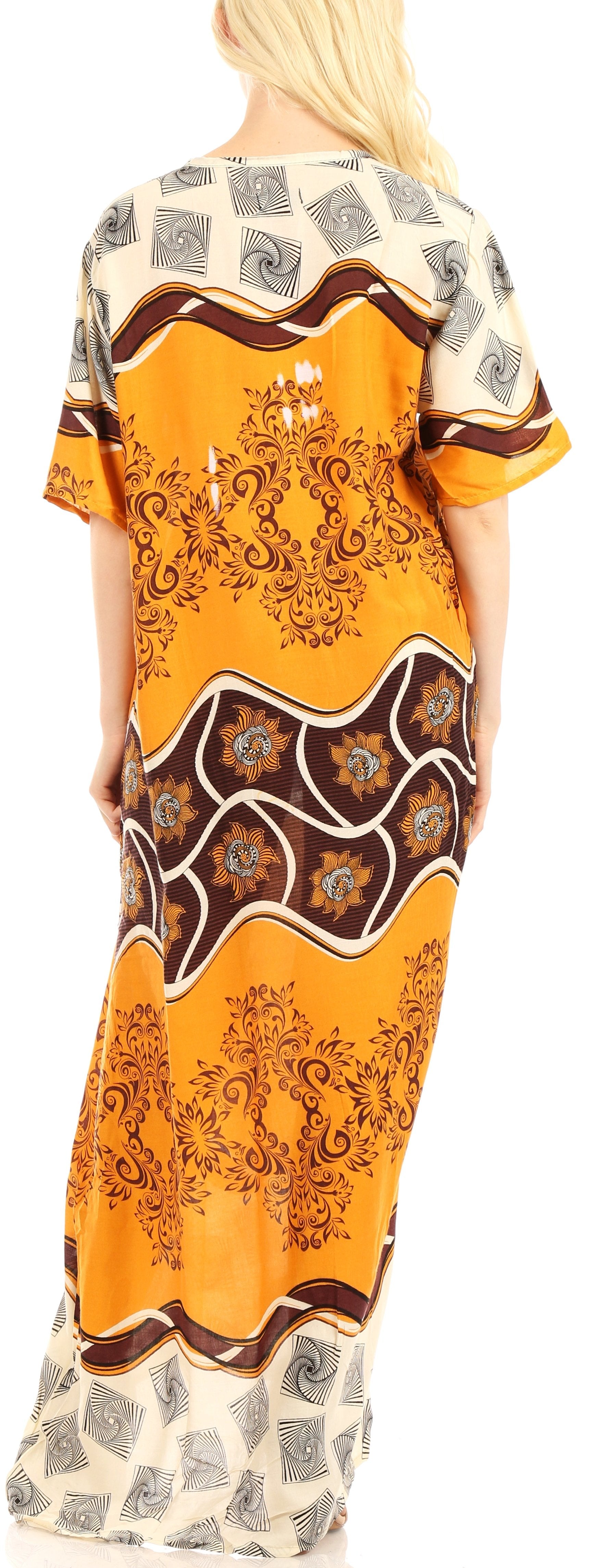Sakkas Jabari Women's Maxi Short Sleeve Long Beach Kaftan Dress Boho Loose Gown