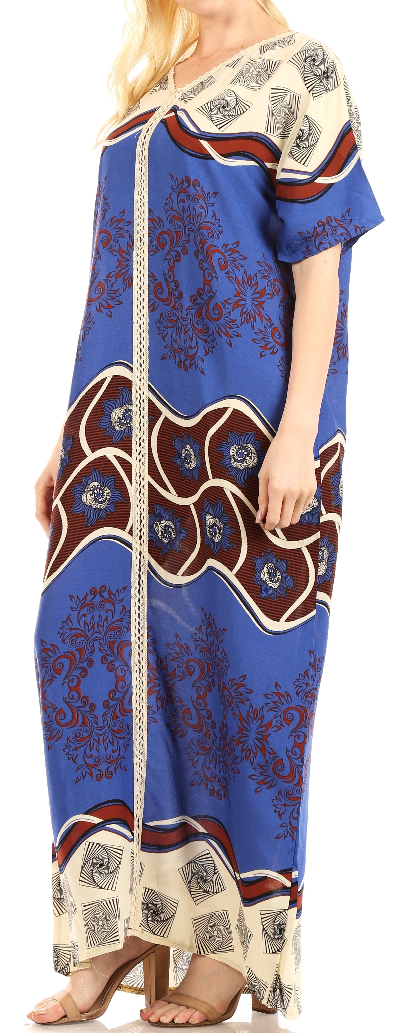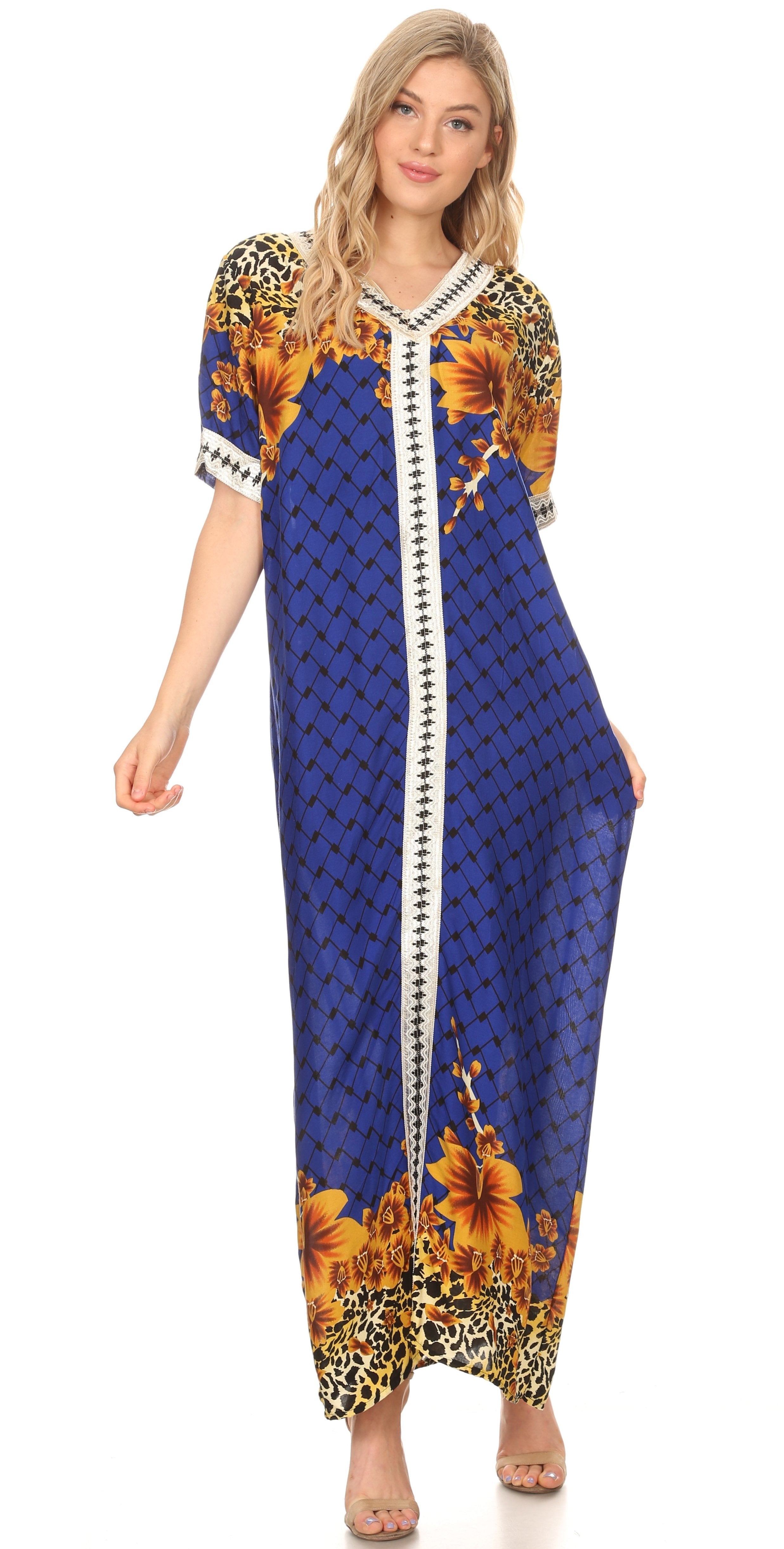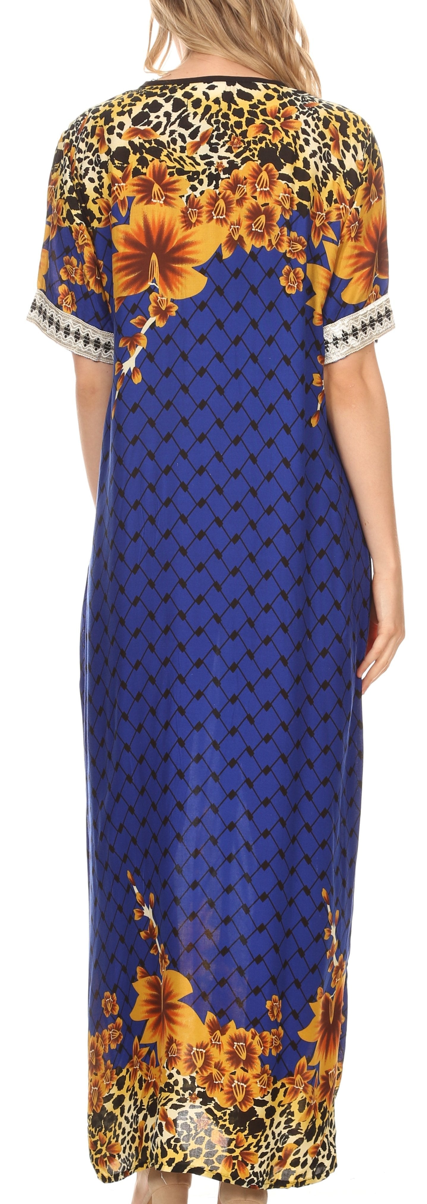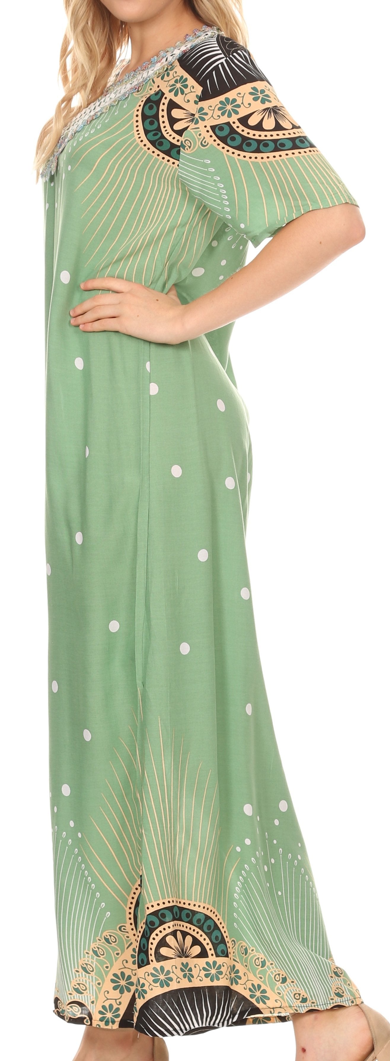 Sakkas Jabari Women's Maxi Short Sleeve Long Beach Kaftan Dress Boho Loose Gown