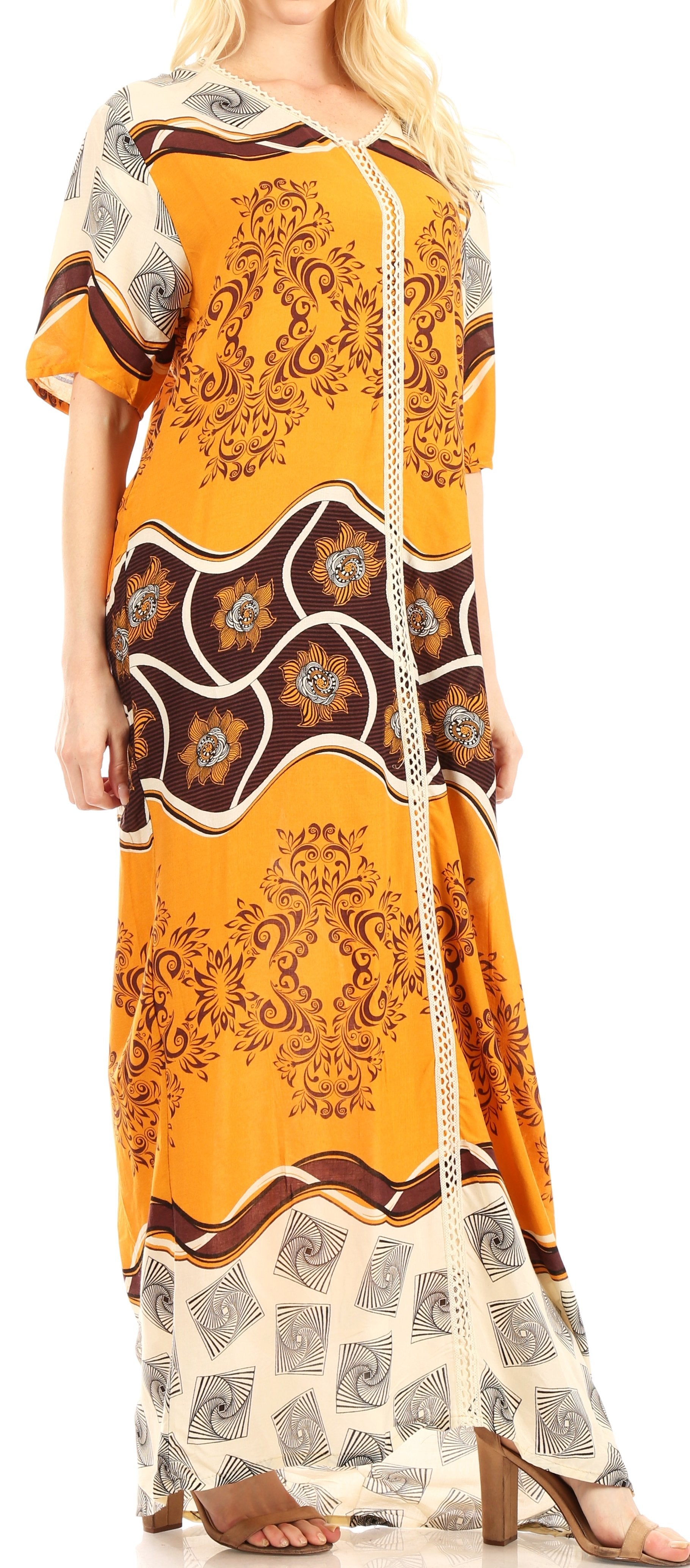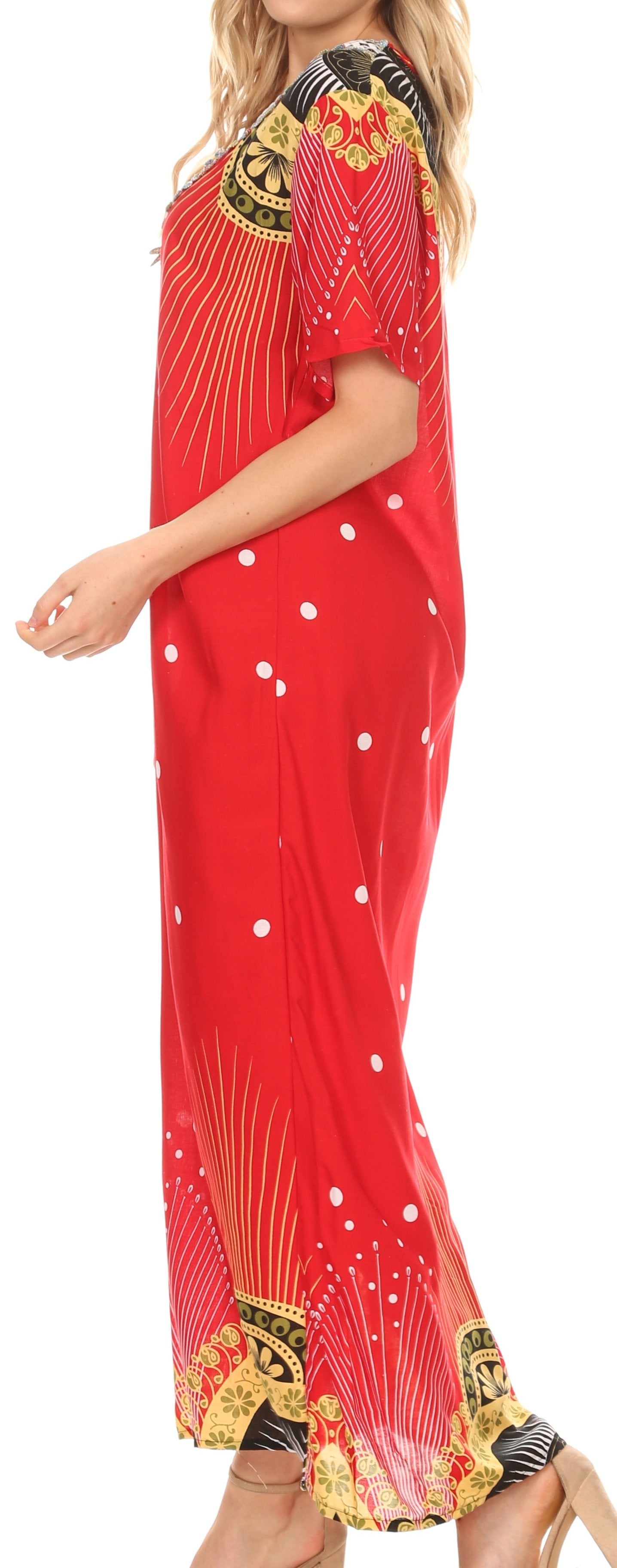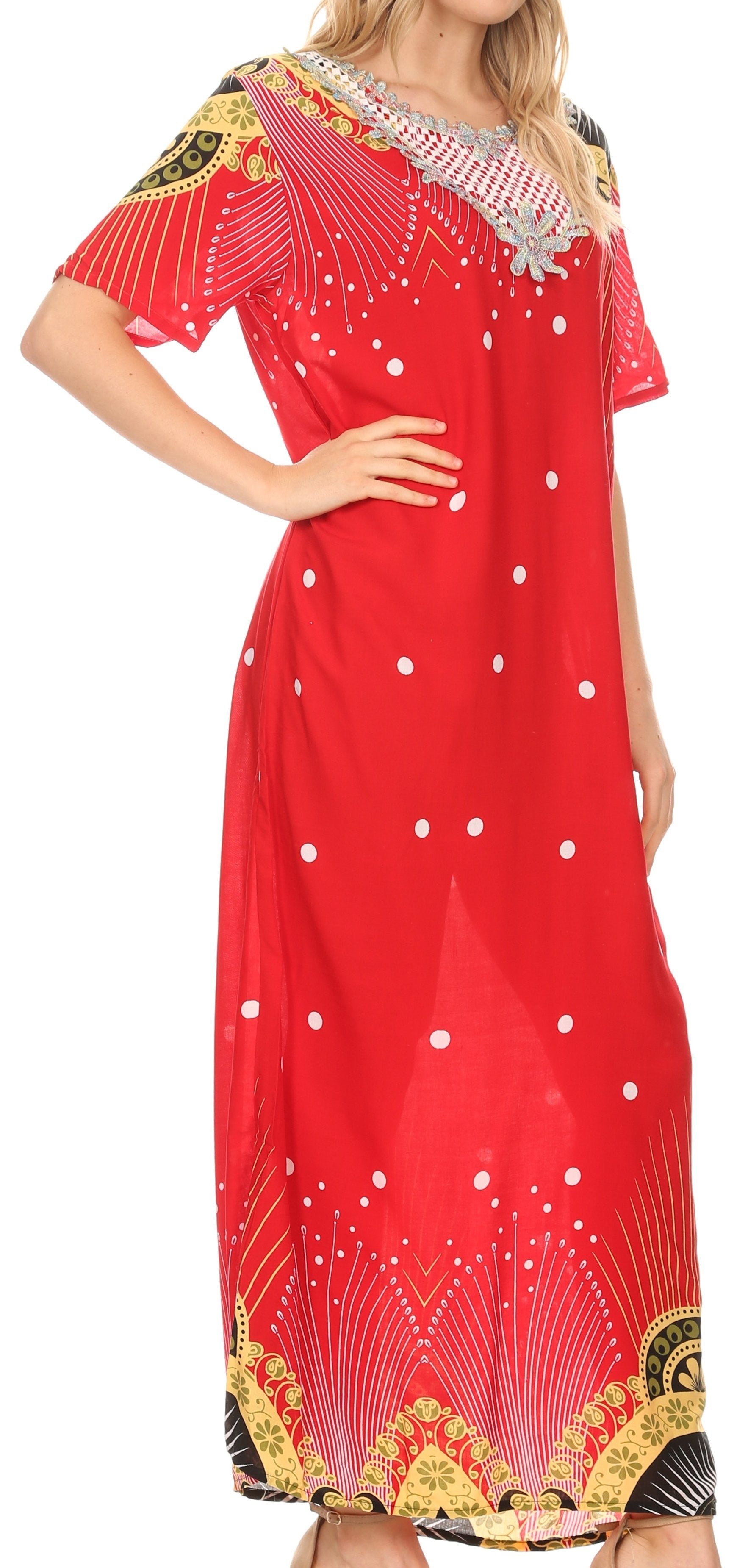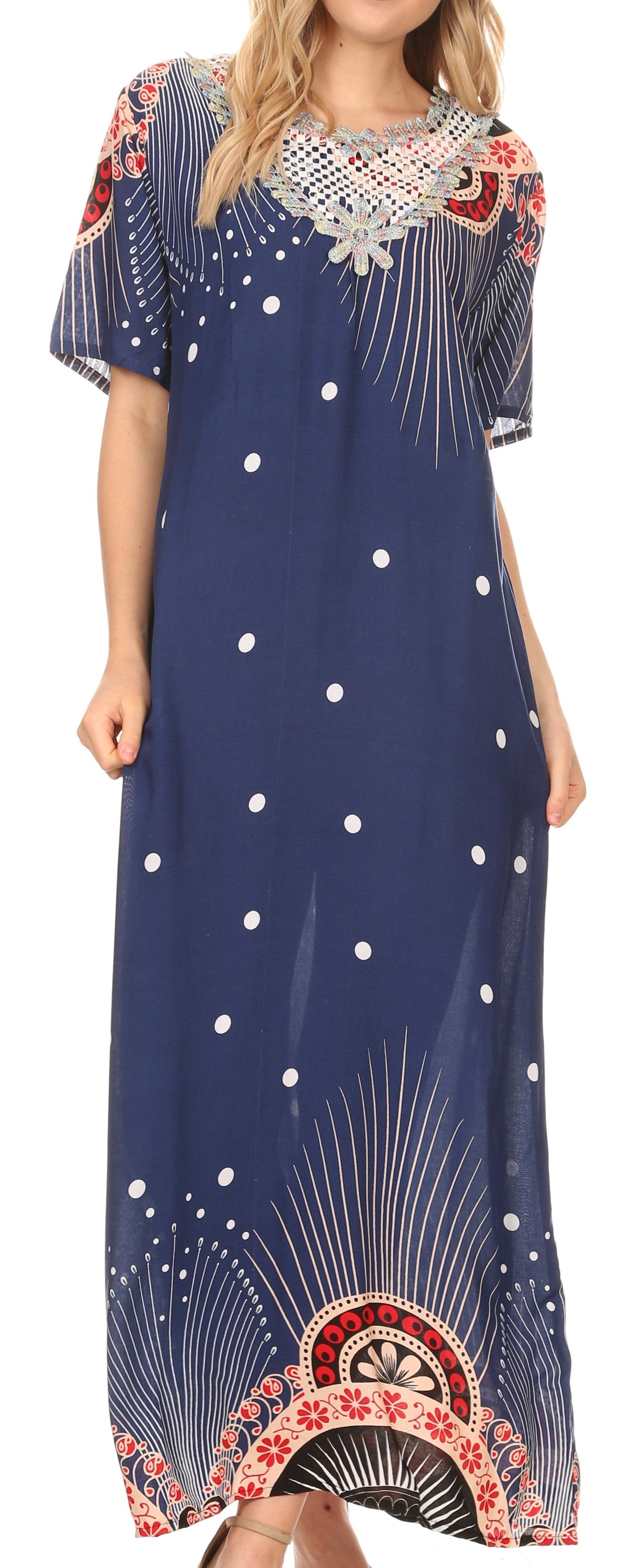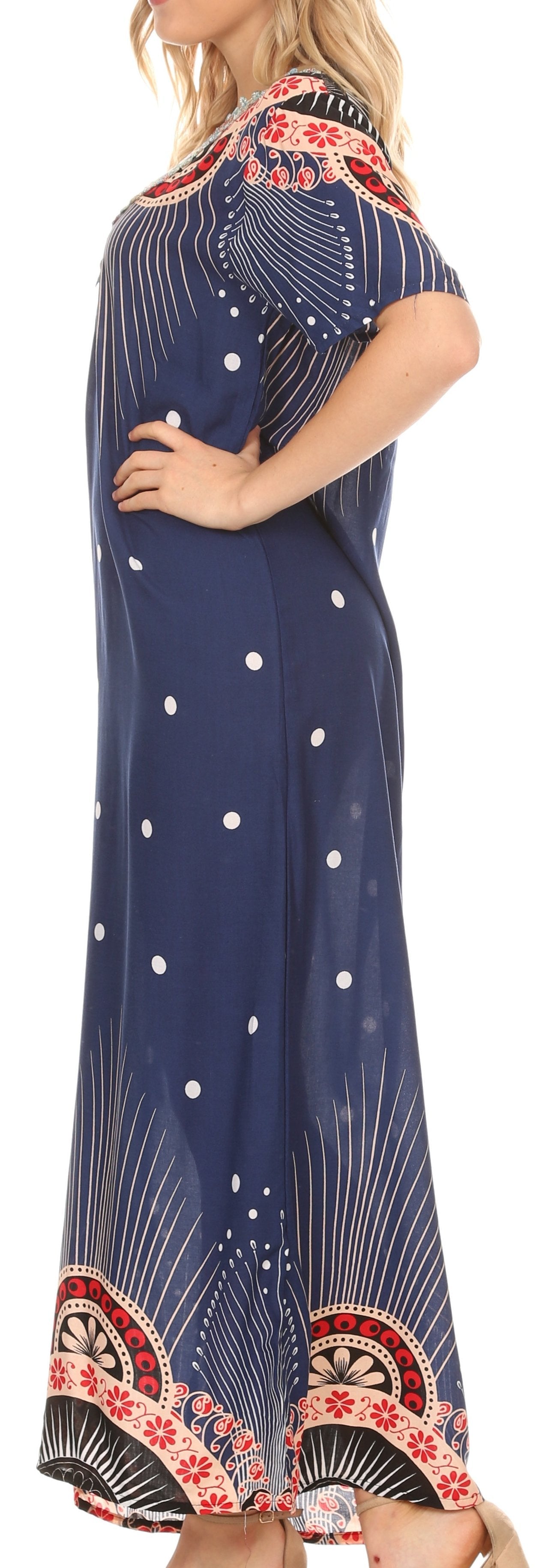 Sakkas Jabari Women's Maxi Short Sleeve Long Beach Kaftan Dress Boho Loose Gown