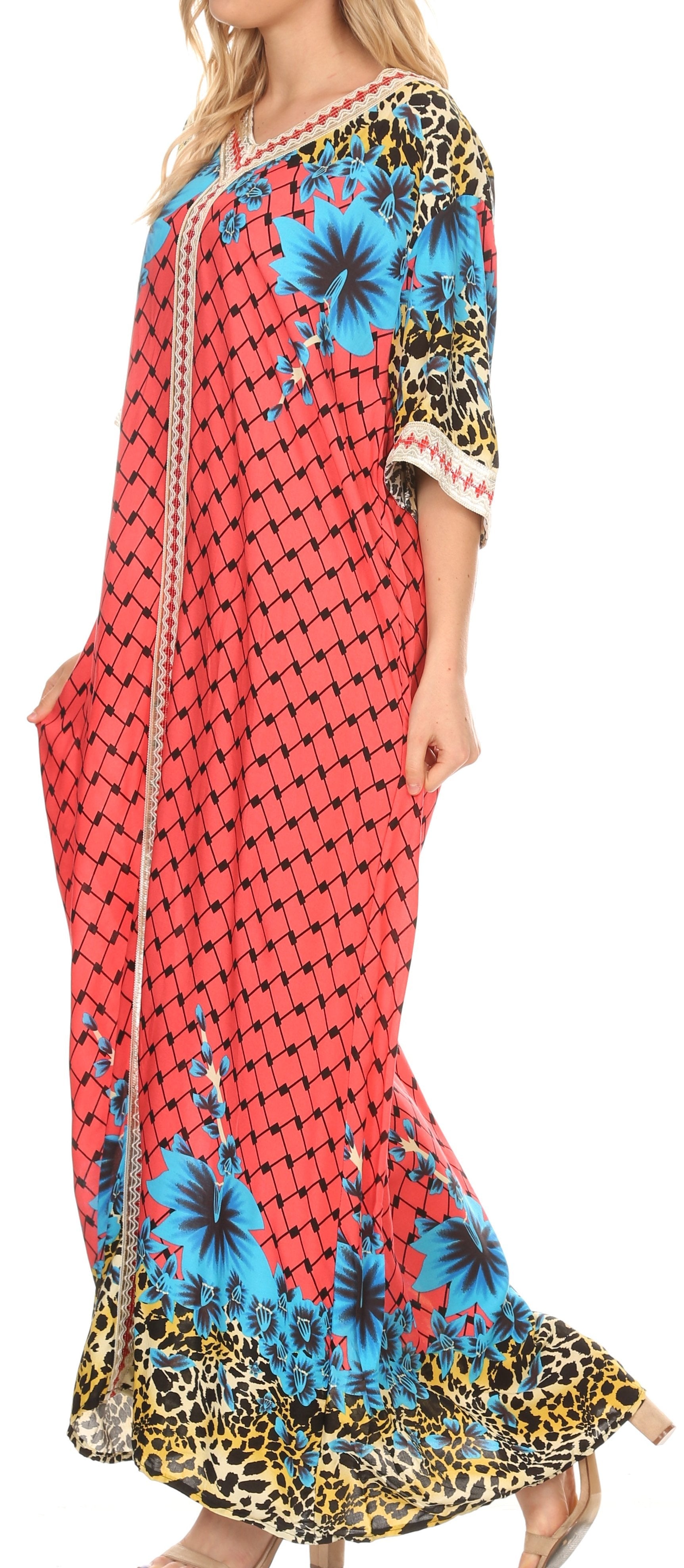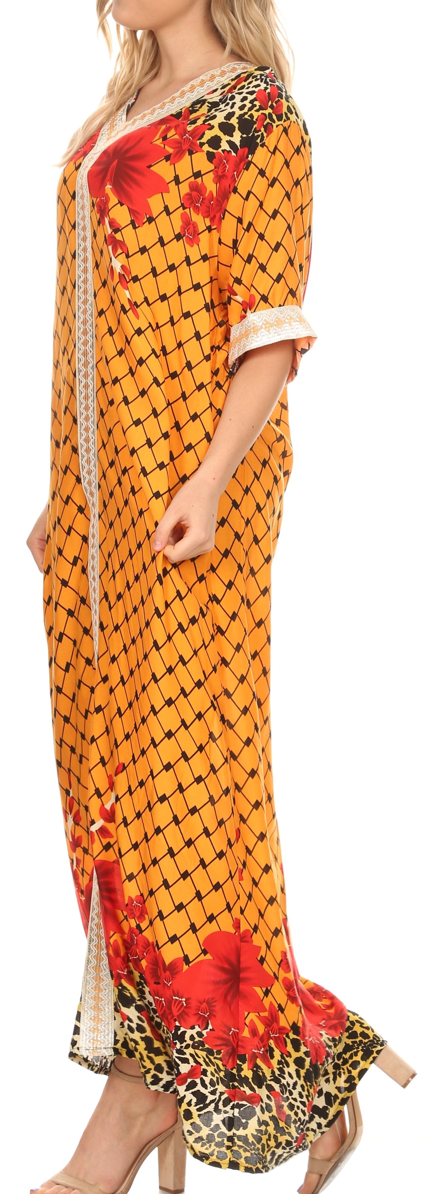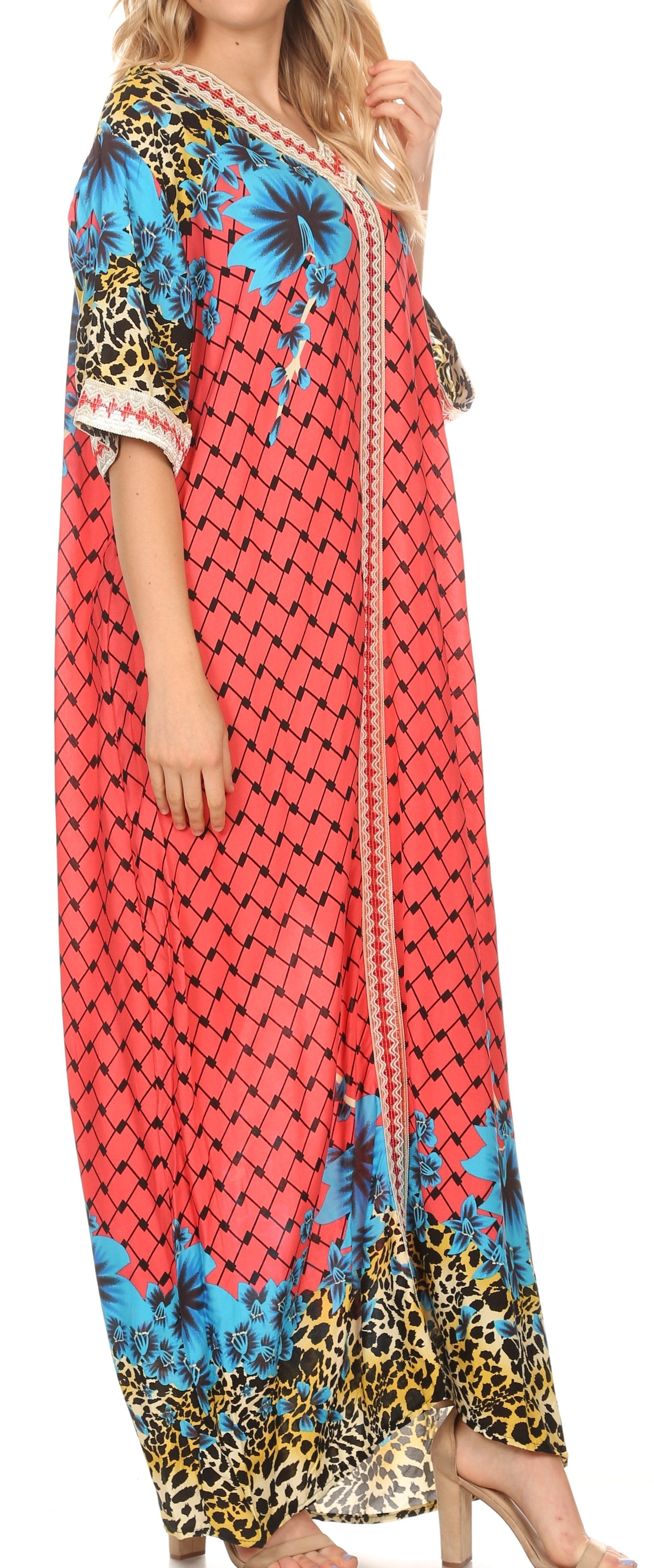 Sakkas Sabra Womens Long Casual Cover-up Tunic Kaftan V neck Dress