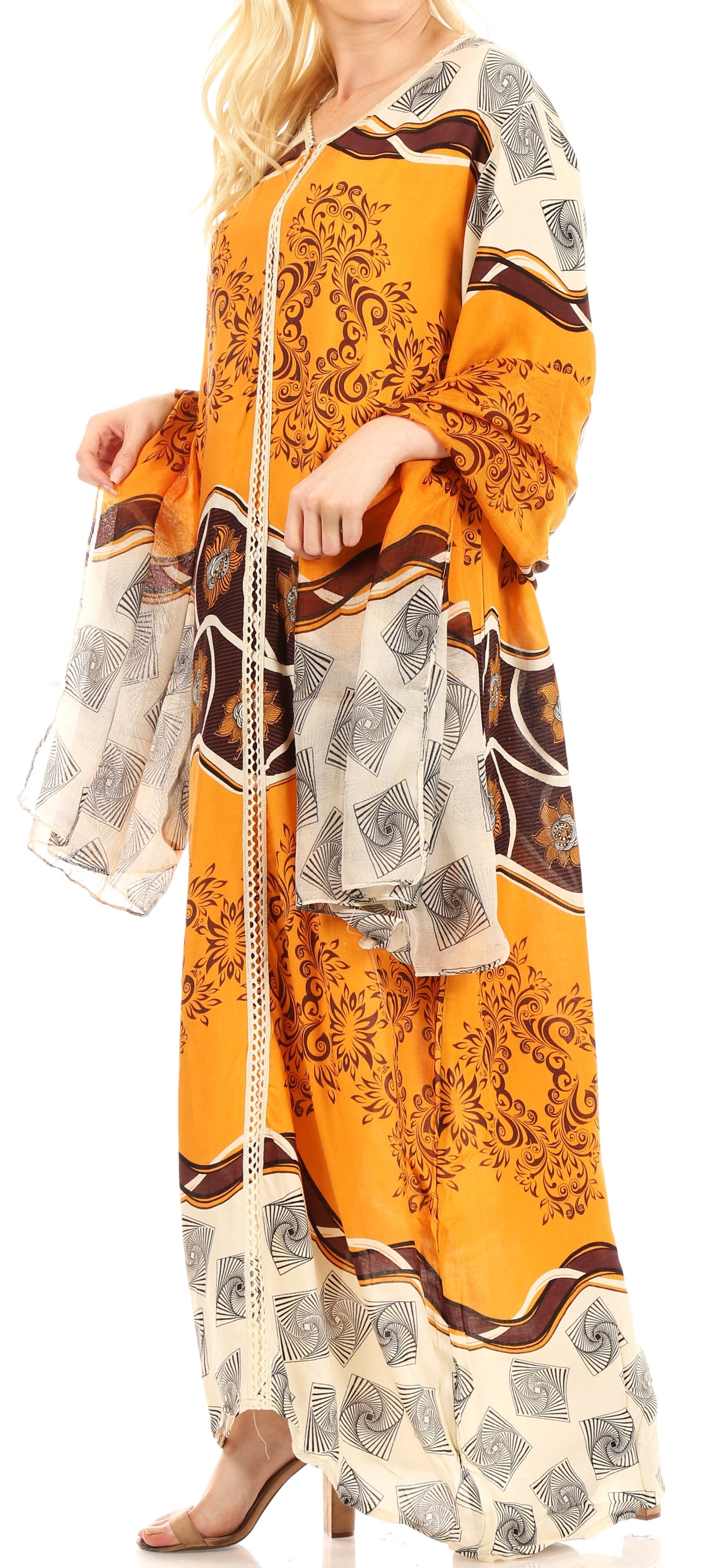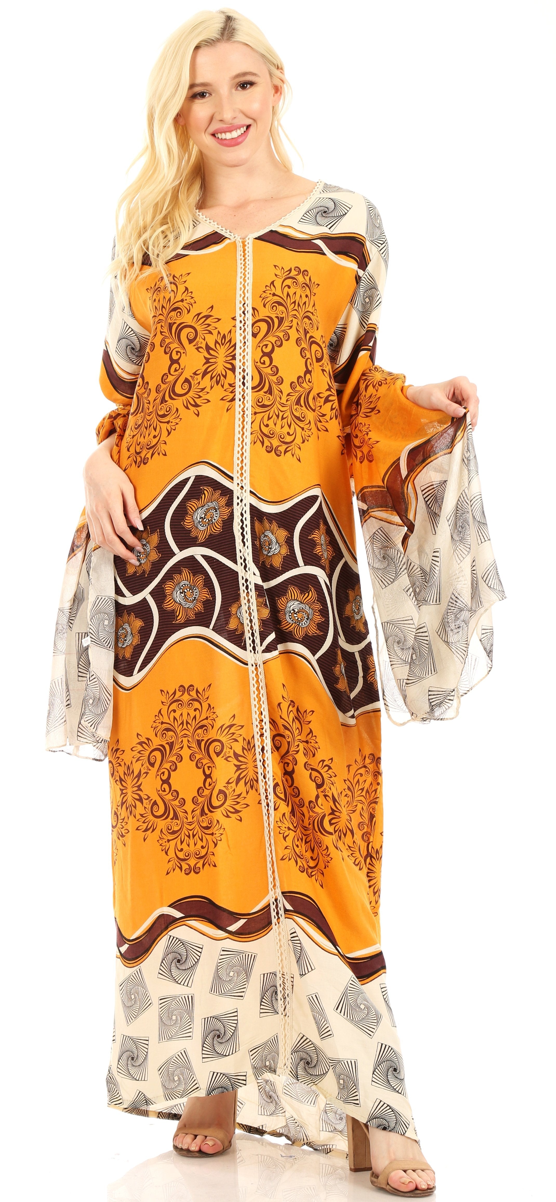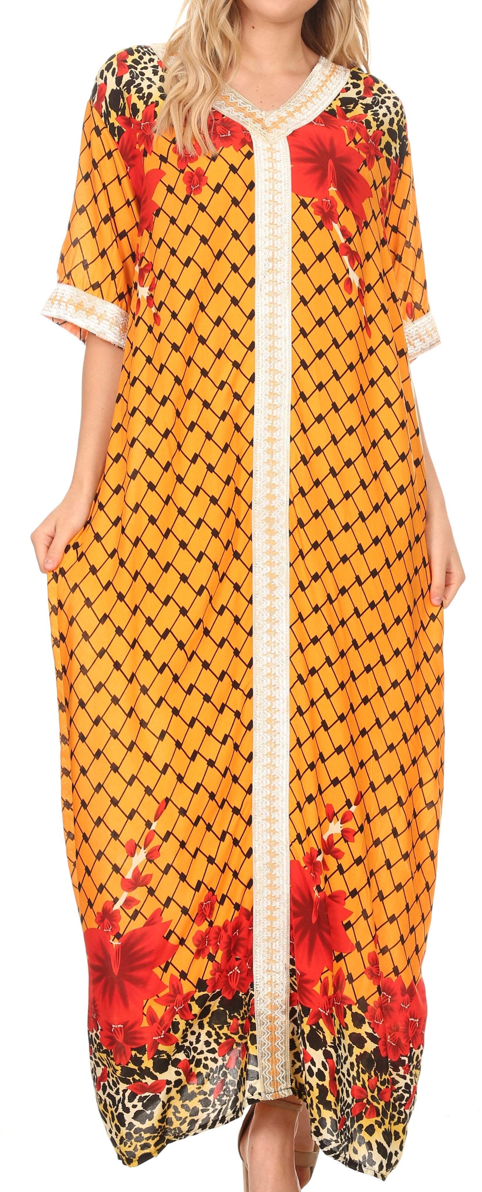 Sakkas Sabra Womens Long Casual Cover-up Tunic Kaftan V neck Dress