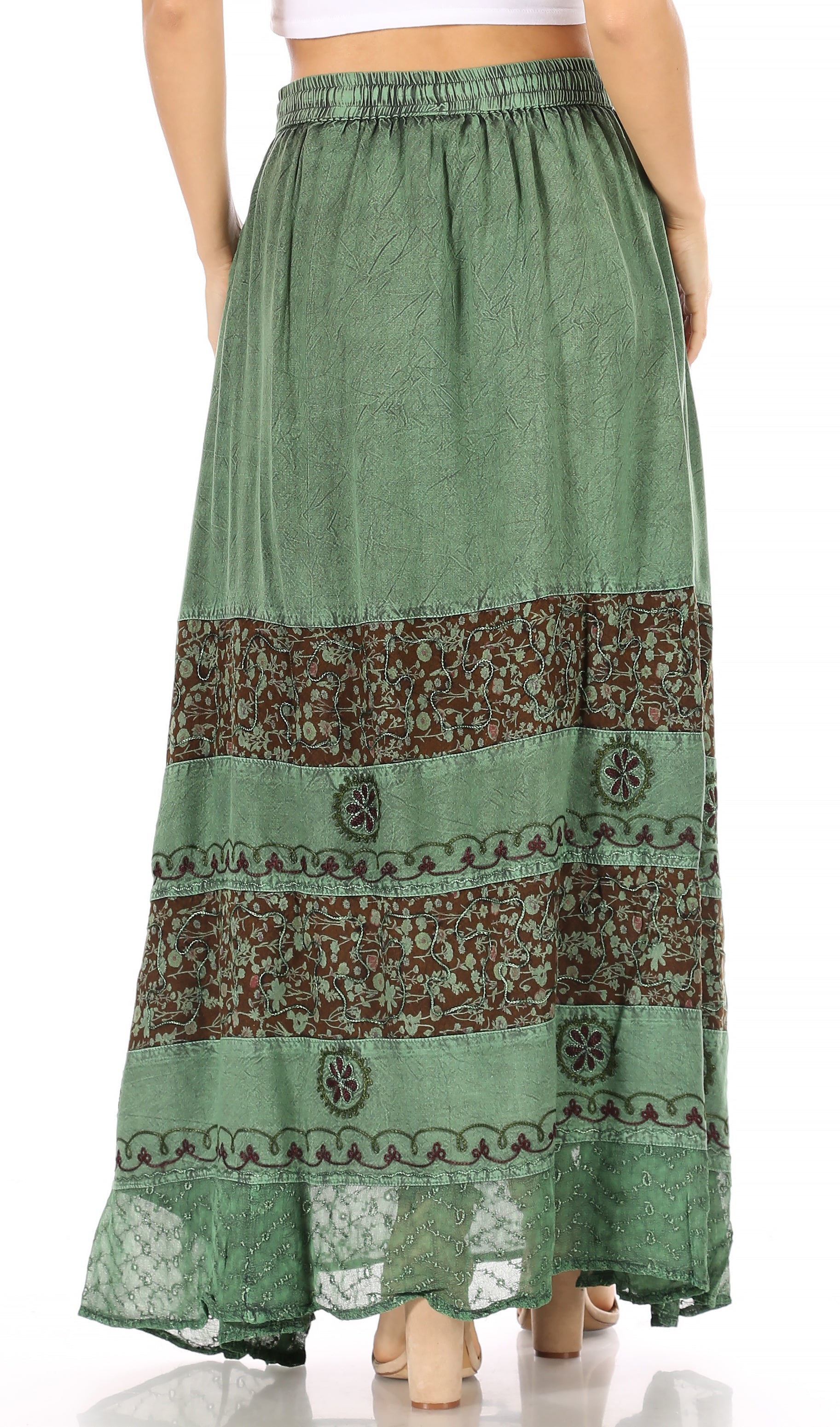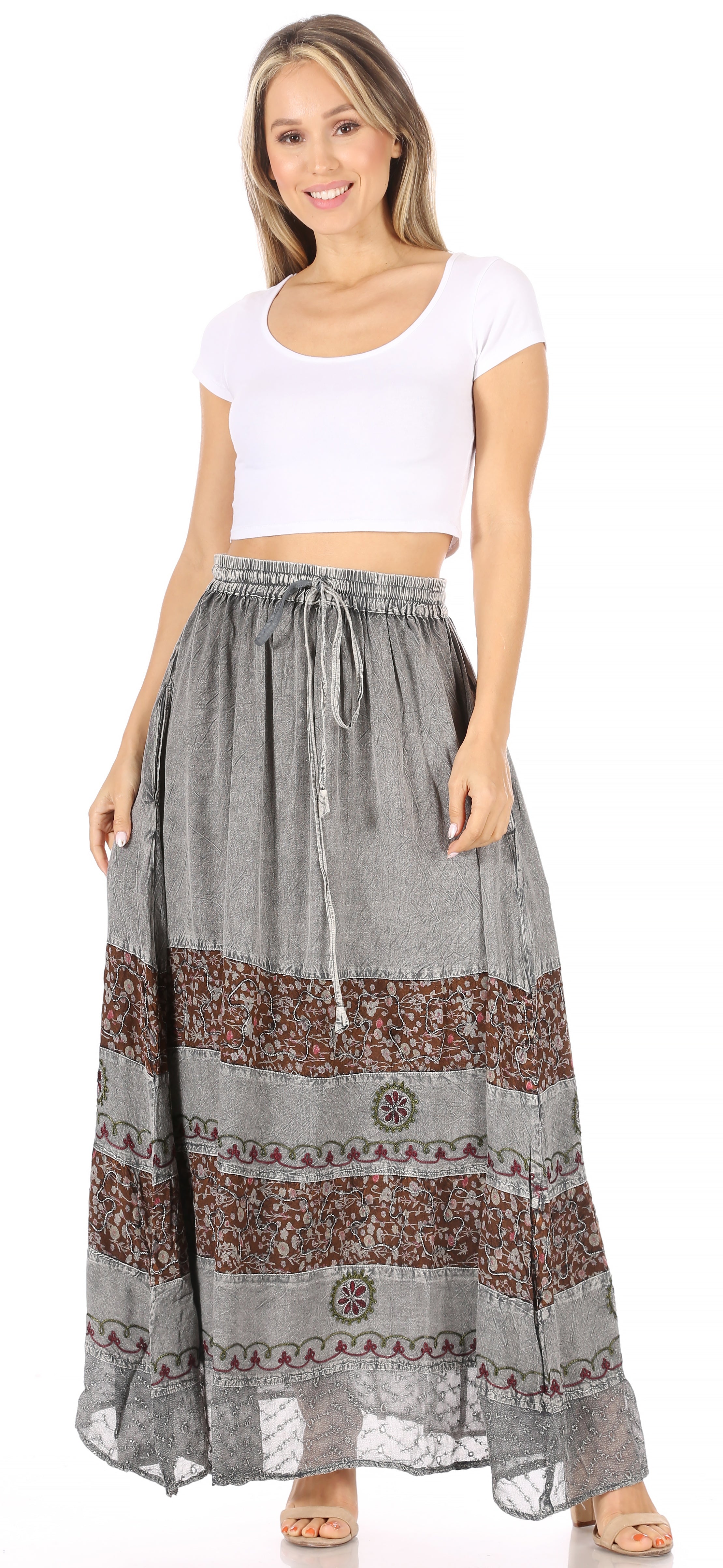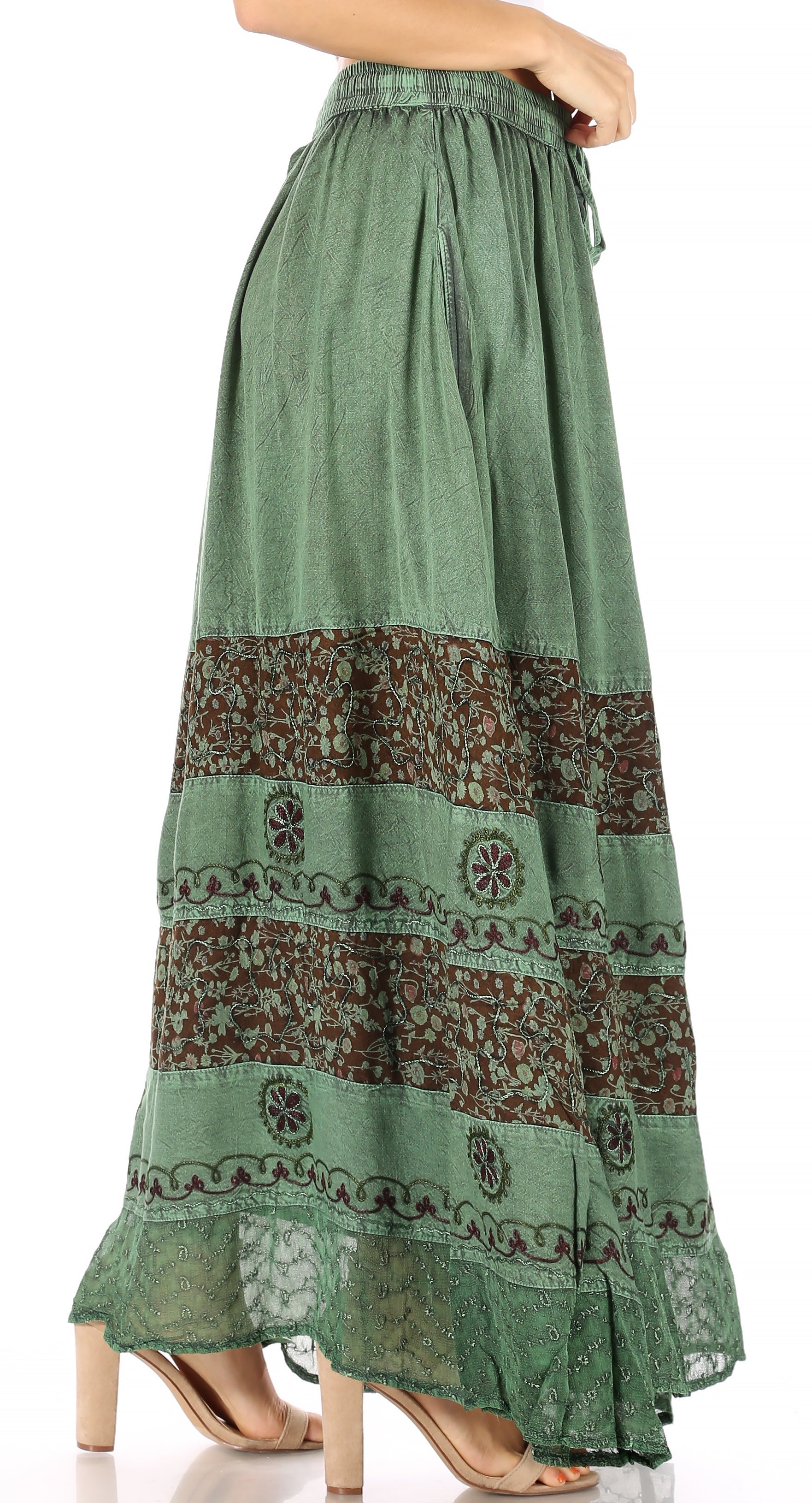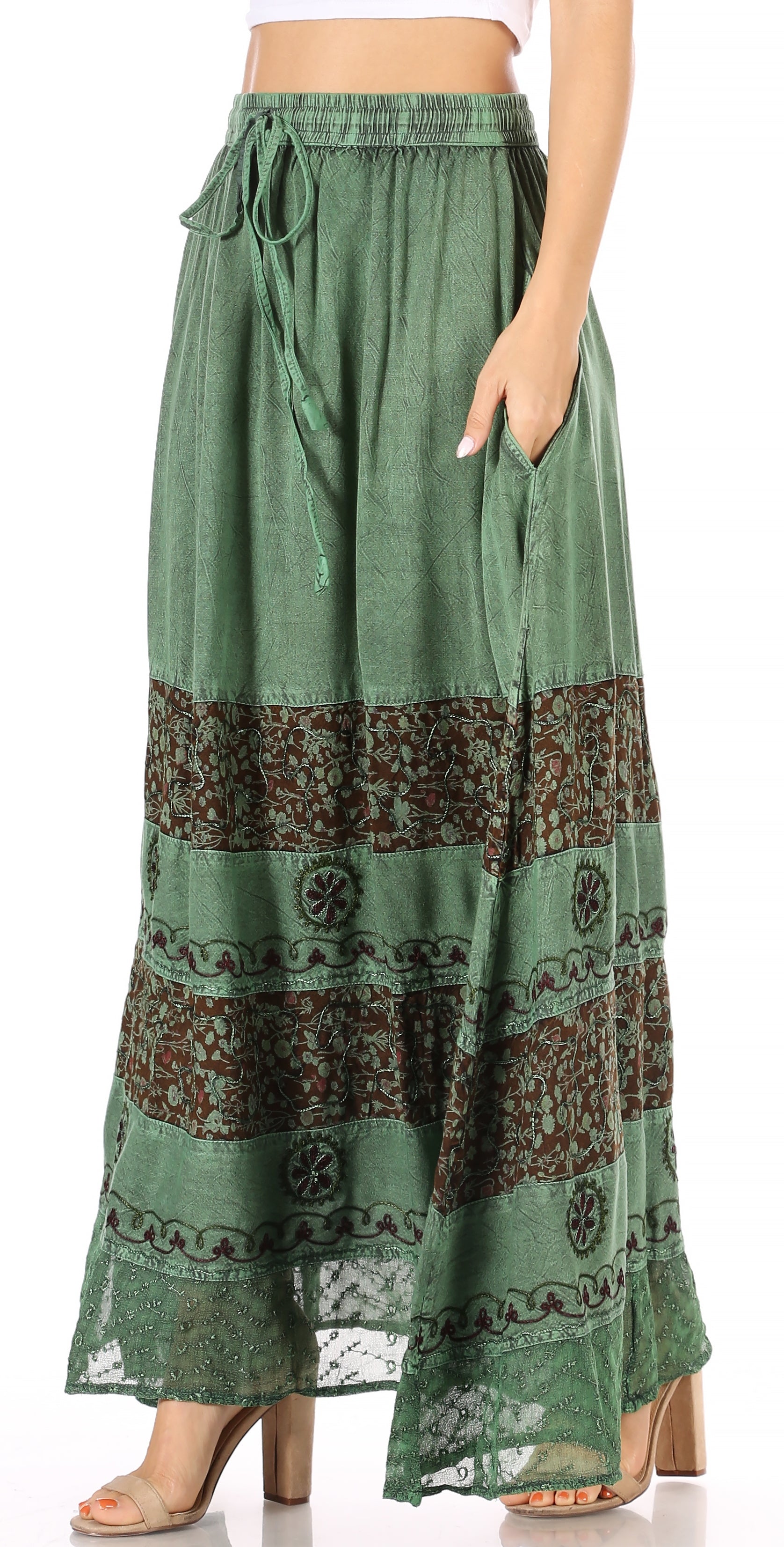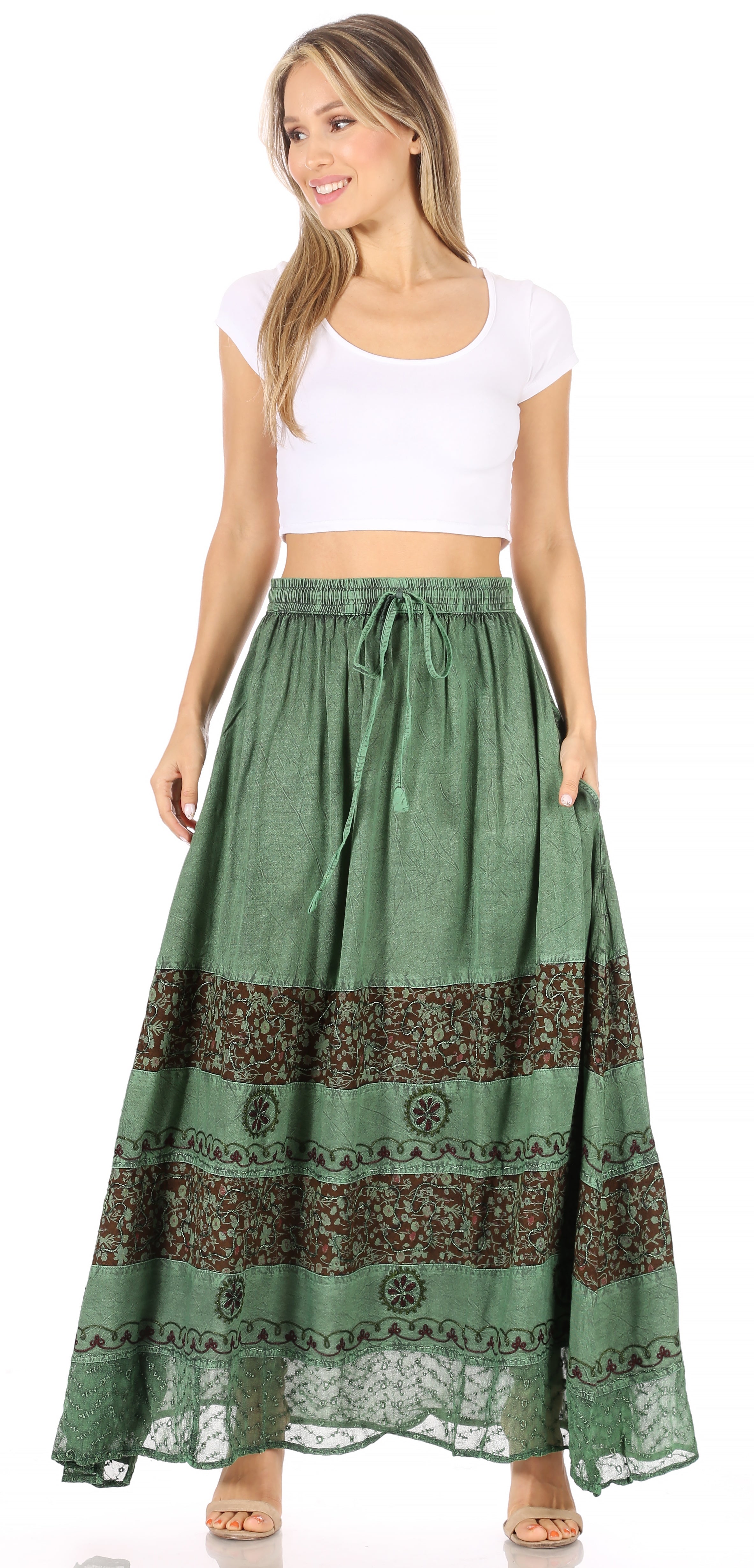 Sakkas Sandra Women's Casual Long Maxi Boho Gypsy Skirt Elastic Waist & Pockets