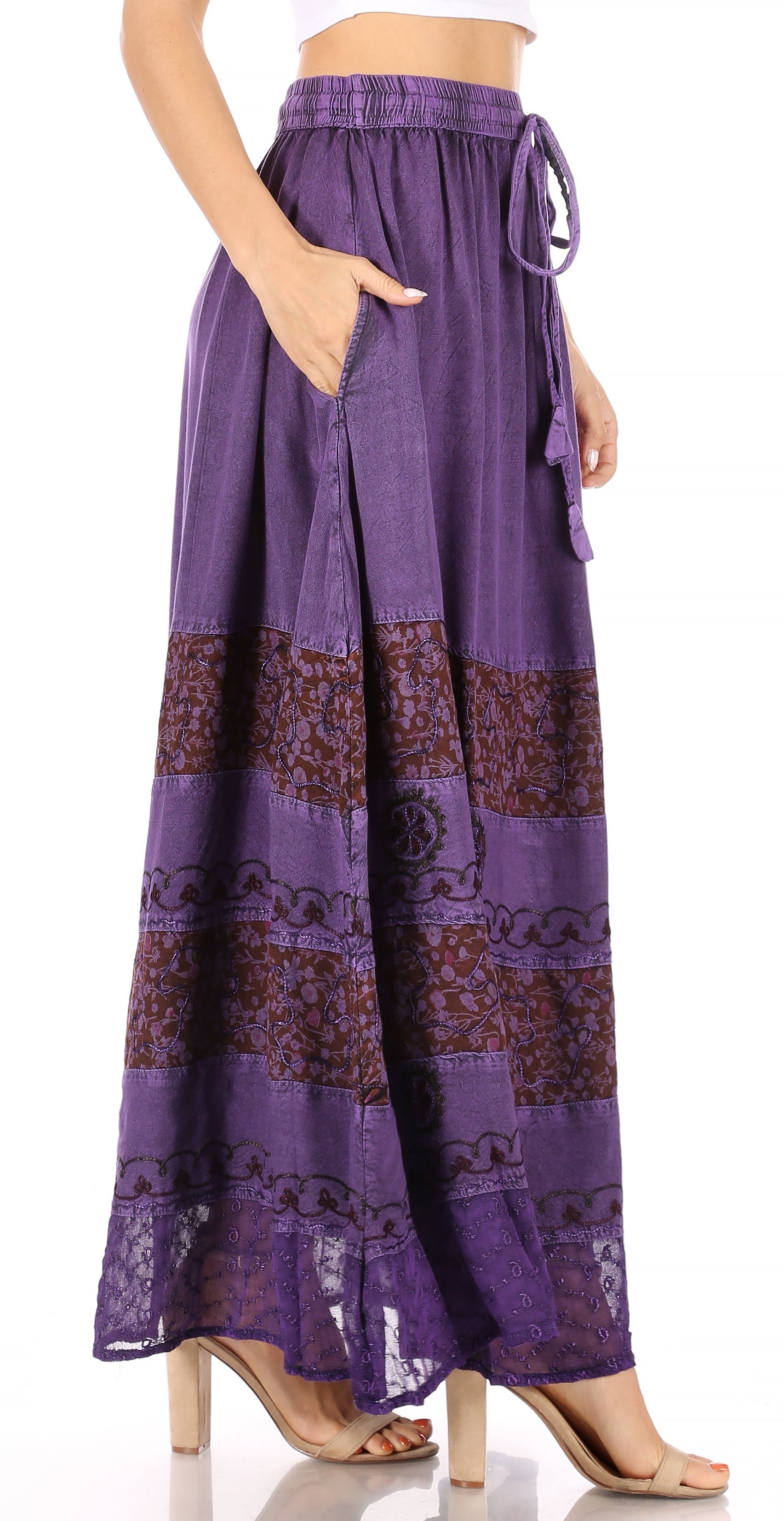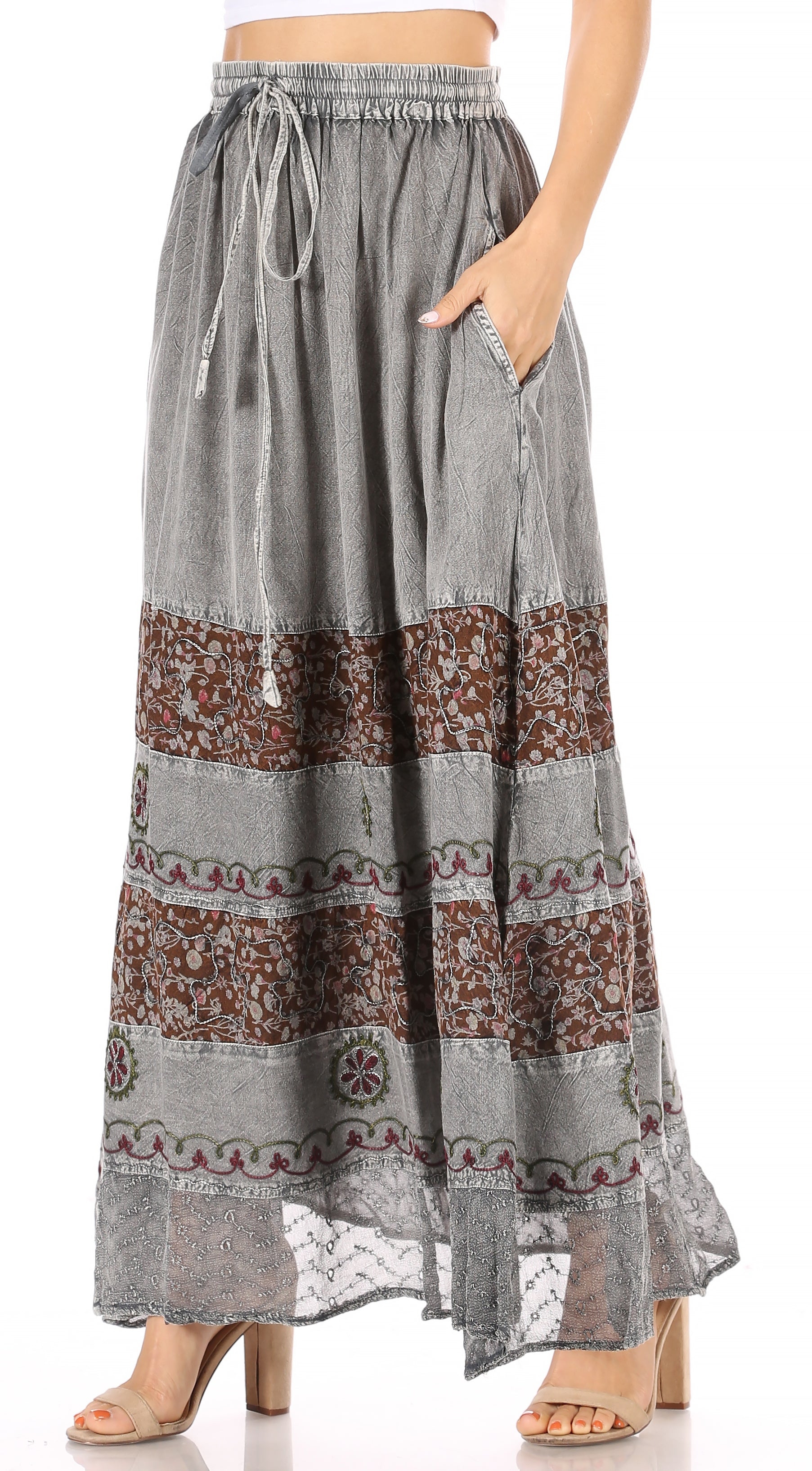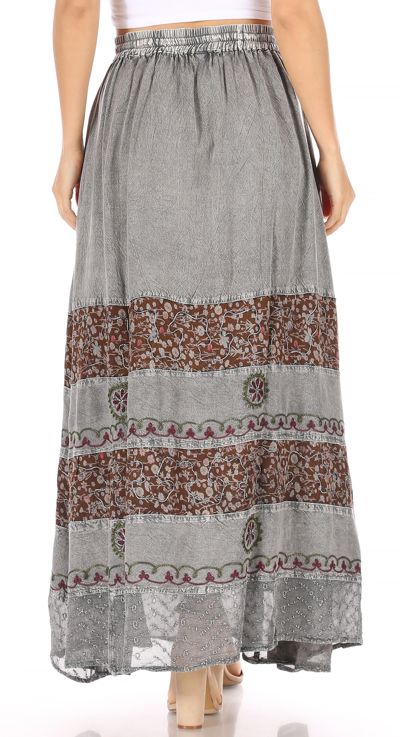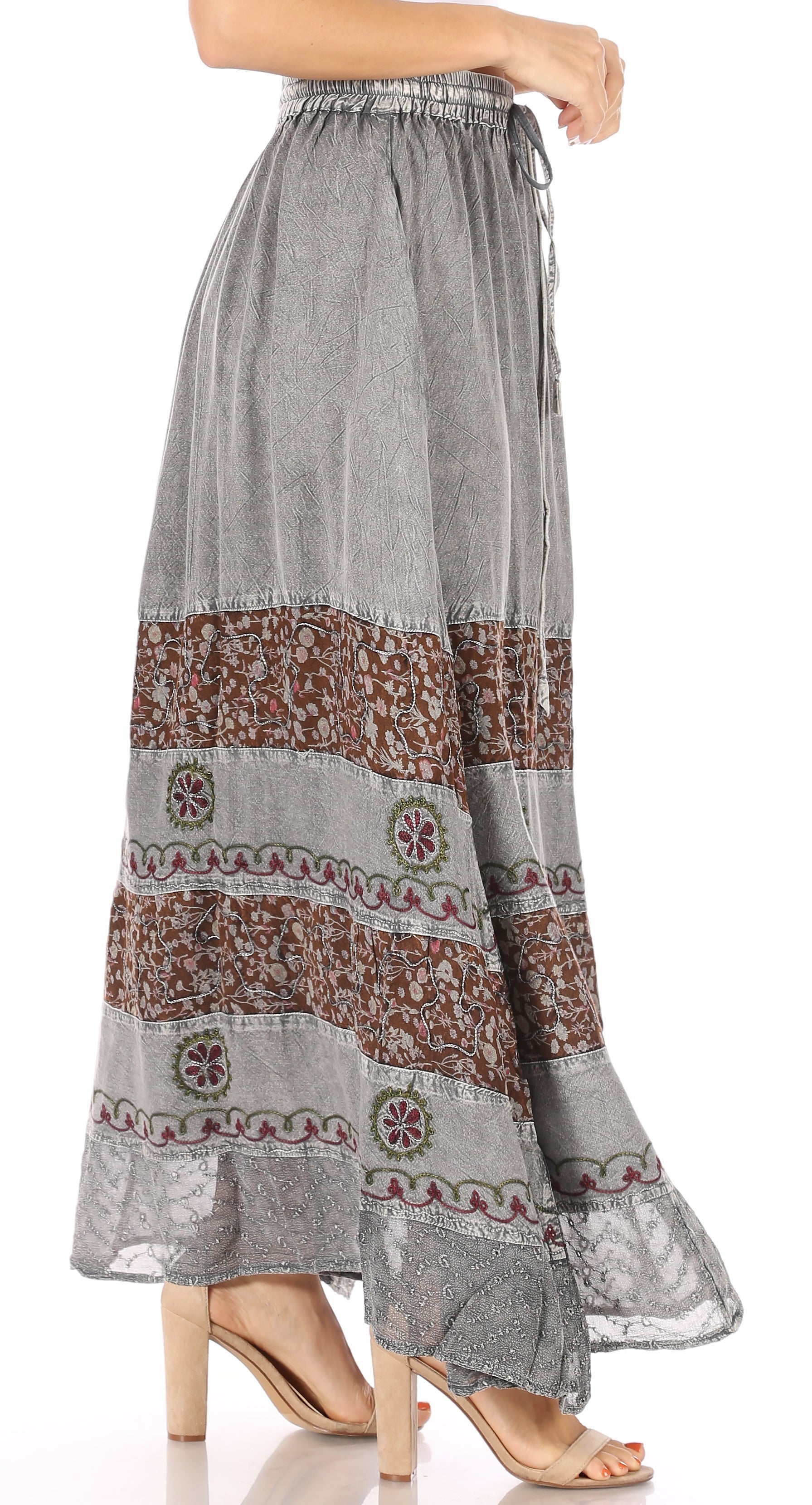 Sakkas Sandra Women's Casual Long Maxi Boho Gypsy Skirt Elastic Waist & Pockets
