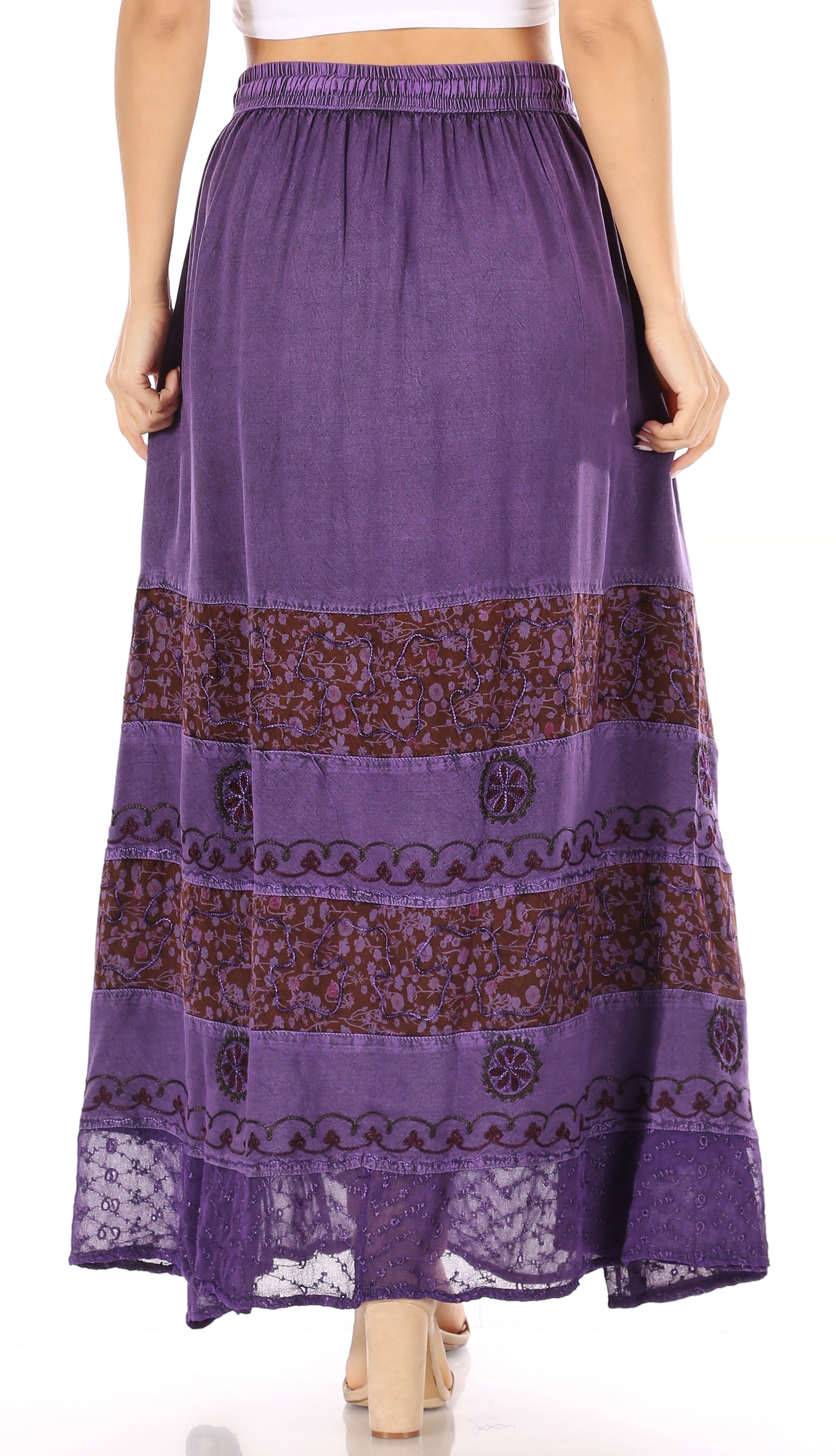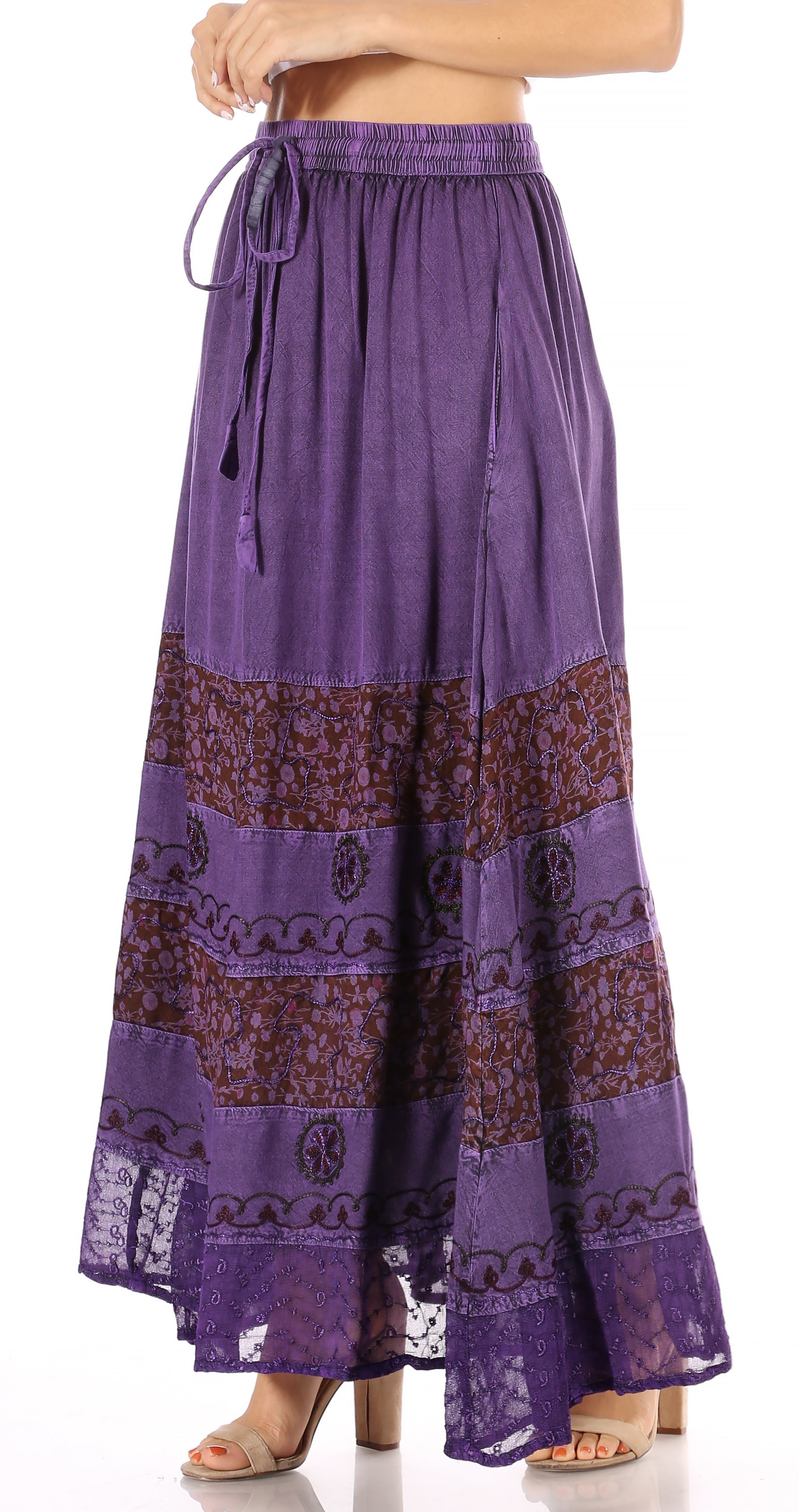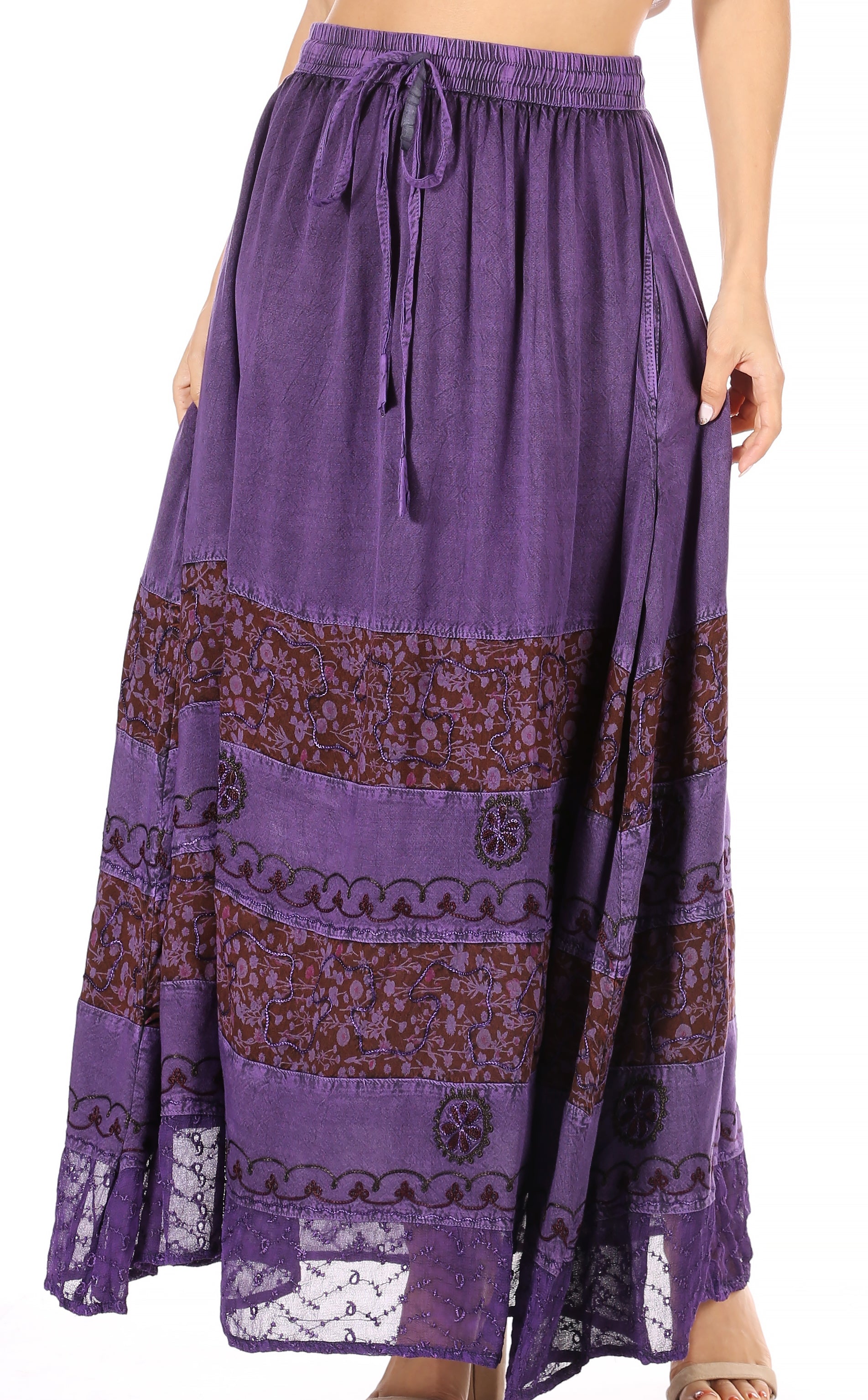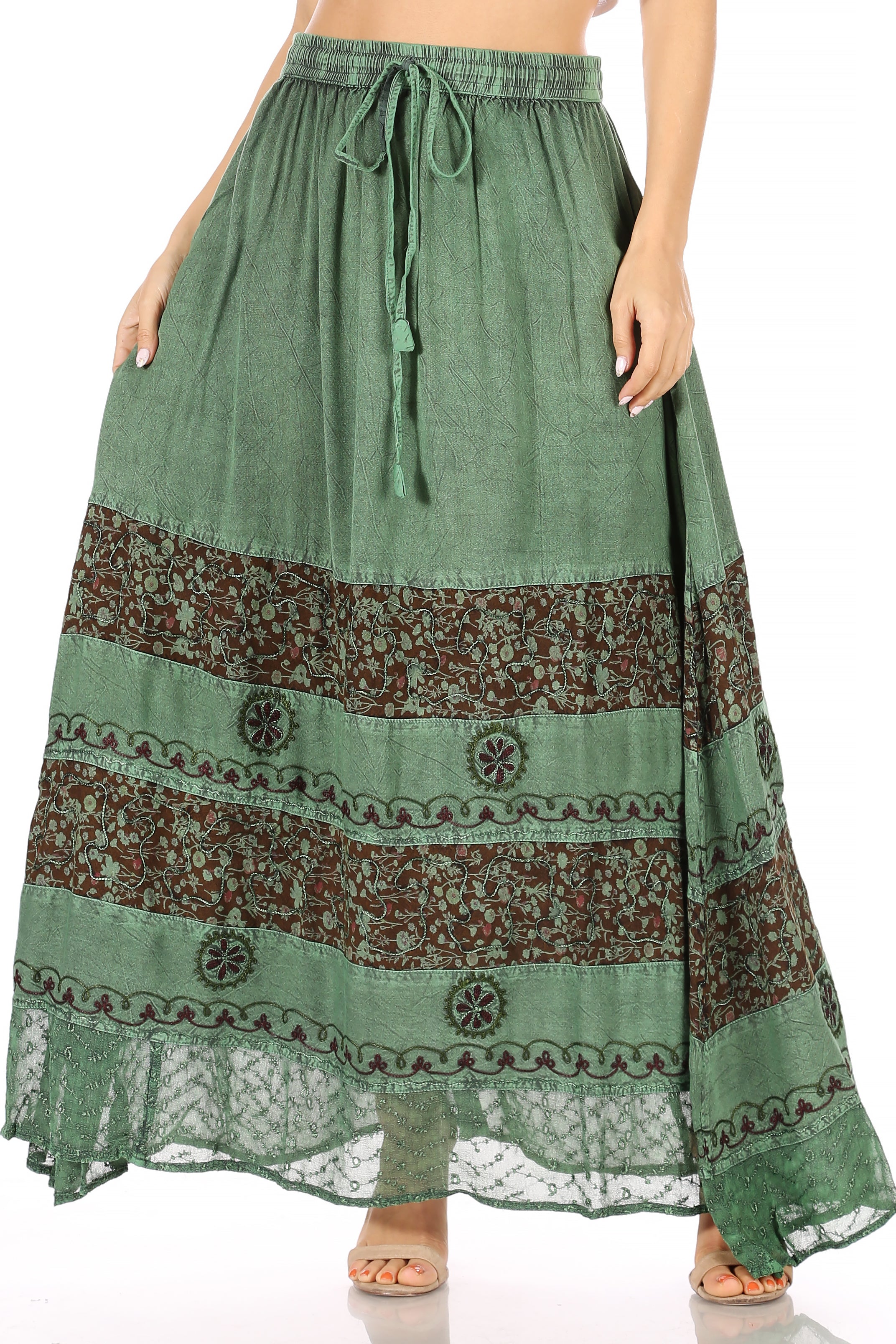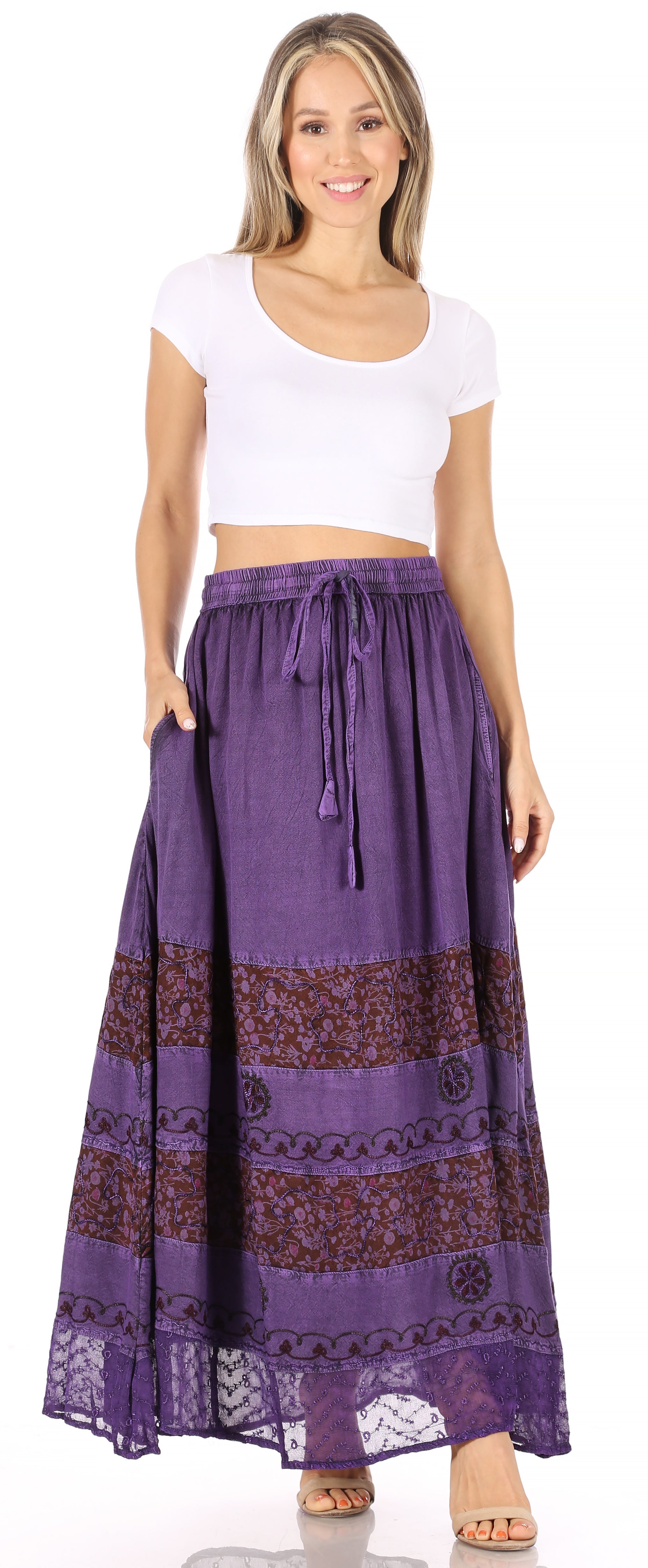 Sakkas Sandra Women's Casual Long Maxi Boho Gypsy Skirt Elastic Waist & Pockets