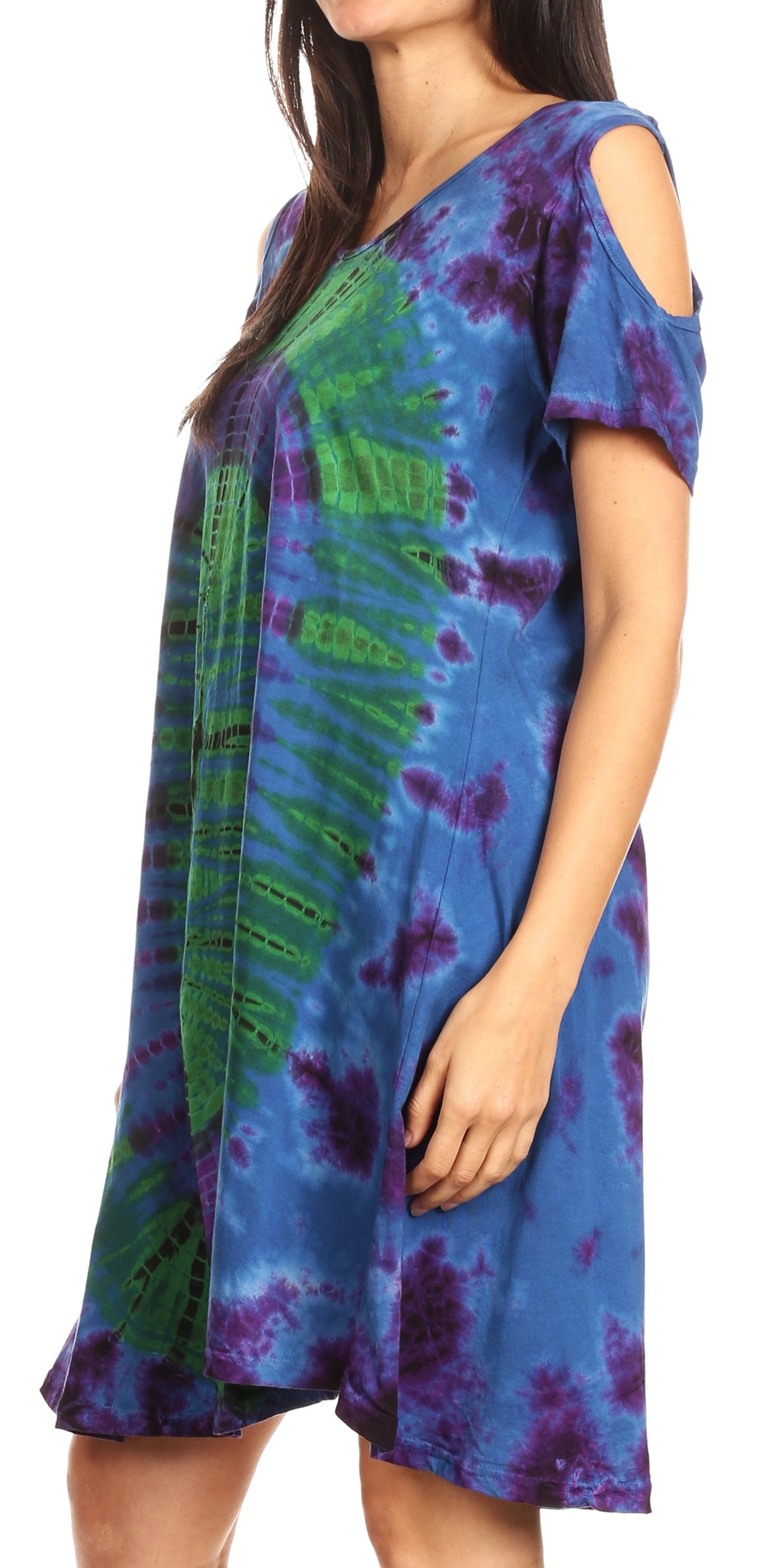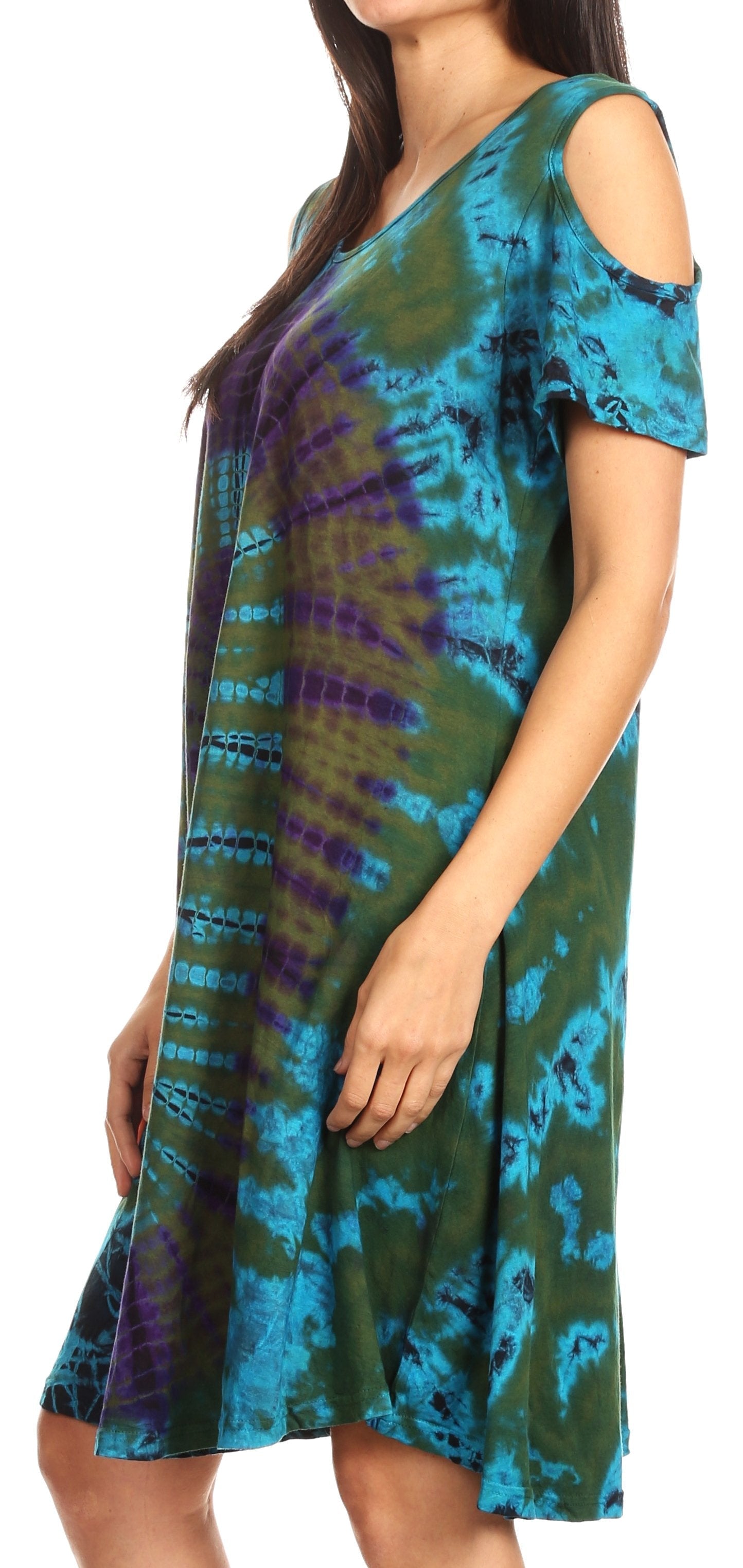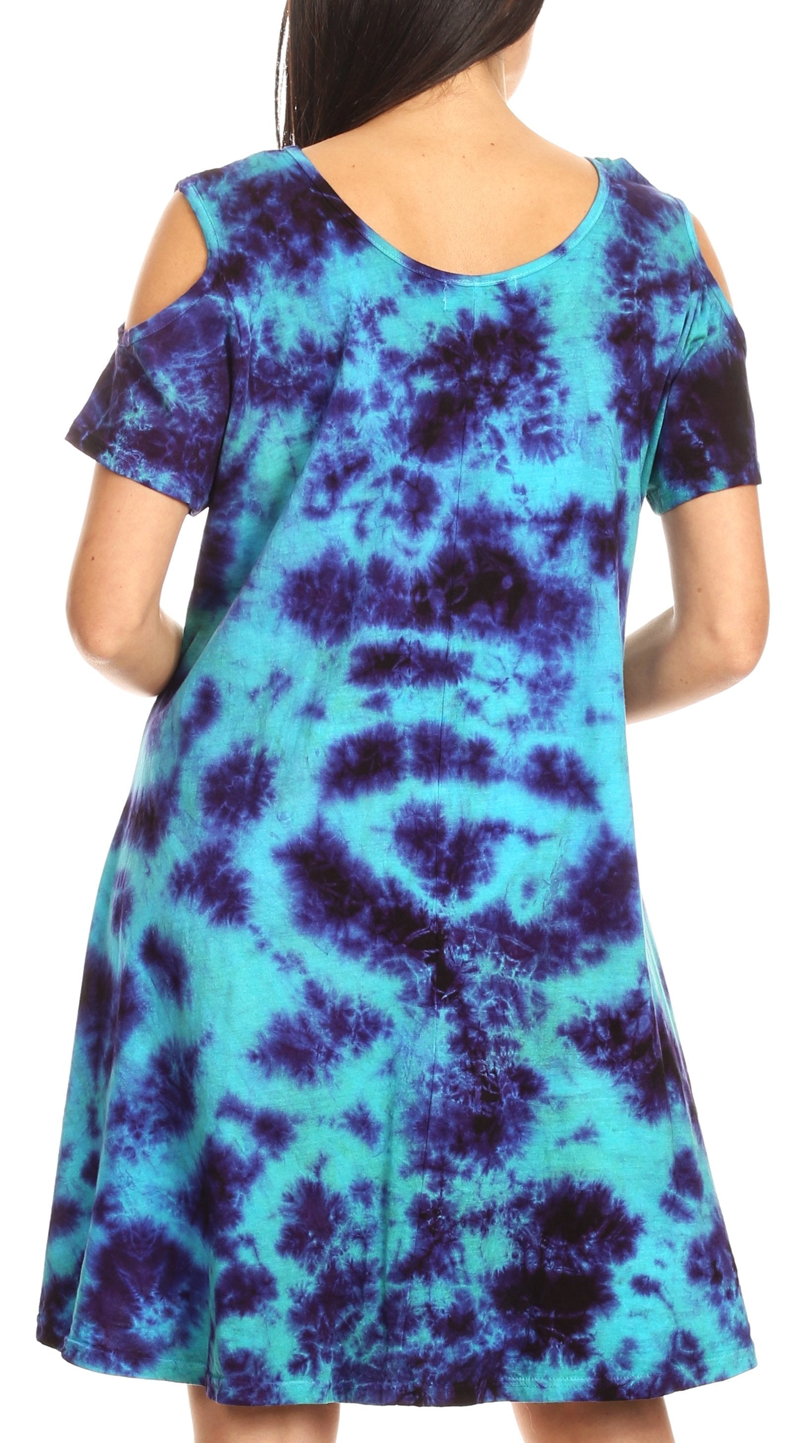 Sakkas Sienna Women's Knit Cold Shoulder Short Sleeve Flared Shift Short Dress