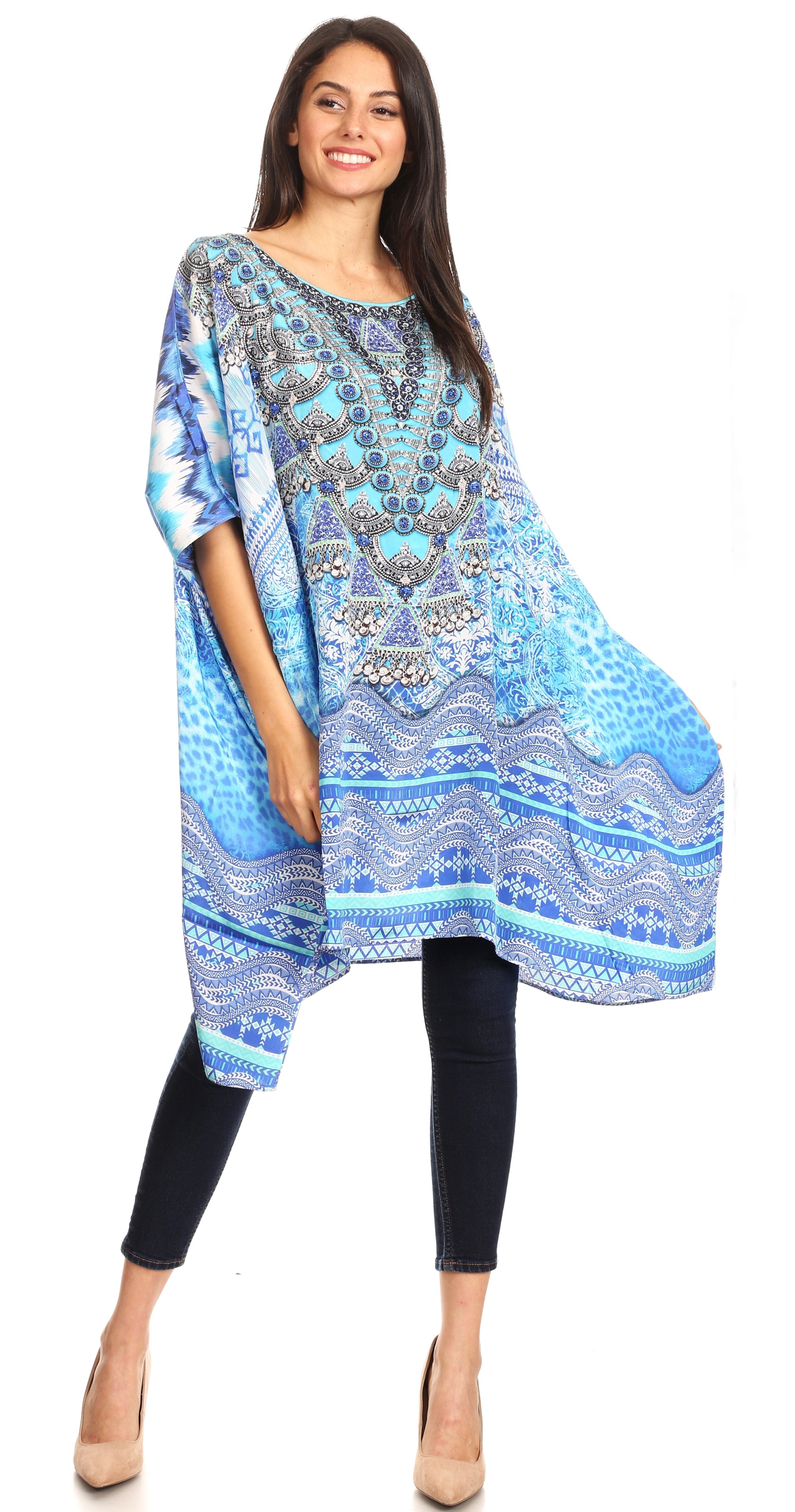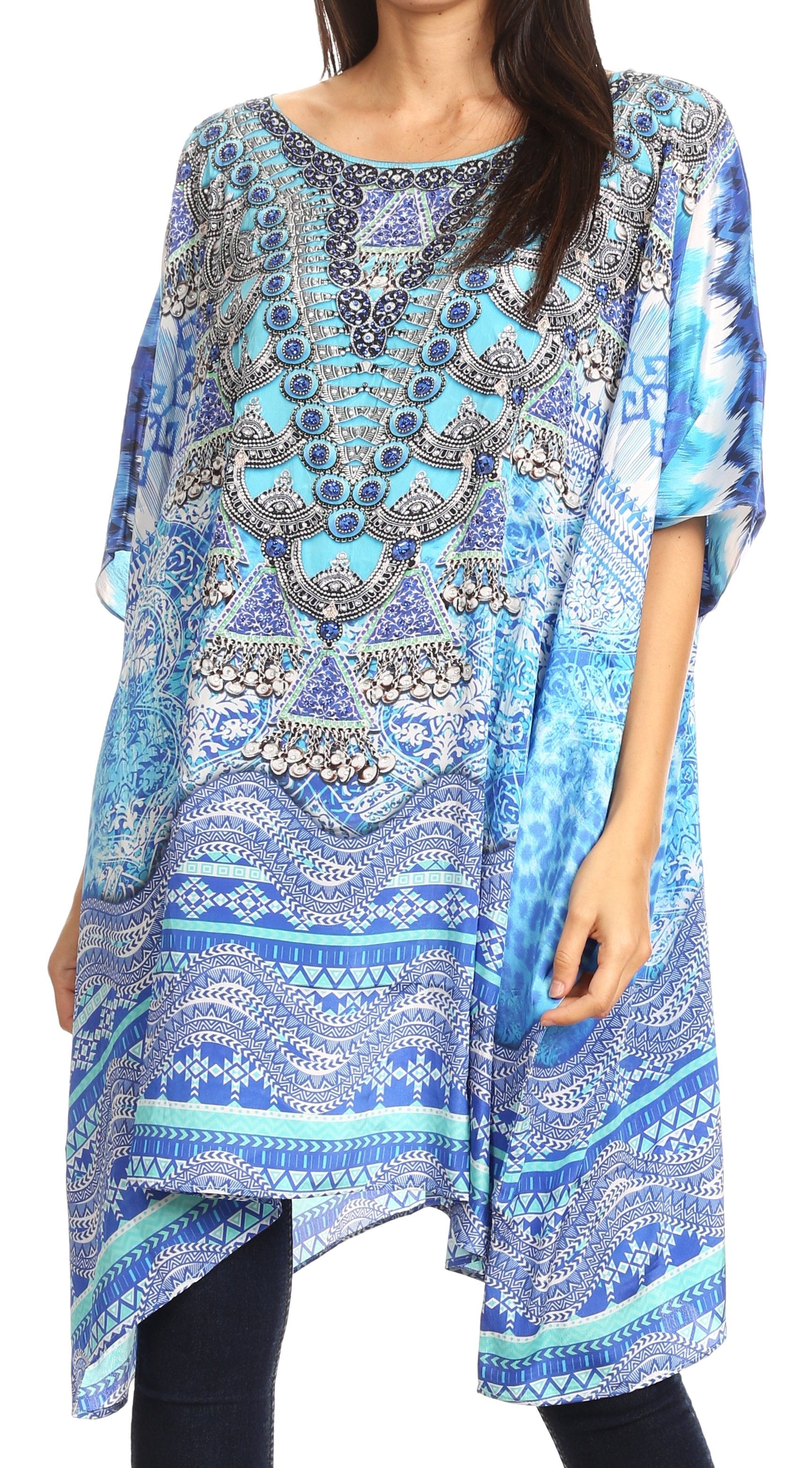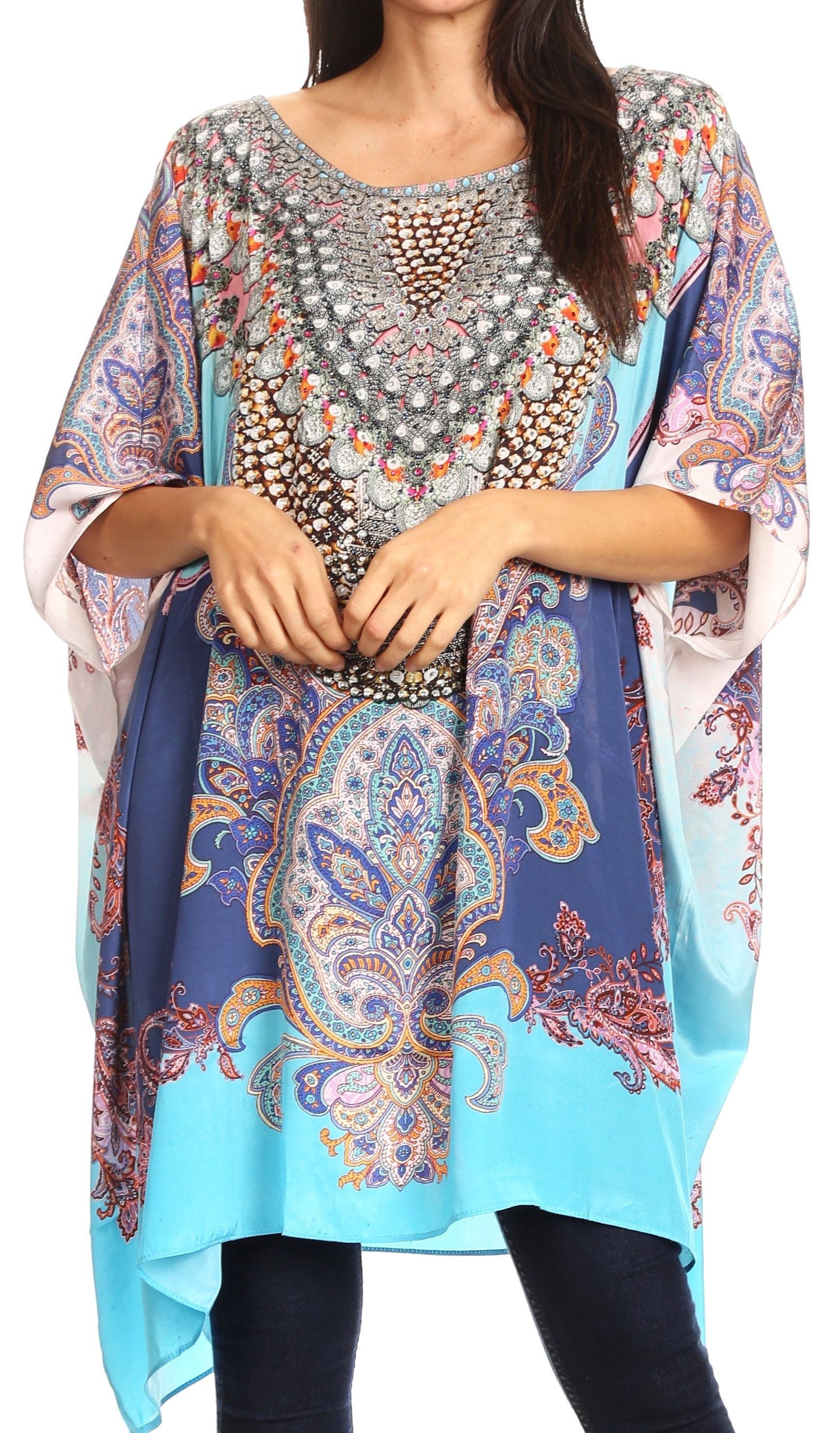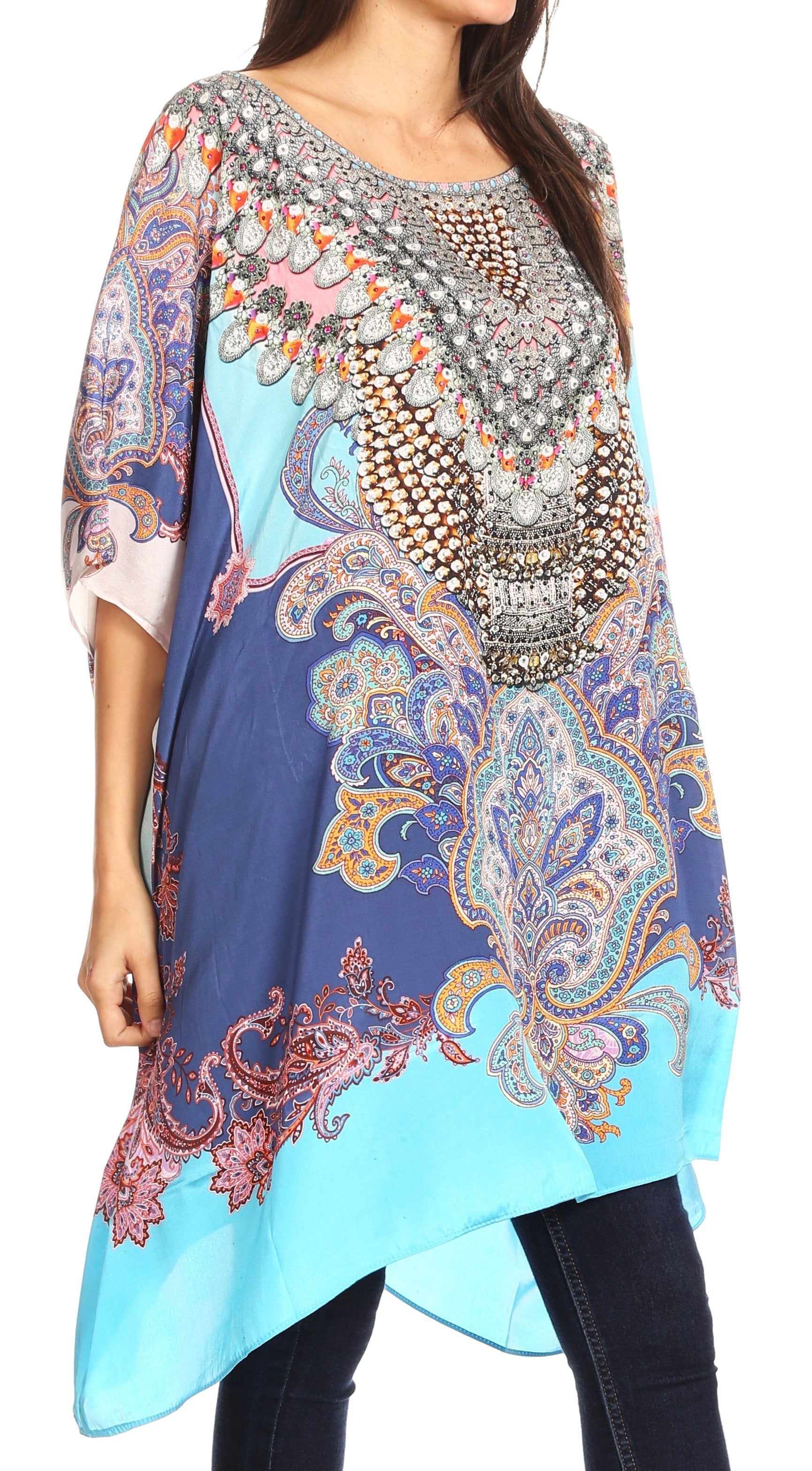• PULLOVER/OVERSIZE TOP/KAFTAN/TUNIC: Sira, a versatile casual boho top. This lovely garment features a round neck, oversized bodice, colorful print, embellishment at front, loose/relaxed style. Ideal for everyday wear, easily transitions from casual to formal, can also be worn as swimwear cover up! Look and feel like a goddess in any setting while wearing this gorgeous tunic/top!