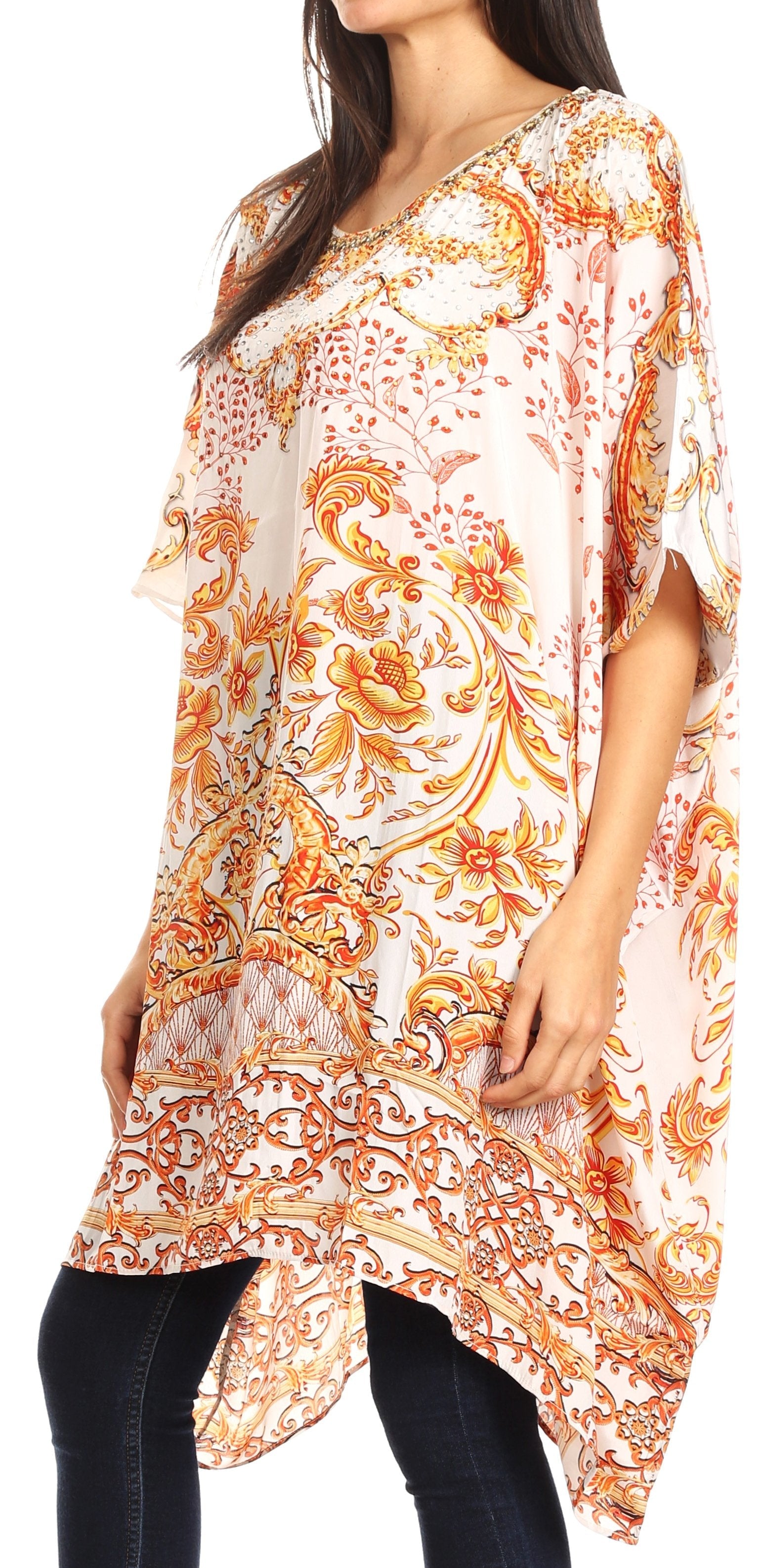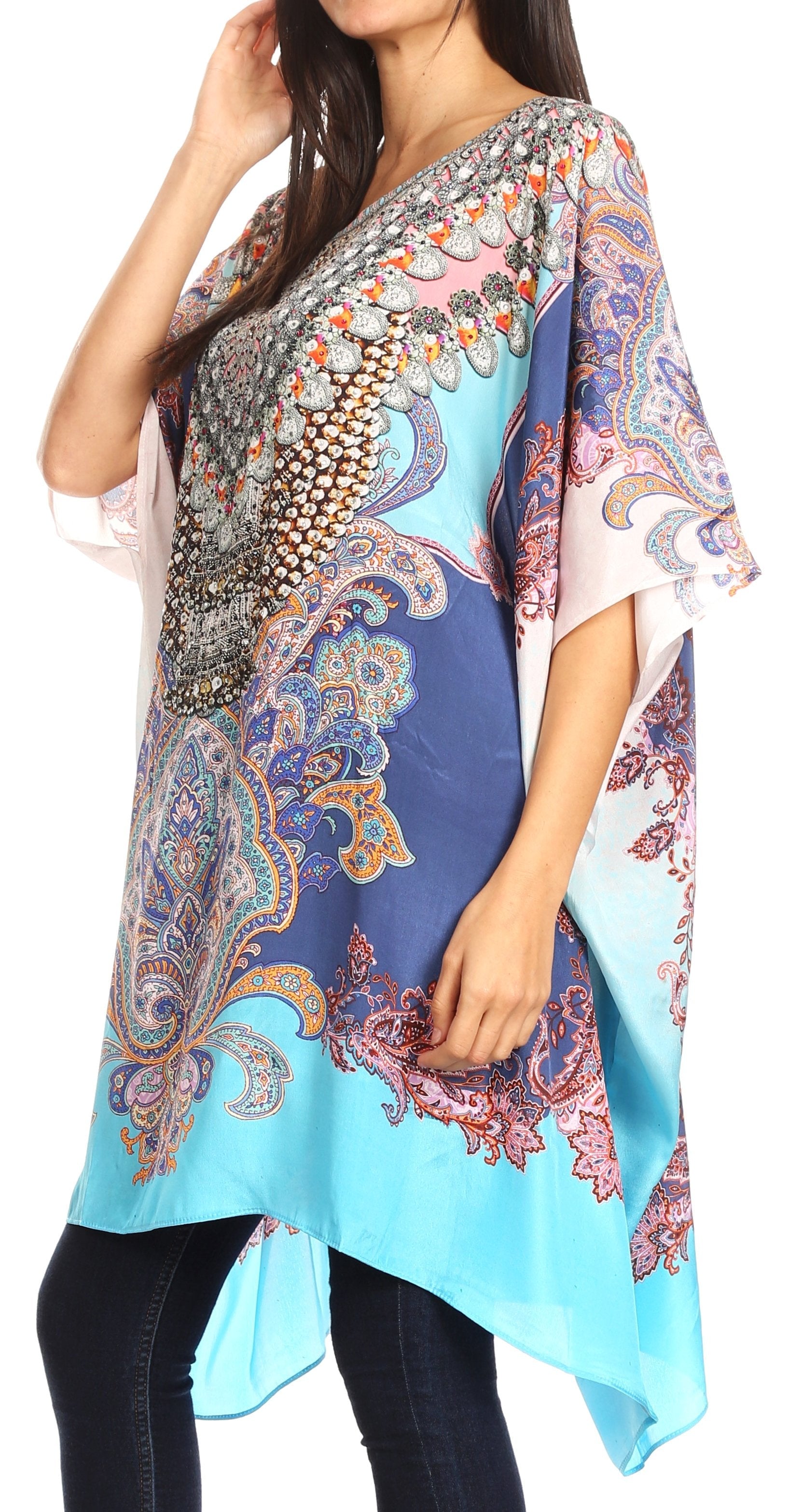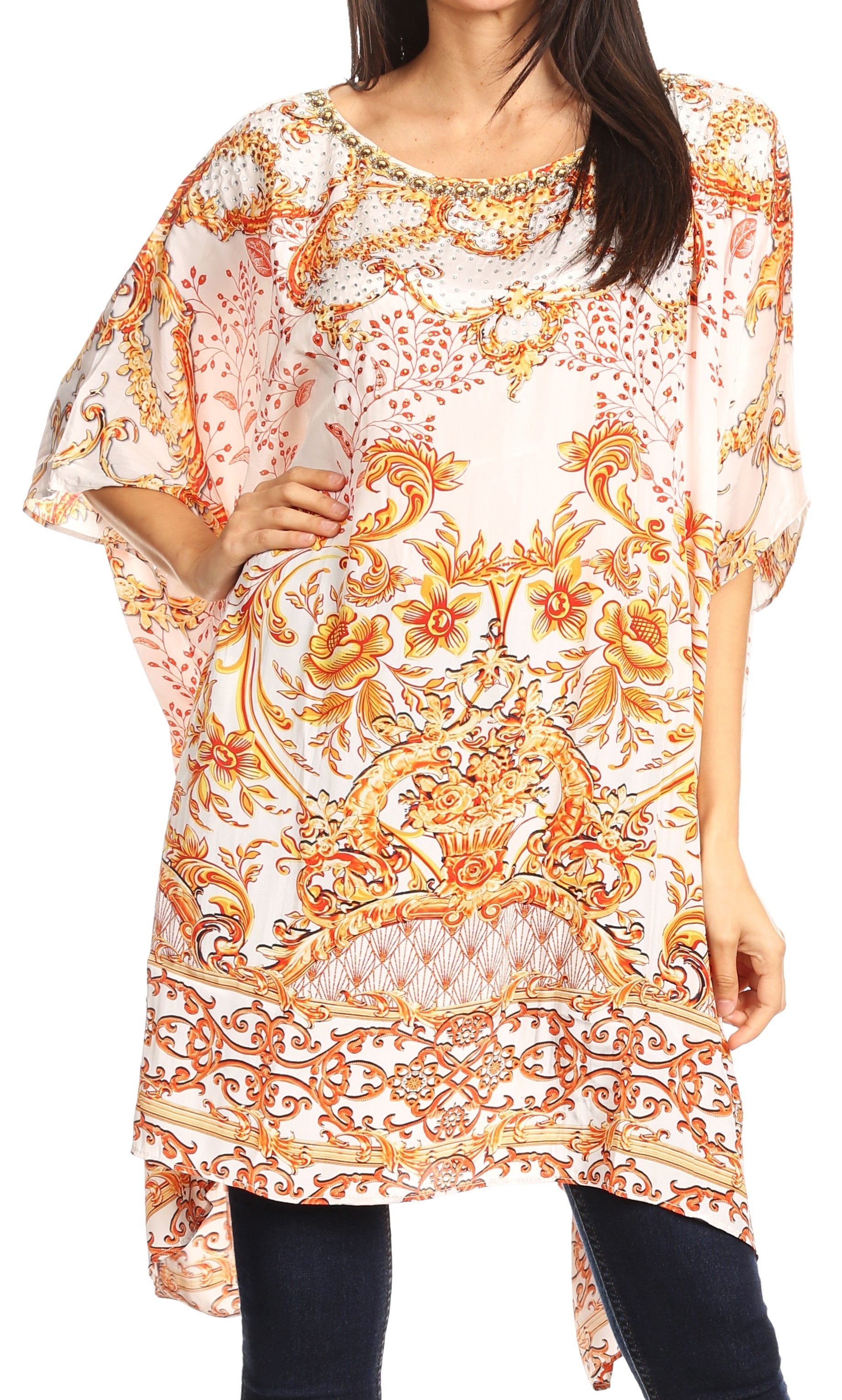 • PULLOVER/OVERSIZE TOP/KAFTAN/TUNIC: Sira, a versatile casual boho top. This lovely garment features a round neck, oversized bodice, colorful print, embellishment at front, loose/relaxed style. Ideal for everyday wear, easily transitions from casual to formal, can also be worn as swimwear cover up! Look and feel like a goddess in any setting while wearing this gorgeous tunic/top!