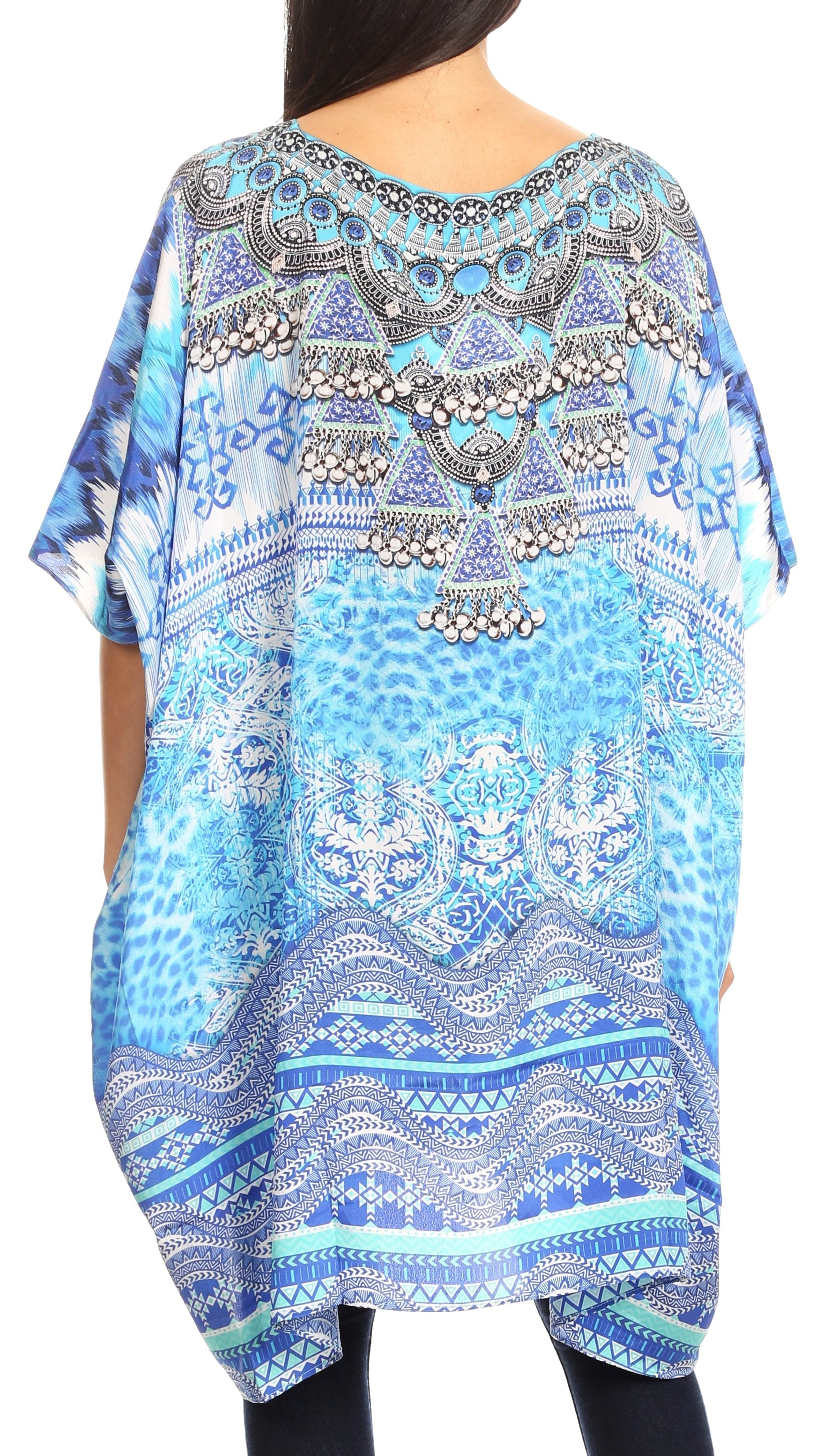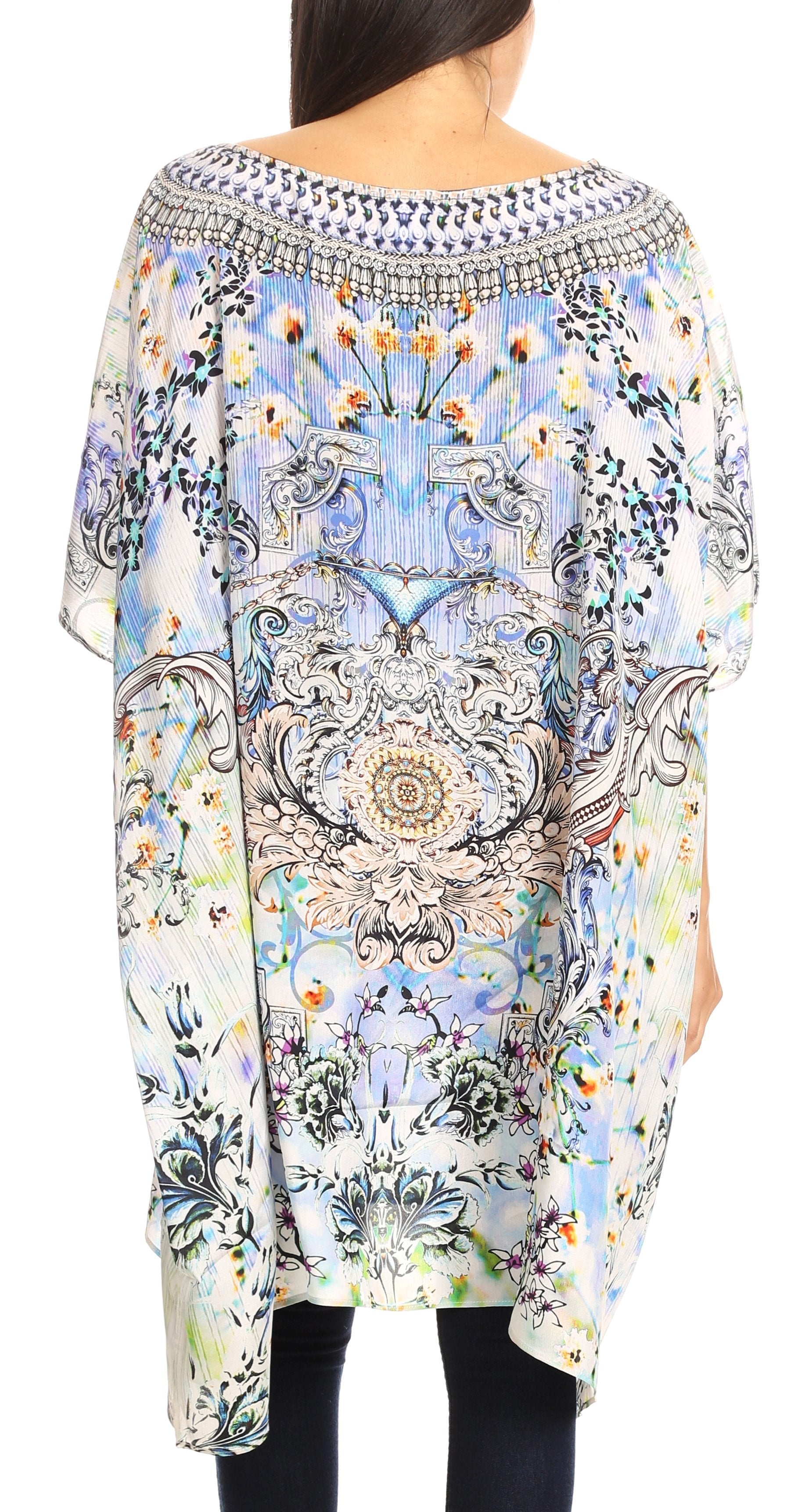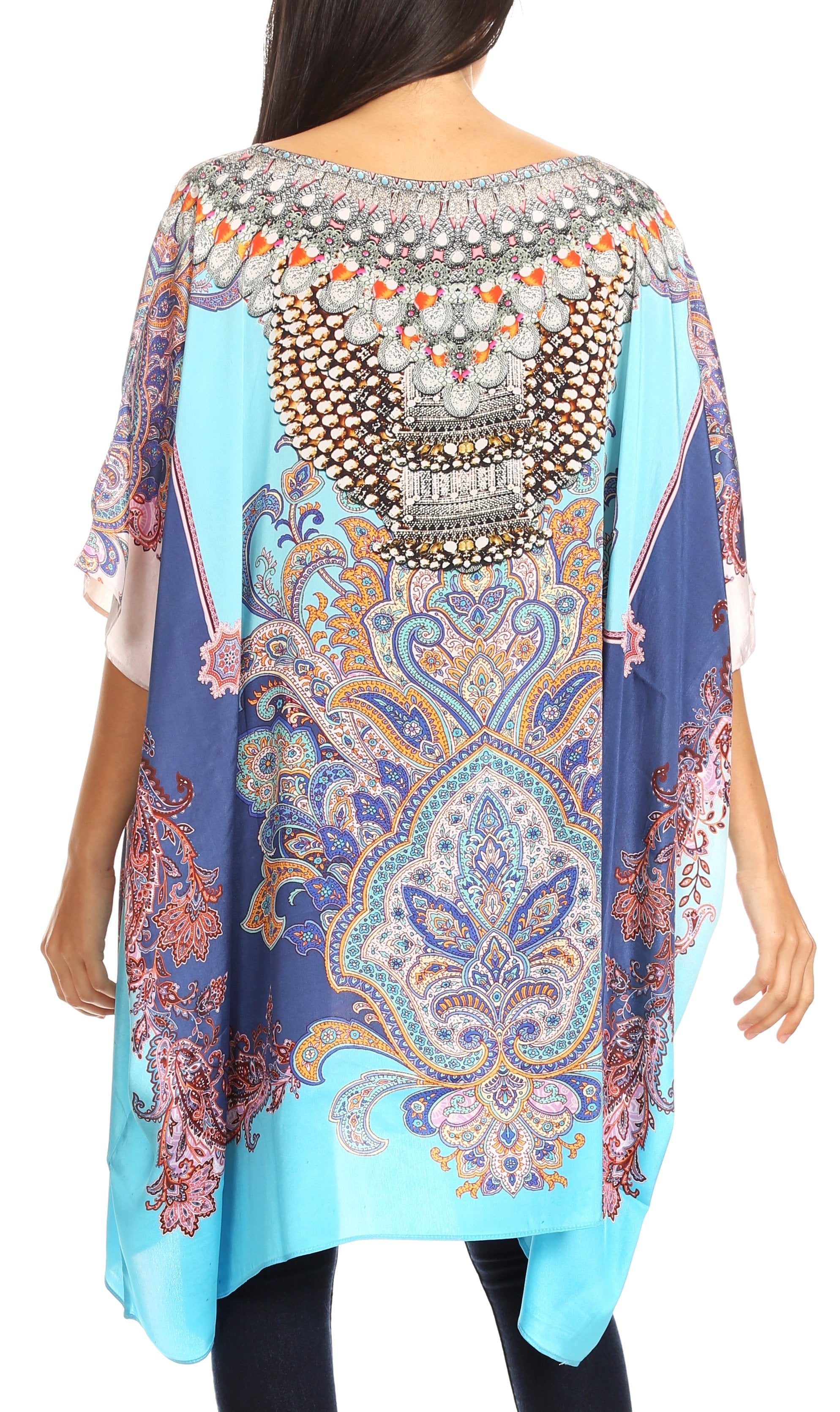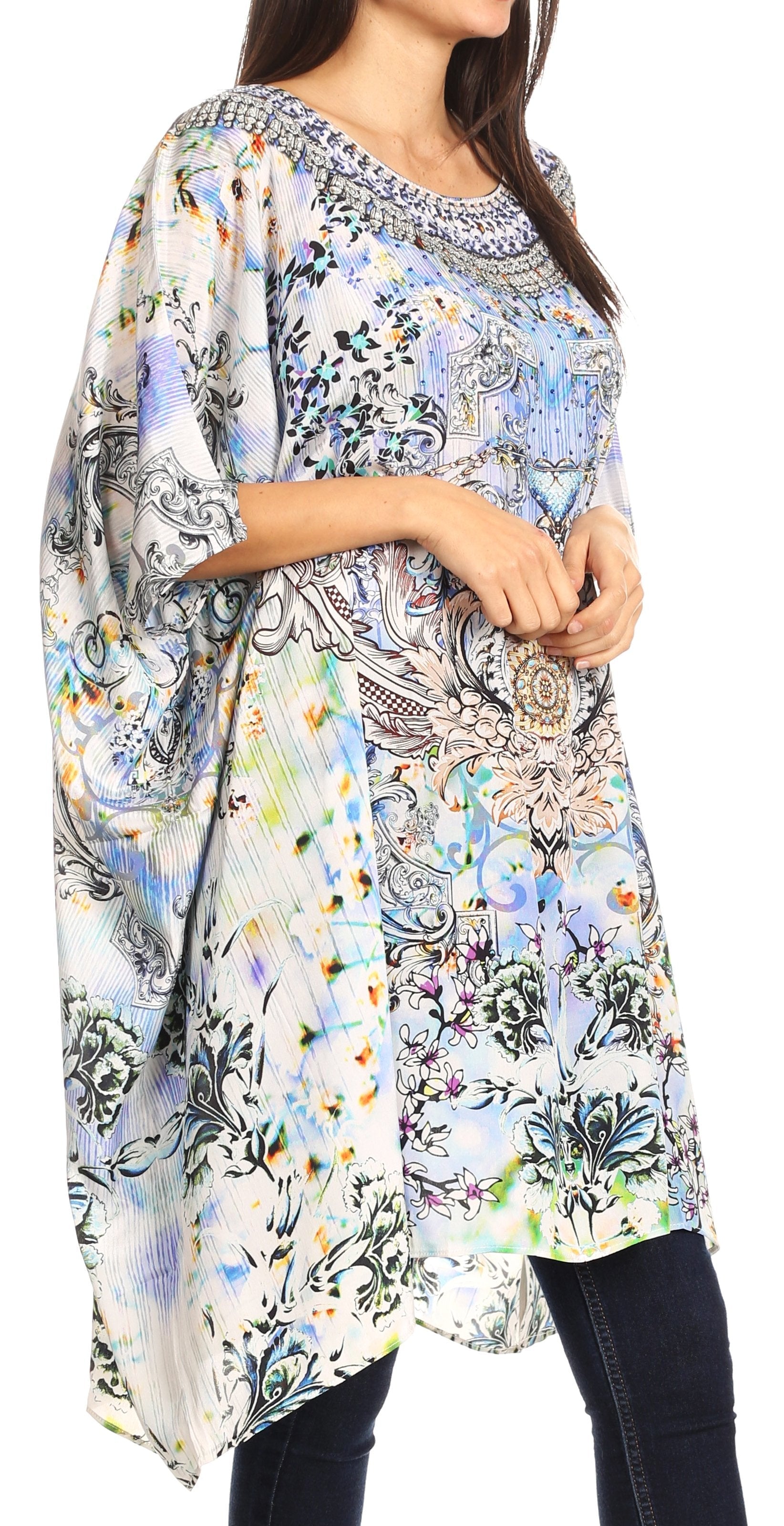 • PULLOVER/OVERSIZE TOP/KAFTAN/TUNIC: Sira, a versatile casual boho top. This lovely garment features a round neck, oversized bodice, colorful print, embellishment at front, loose/relaxed style. Ideal for everyday wear, easily transitions from casual to formal, can also be worn as swimwear cover up! Look and feel like a goddess in any setting while wearing this gorgeous tunic/top!
