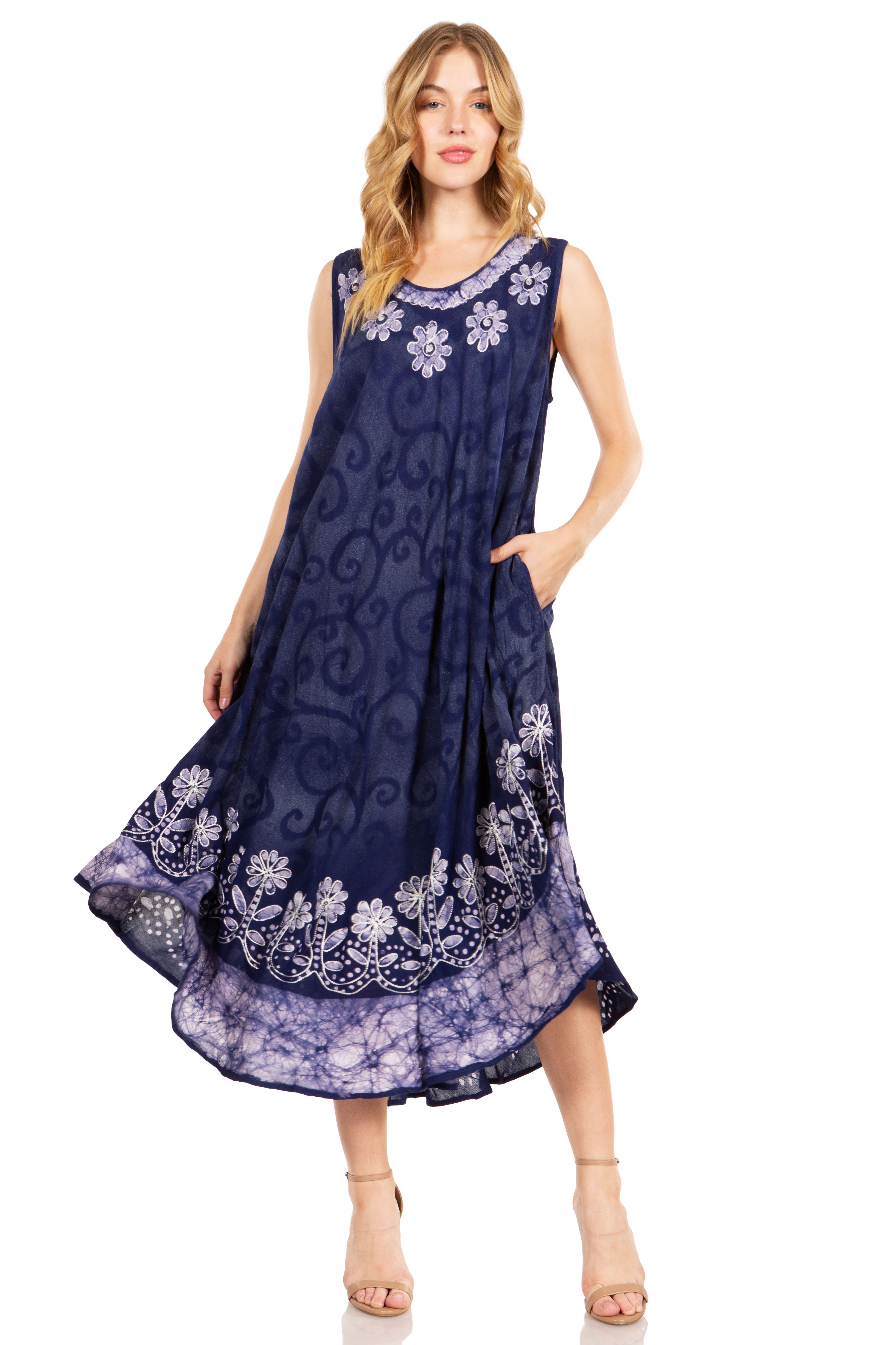 • The Starlight Second Caftan features beautiful colors and easy, comfortable style. It's the perfect sleeveless maxi dress for casual wear, offering versatility and simplicity.