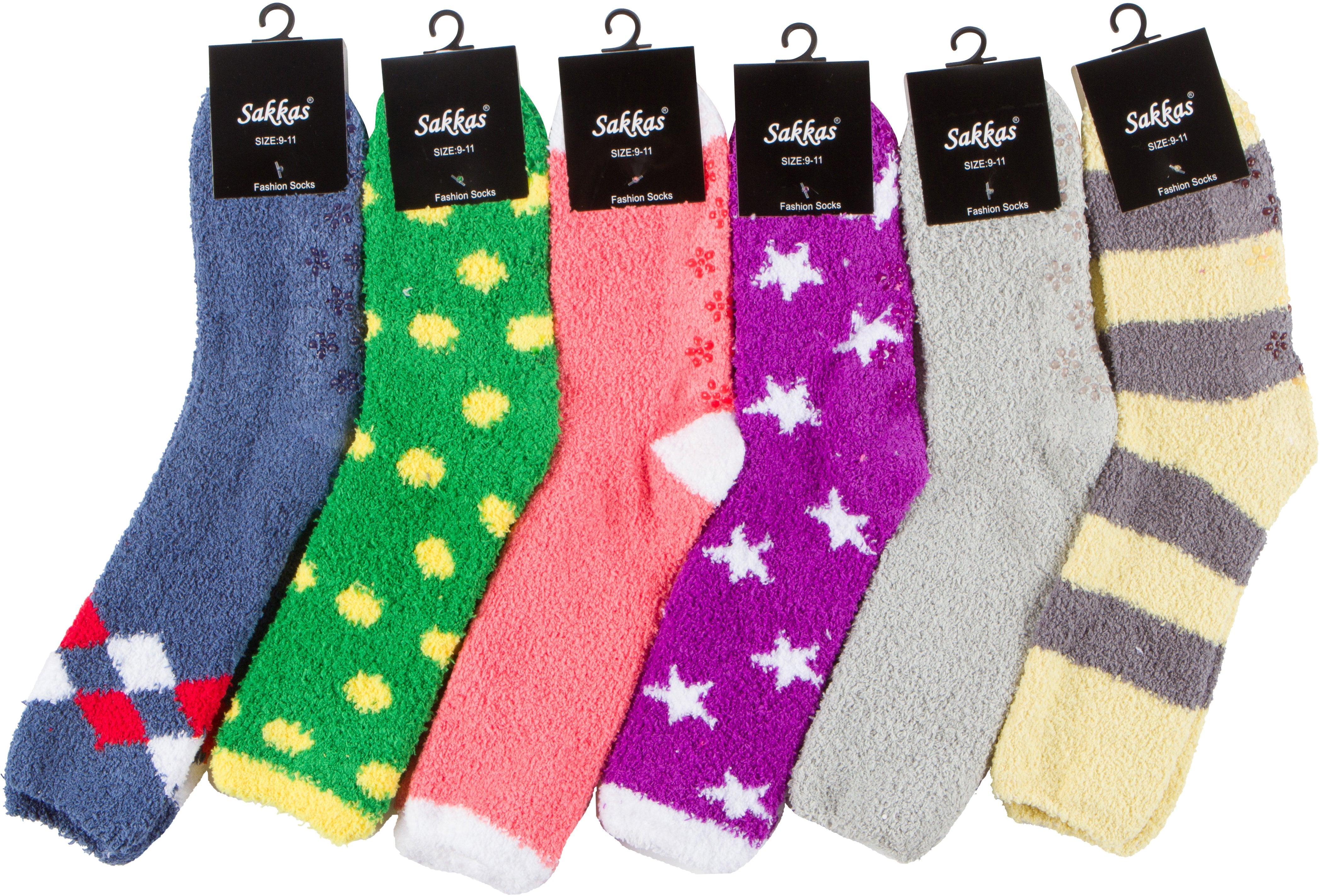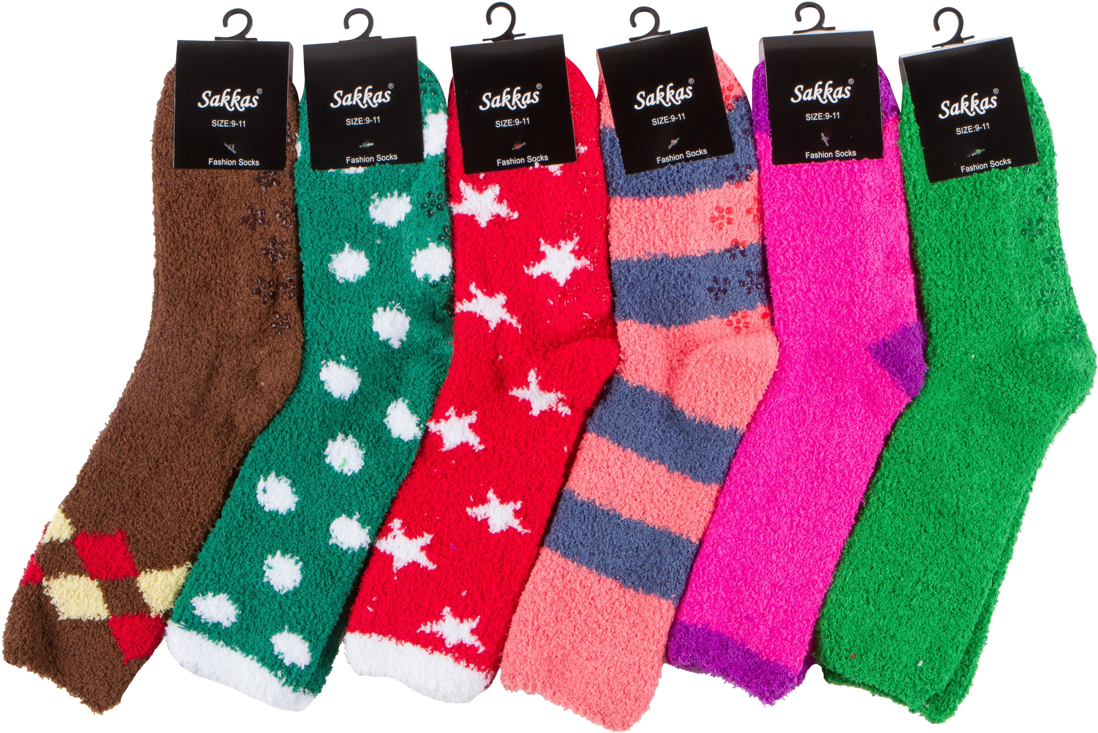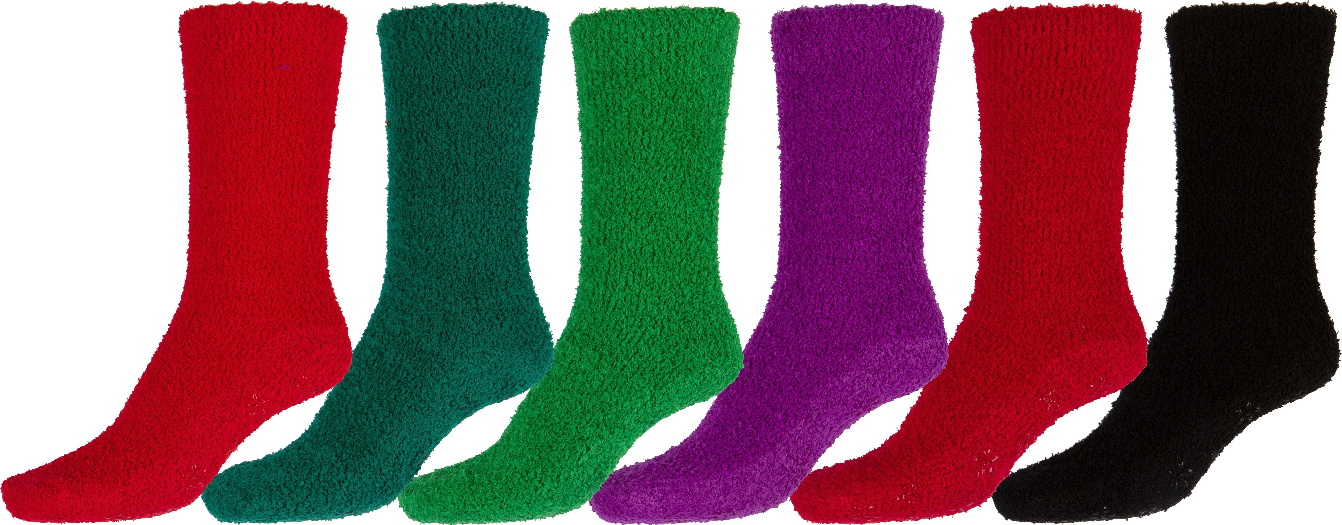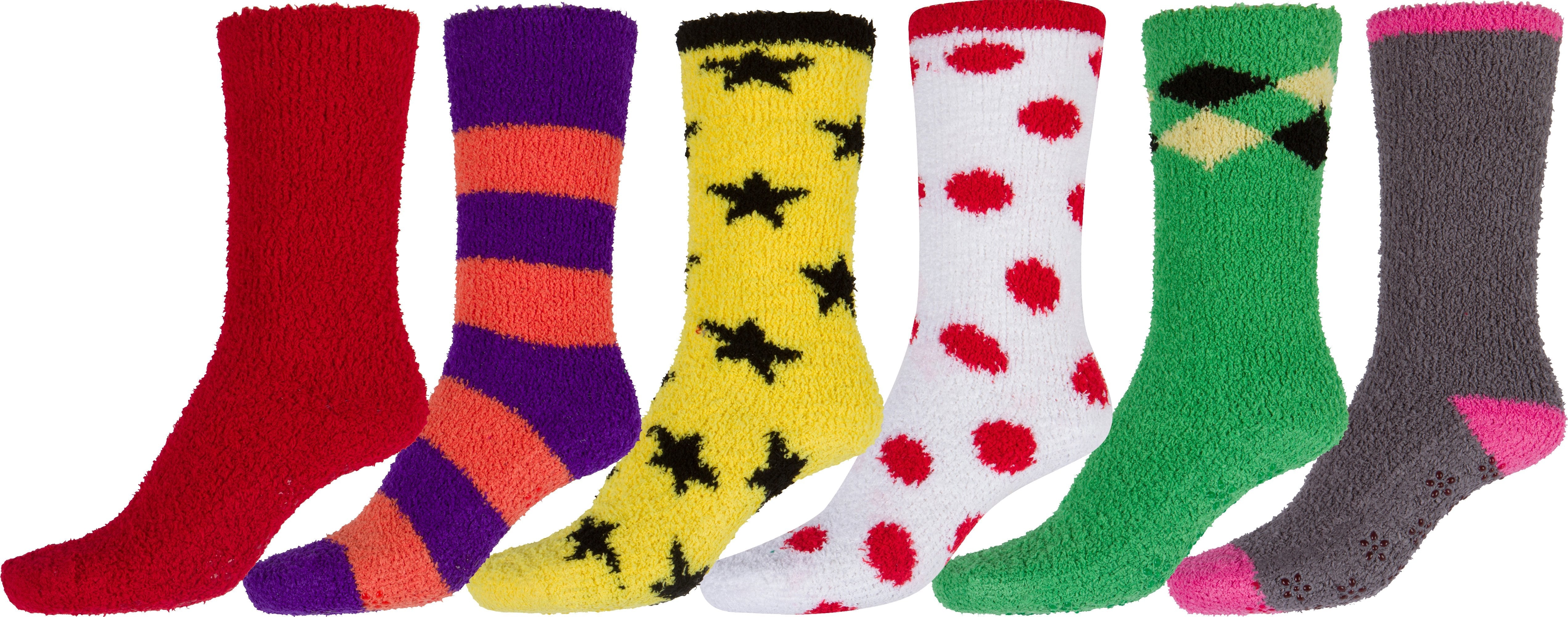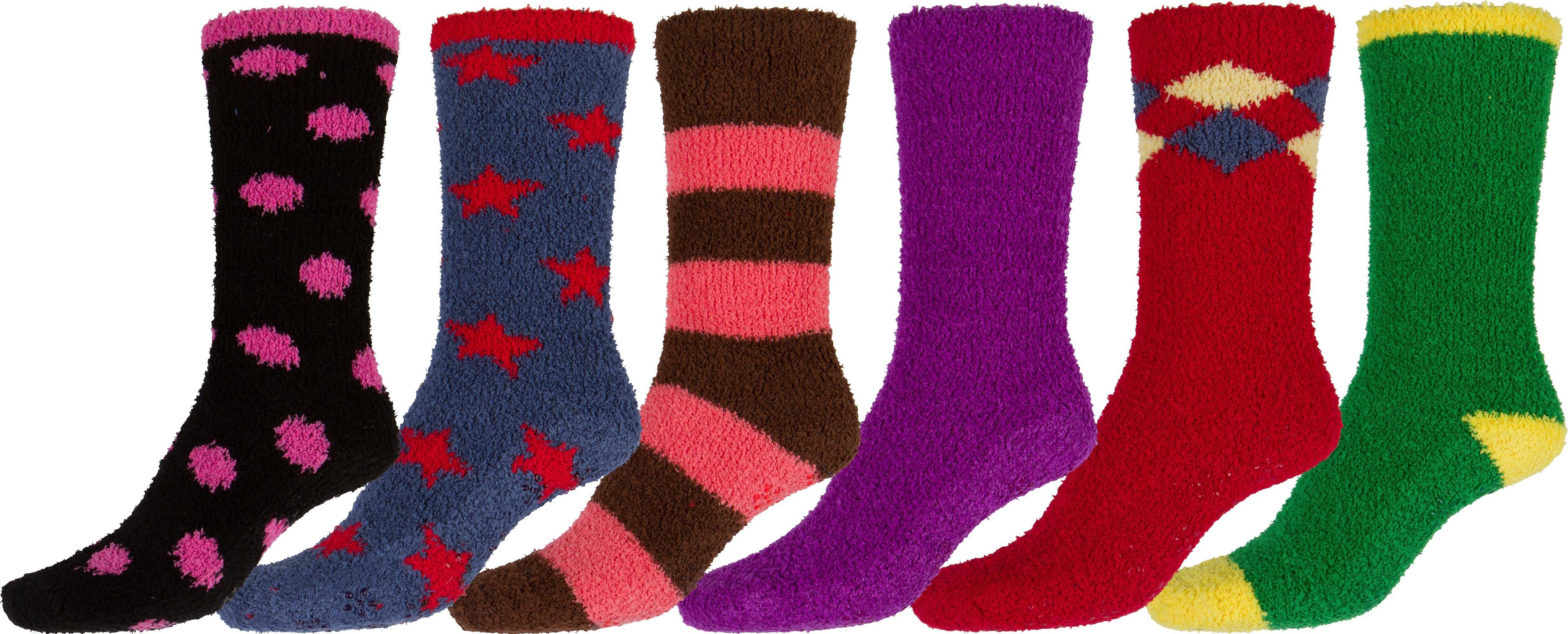 Sakkas Super Soft Anti-Slip Fuzzy Crew Socks Value Assorted 6-Pack