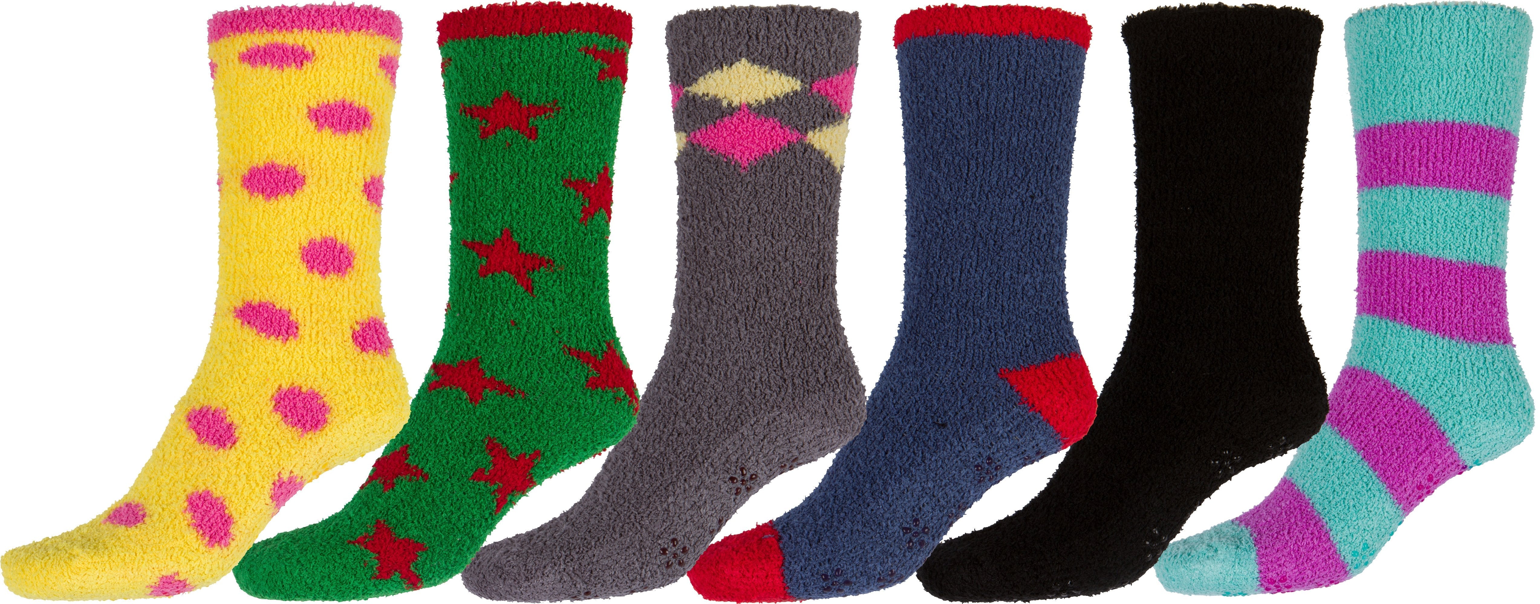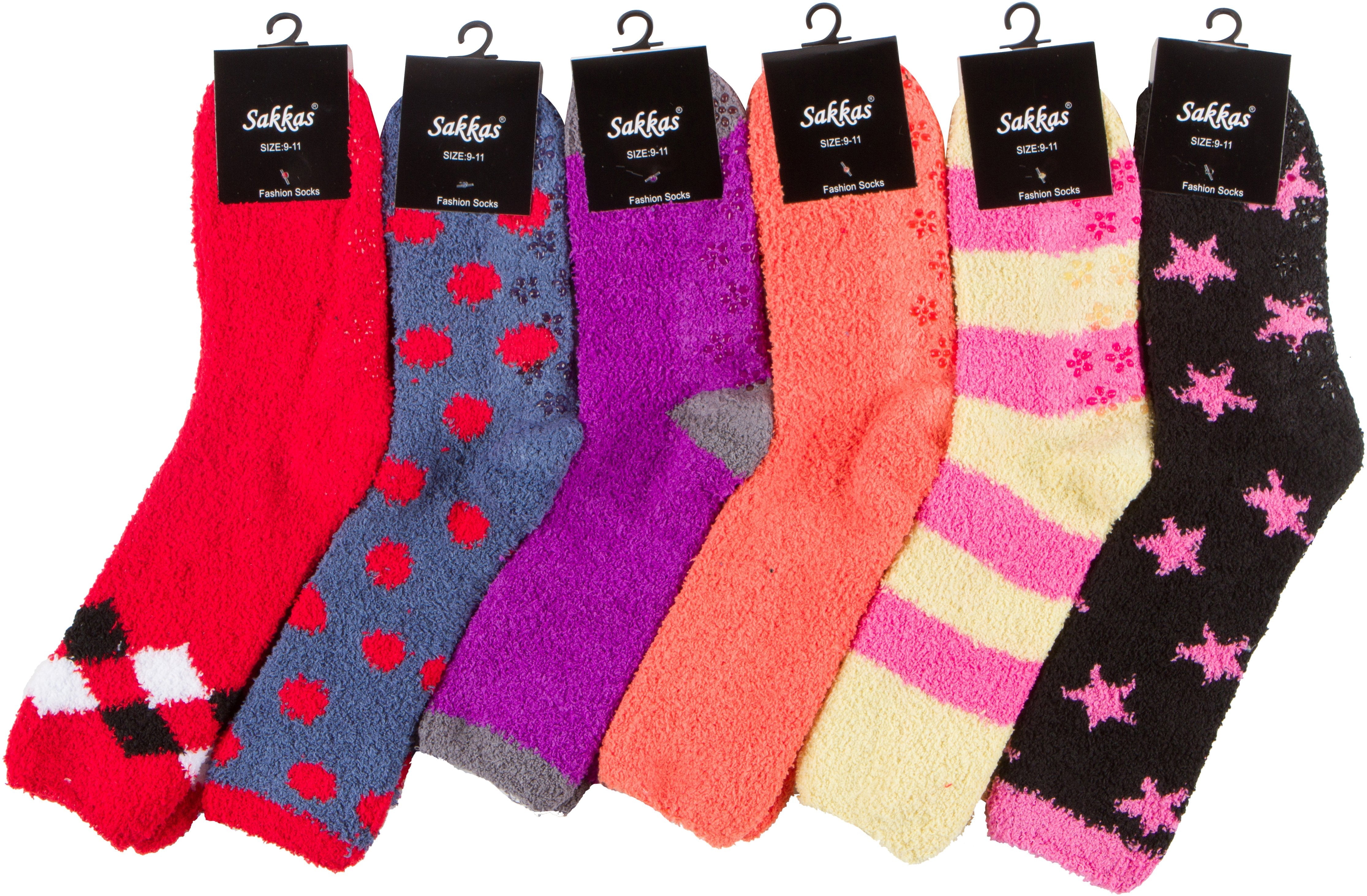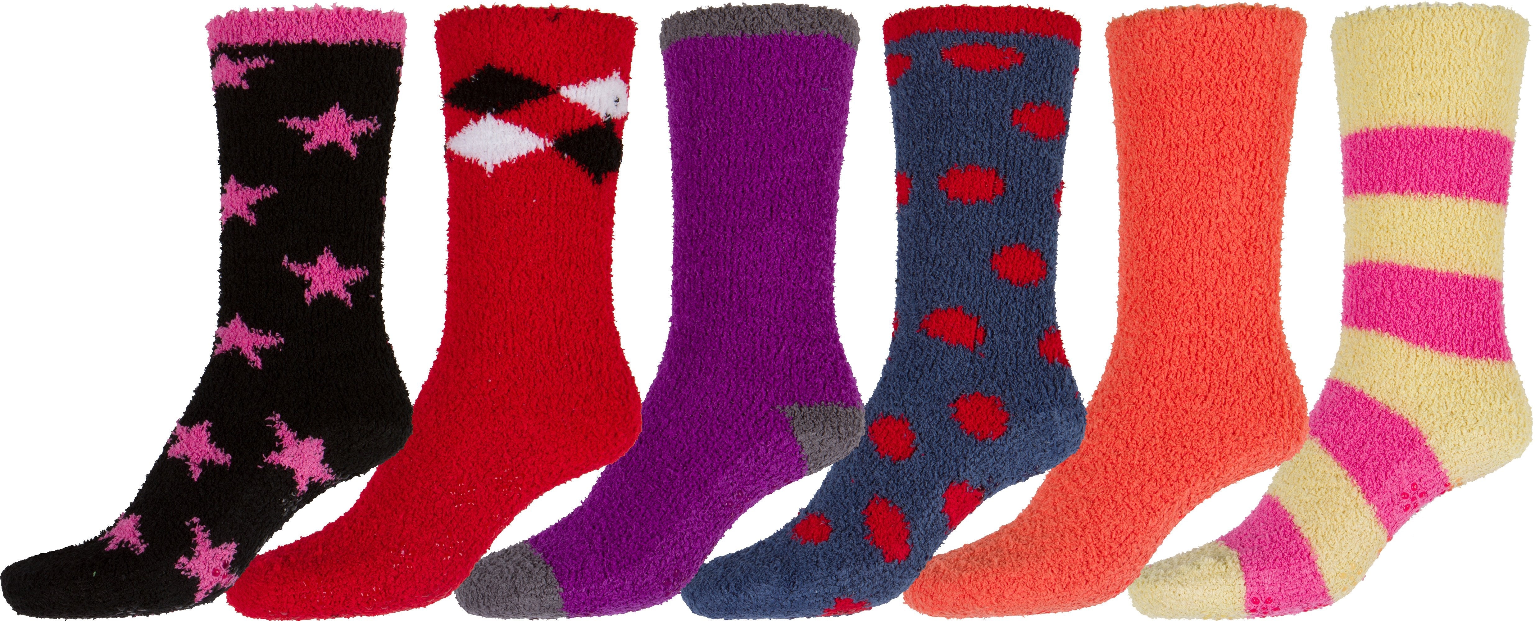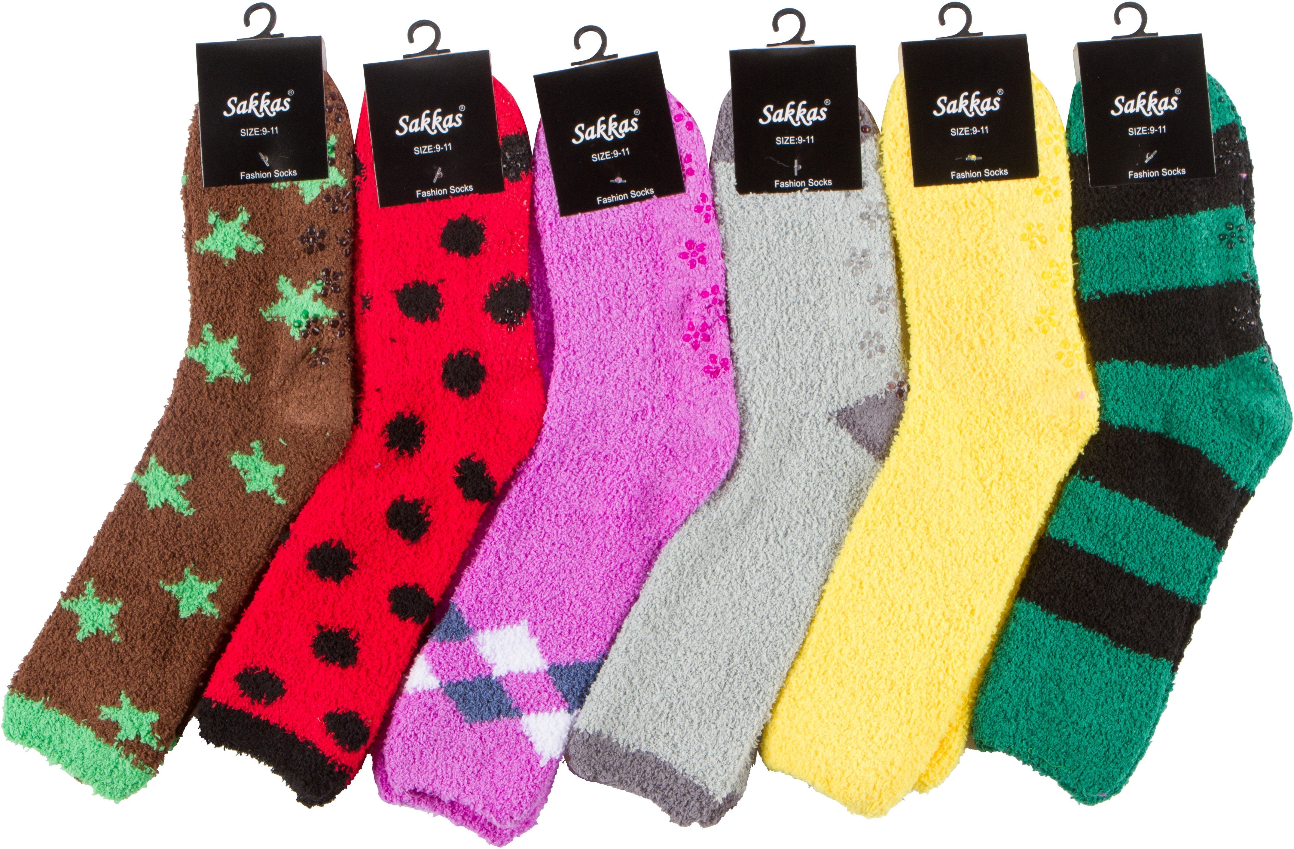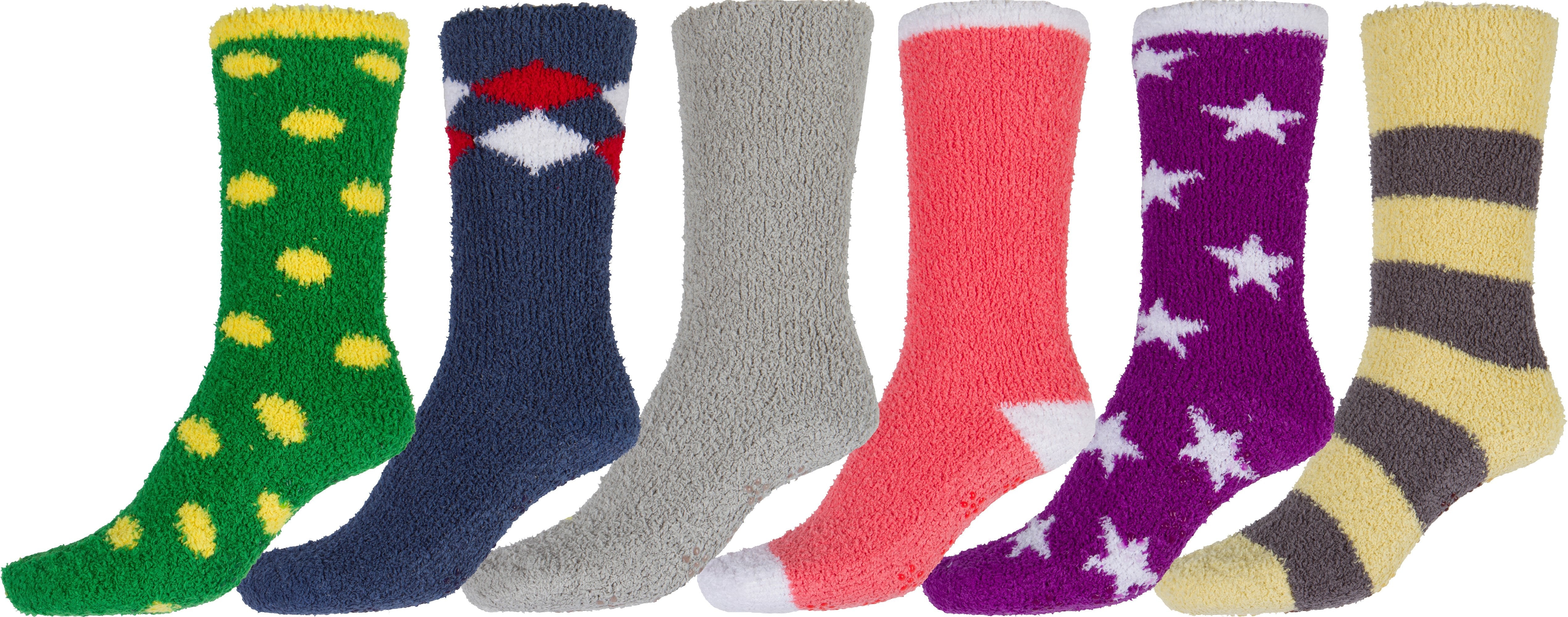 Sakkas Super Soft Anti-Slip Fuzzy Crew Socks Value Assorted 6-Pack