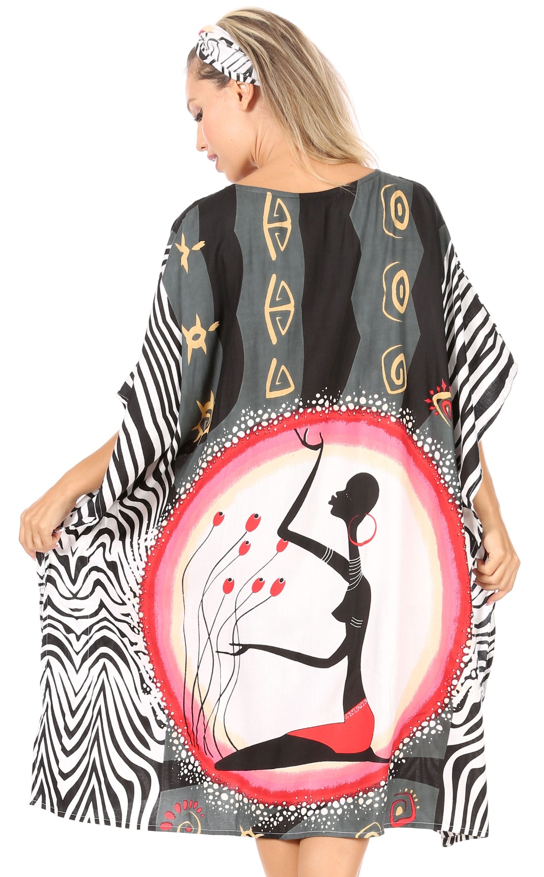 Sakkas Trina Women's Casual Loose Beach Poncho Caftan Dress Cover-up Many Print